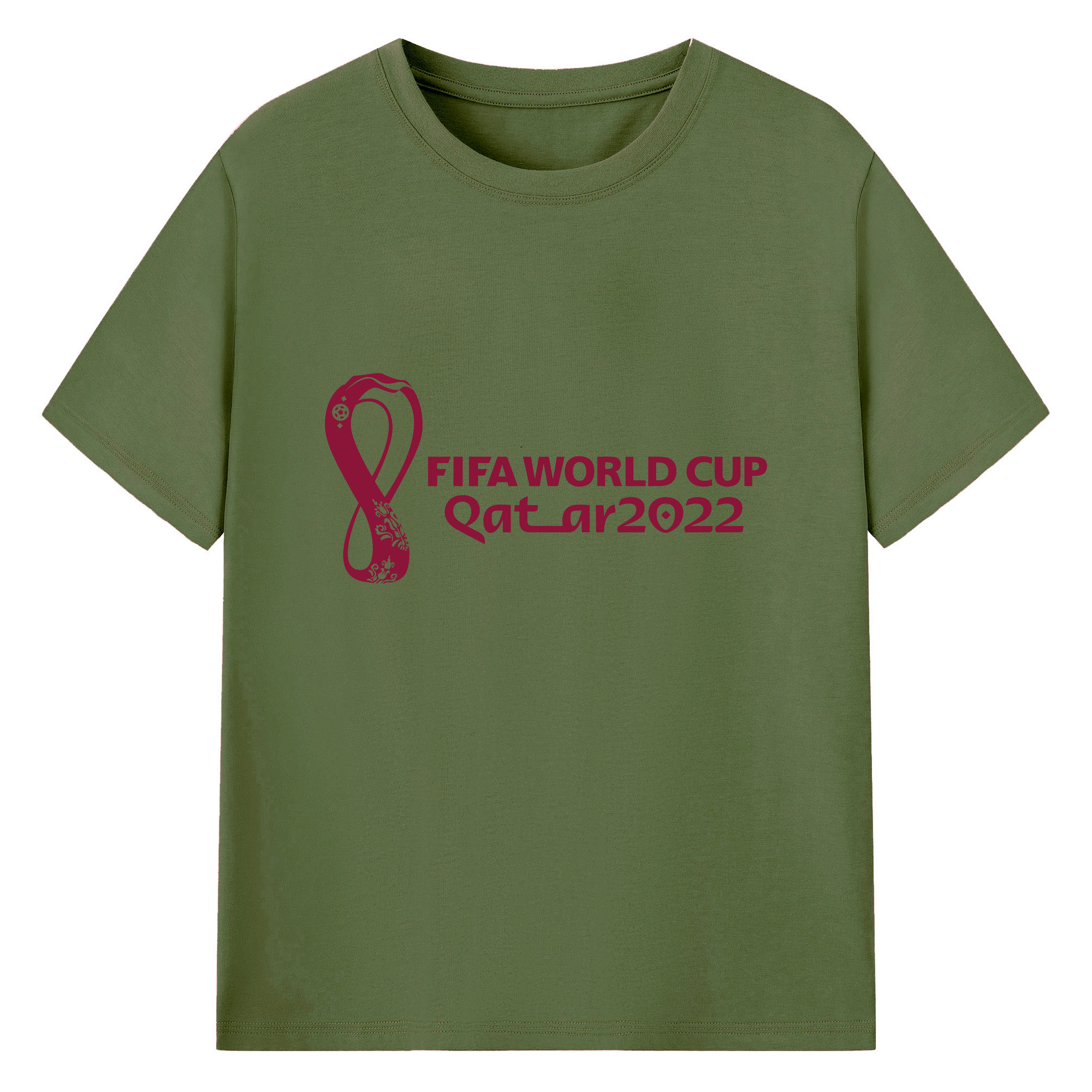 W杯 トロフィー風デザイン - 綿100% 半袖Tシャツ ・ フロントプリント ・ 快適 通気性 ・ 日常使い 散歩 スポーツ用
