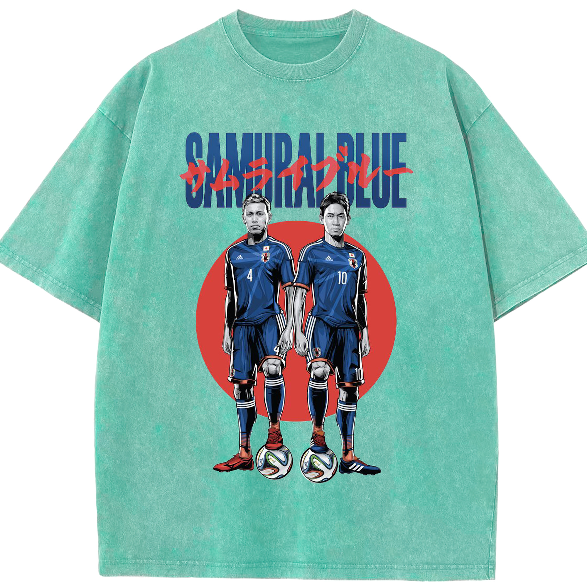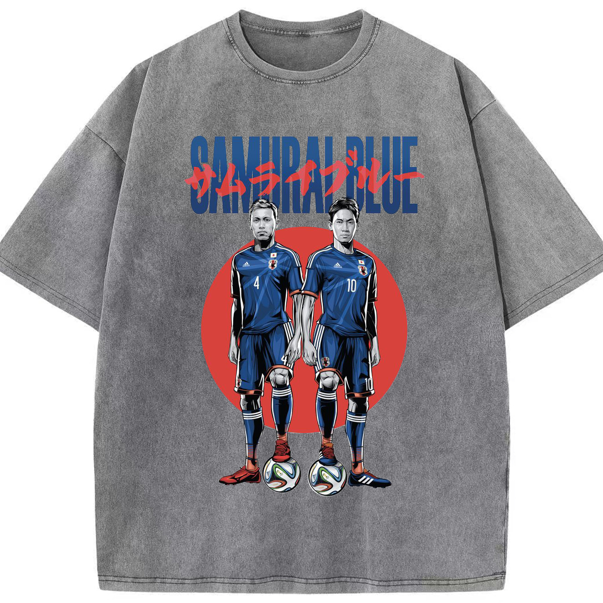 ブライトンの閃光 三笘薰 - 綿100% ヴィンテージ風 半袖Tシャツ ・ フロントプリント ・ 柔らか肌触り ・ 通気性 快適 ・ スポーツ カジュアル 外出用