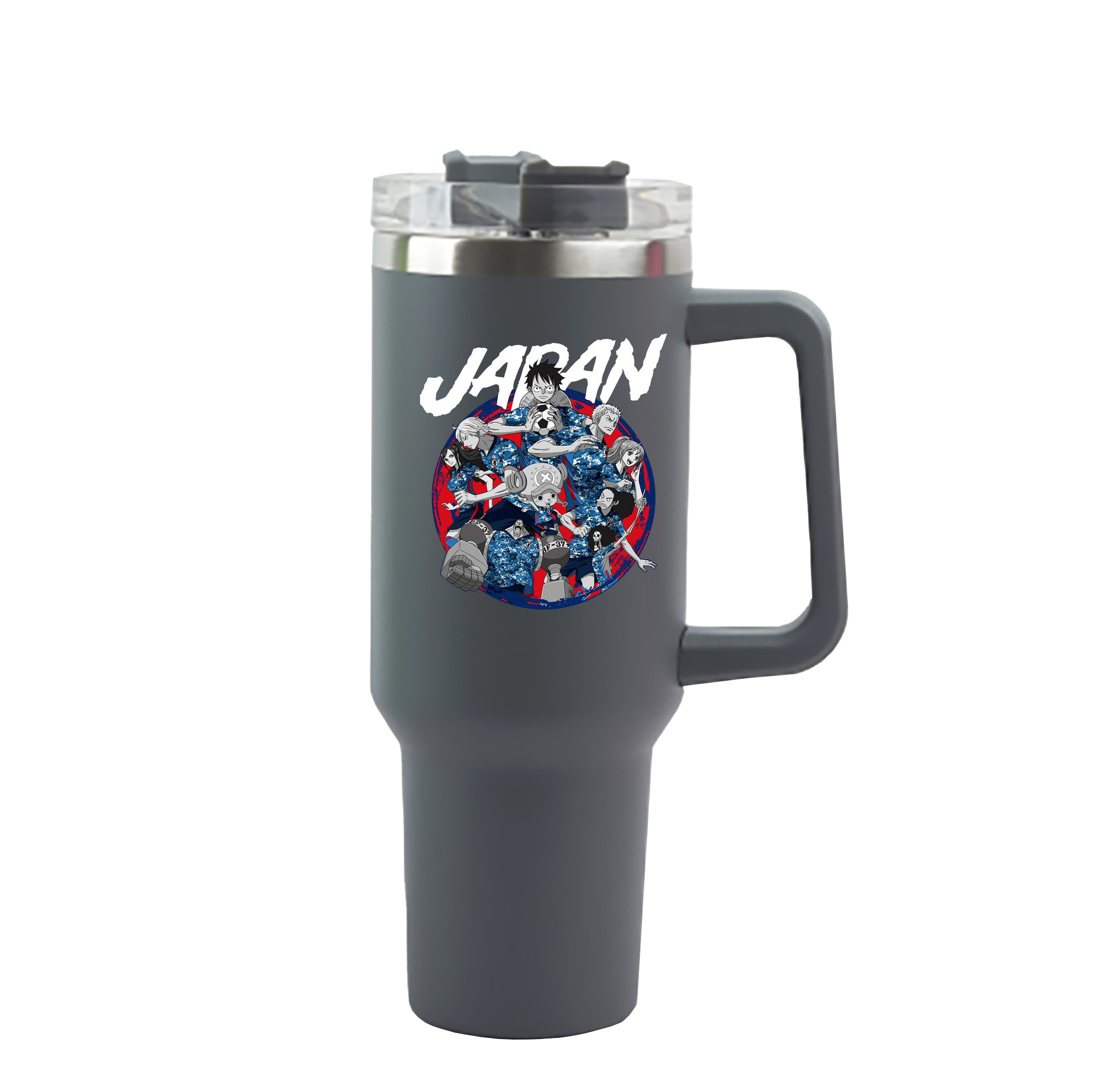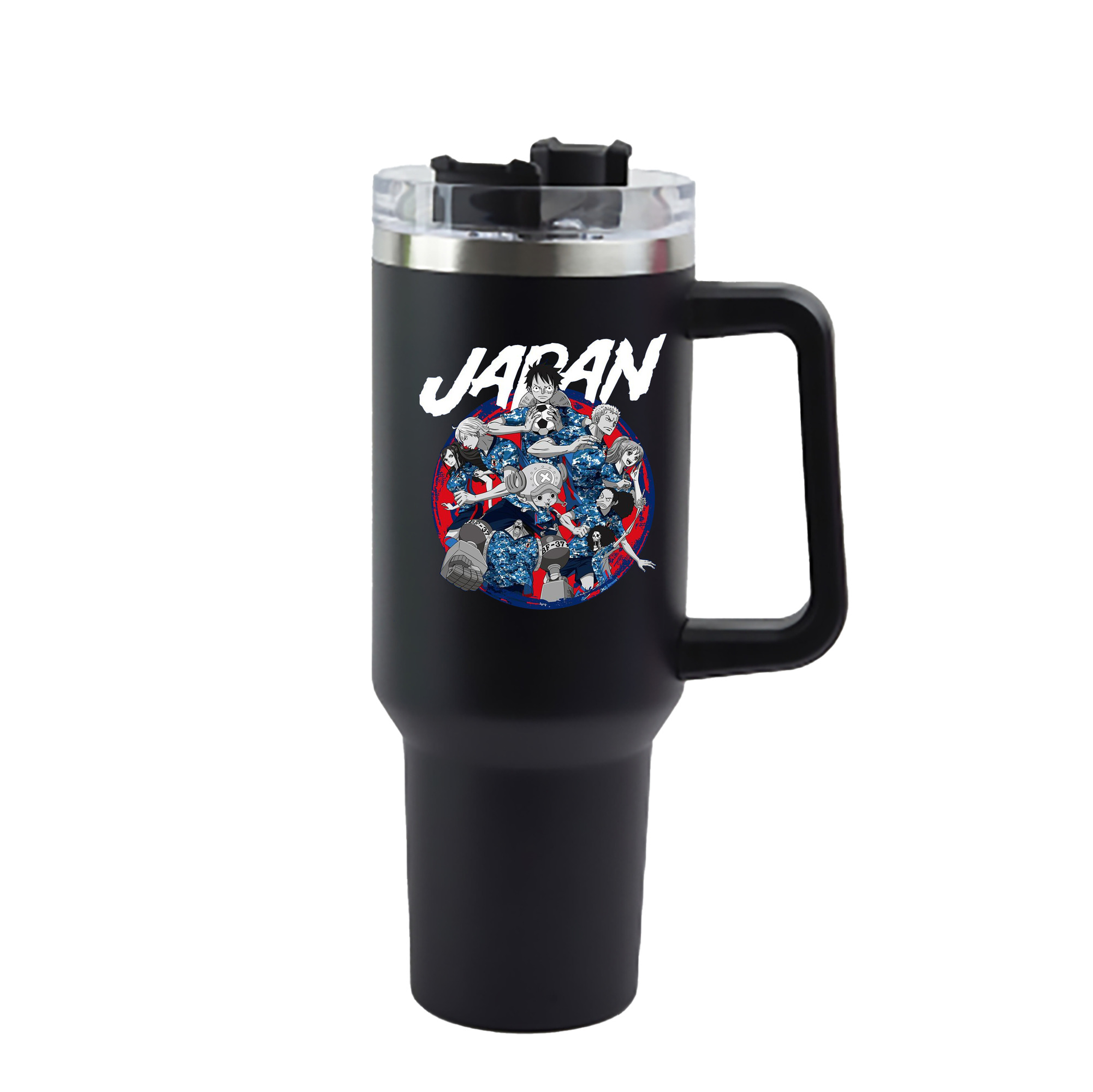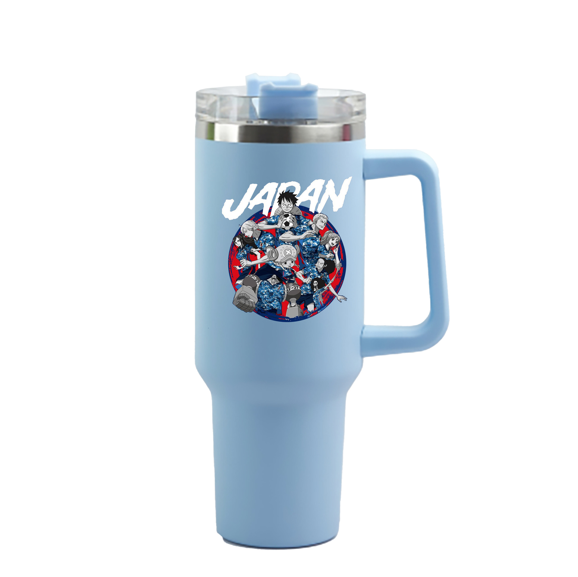 サムライブルー × ワンピース コラボ - 1200mL 車用タンブラー ・ クリスタルステッカー ・ 304ステンレス 内側 ・ 201ステンレス 外側 ・ 保温 保冷 ・ ハンドル&ストロー付き ・ 通勤 ドライブ アウトドア用
