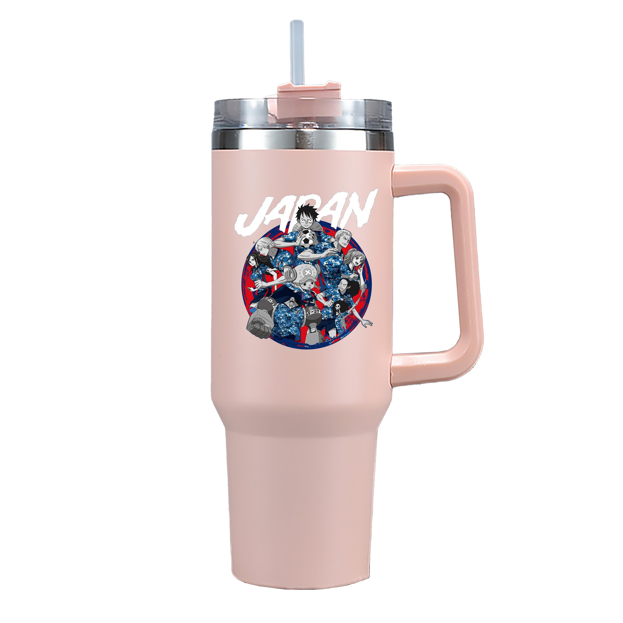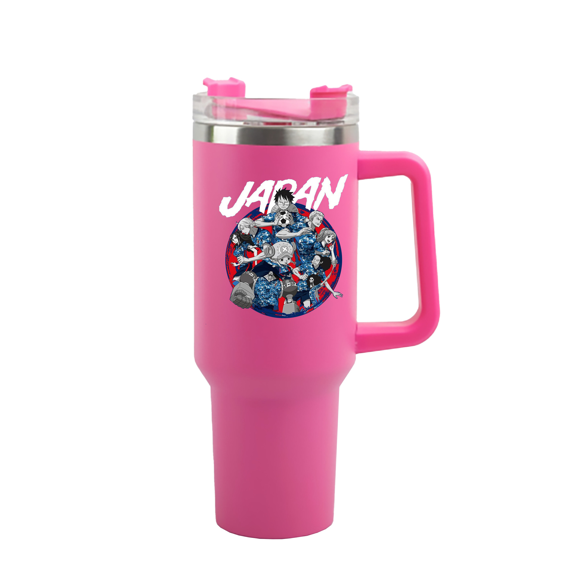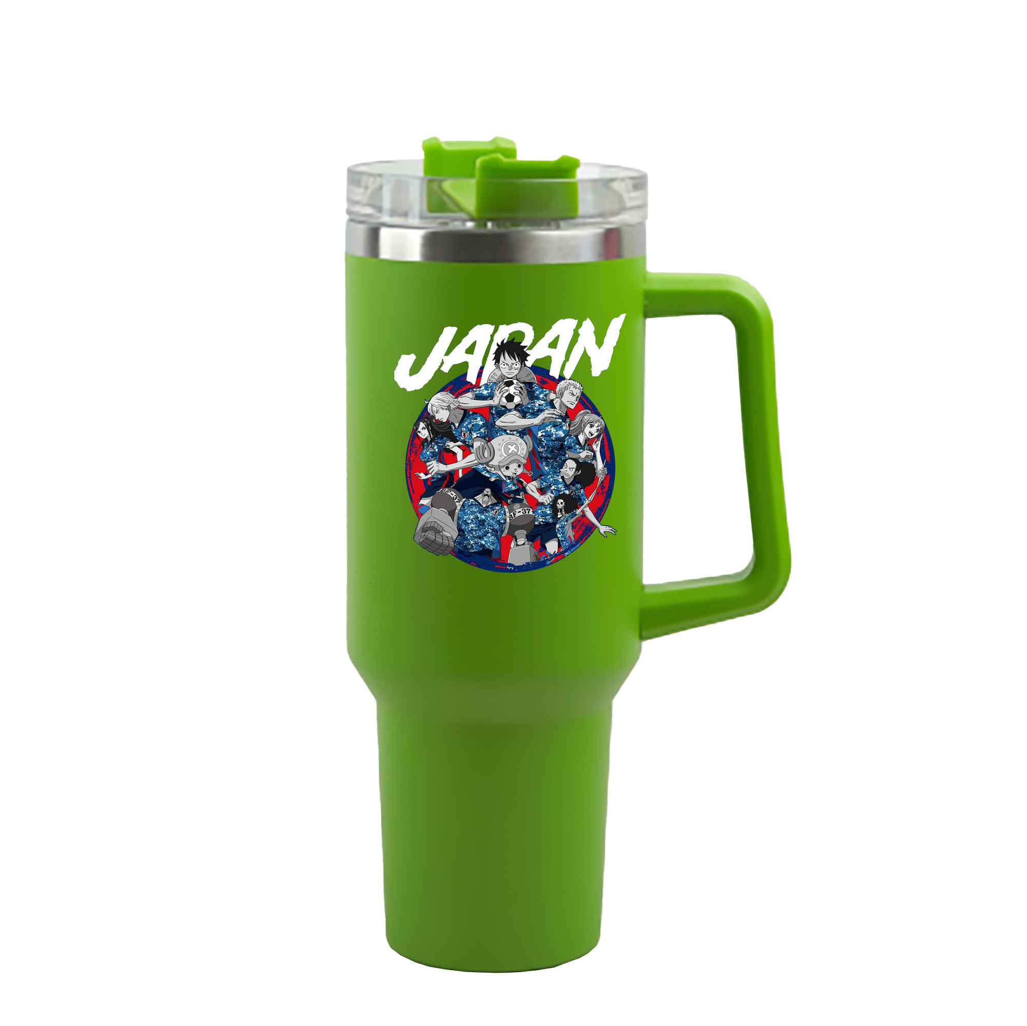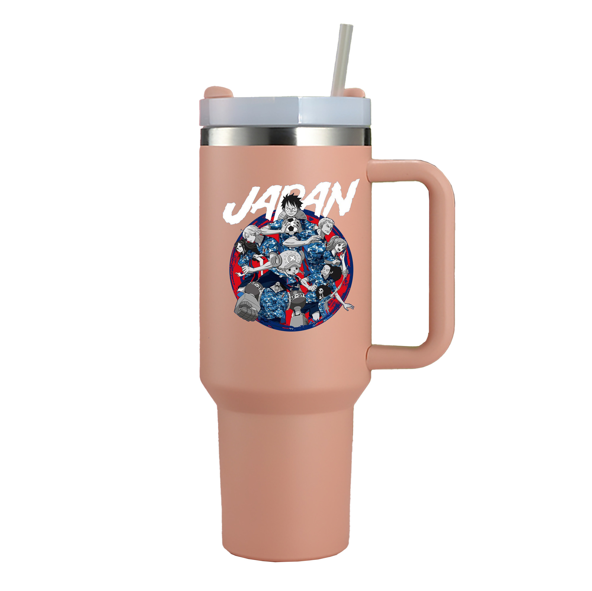サムライブルー × ワンピース コラボ - 1200mL 車用タンブラー ・ クリスタルステッカー ・ 304ステンレス 内側 ・ 201ステンレス 外側 ・ 保温 保冷 ・ ハンドル&ストロー付き ・ 通勤 ドライブ アウトドア用