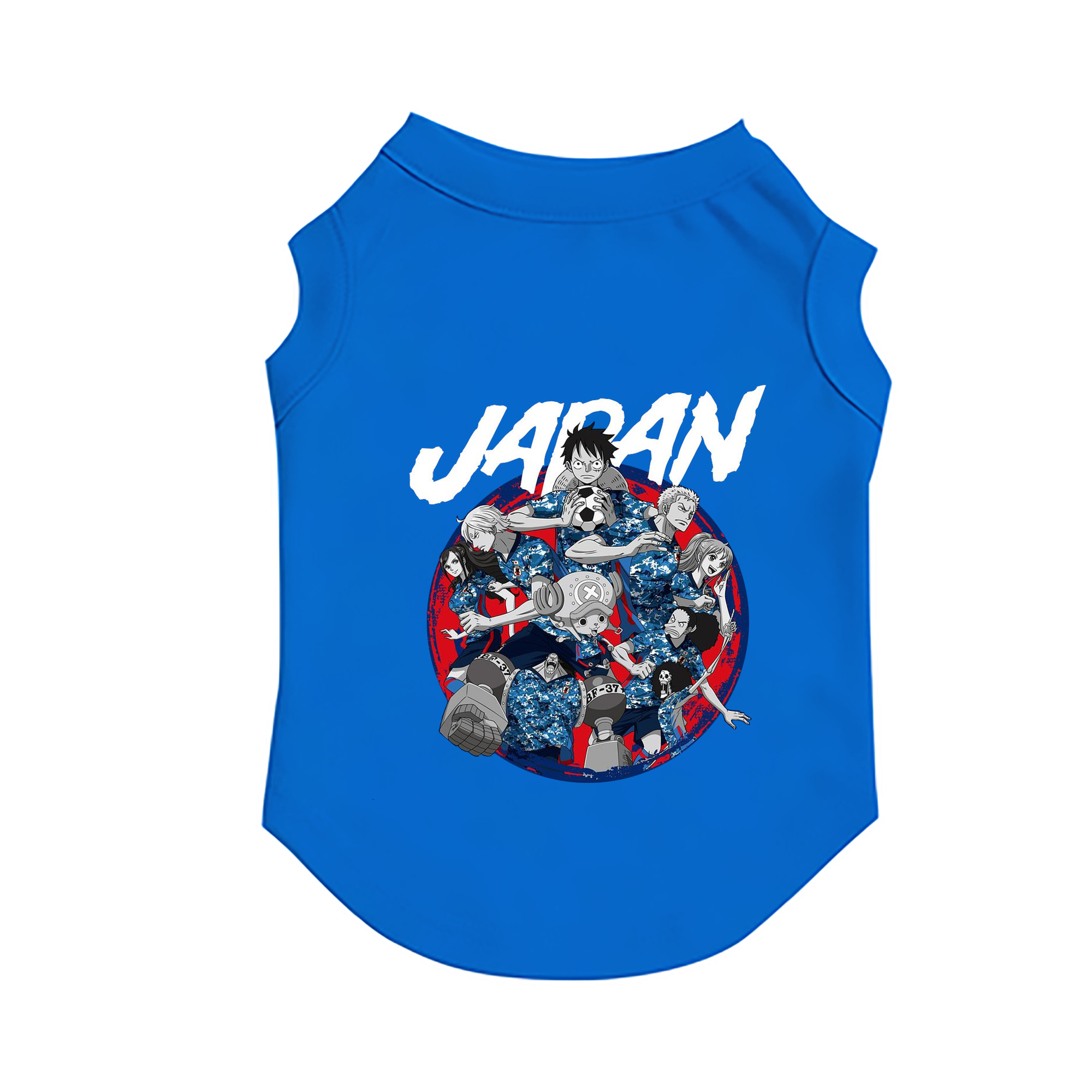 サムライブルー × ワンピース コラボ - ペット用ベスト ・ ポリエステル100% ・ 吸水速乾 UVカット ・ 通気性 快適 ・ 小型犬〜大型犬 夏用 お散歩 アウトドア