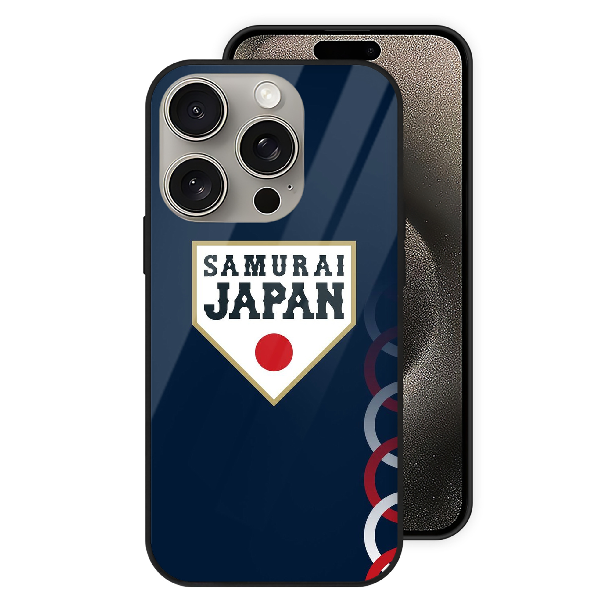 サムライブルー - IPhone15Pro対応 ・ スマホケース ・ 背面ガラス ・ TPU+強化ガラス ・ 耐衝撃 ・ 黄変防止 ・ ワイヤレス充電対応 ・ 3D立体ボタン