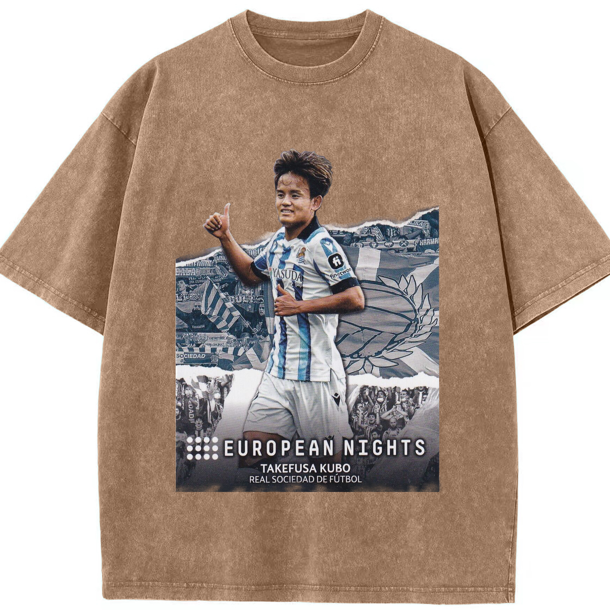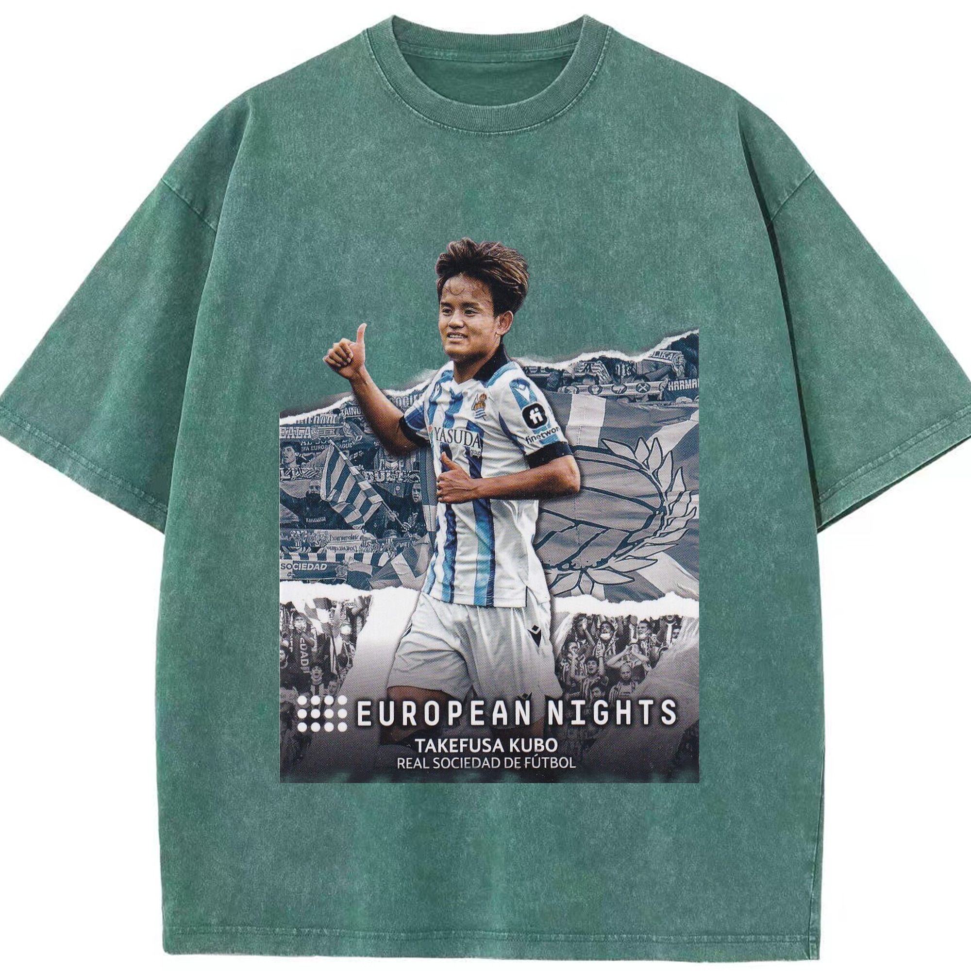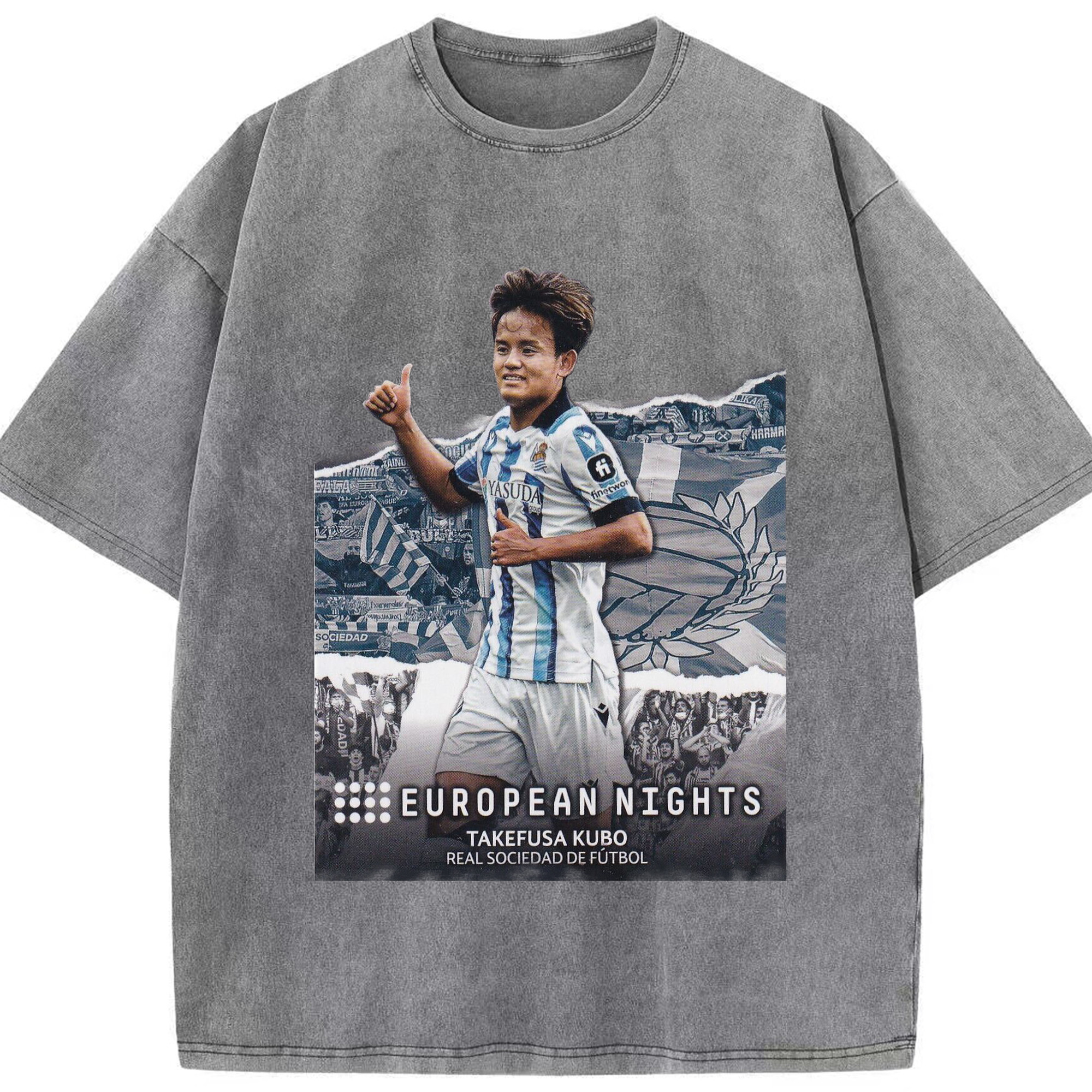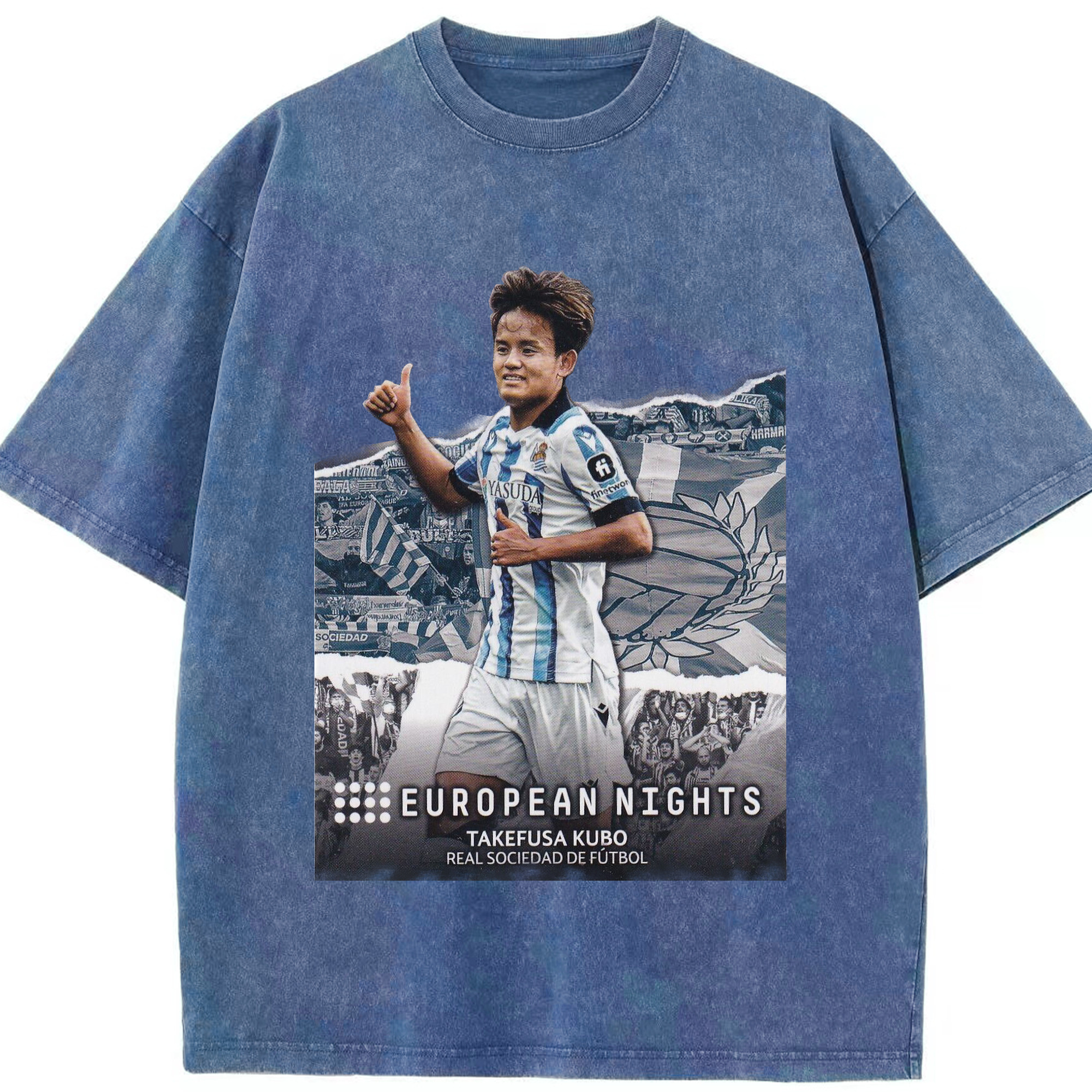 久保建英 サムライスピリット 国境を超える才能 - 綿100% ヴィンテージ風 半袖Tシャツ ・ フロントプリント ・ 柔らか肌触り ・ 通気性 快適 ・ スポーツ カジュアル 外出用