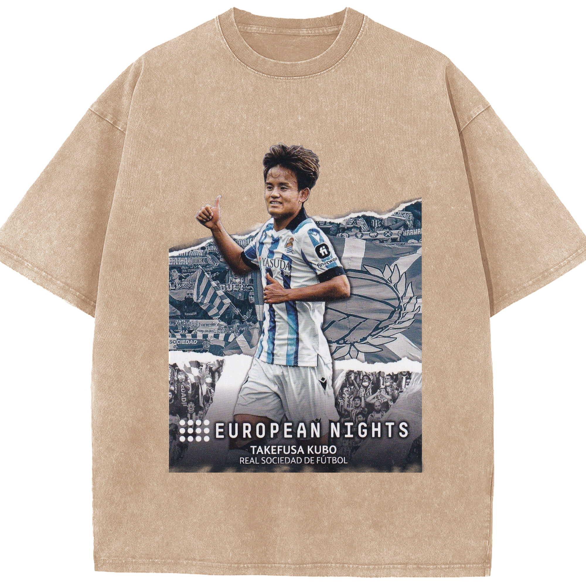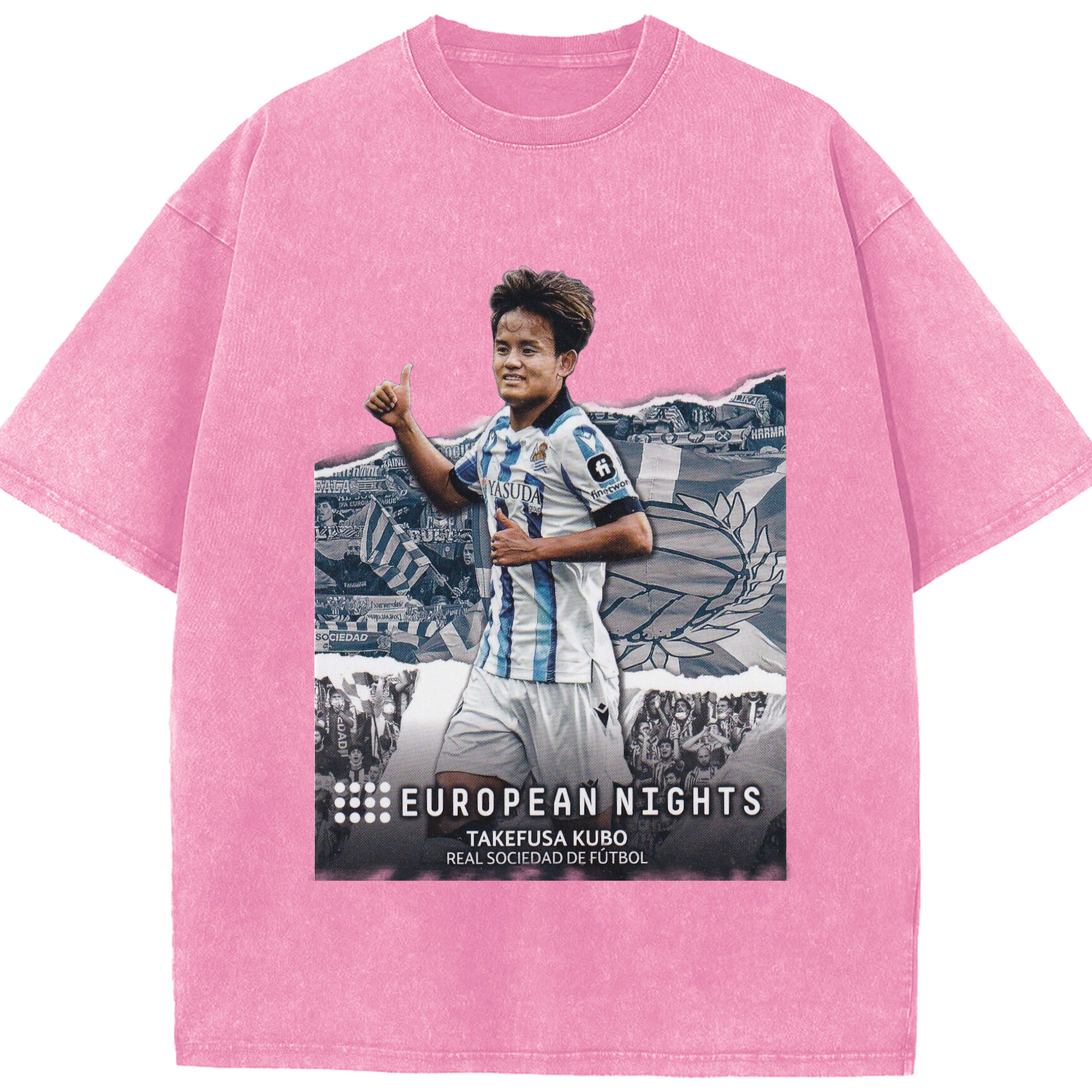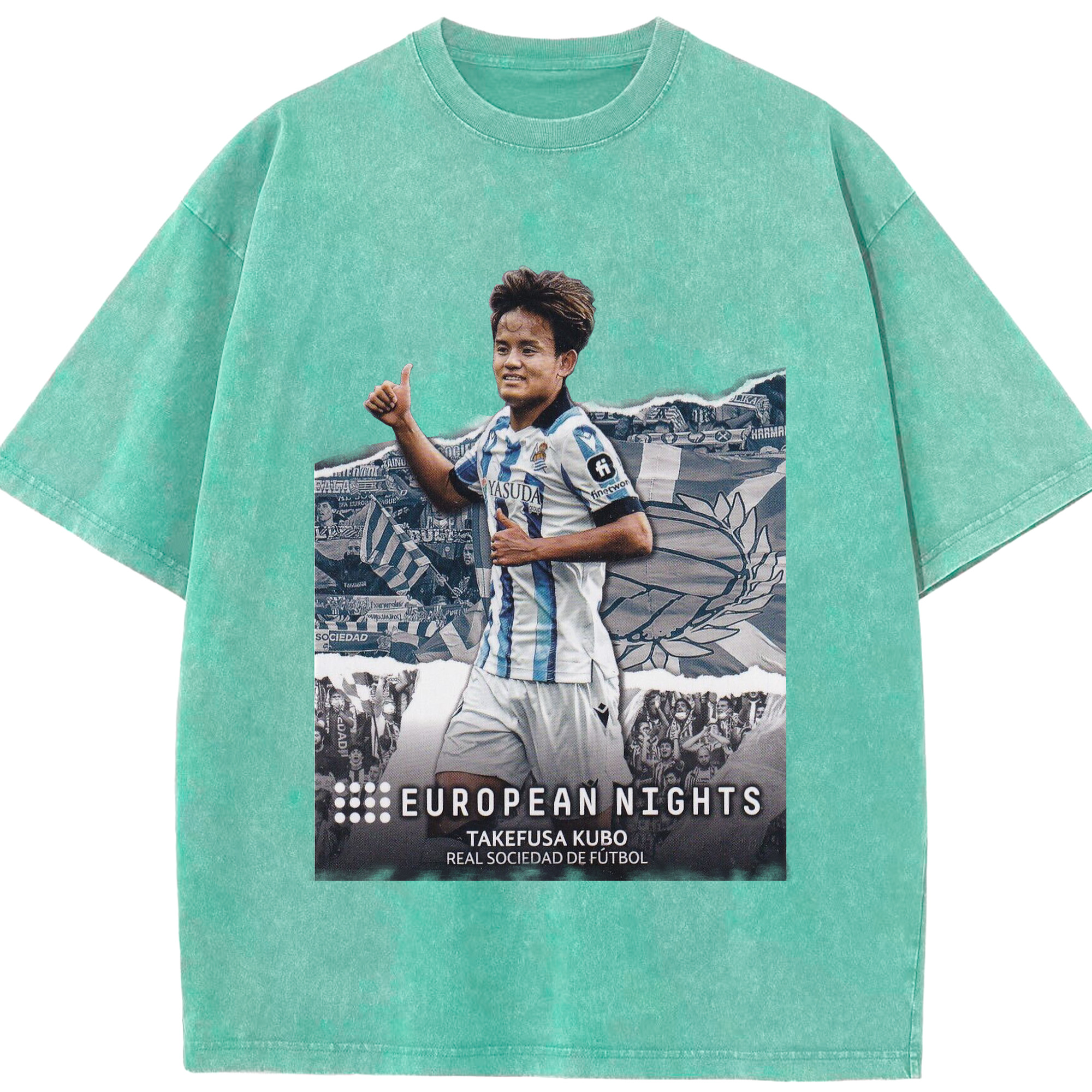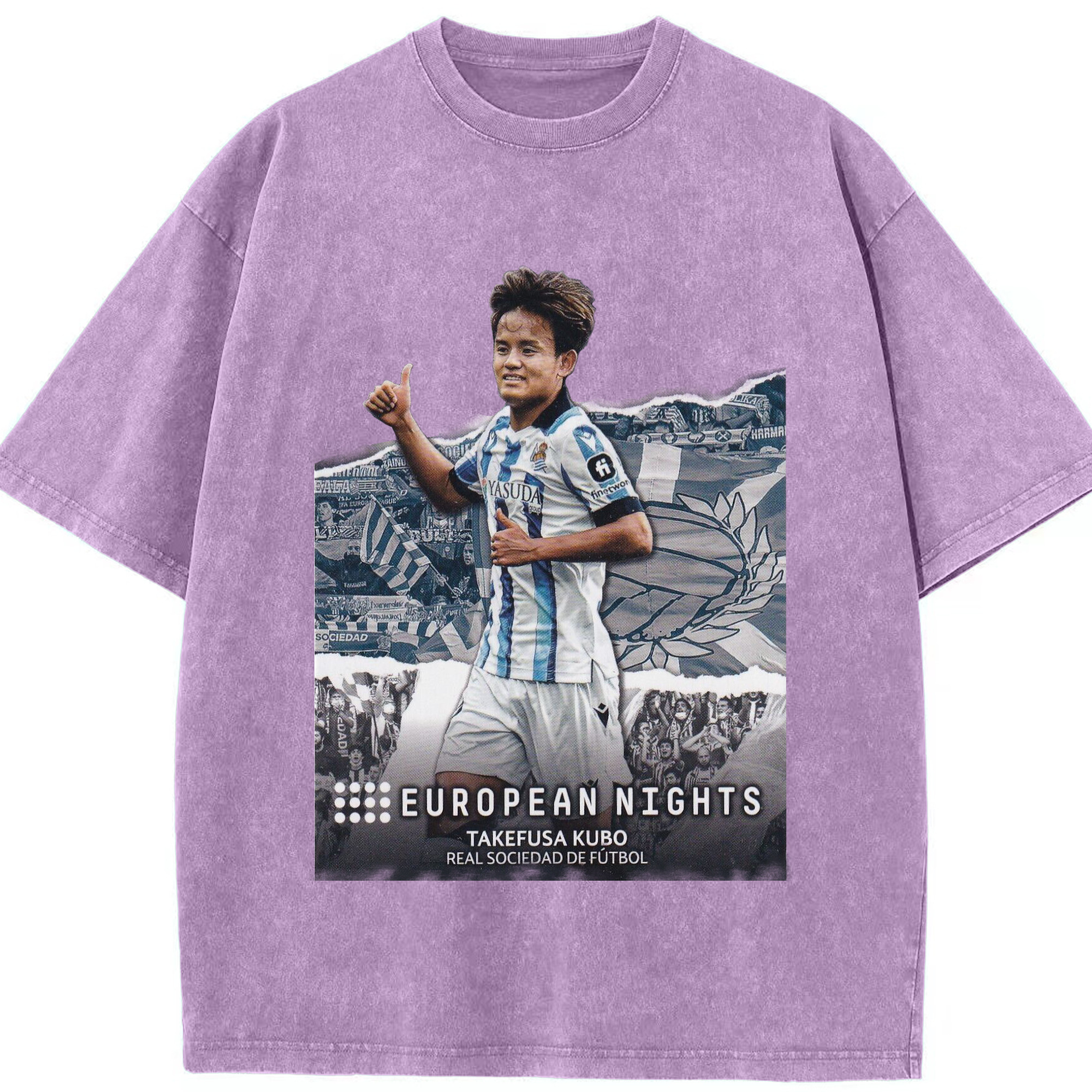 久保建英 サムライスピリット 国境を超える才能 - 綿100% ヴィンテージ風 半袖Tシャツ ・ フロントプリント ・ 柔らか肌触り ・ 通気性 快適 ・ スポーツ カジュアル 外出用