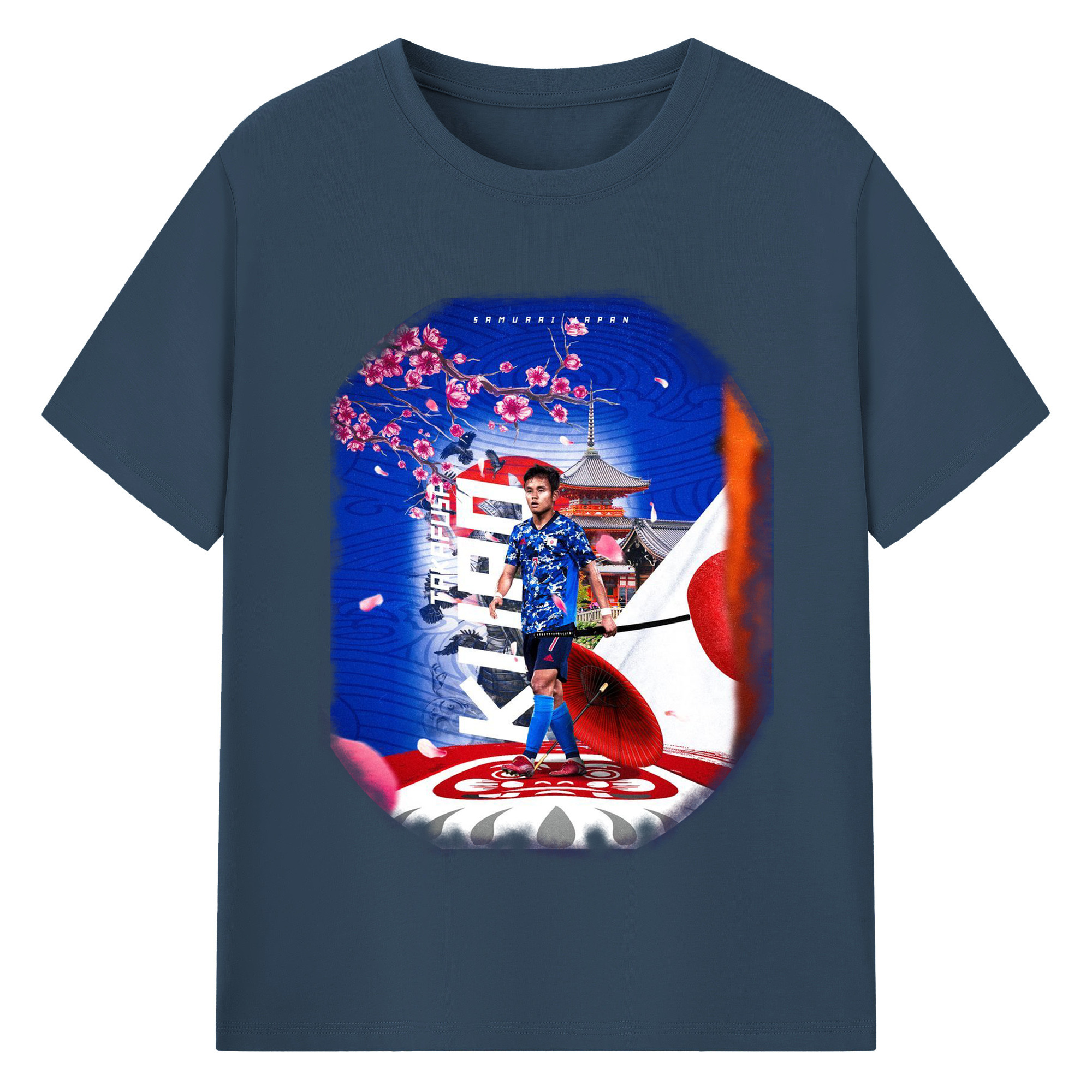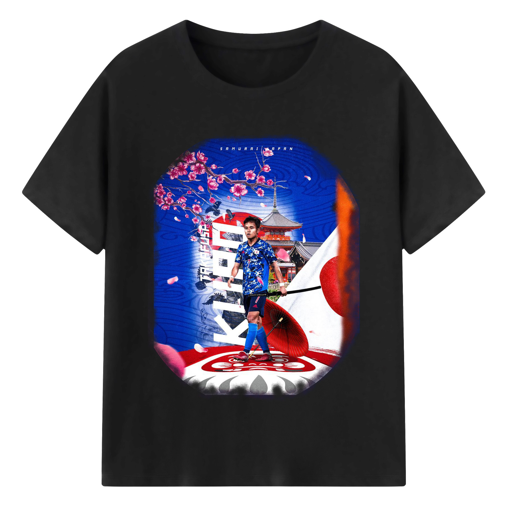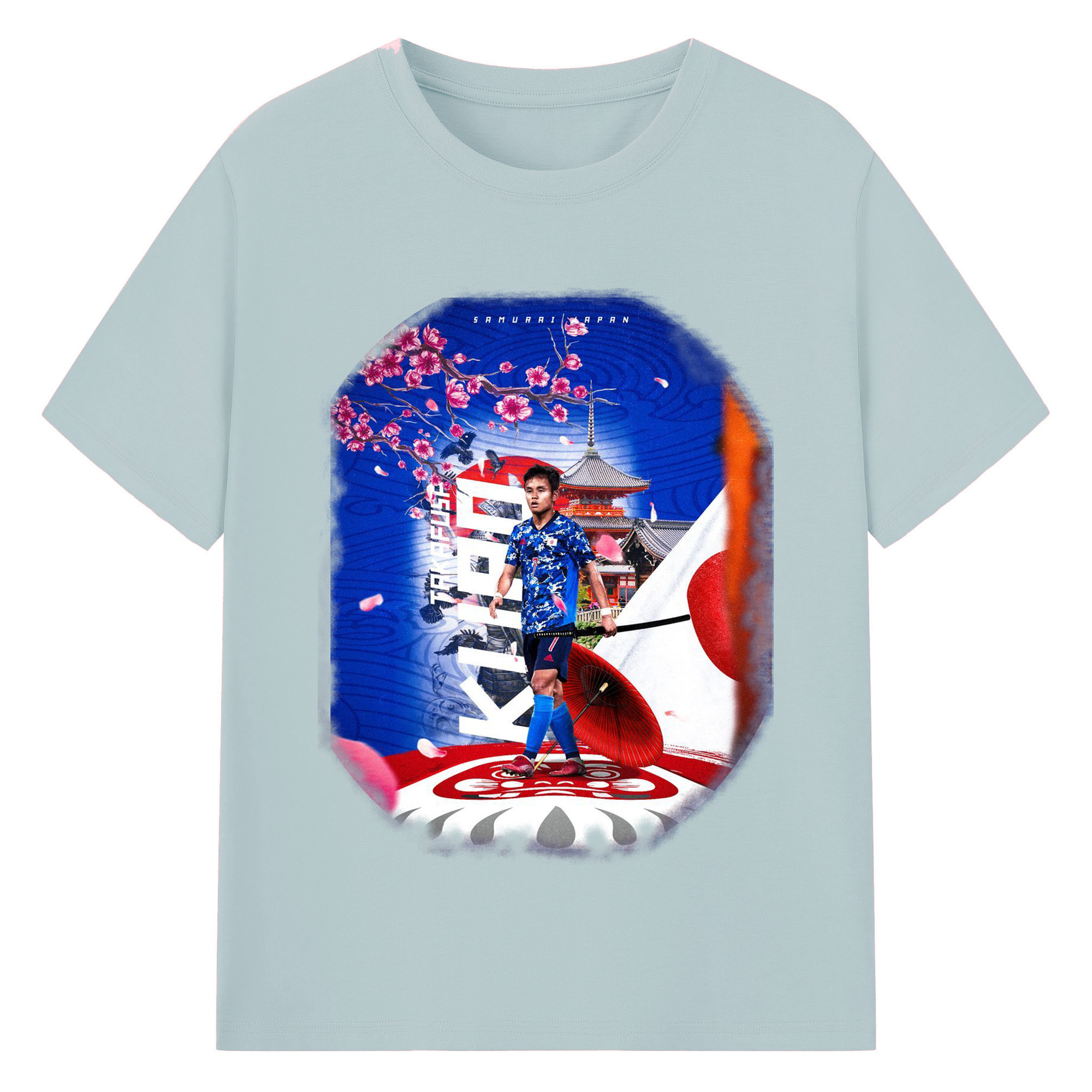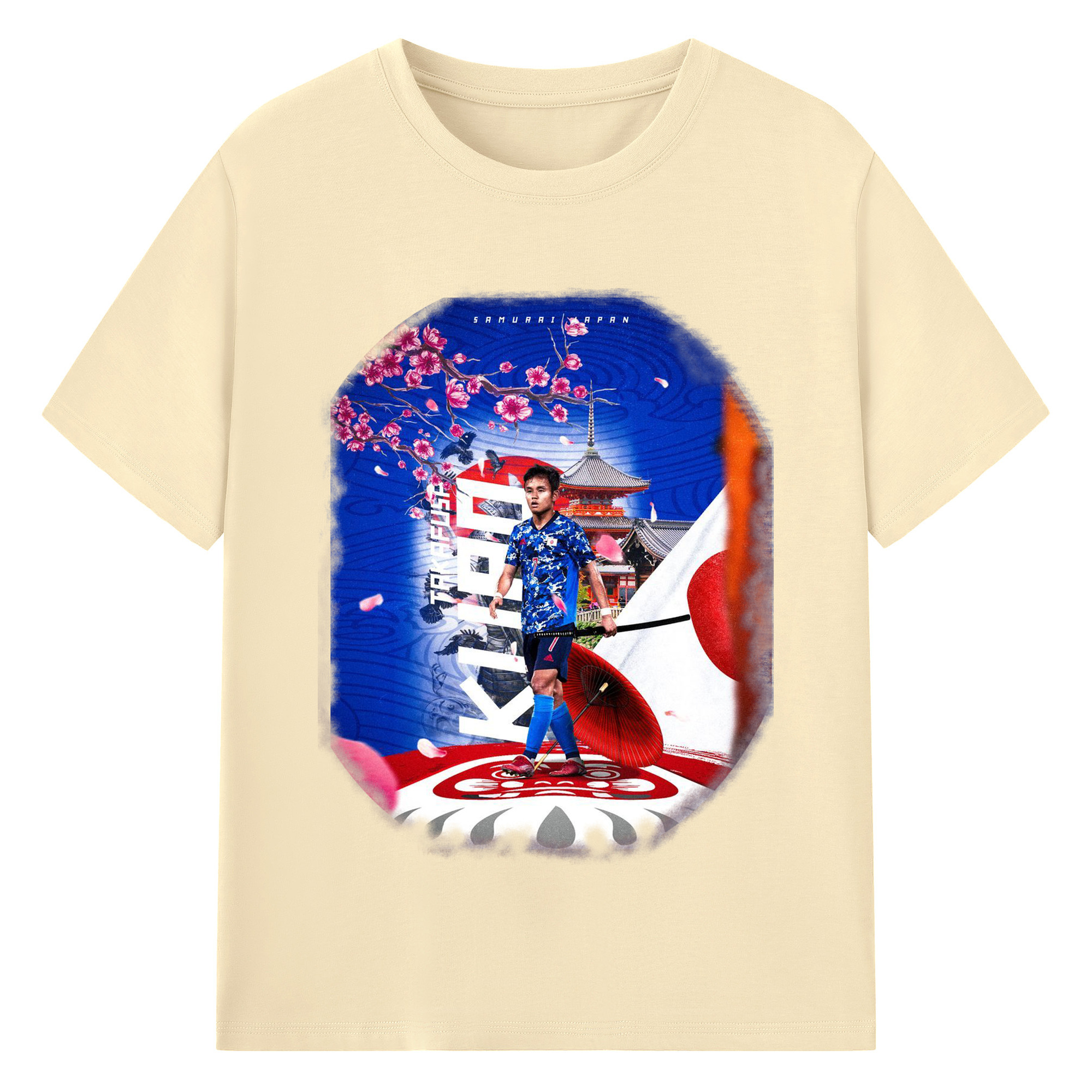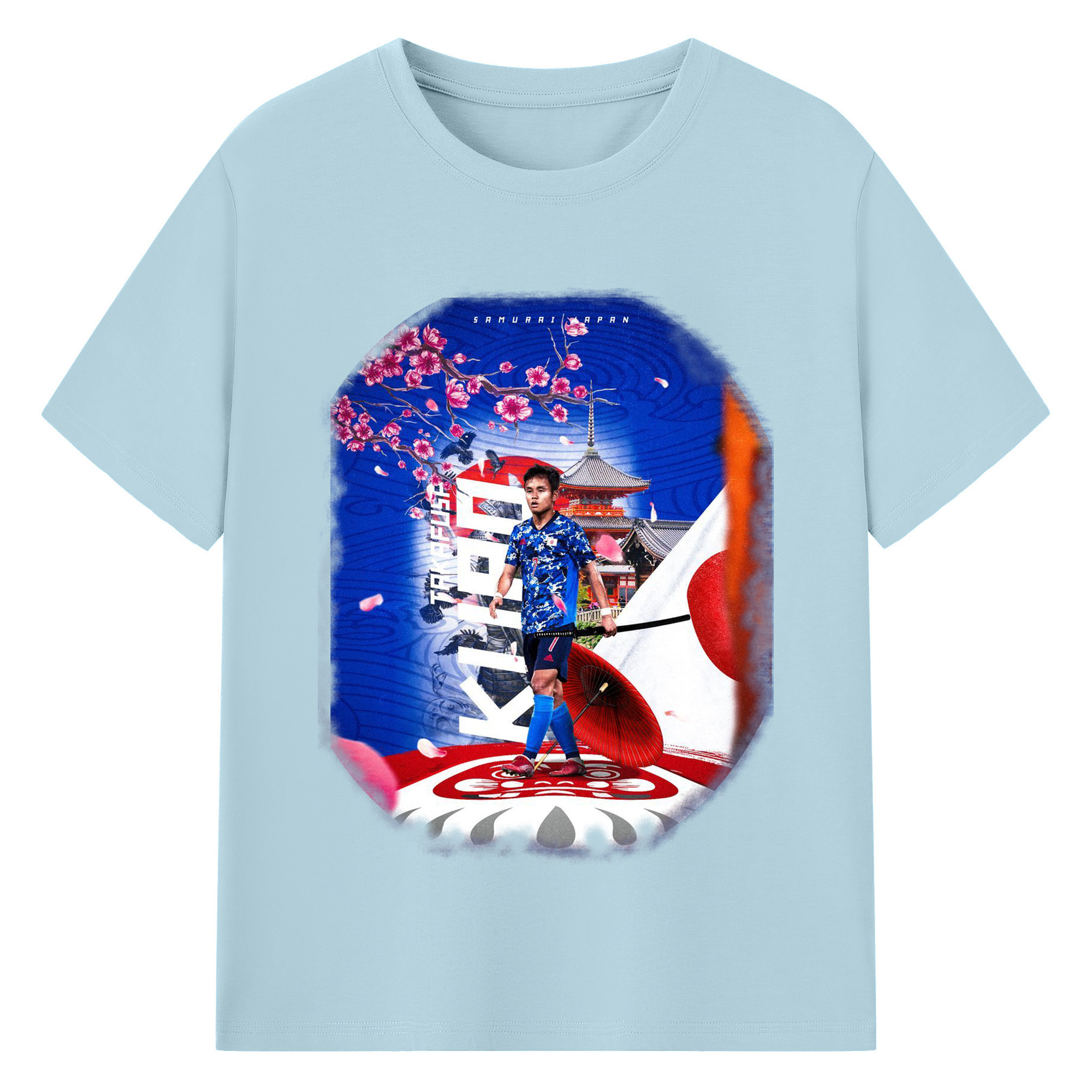 サムライ・アタッカー × 欧州の舞台 - 綿100% 半袖Tシャツ ・ フロントプリント ・ 快適 通気性 ・ 日常使い 散歩 スポーツ用