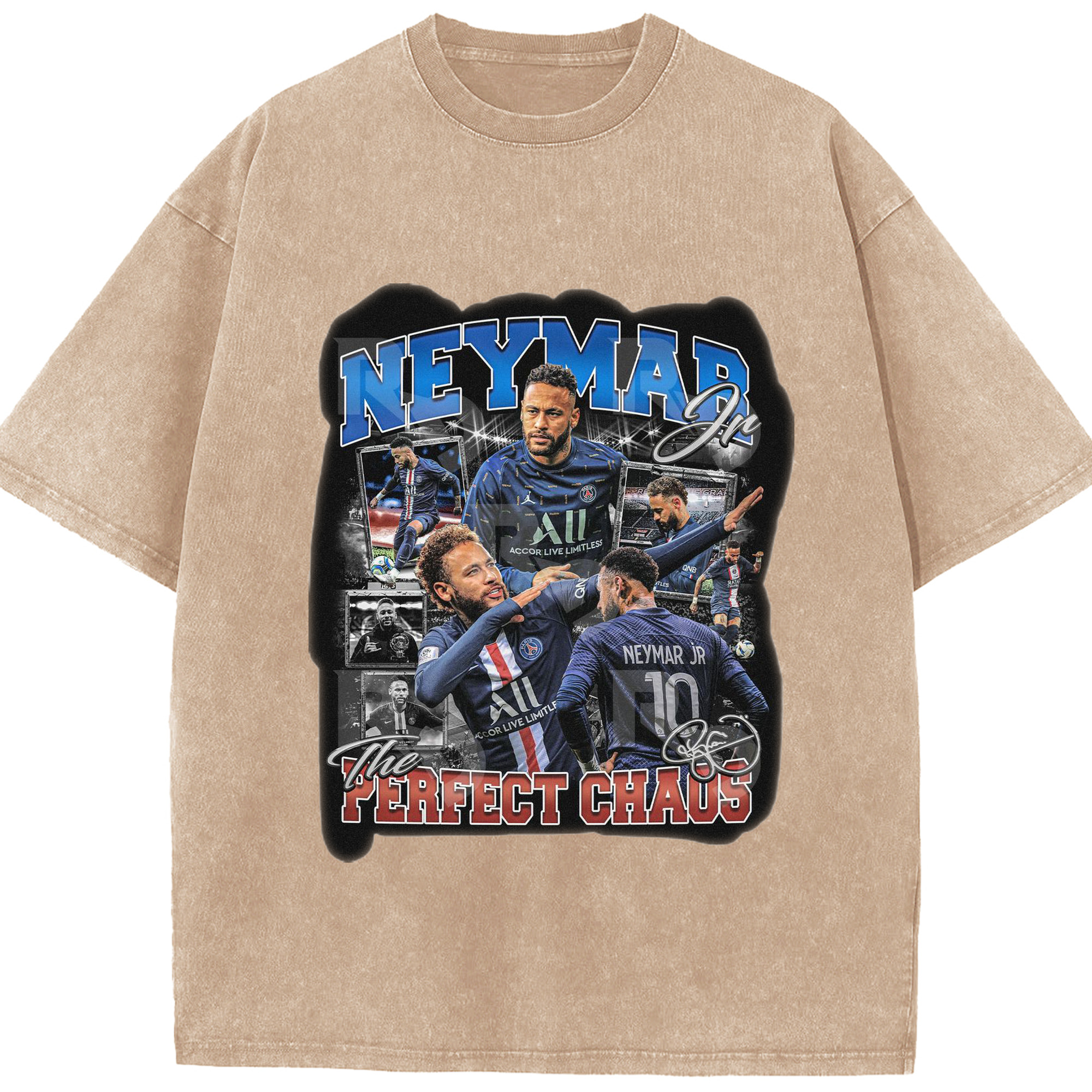 ネイマール サンバ スピリット - 綿100% ヴィンテージ風 半袖Tシャツ ・ フロントプリント ・ 柔らか肌触り ・ 通気性 快適 ・ スポーツ カジュアル 外出用