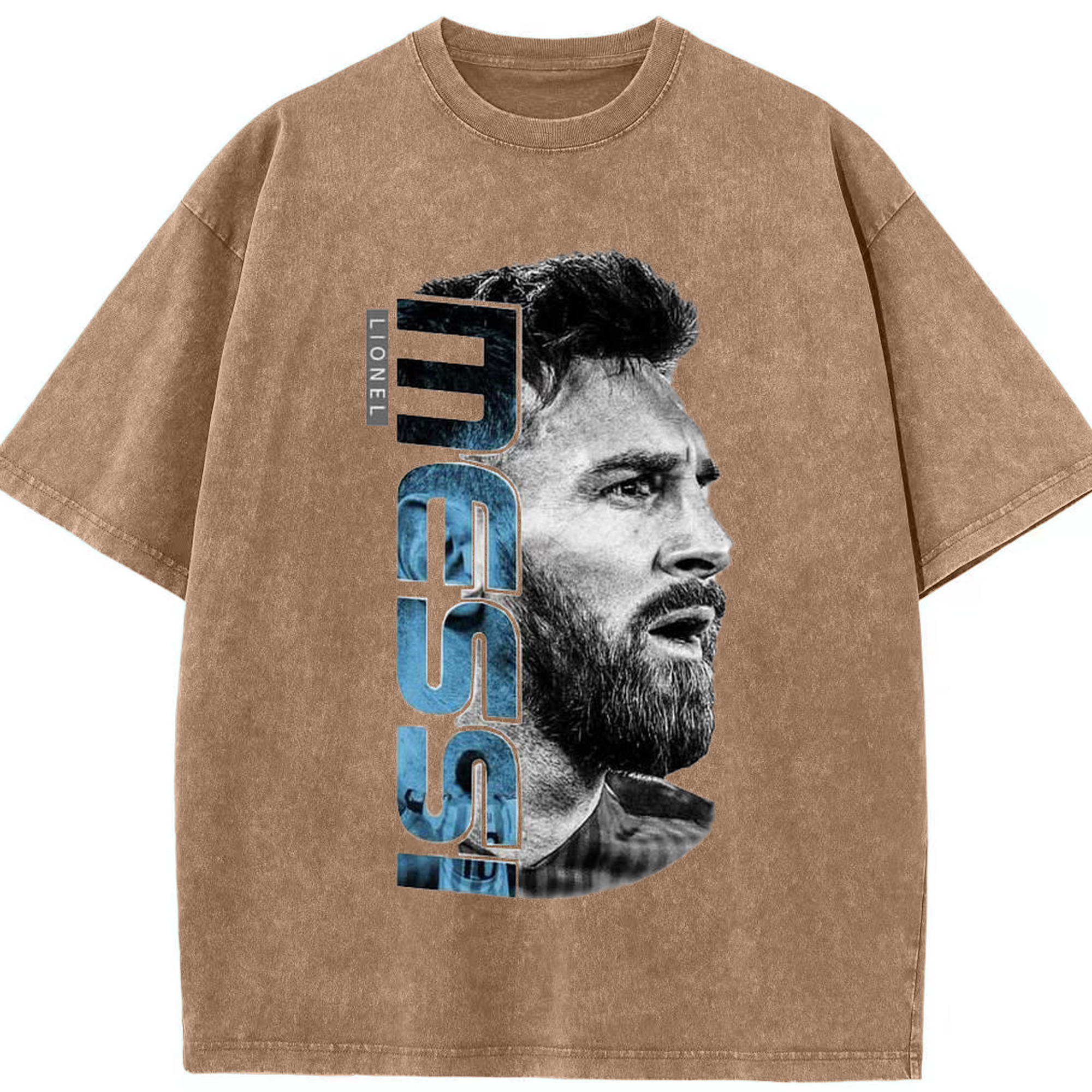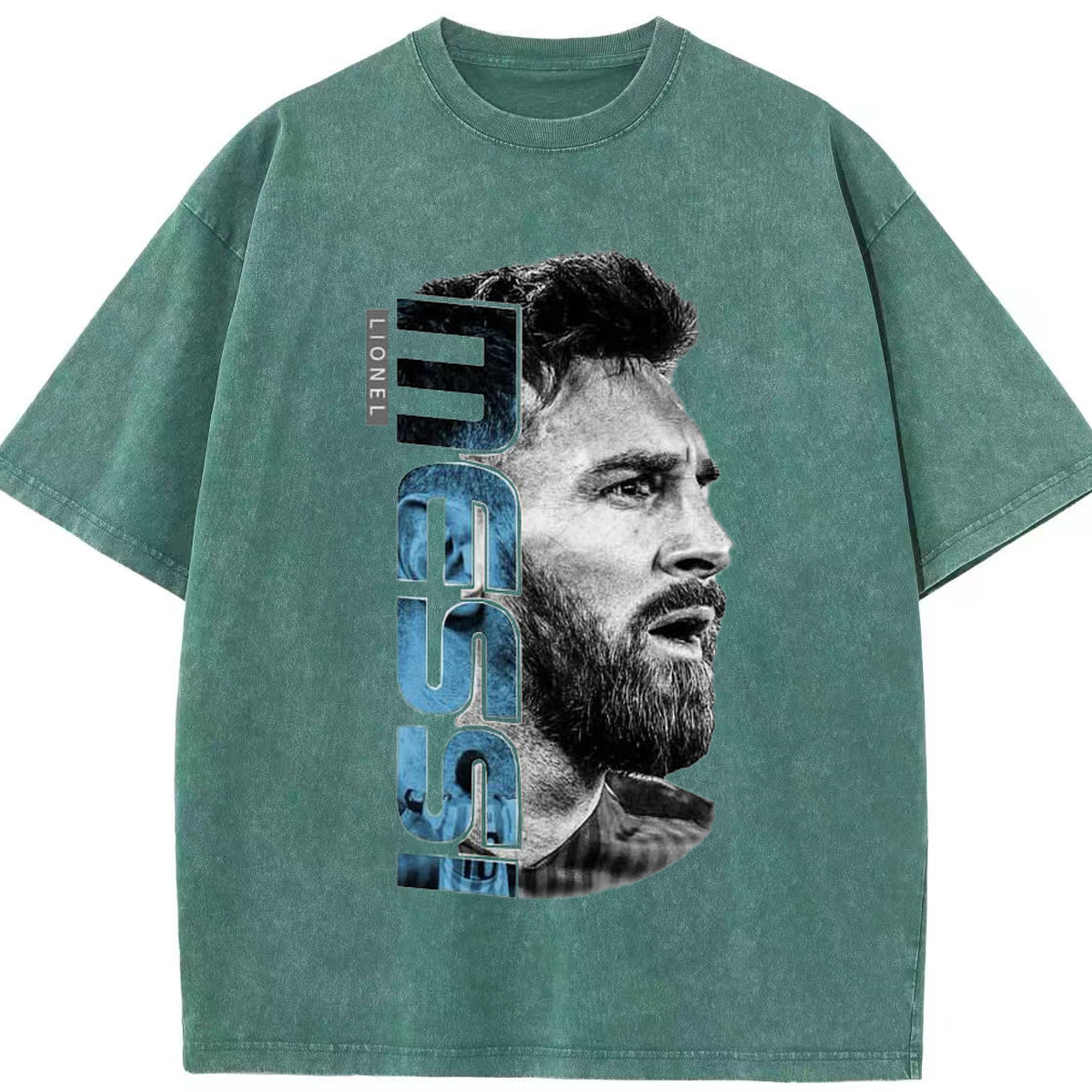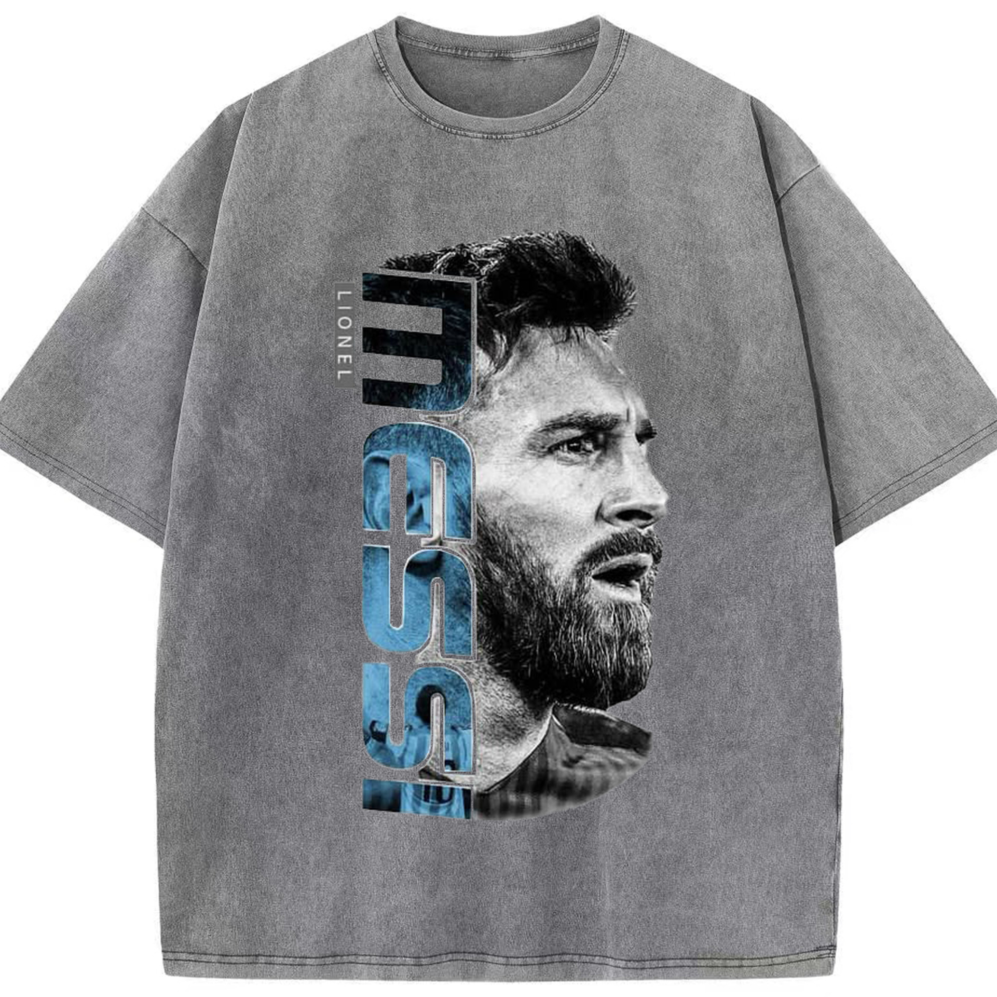 メッシ 全盛期 栄光の軌跡 - 綿100% ヴィンテージ風 半袖Tシャツ ・ フロントプリント ・ 柔らか肌触り ・ 通気性 快適 ・ スポーツ カジュアル 外出用