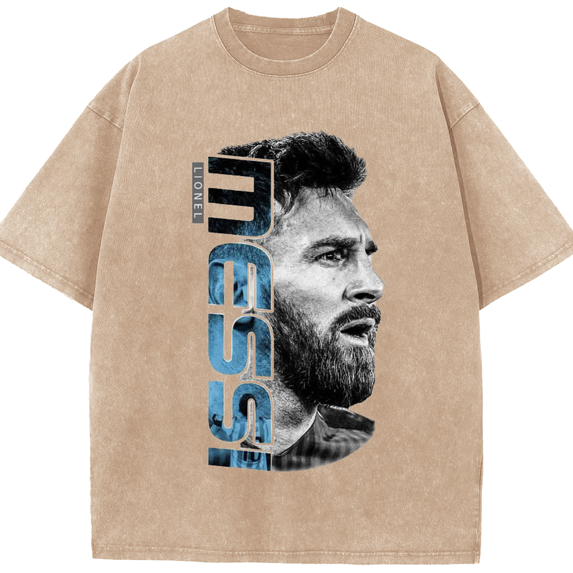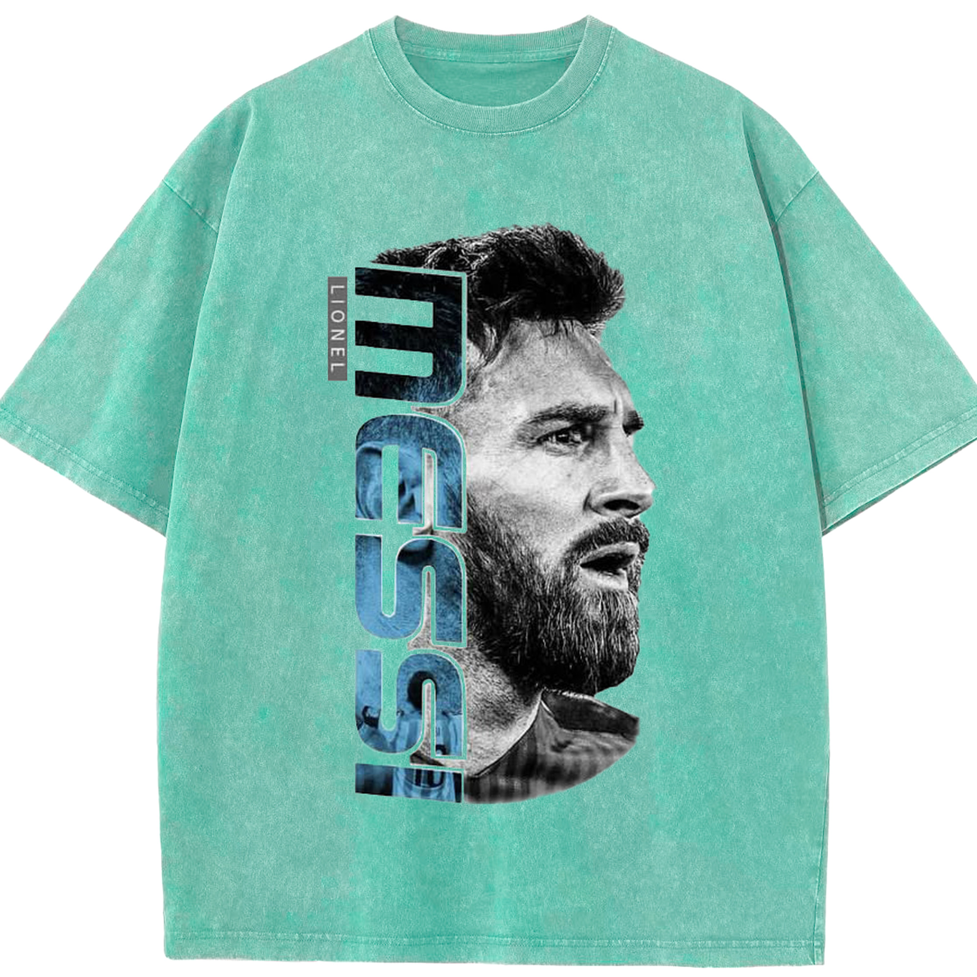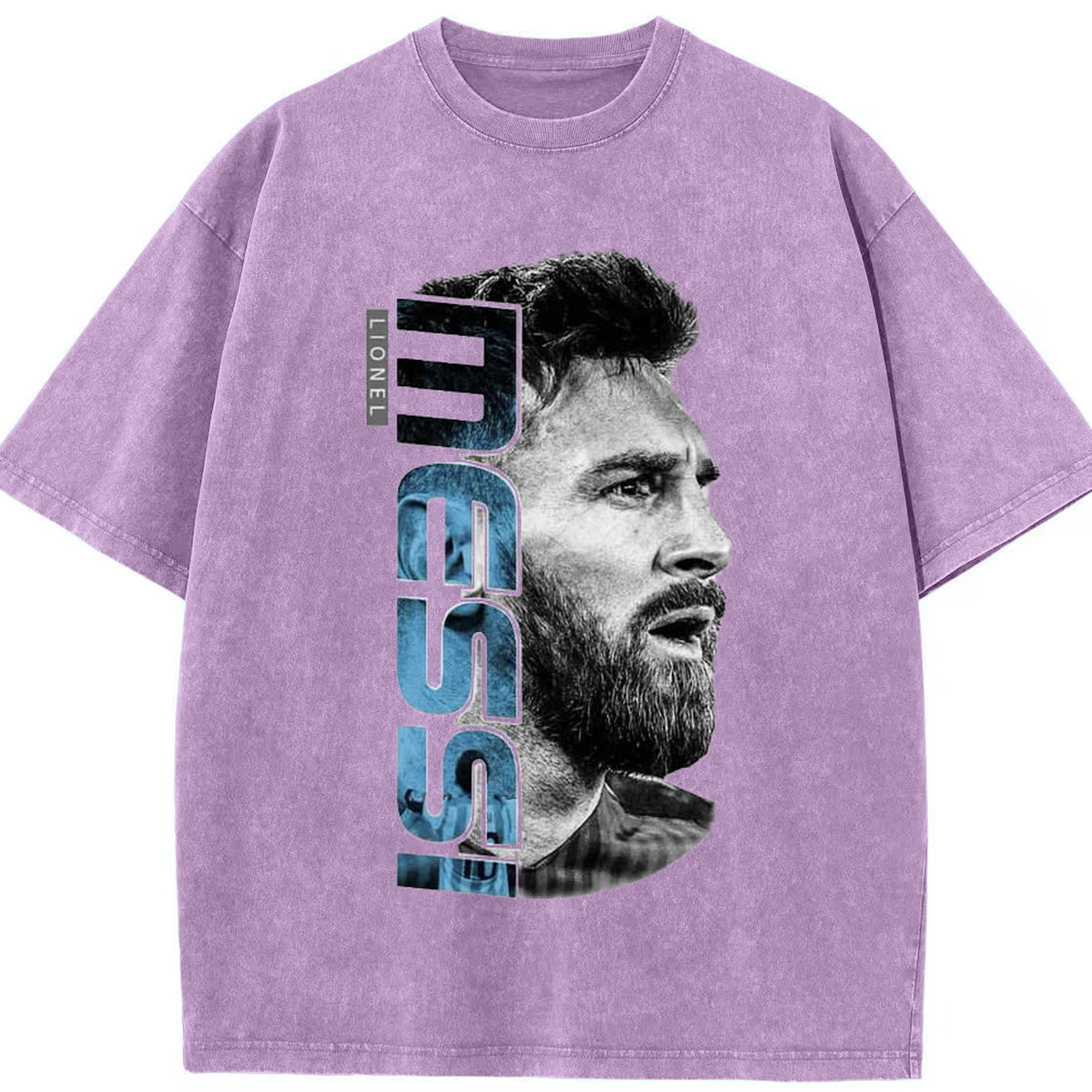 メッシ 全盛期 栄光の軌跡 - 綿100% ヴィンテージ風 半袖Tシャツ ・ フロントプリント ・ 柔らか肌触り ・ 通気性 快適 ・ スポーツ カジュアル 外出用