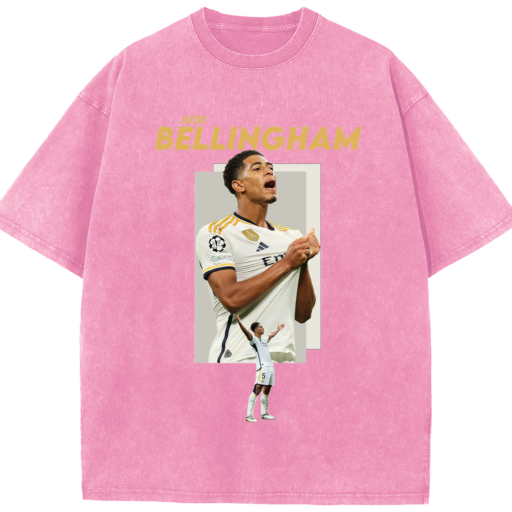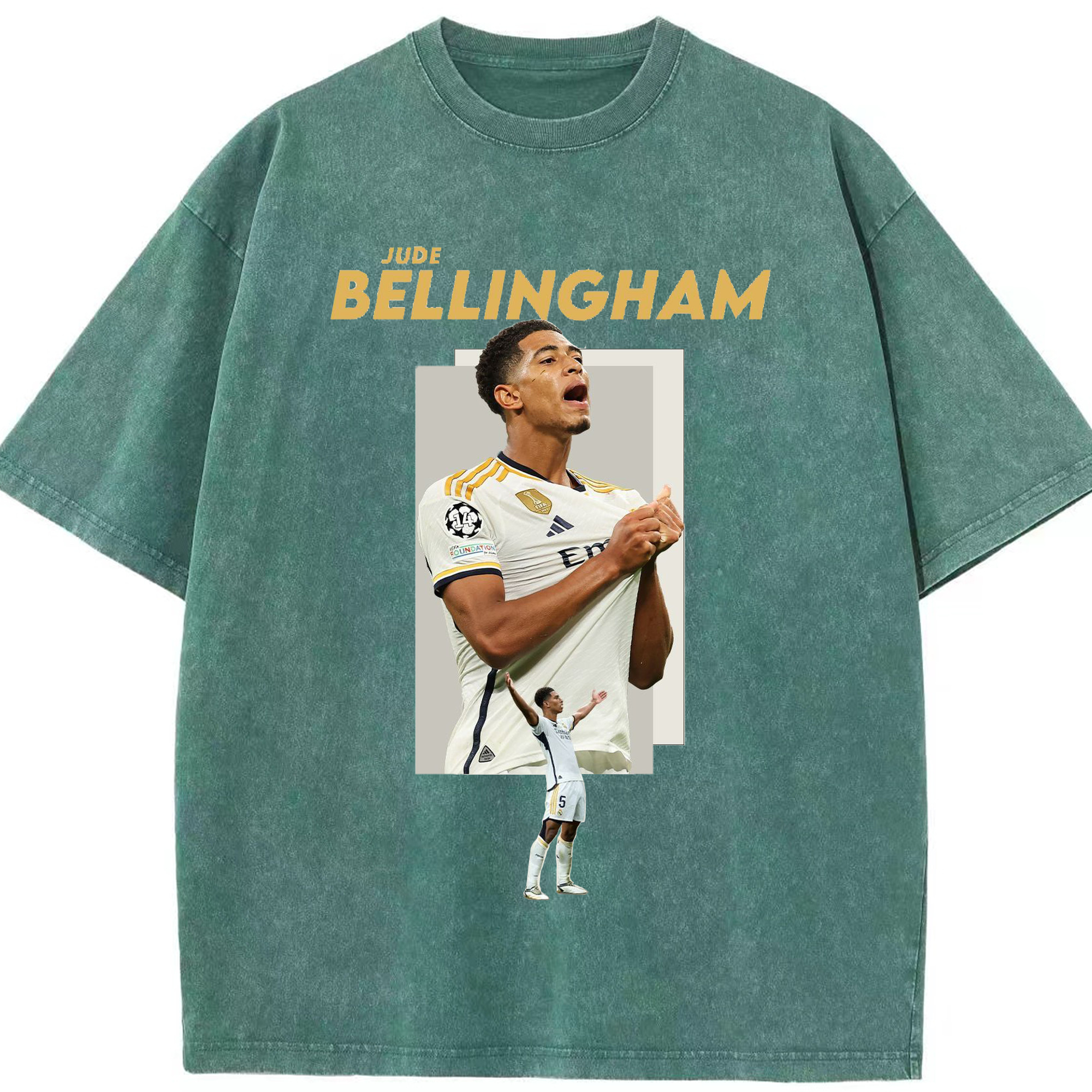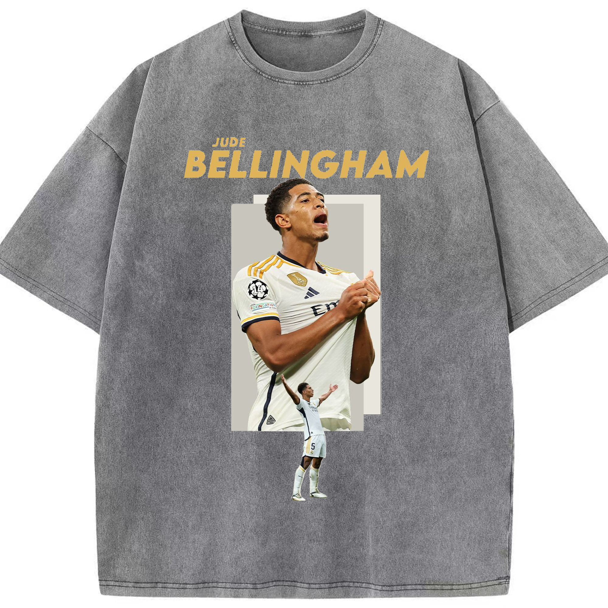 ベリンガム レジェンド記念|ゴールセレブレーション風デザイン - 綿100% ヴィンテージ風 半袖Tシャツ ・ フロントプリント ・ 柔らか肌触り ・ 通気性 快適 ・ スポーツ カジュアル 外出用