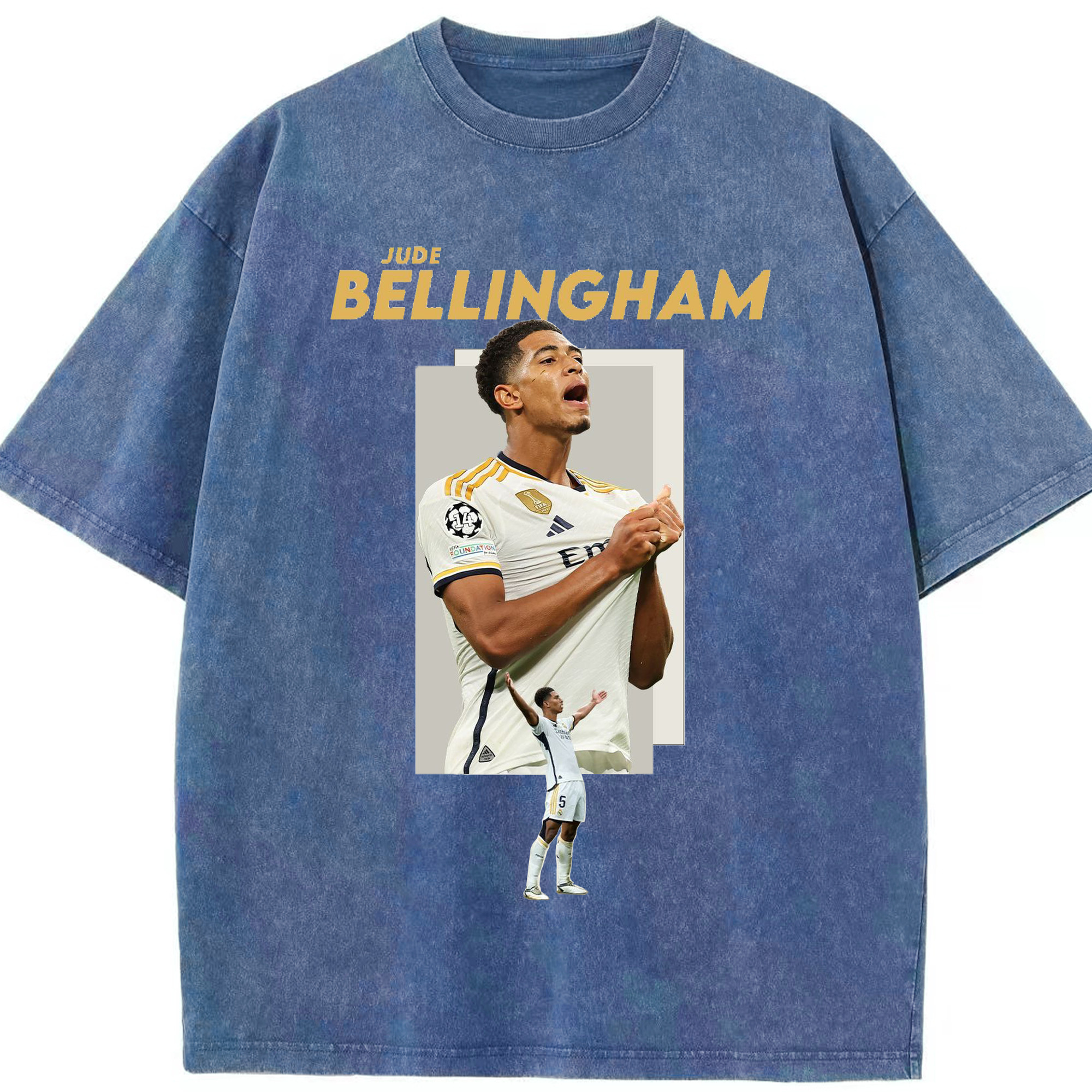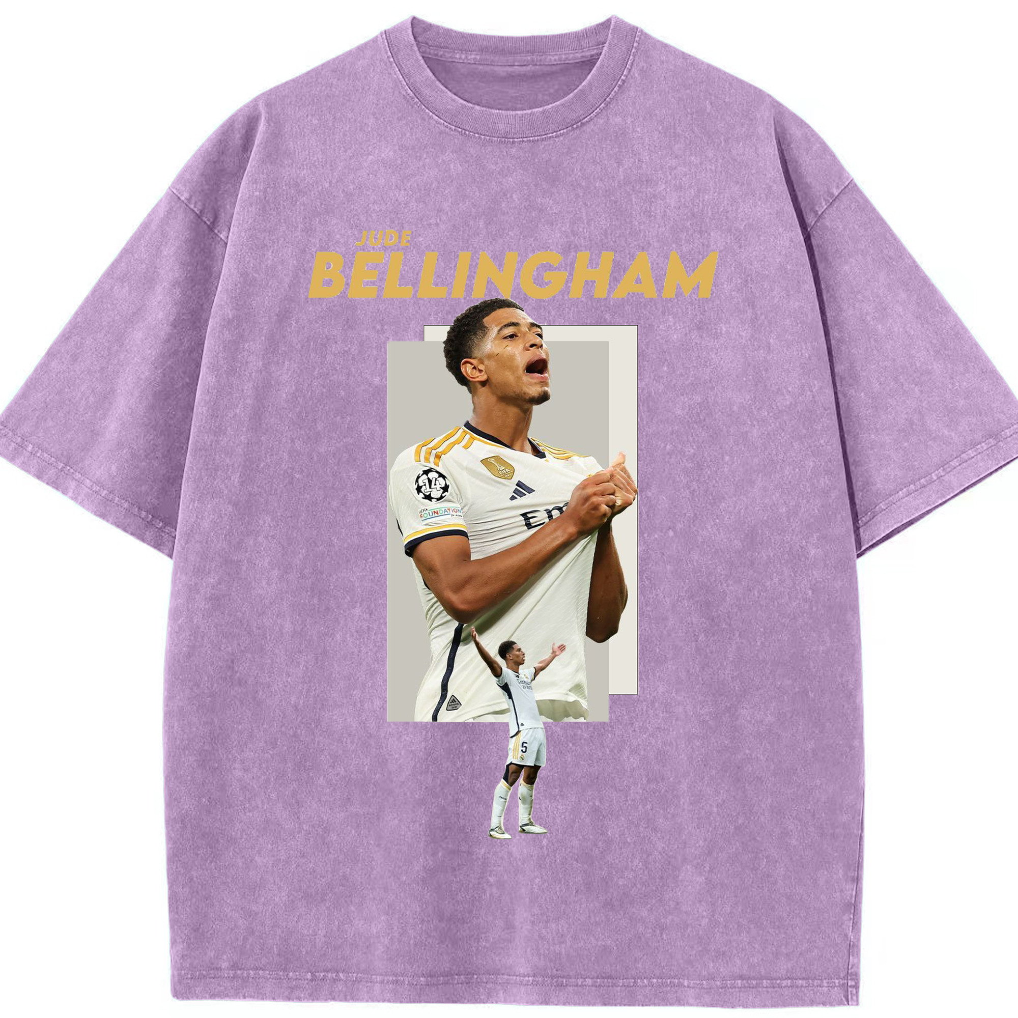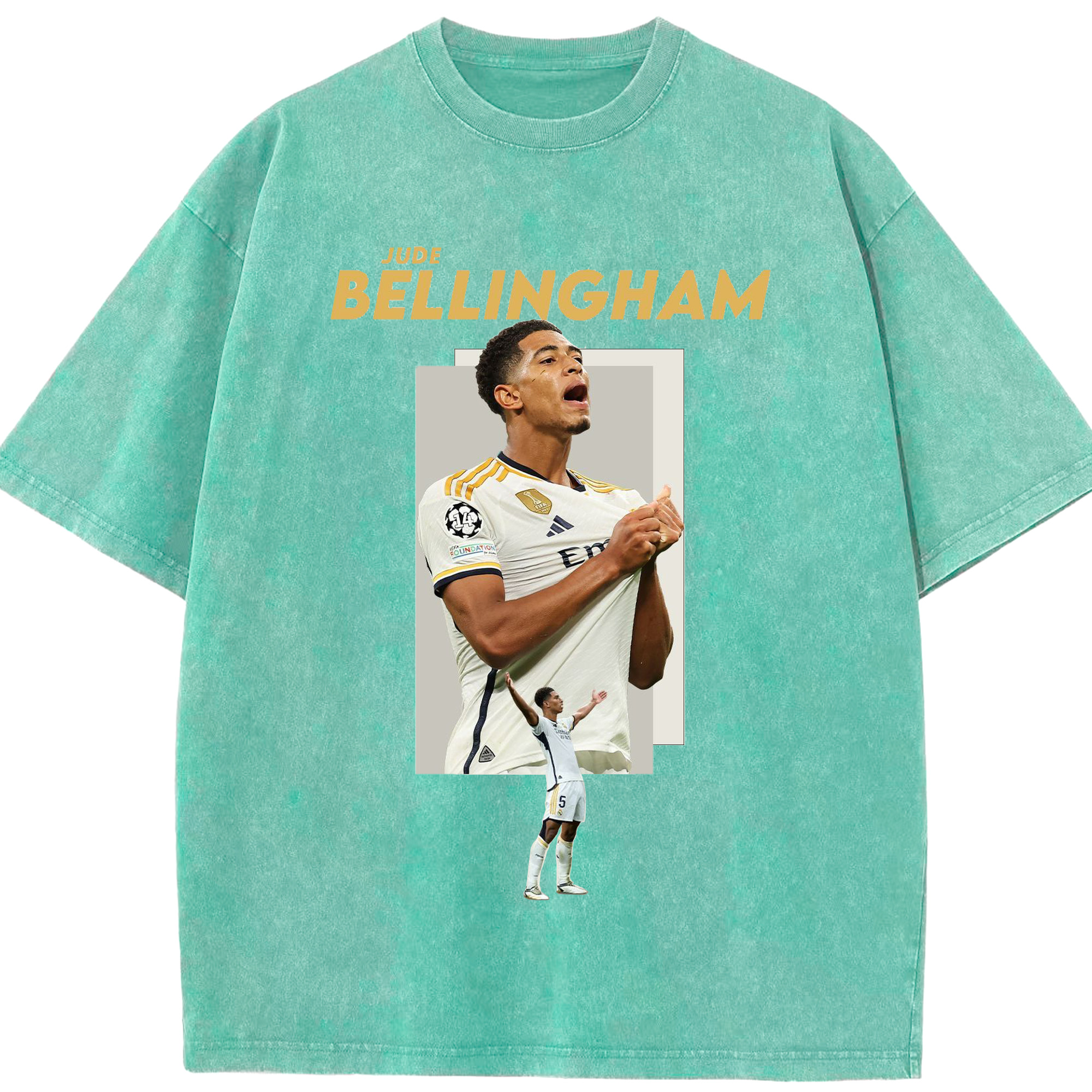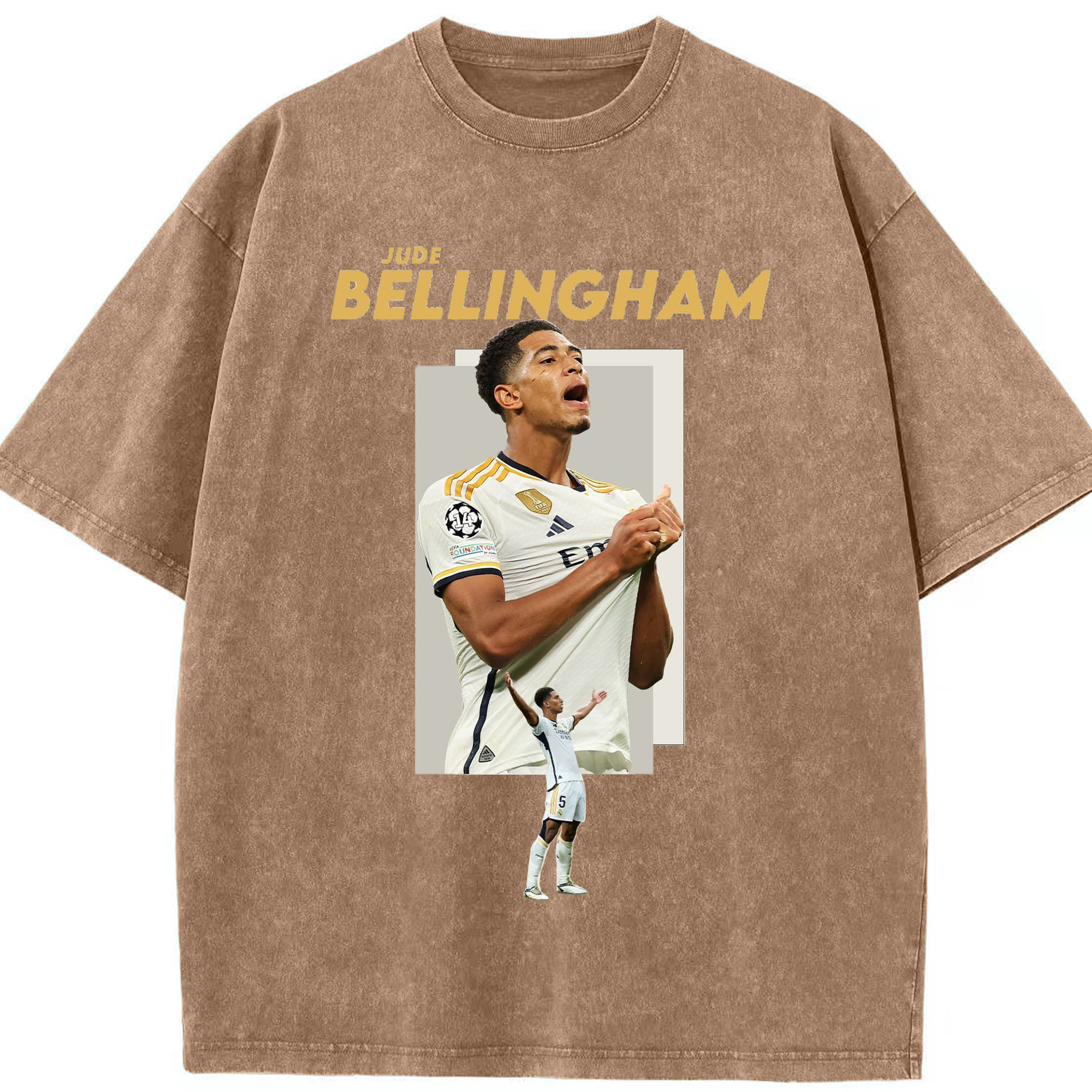 ベリンガム レジェンド記念|ゴールセレブレーション風デザイン - 綿100% ヴィンテージ風 半袖Tシャツ ・ フロントプリント ・ 柔らか肌触り ・ 通気性 快適 ・ スポーツ カジュアル 外出用