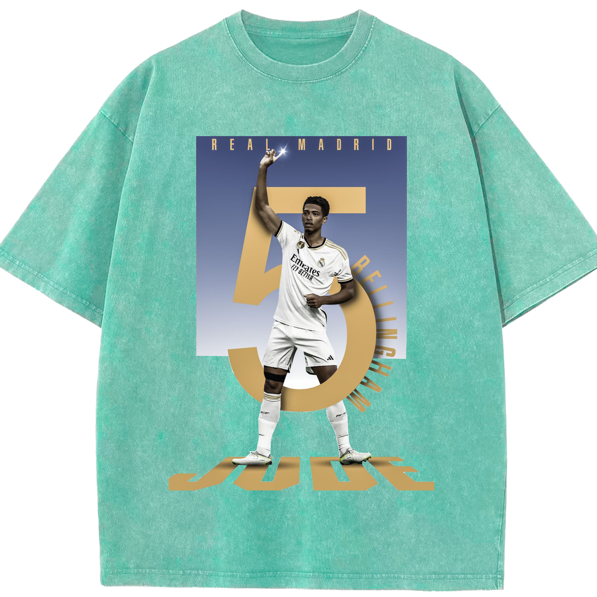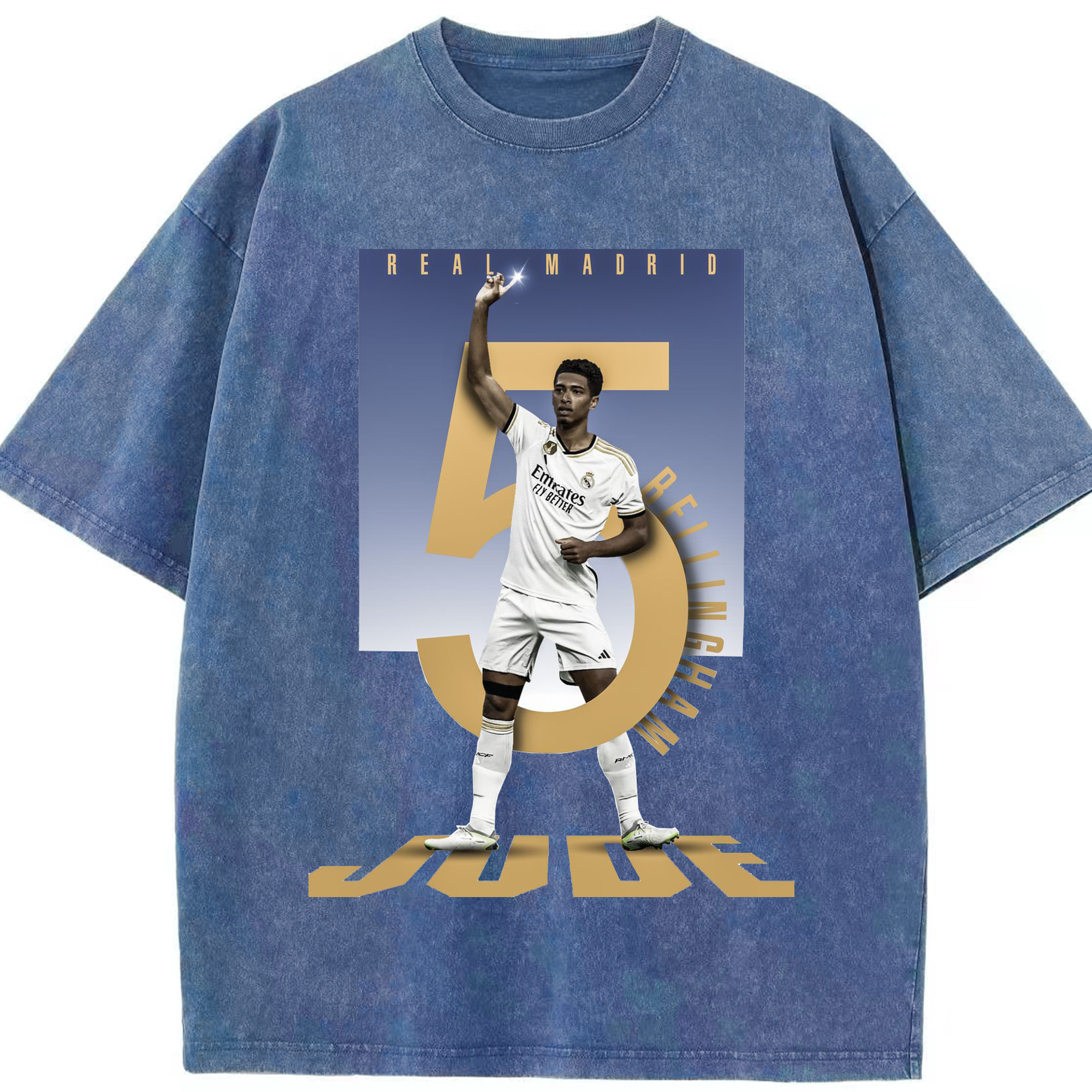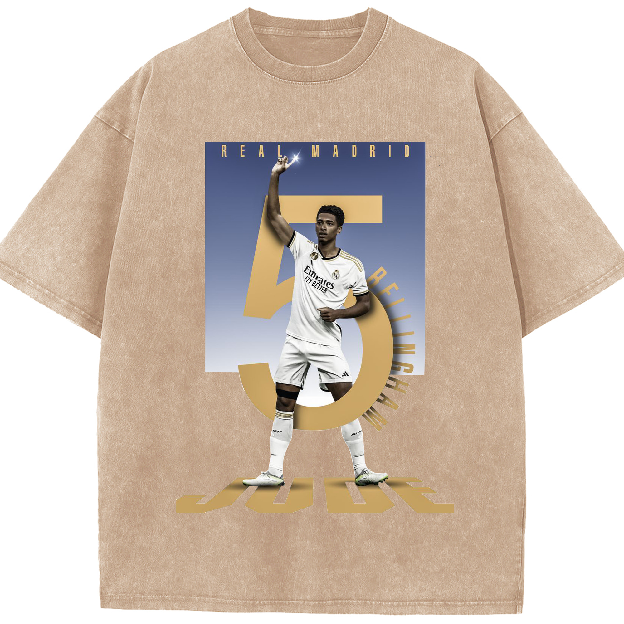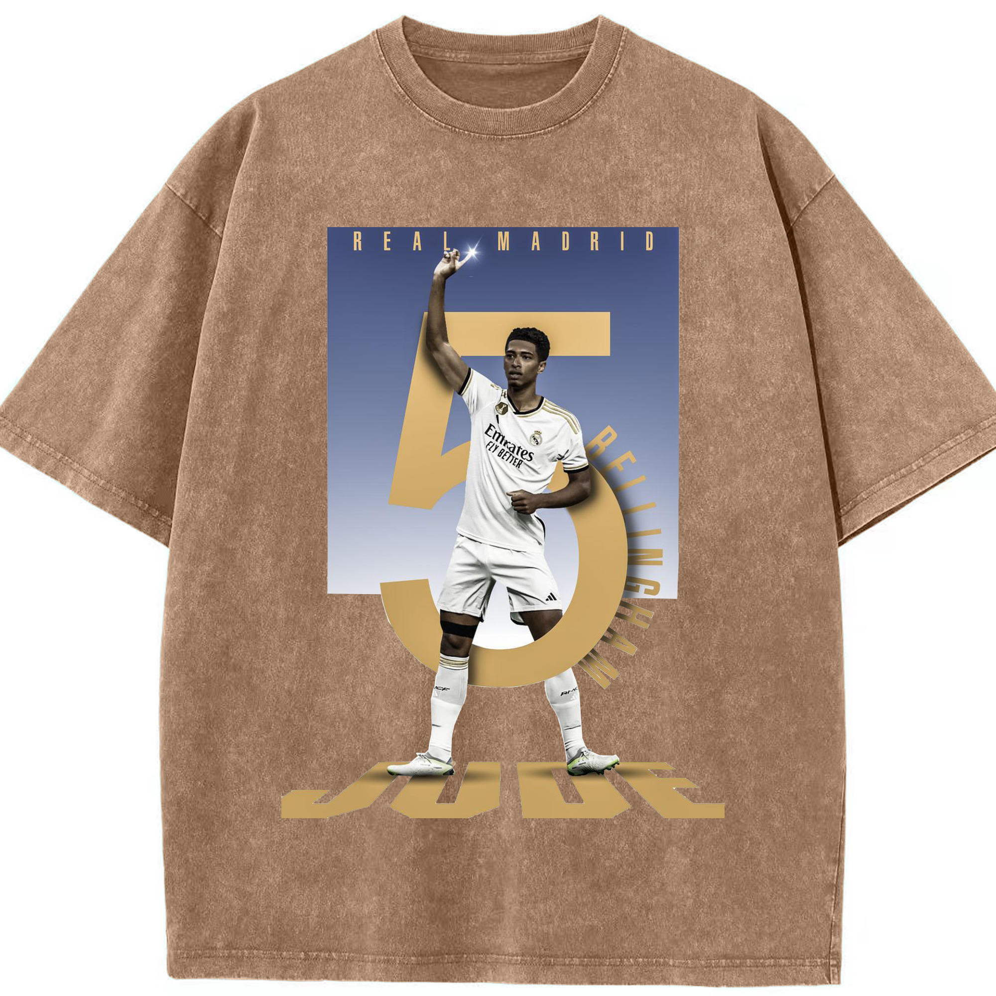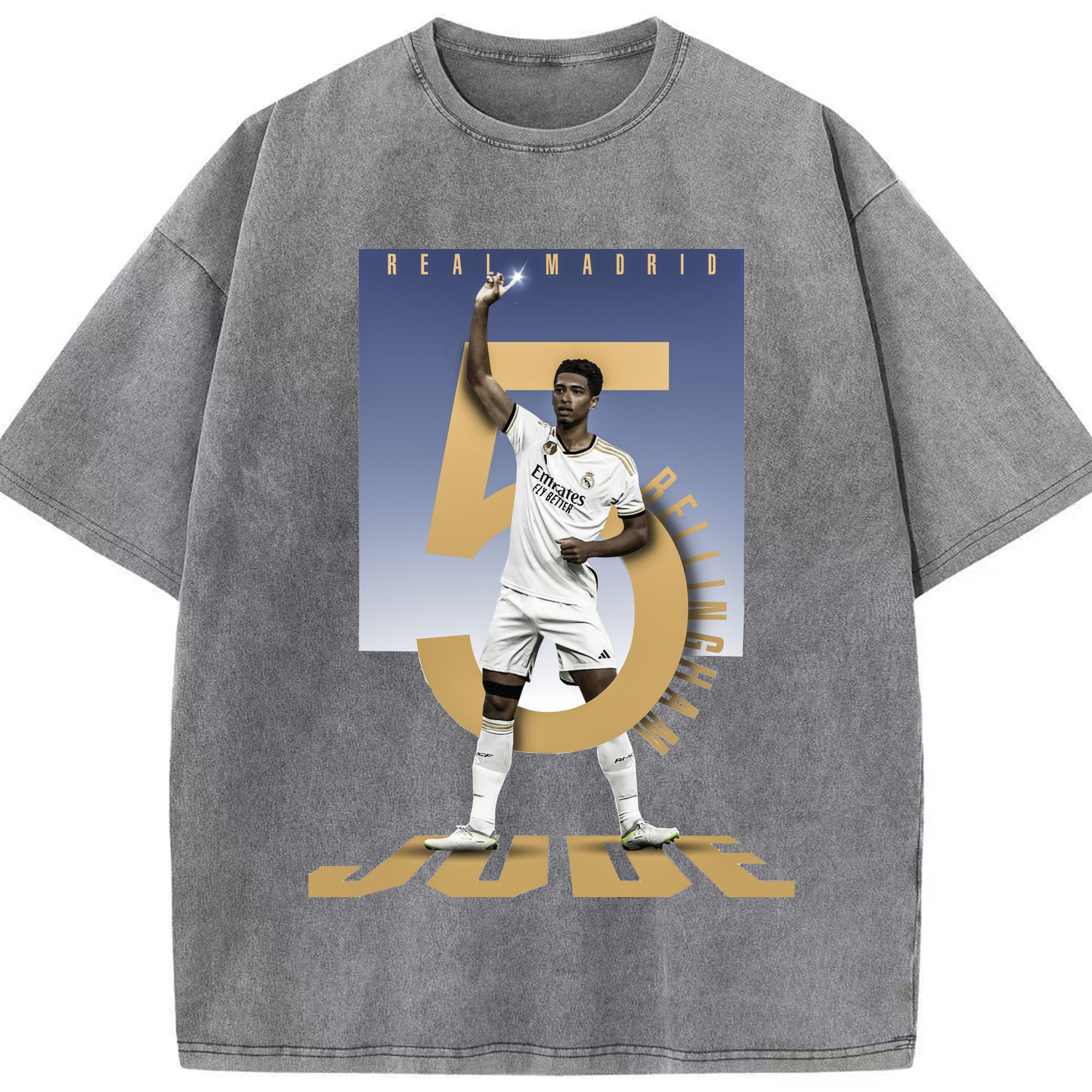 ベリンガム レジェンド記念|ゴールセレブレーション風デザイン - 綿100% ヴィンテージ風 半袖Tシャツ ・ フロントプリント ・ 柔らか肌触り ・ 通気性 快適 ・ スポーツ カジュアル 外出用