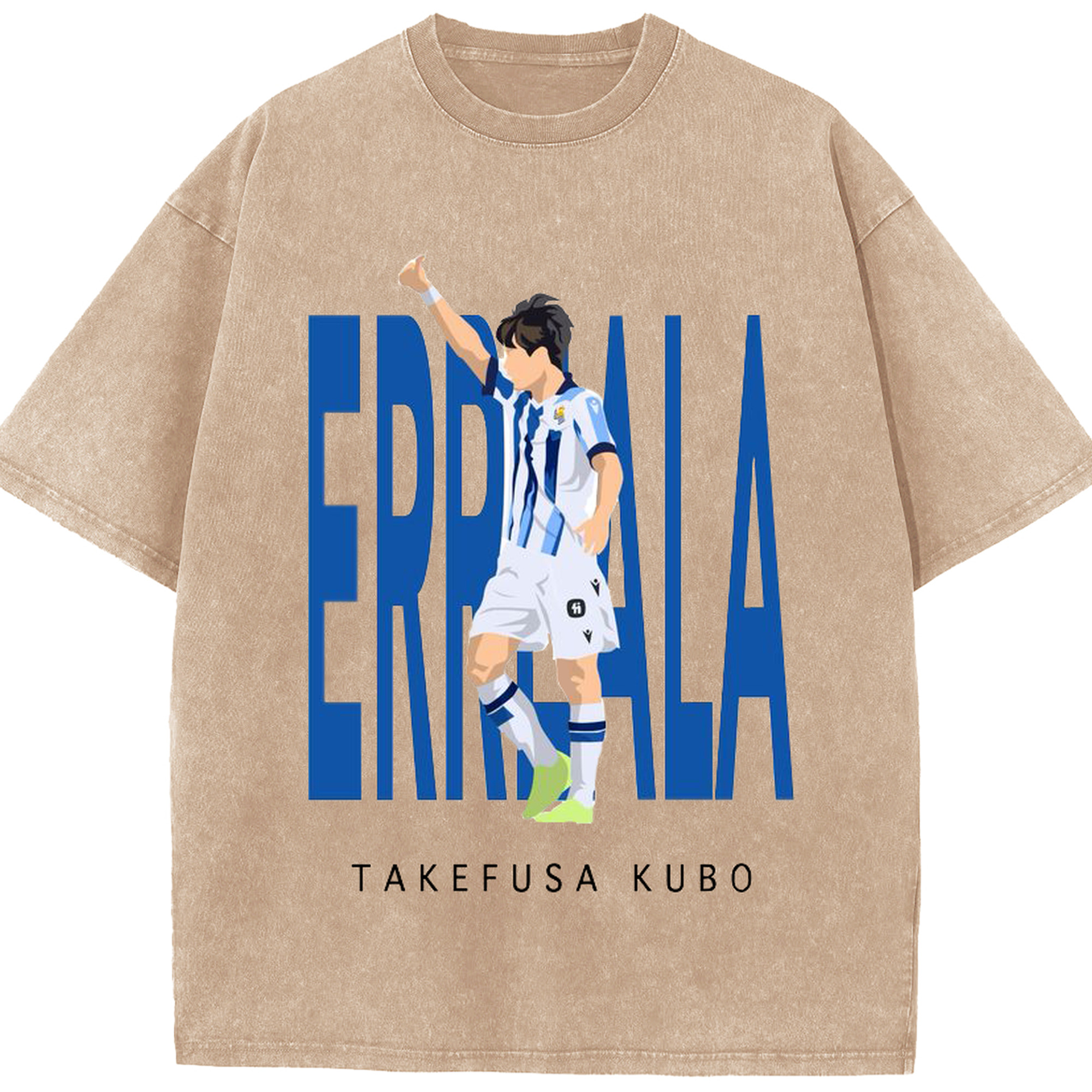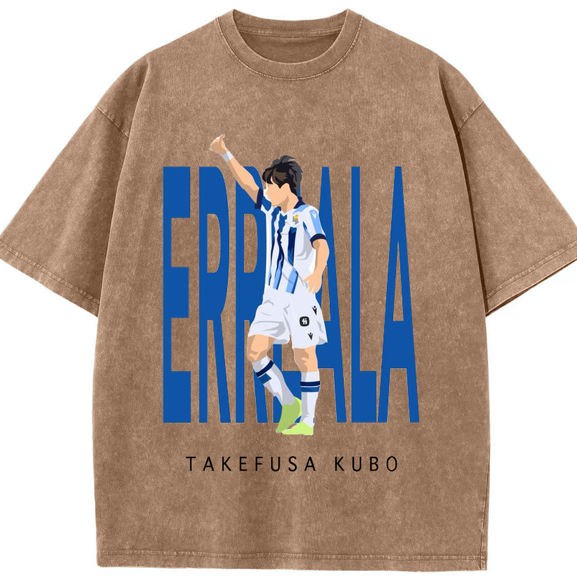 ソシエダの切り札 日本代表MF 世界への挑戦 - 綿100% ヴィンテージ風 半袖Tシャツ ・ フロントプリント ・ 柔らか肌触り ・ 通気性 快適 ・ スポーツ カジュアル 外出用