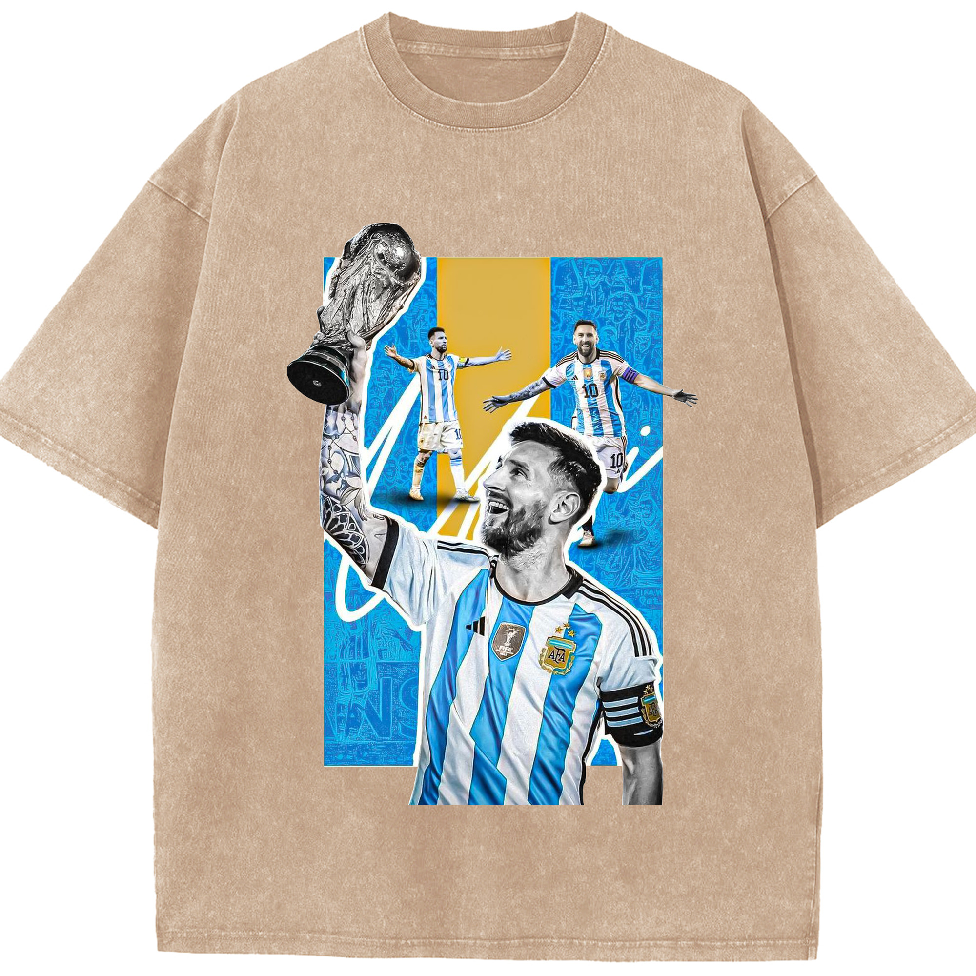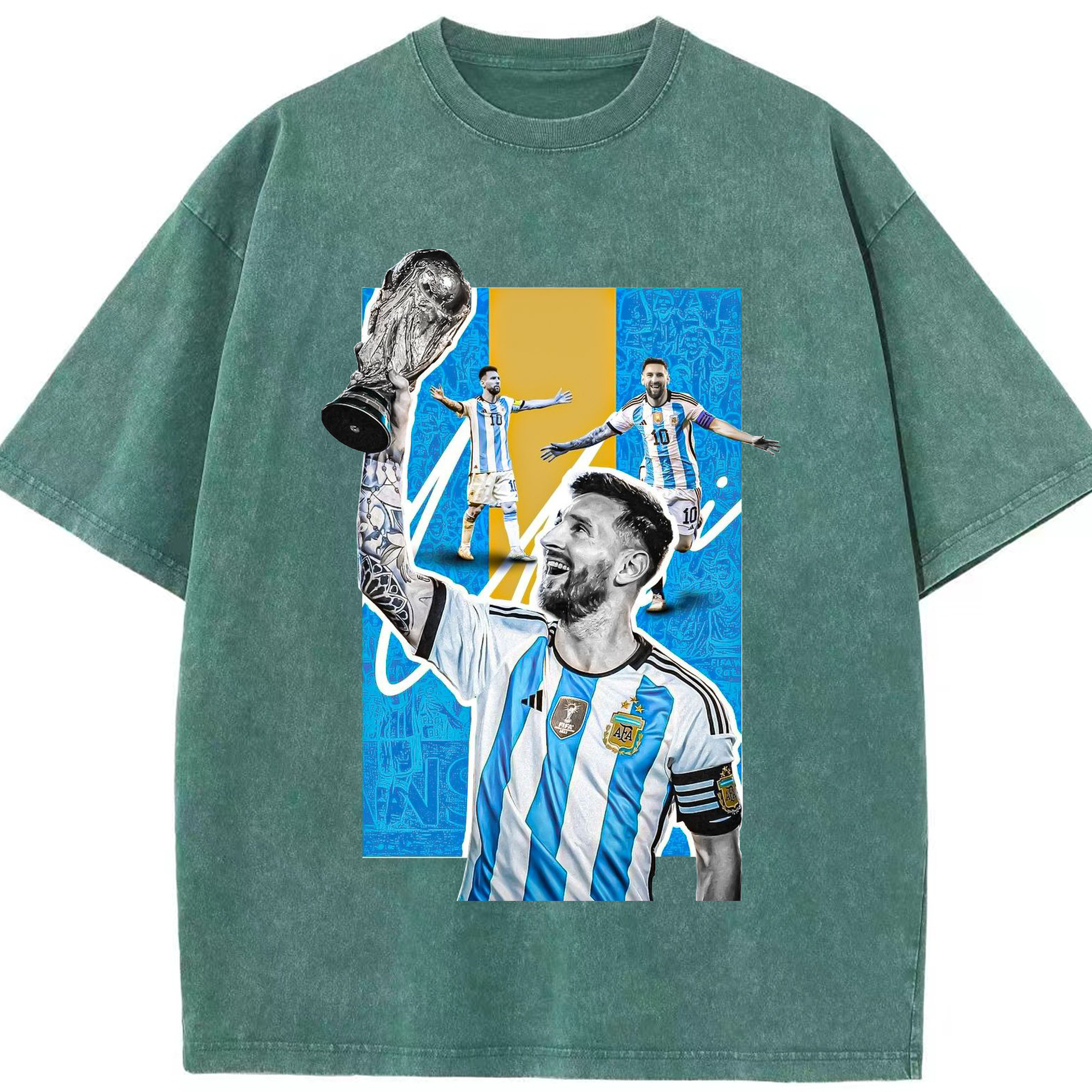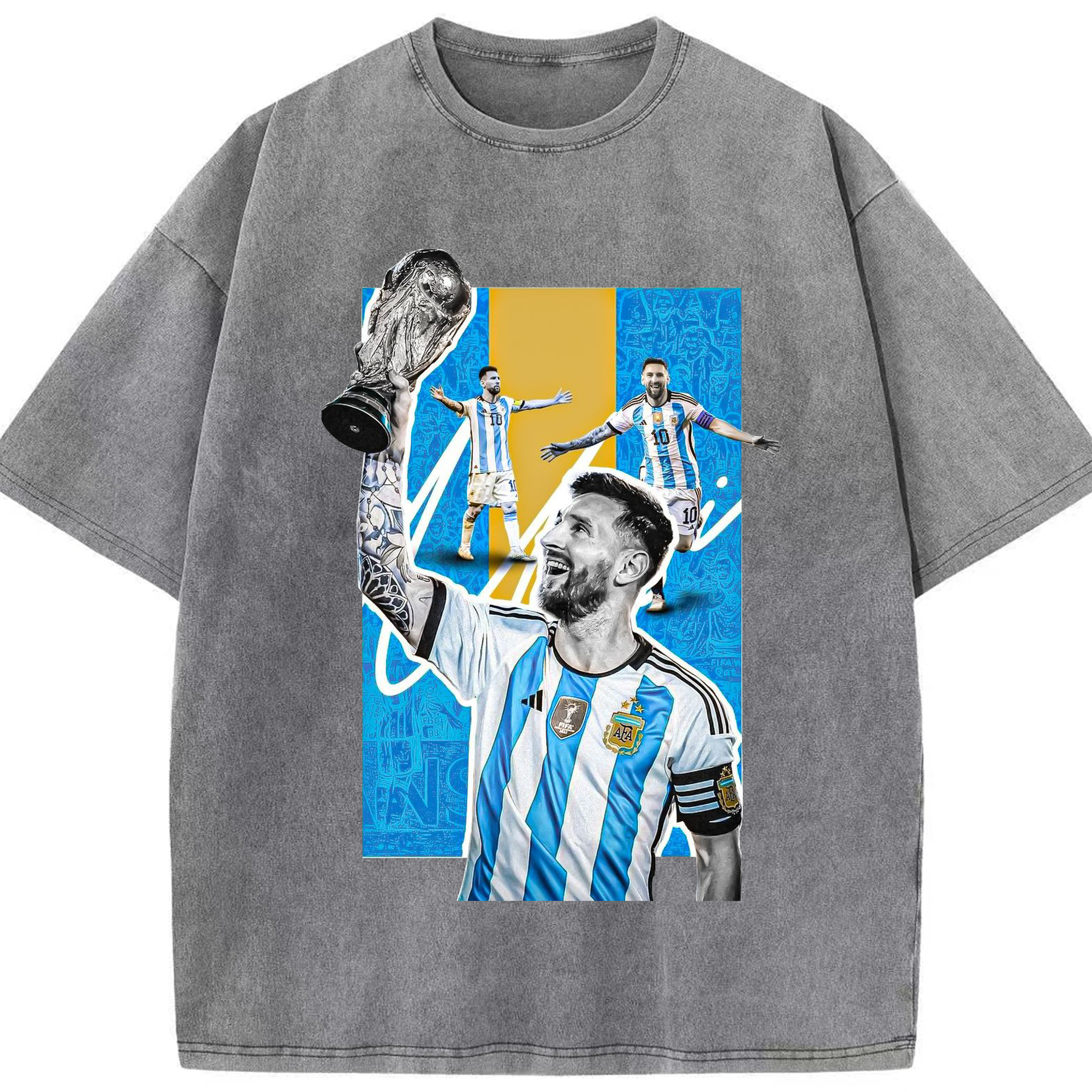 ノウ・カンプの魔法使い – メッシ記念 - 綿100% ヴィンテージ風 半袖Tシャツ ・ フロントプリント ・ 柔らか肌触り ・ 通気性 快適 ・ スポーツ カジュアル 外出用