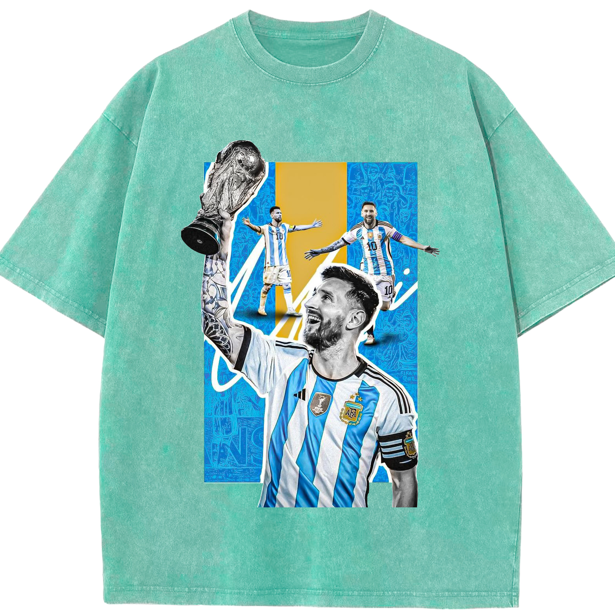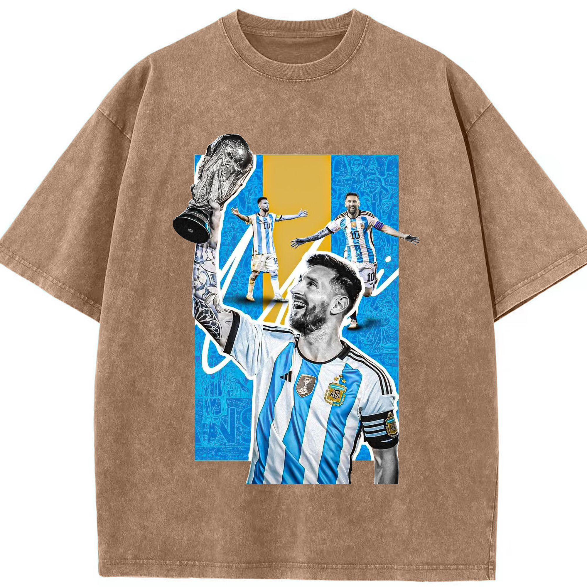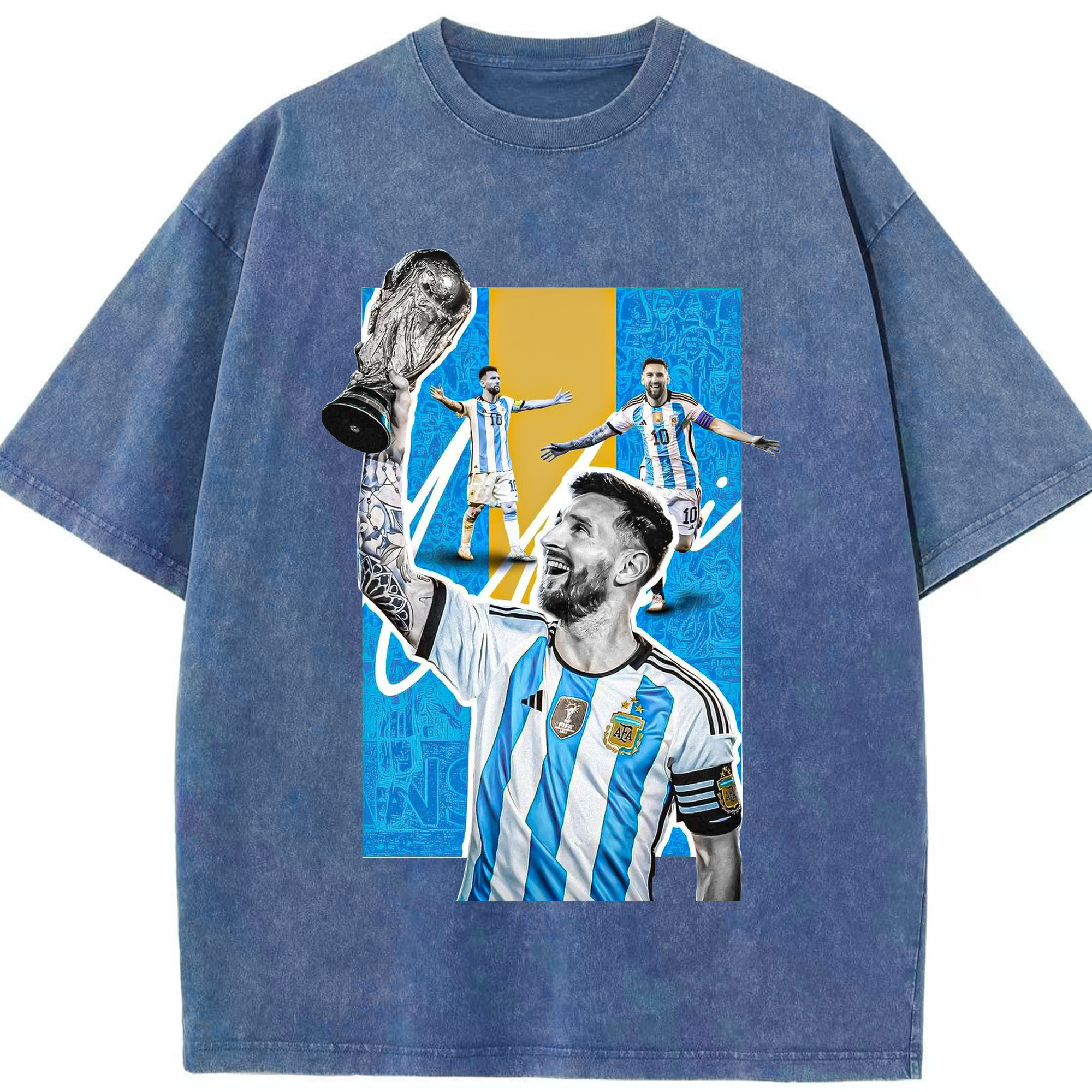ノウ・カンプの魔法使い – メッシ記念 - 綿100% ヴィンテージ風 半袖Tシャツ ・ フロントプリント ・ 柔らか肌触り ・ 通気性 快適 ・ スポーツ カジュアル 外出用
