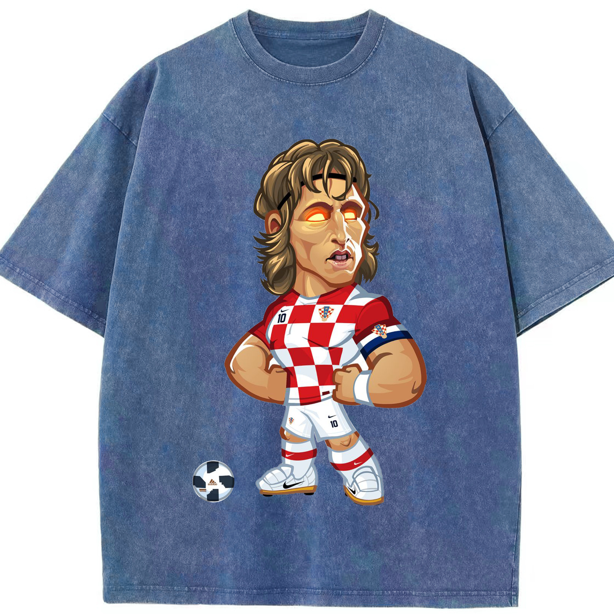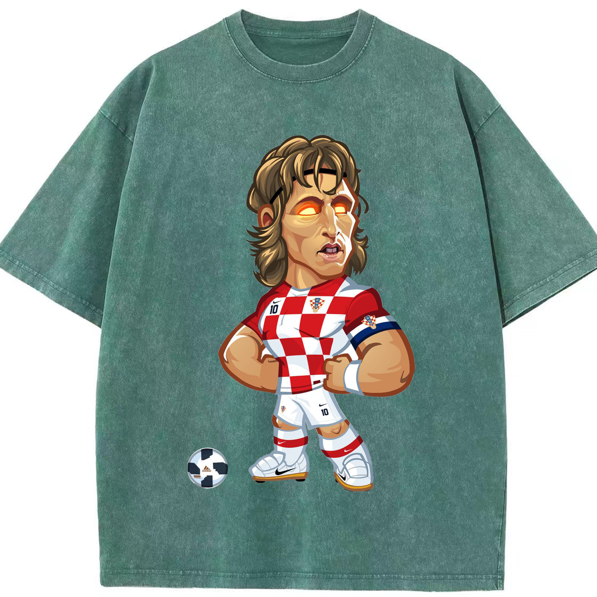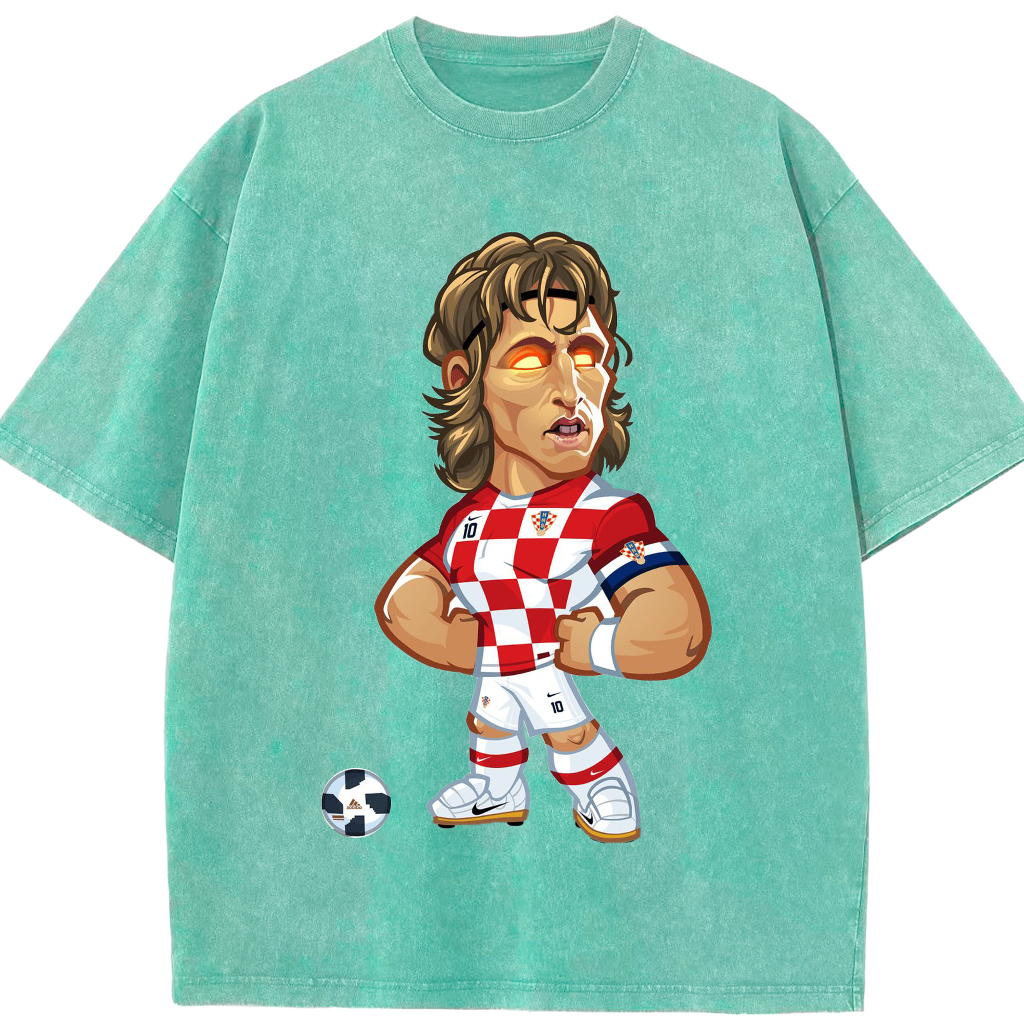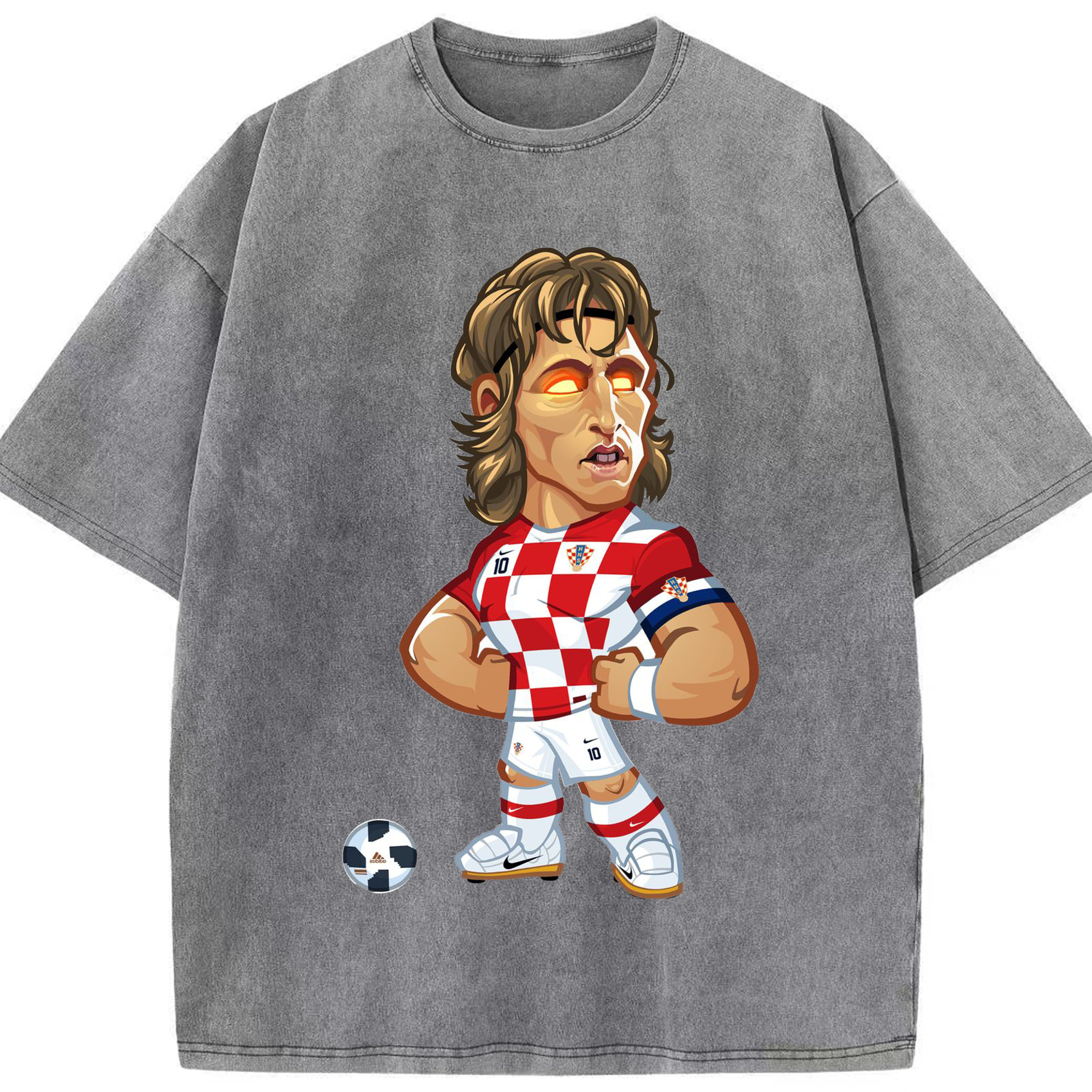 モドリッチファン必見!記念デザイン|バロンドール受賞者 - 綿100% ヴィンテージ風 半袖Tシャツ ・ フロントプリント ・ 柔らか肌触り ・ 通気性 快適 ・ スポーツ カジュアル 外出用