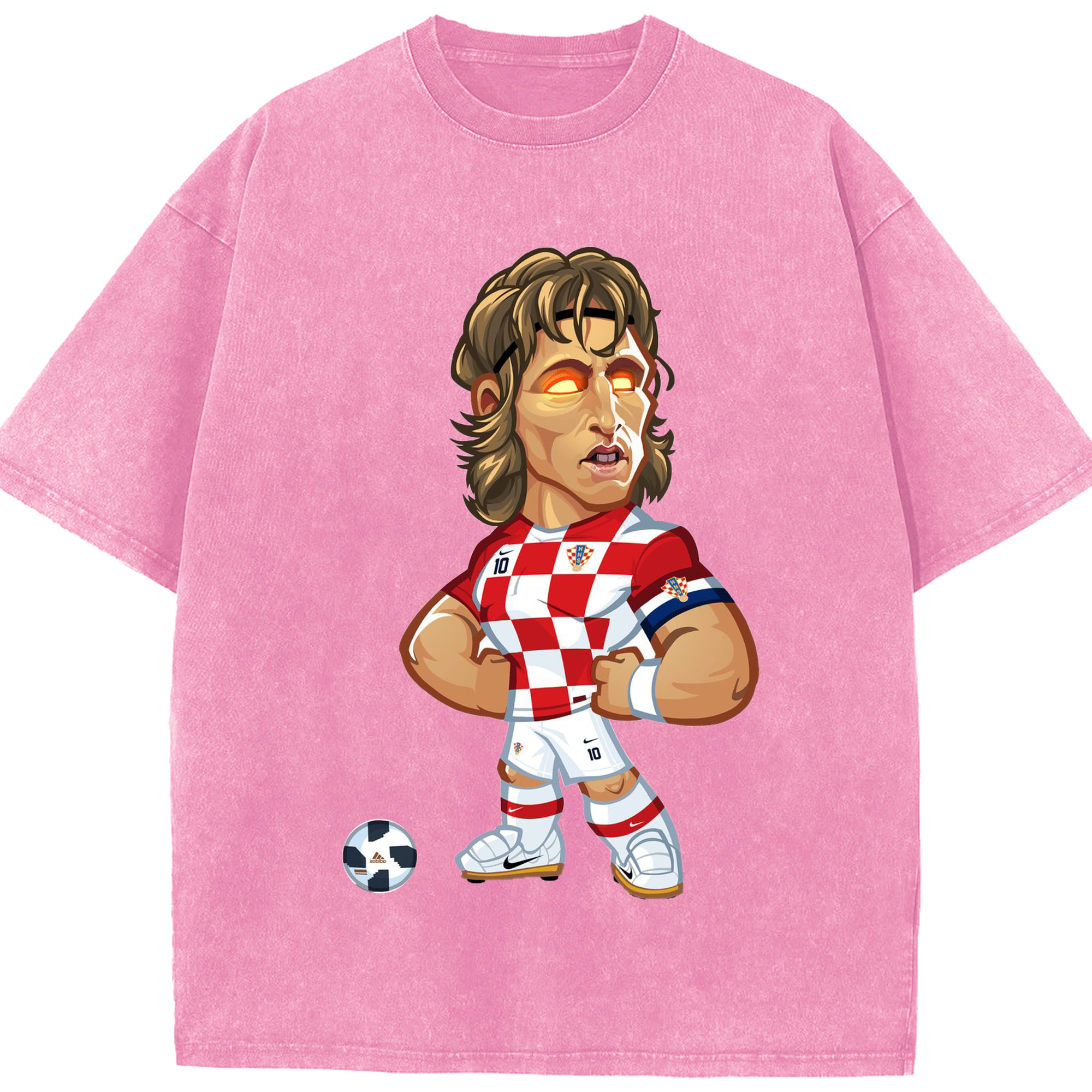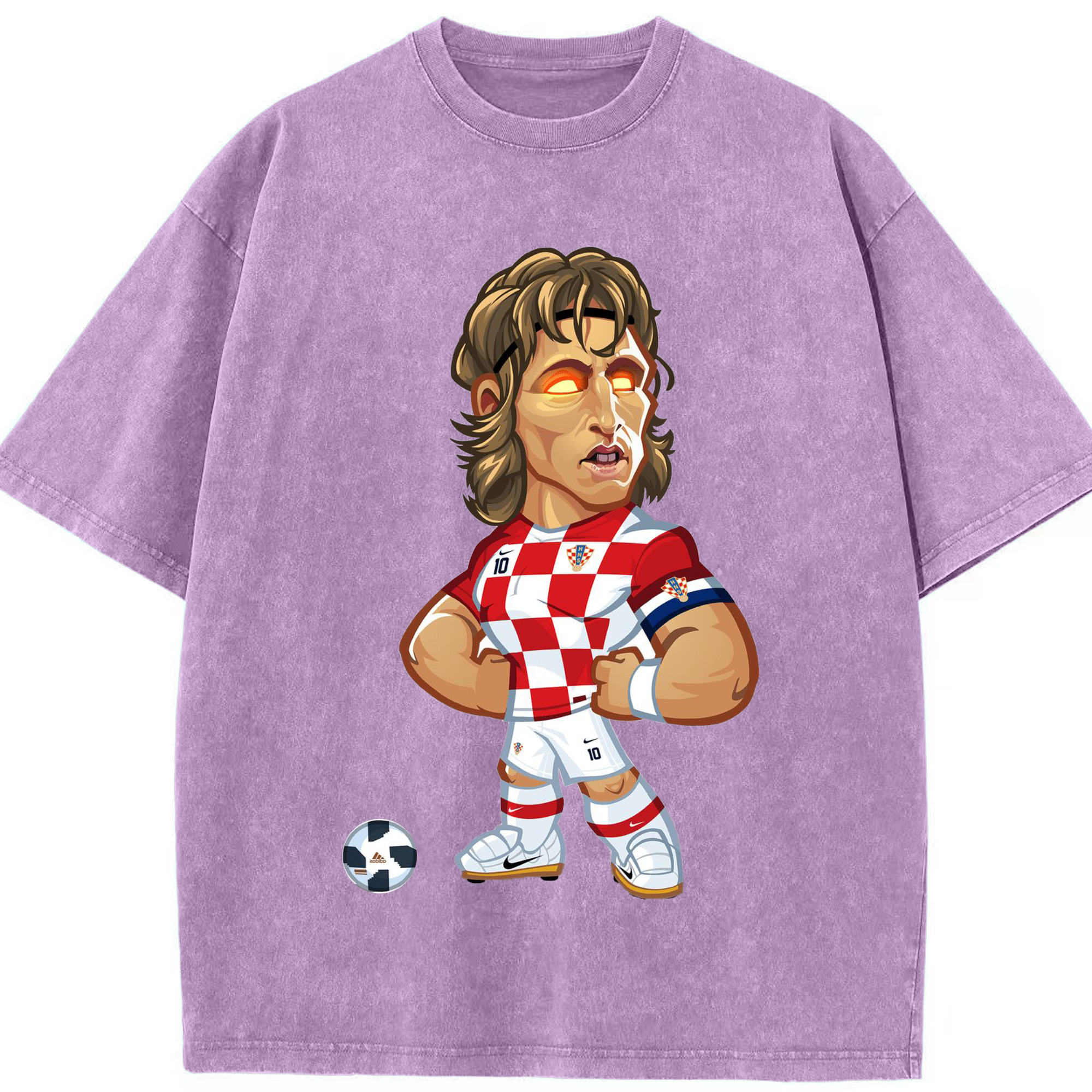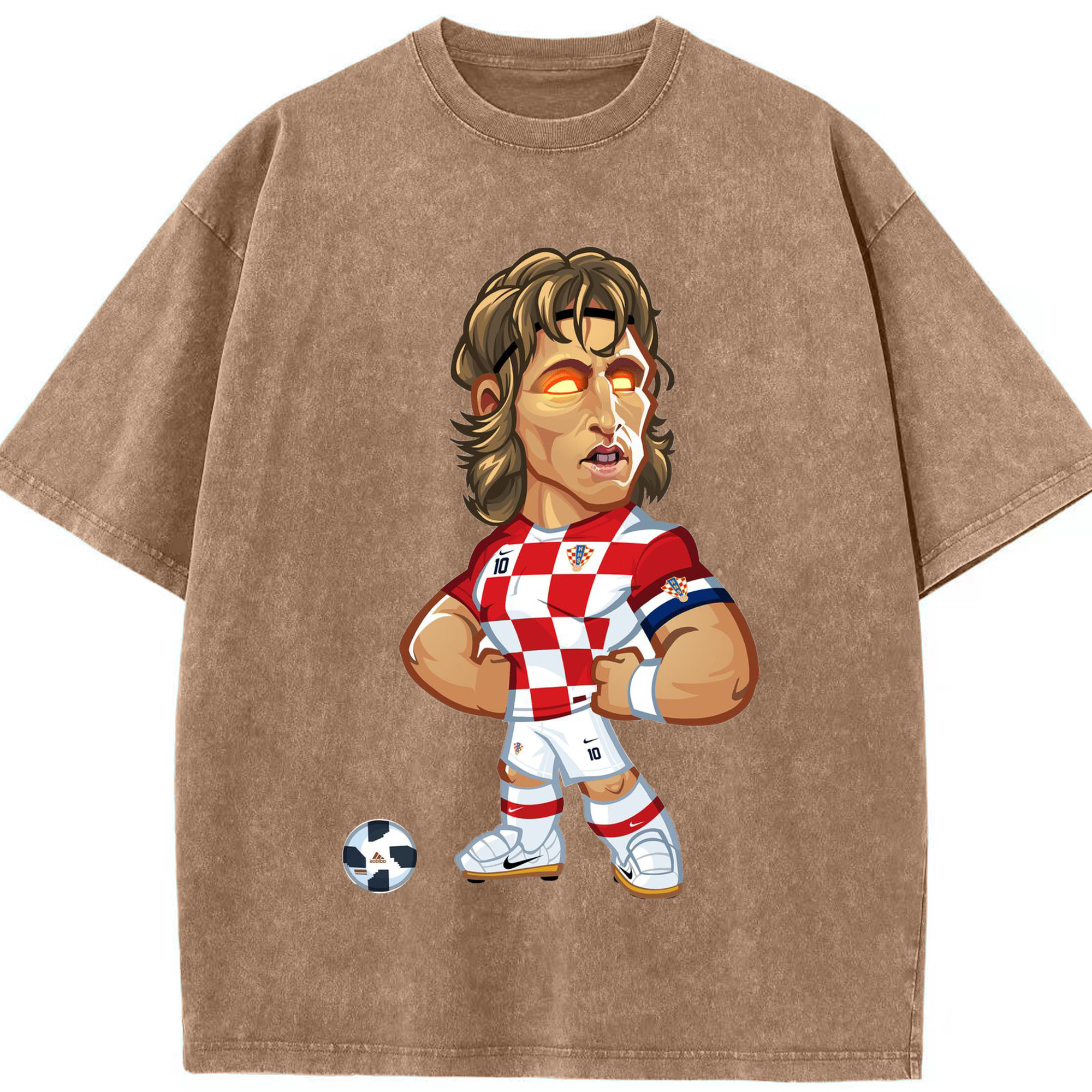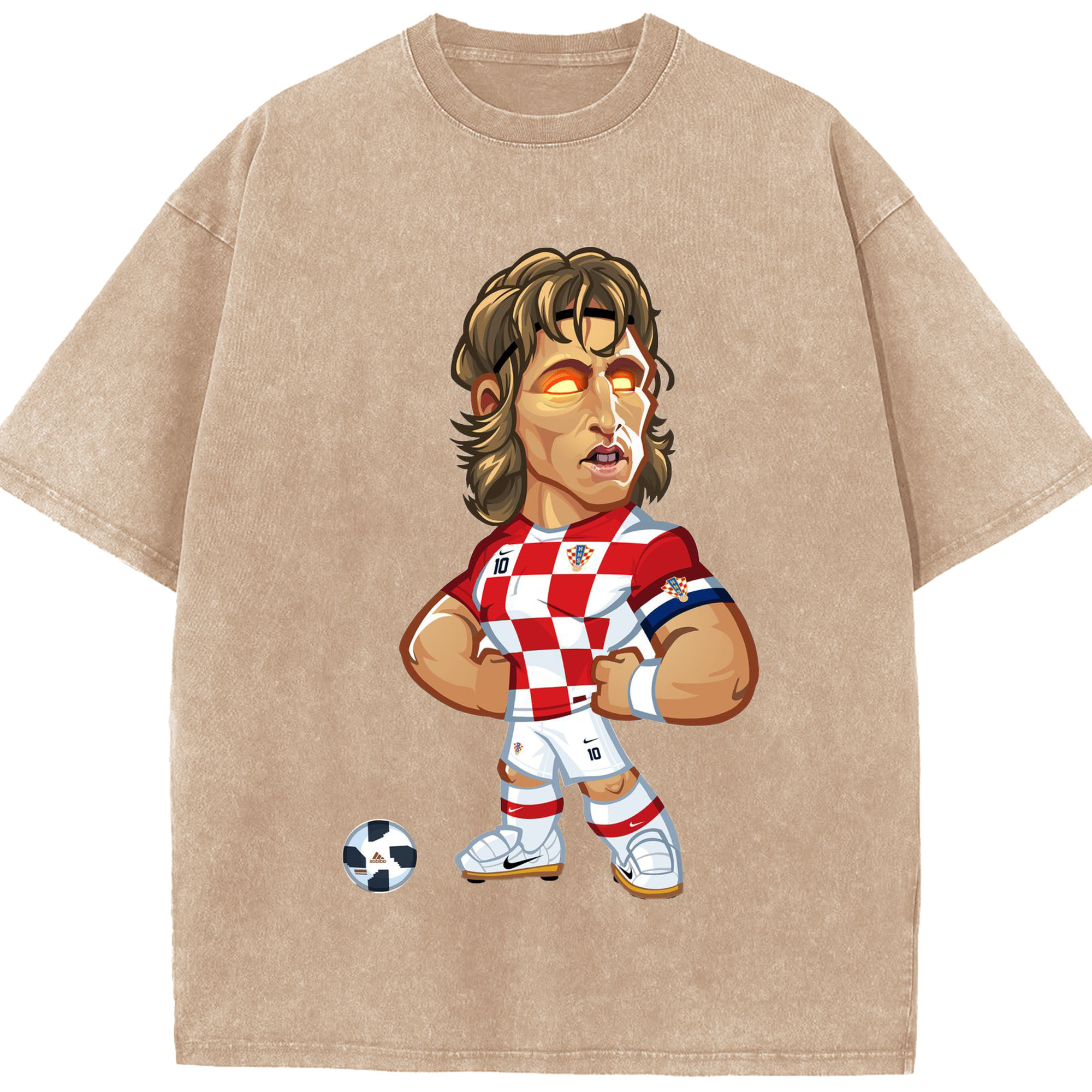 モドリッチファン必見!記念デザイン|バロンドール受賞者 - 綿100% ヴィンテージ風 半袖Tシャツ ・ フロントプリント ・ 柔らか肌触り ・ 通気性 快適 ・ スポーツ カジュアル 外出用