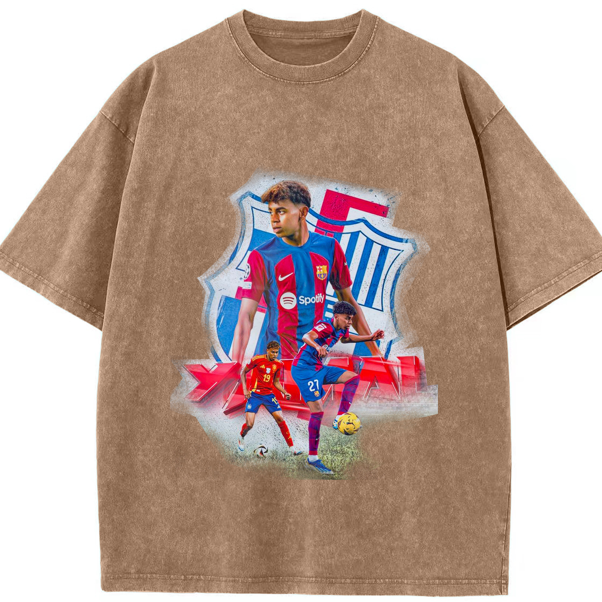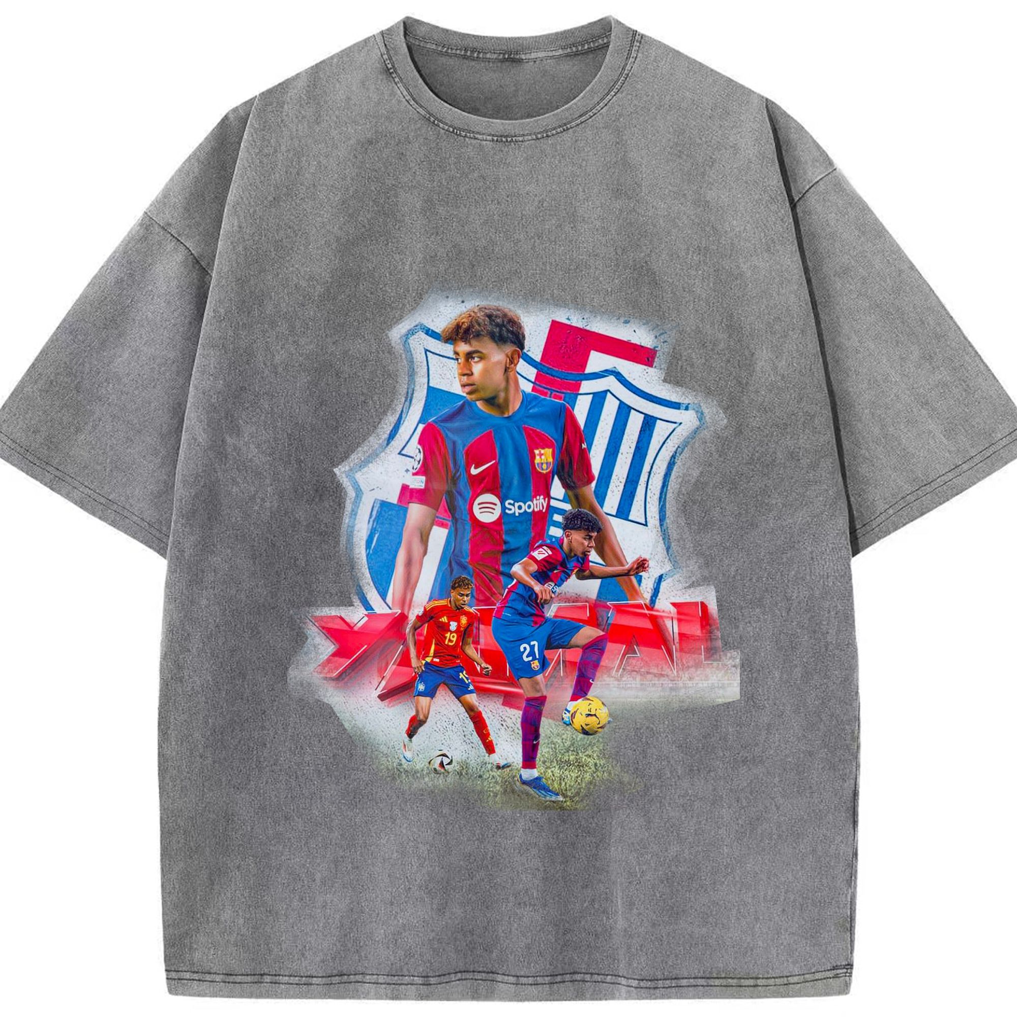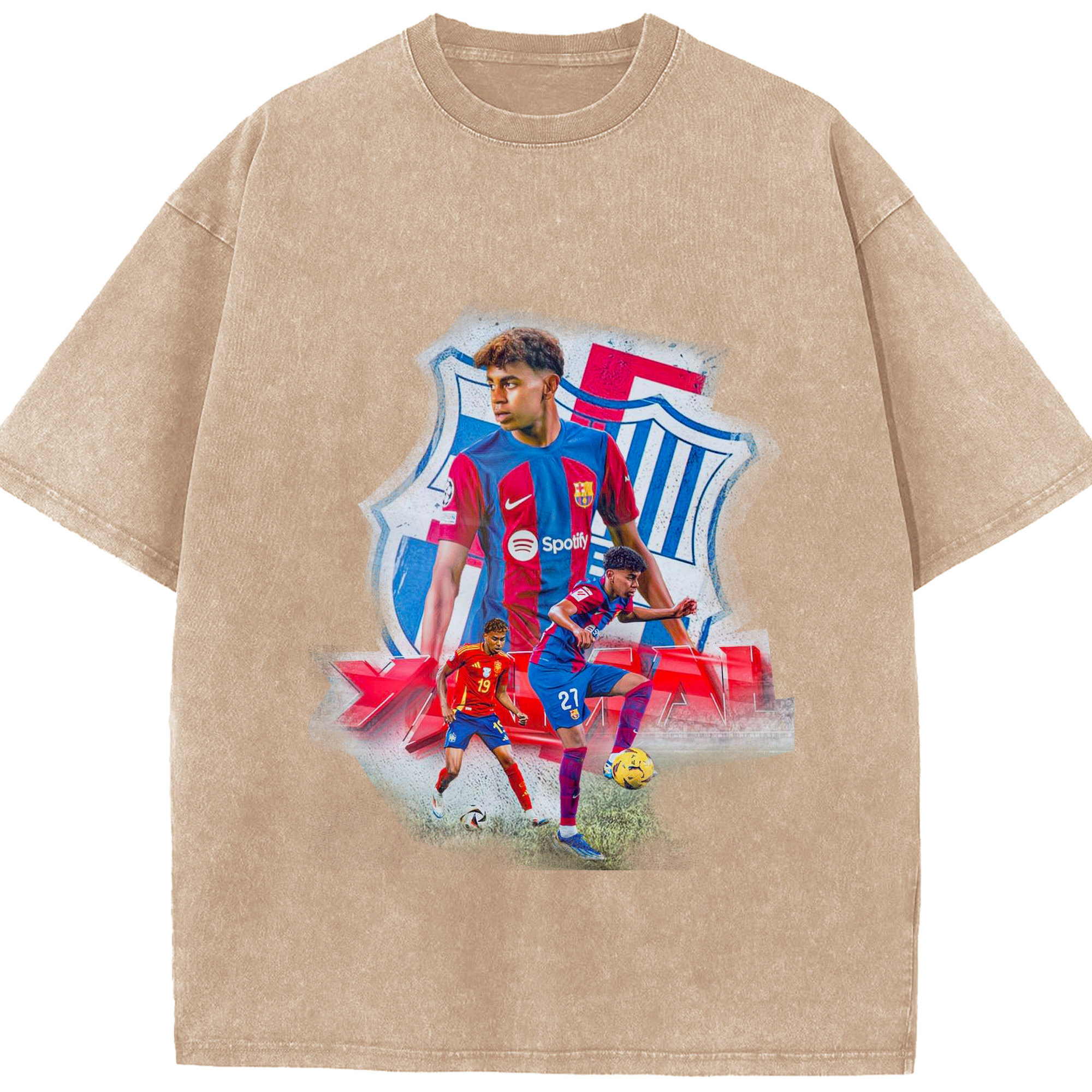 ヤマルファン必見!記念プリント|サッカーファングッズ - 綿100% ヴィンテージ風 半袖Tシャツ ・ フロントプリント ・ 柔らか肌触り ・ 通気性 快適 ・ スポーツ カジュアル 外出用