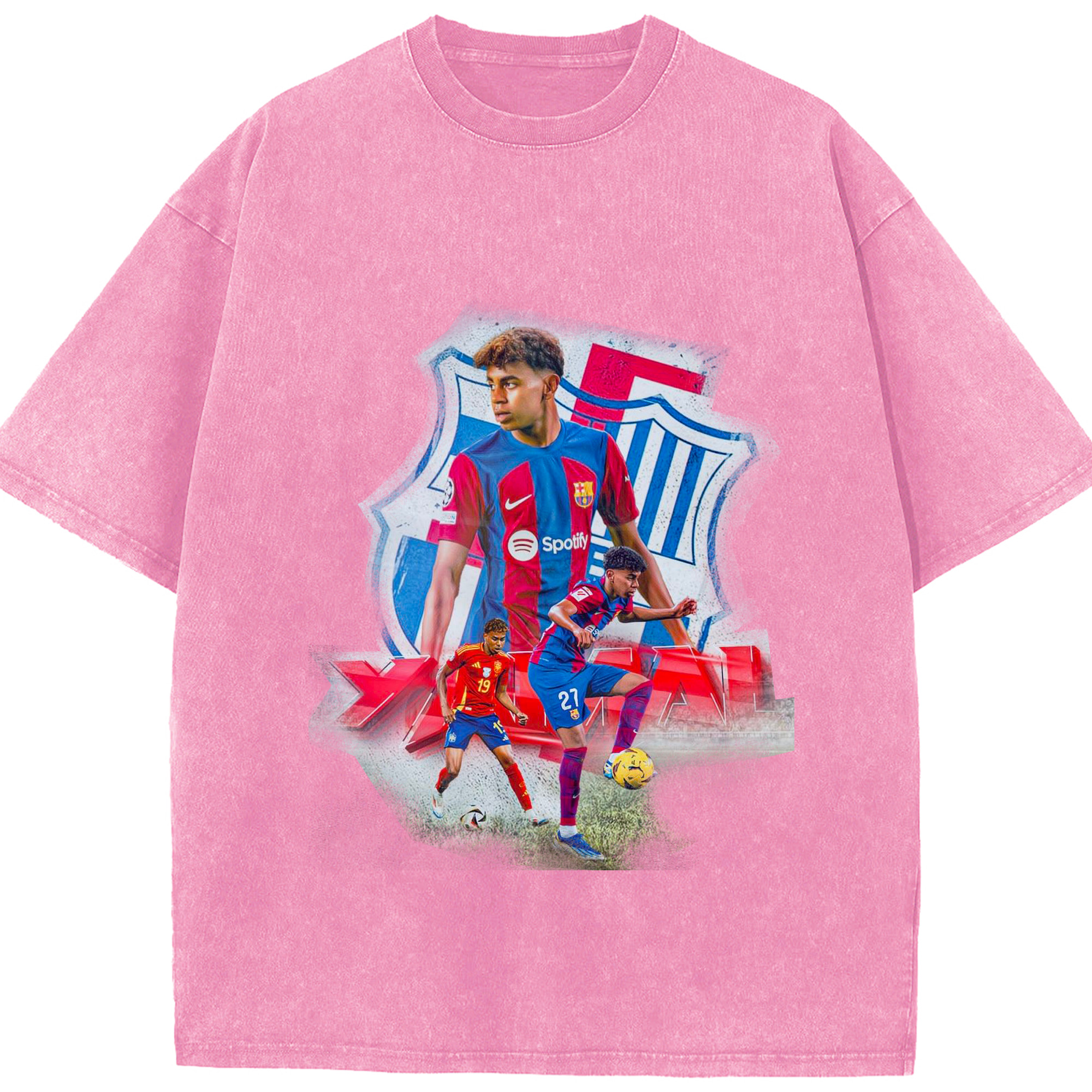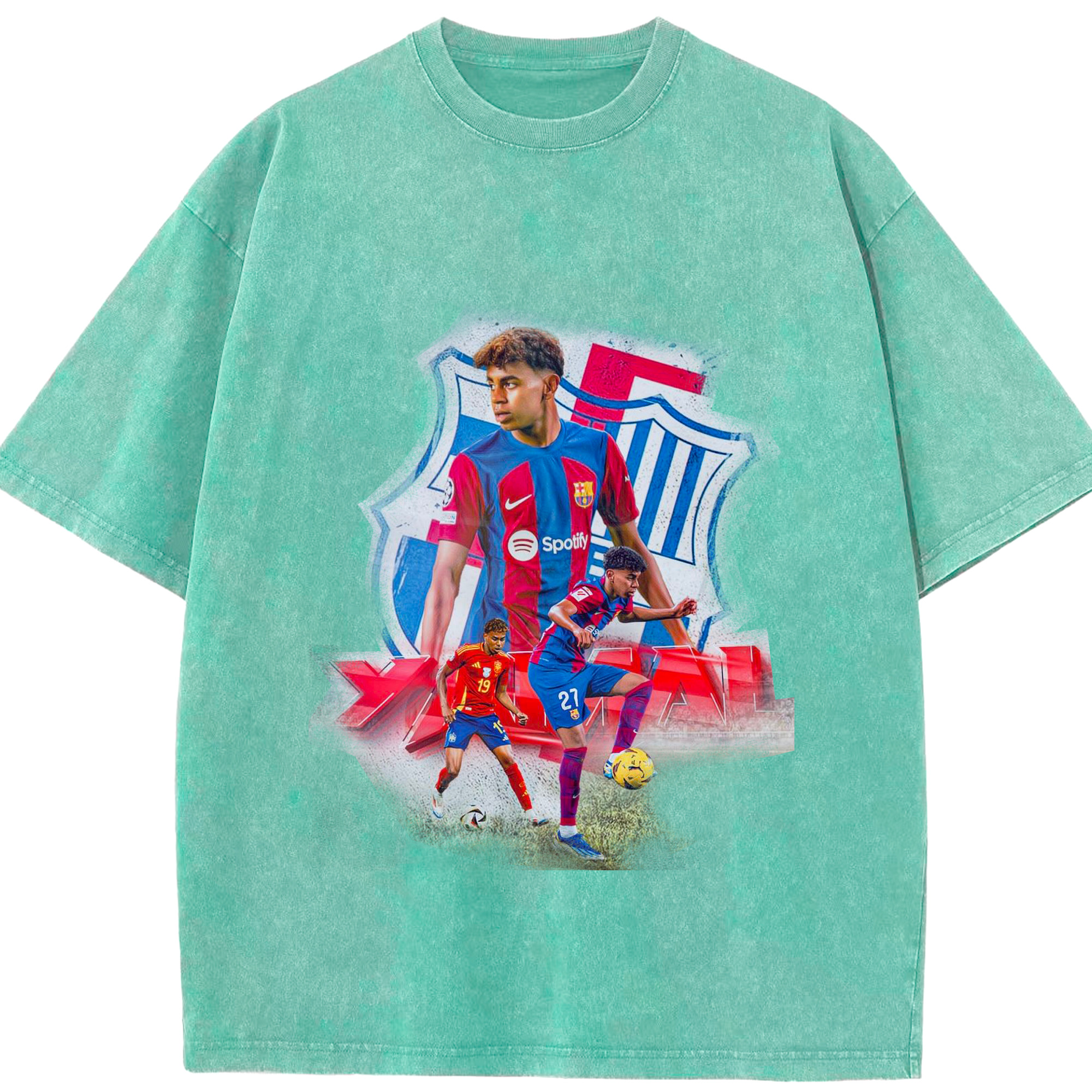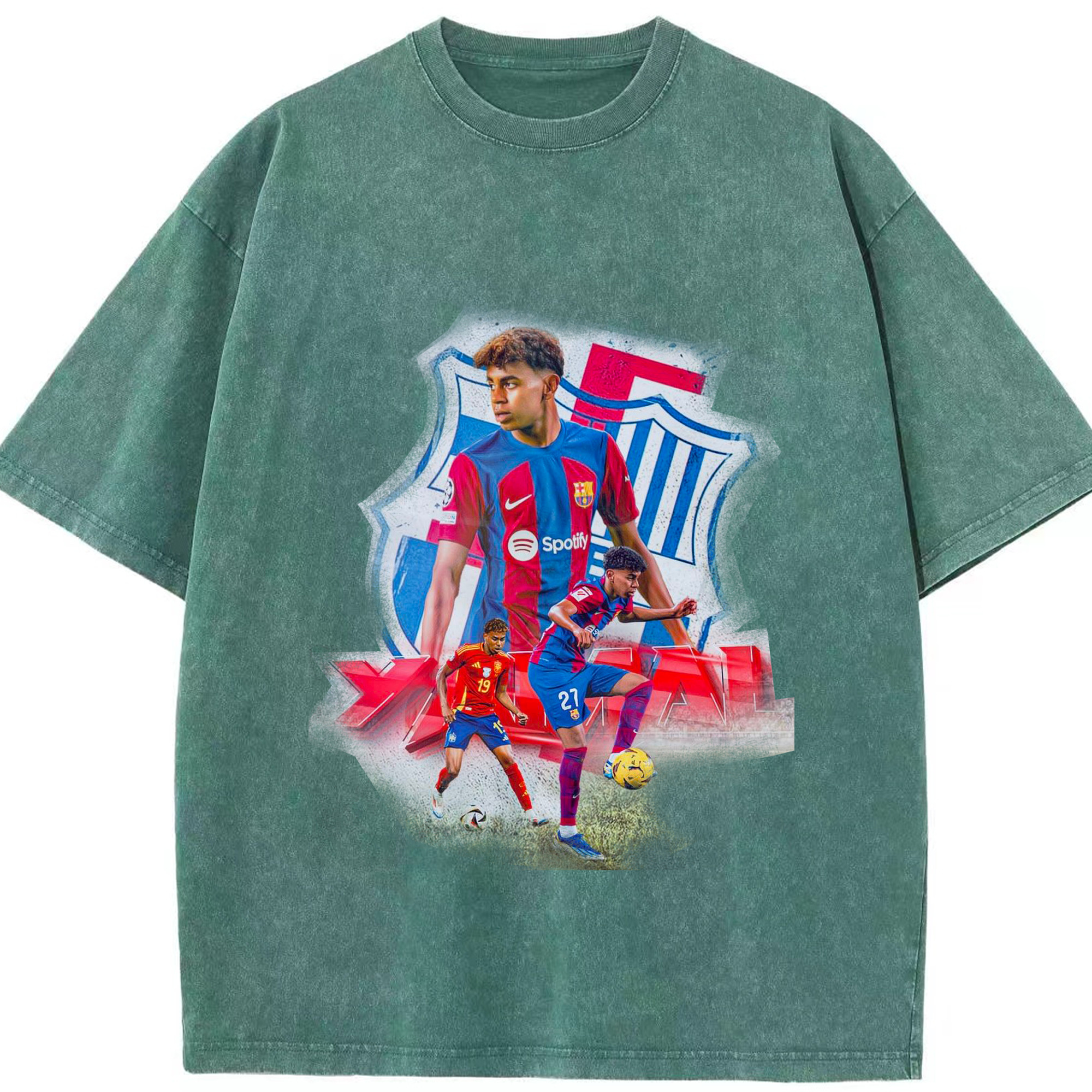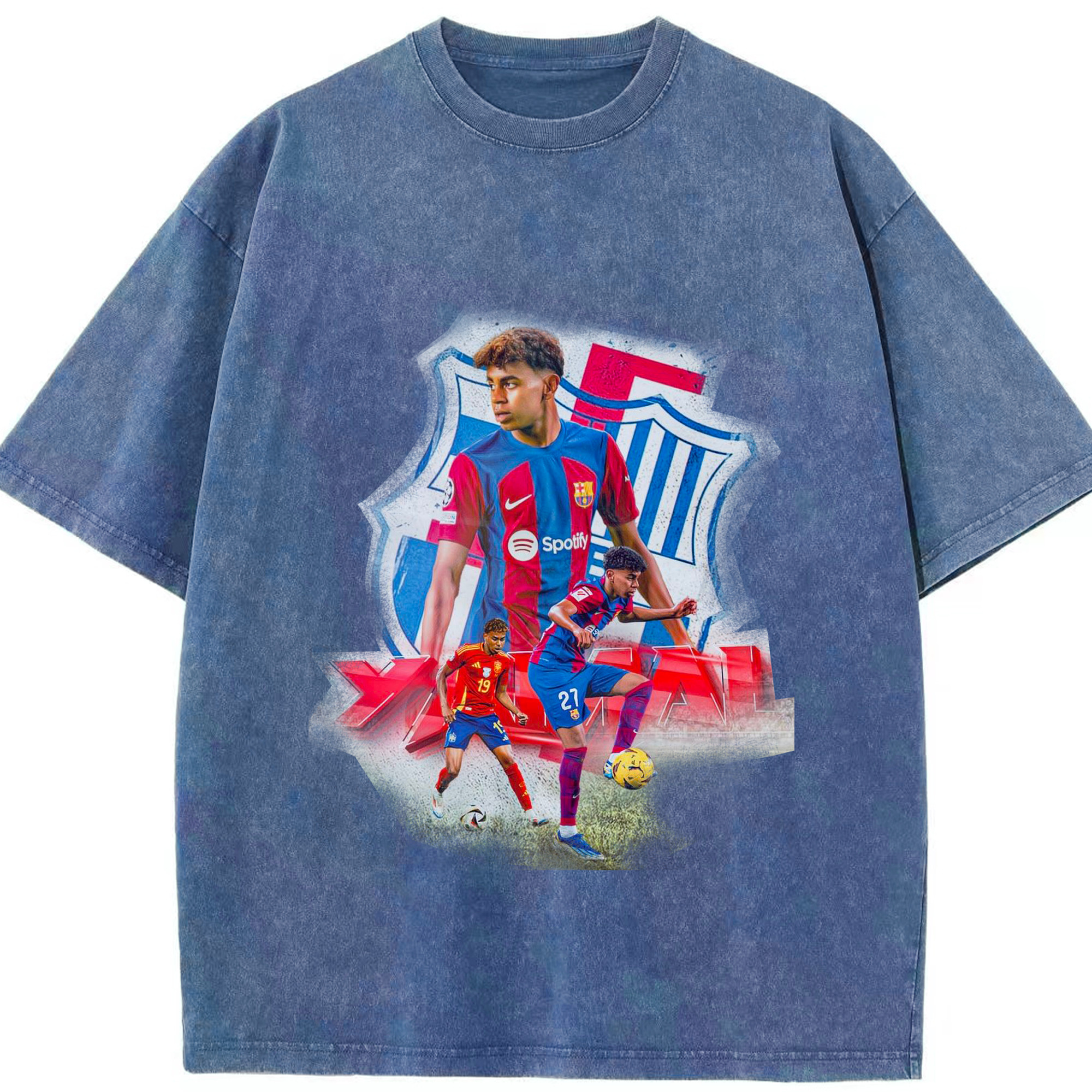 ヤマルファン必見!記念プリント|サッカーファングッズ - 綿100% ヴィンテージ風 半袖Tシャツ ・ フロントプリント ・ 柔らか肌触り ・ 通気性 快適 ・ スポーツ カジュアル 外出用