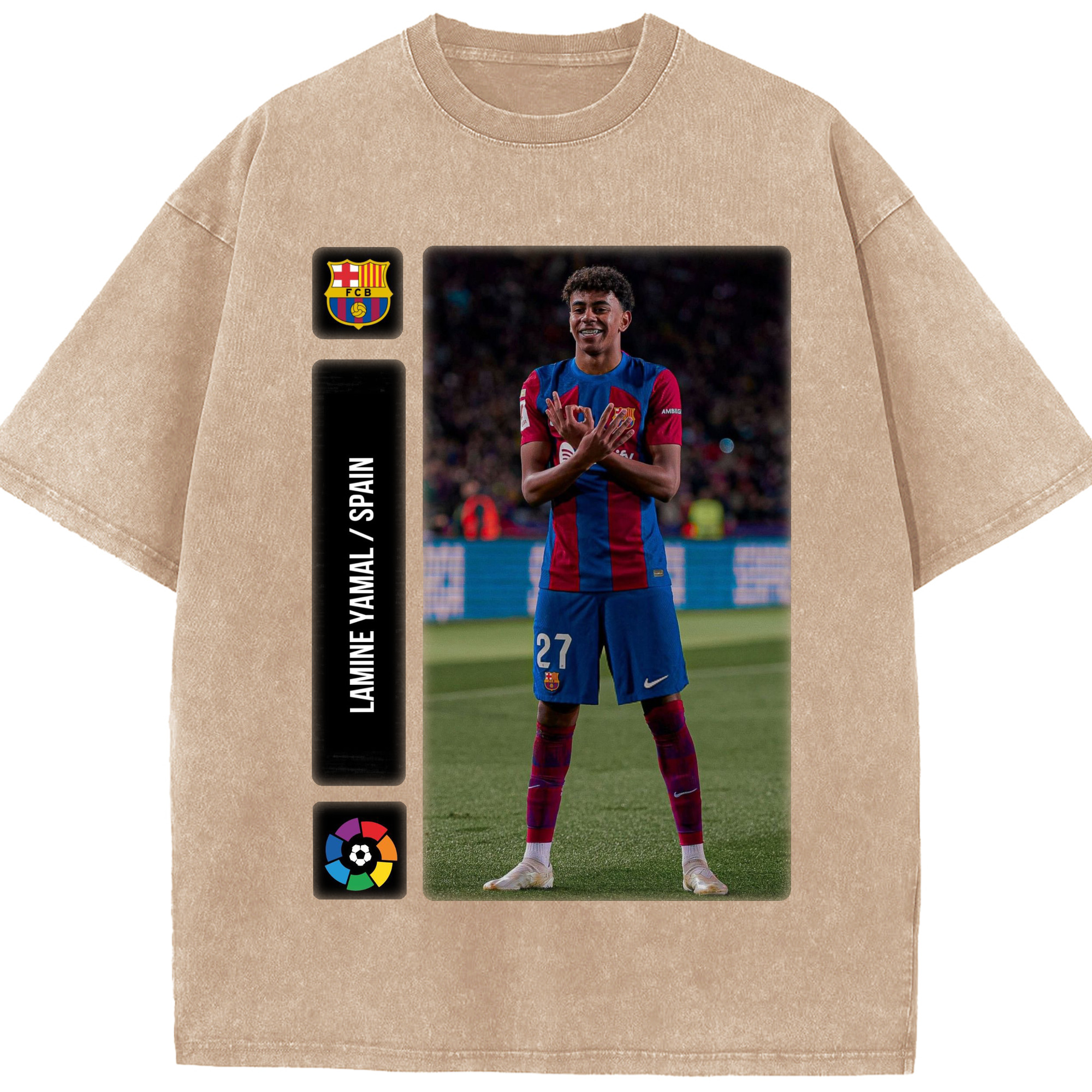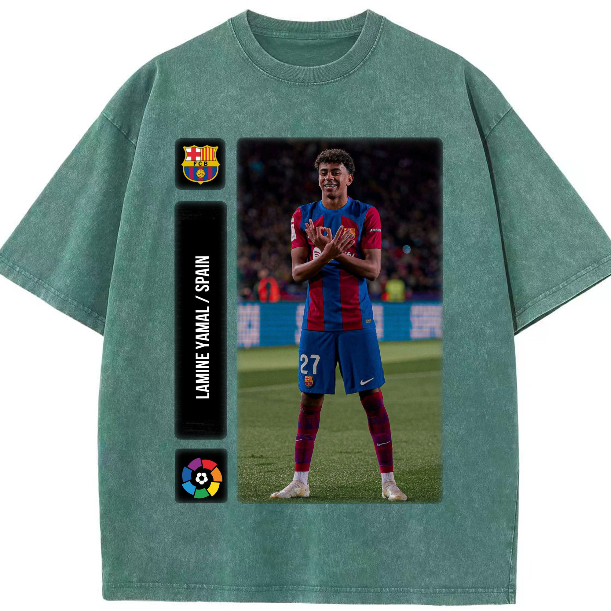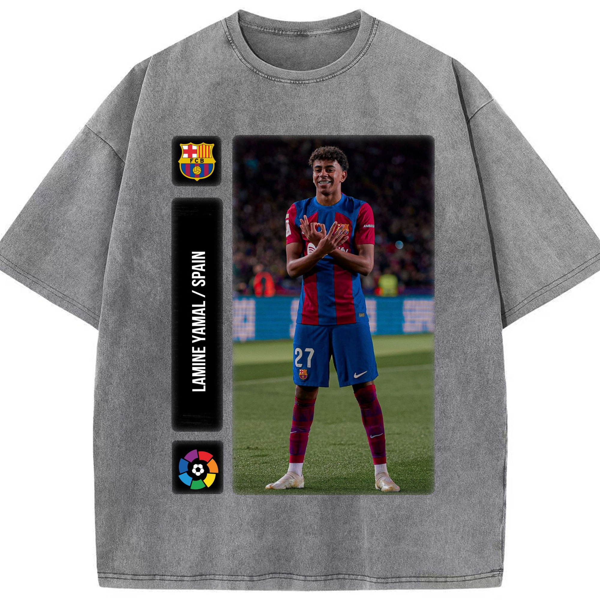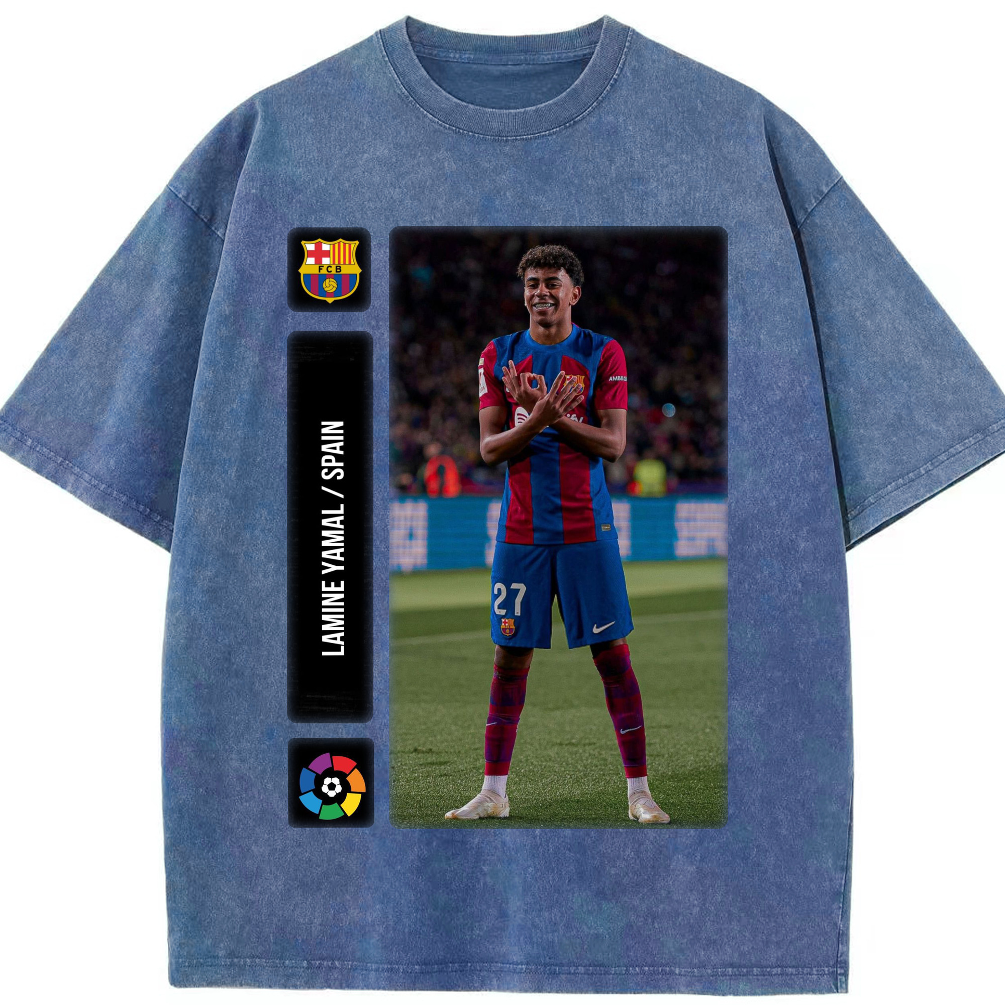 Lamine Yamal 18歳の天才ドリブラー - 綿100% ヴィンテージ風 半袖Tシャツ ・ フロントプリント ・ 柔らか肌触り ・ 通気性 快適 ・ スポーツ カジュアル 外出用