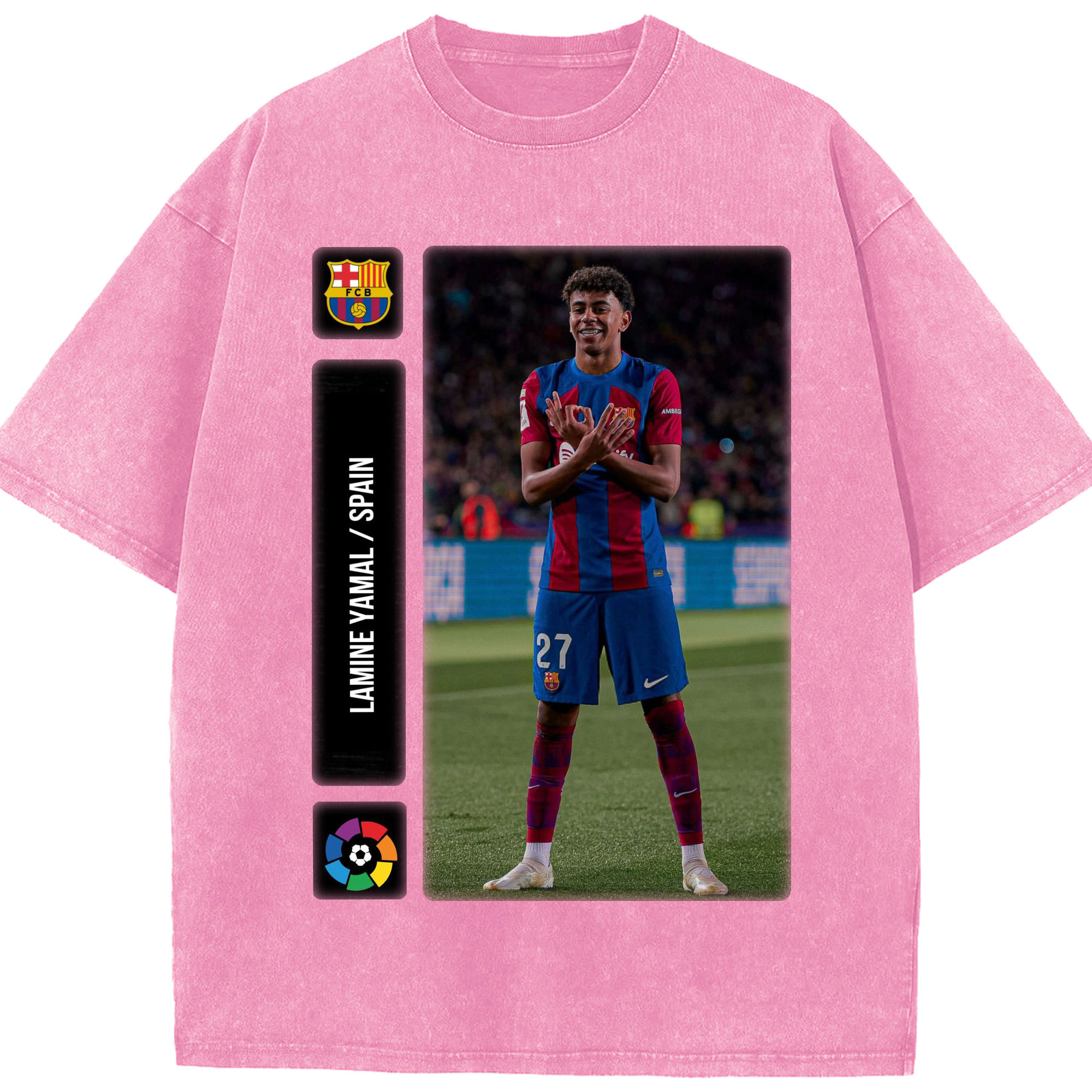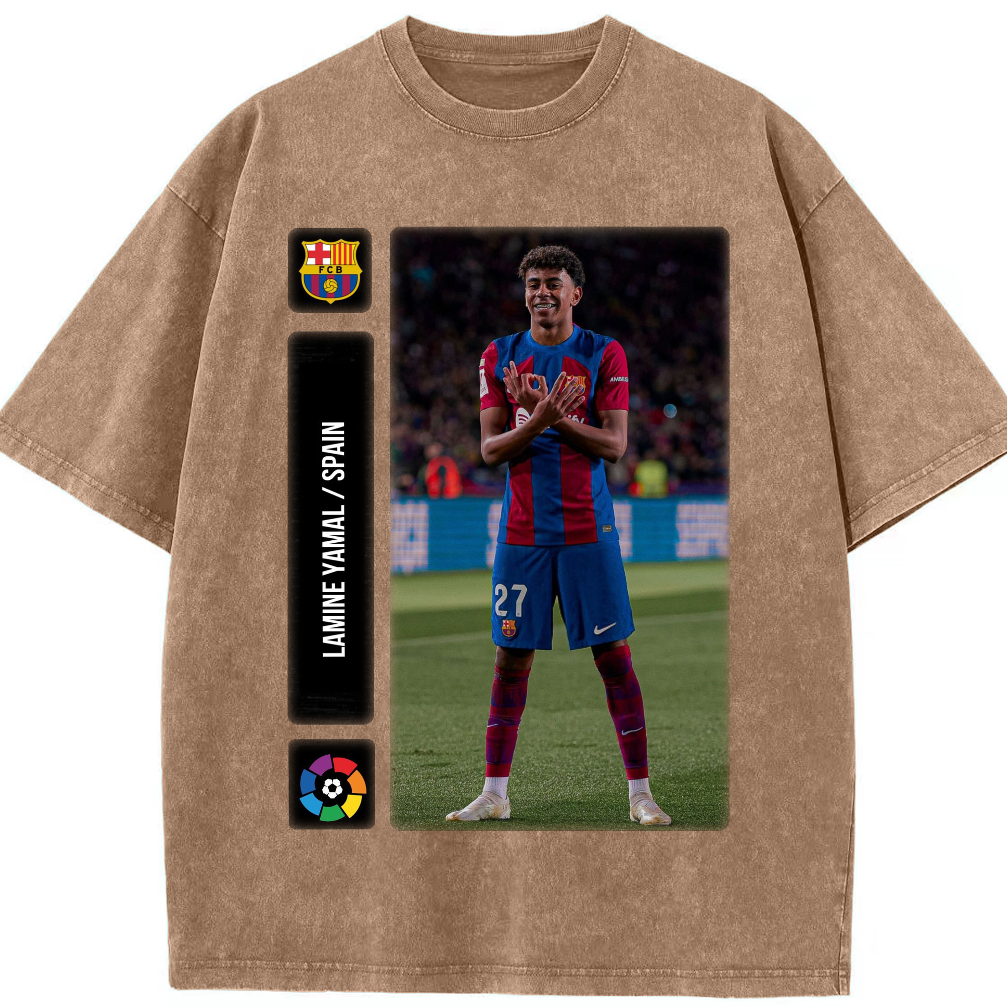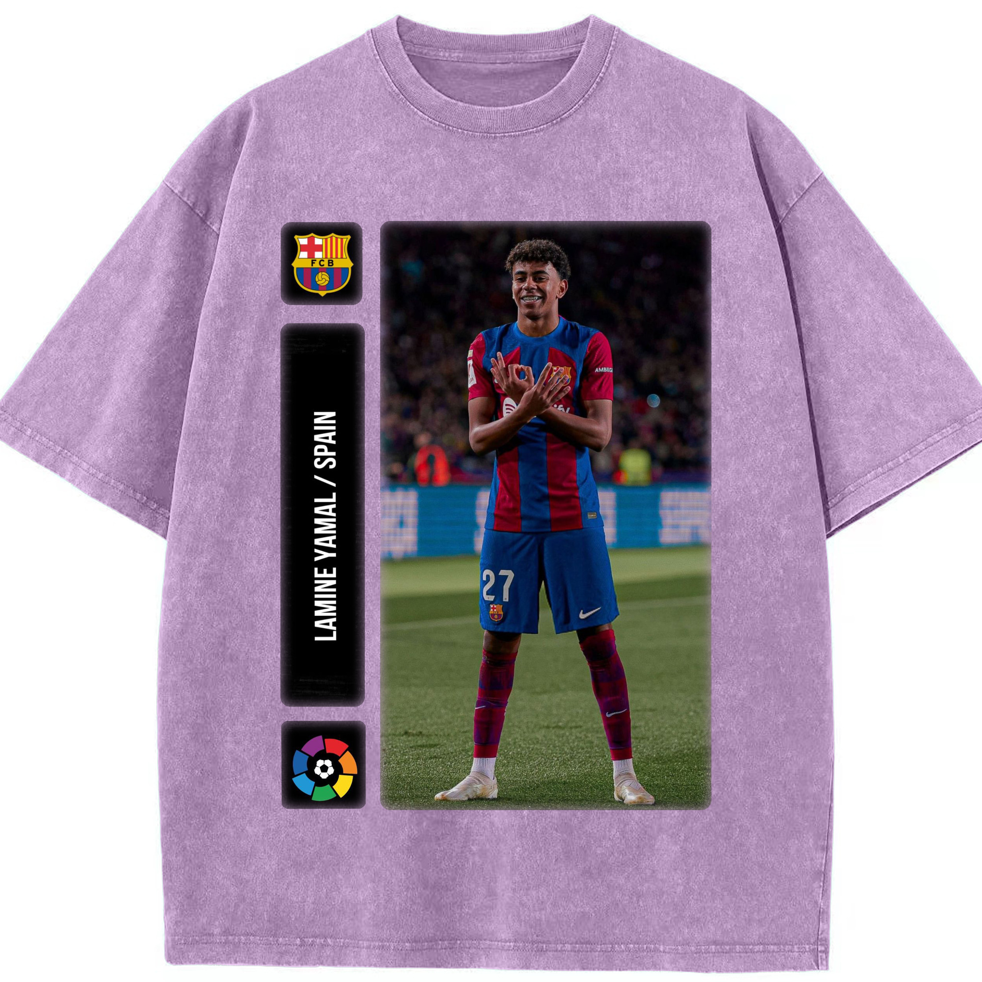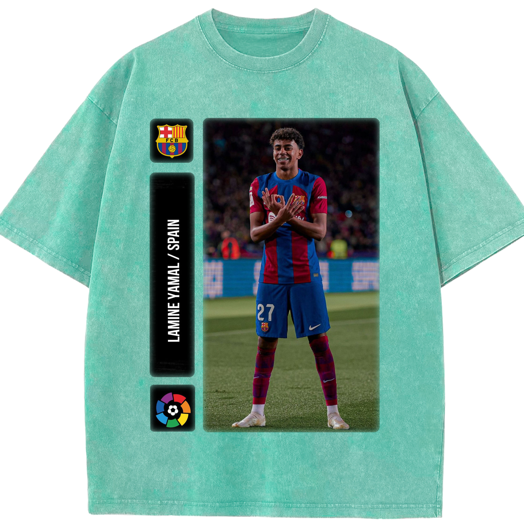 Lamine Yamal 18歳の天才ドリブラー - 綿100% ヴィンテージ風 半袖Tシャツ ・ フロントプリント ・ 柔らか肌触り ・ 通気性 快適 ・ スポーツ カジュアル 外出用