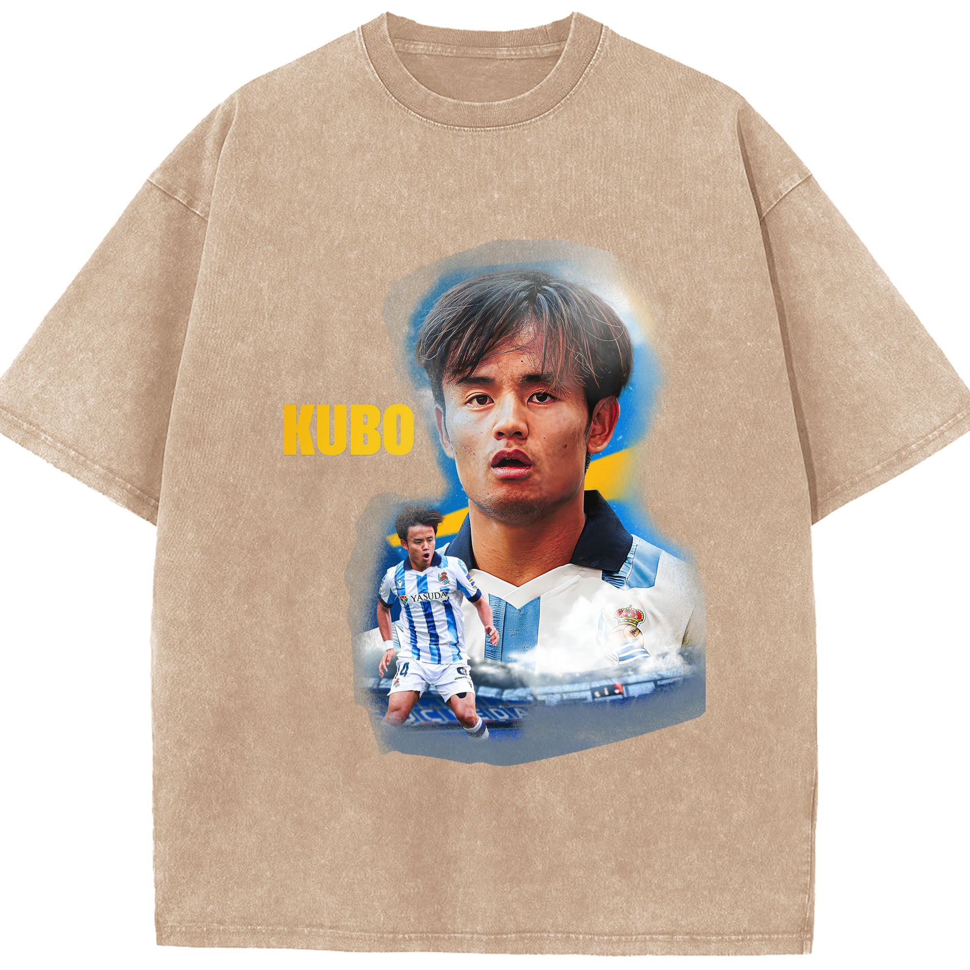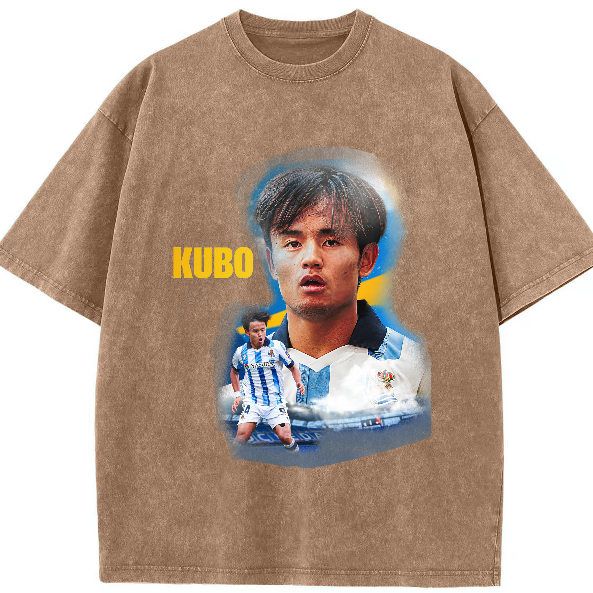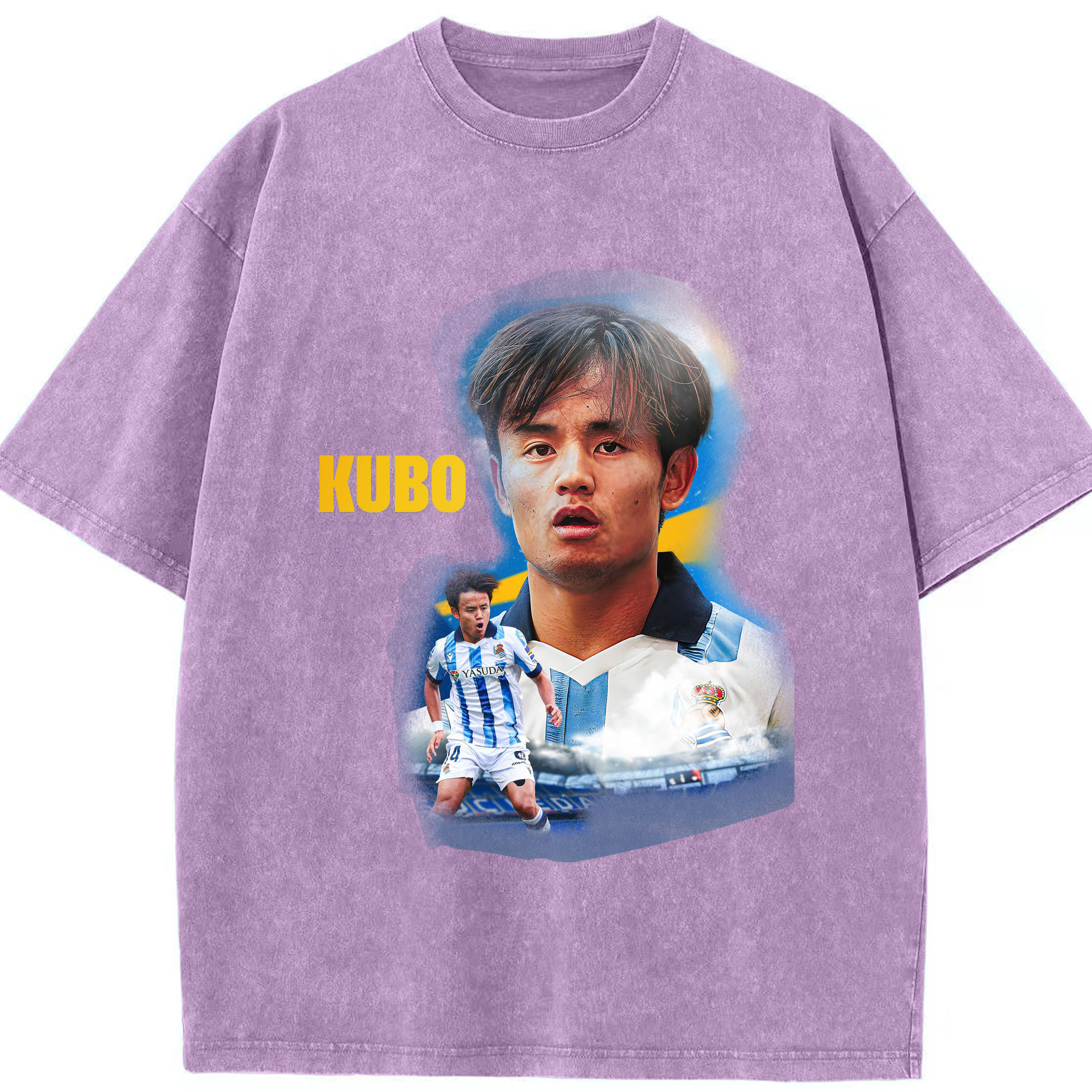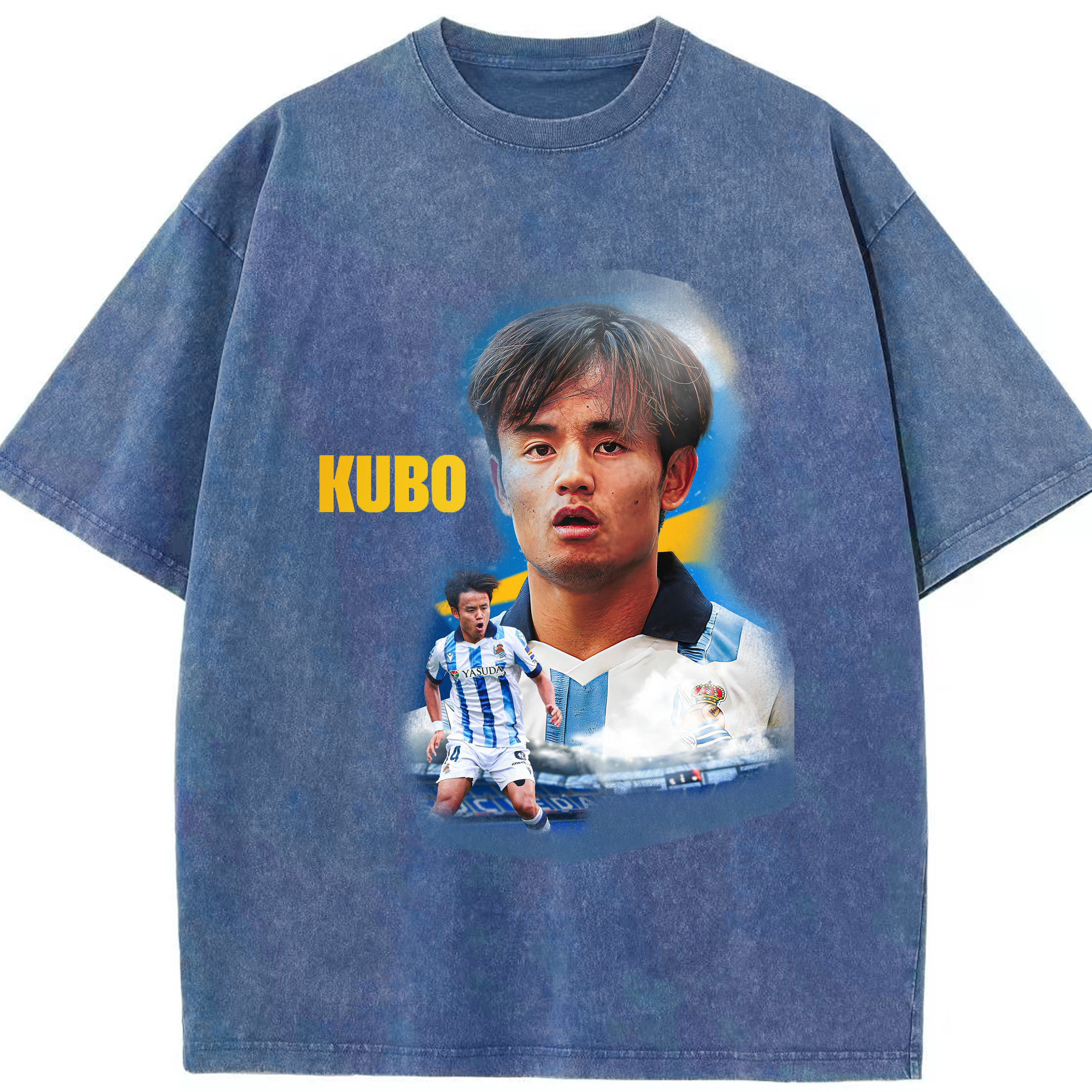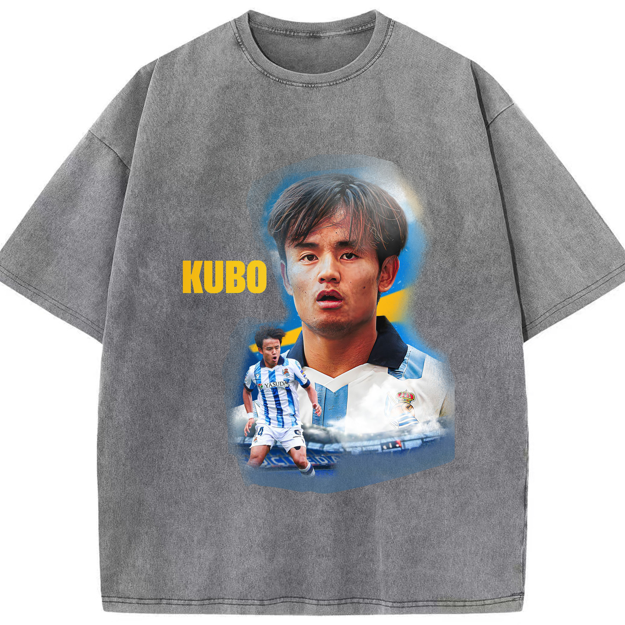 久保建英 サムライスピリット 国境を超える才能 - 綿100% ヴィンテージ風 半袖Tシャツ ・ フロントプリント ・ 柔らか肌触り ・ 通気性 快適 ・ スポーツ カジュアル 外出用