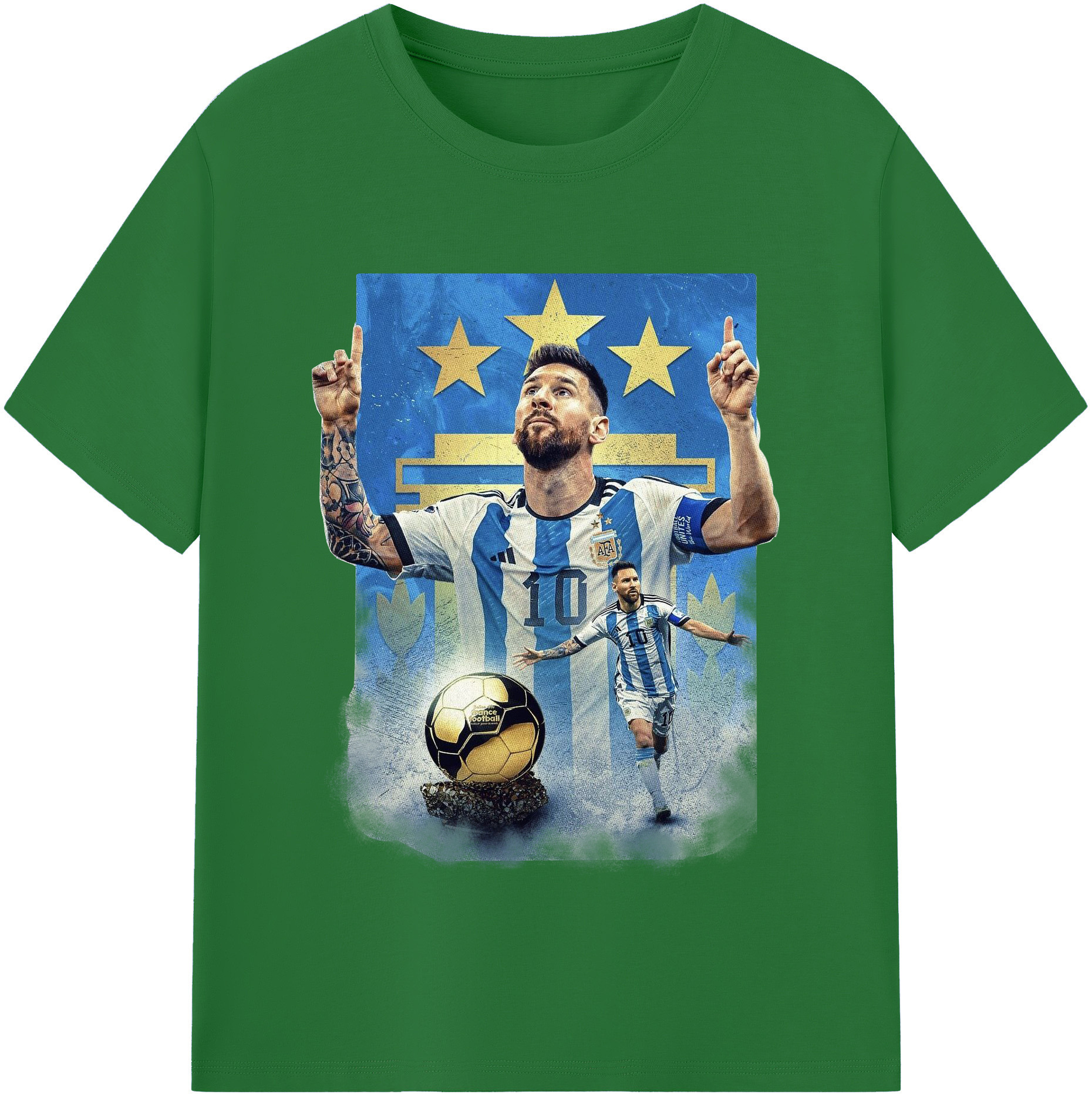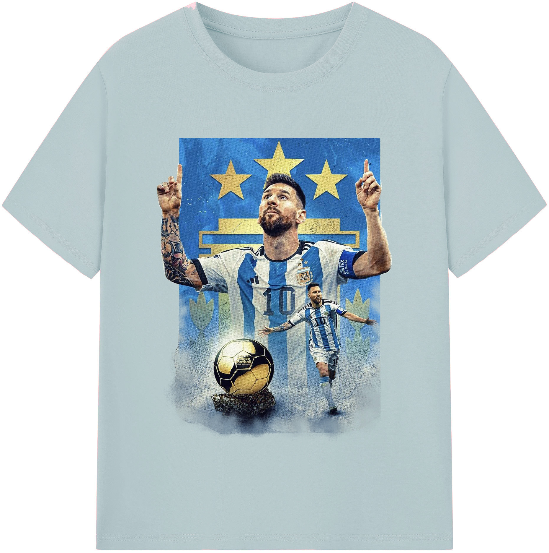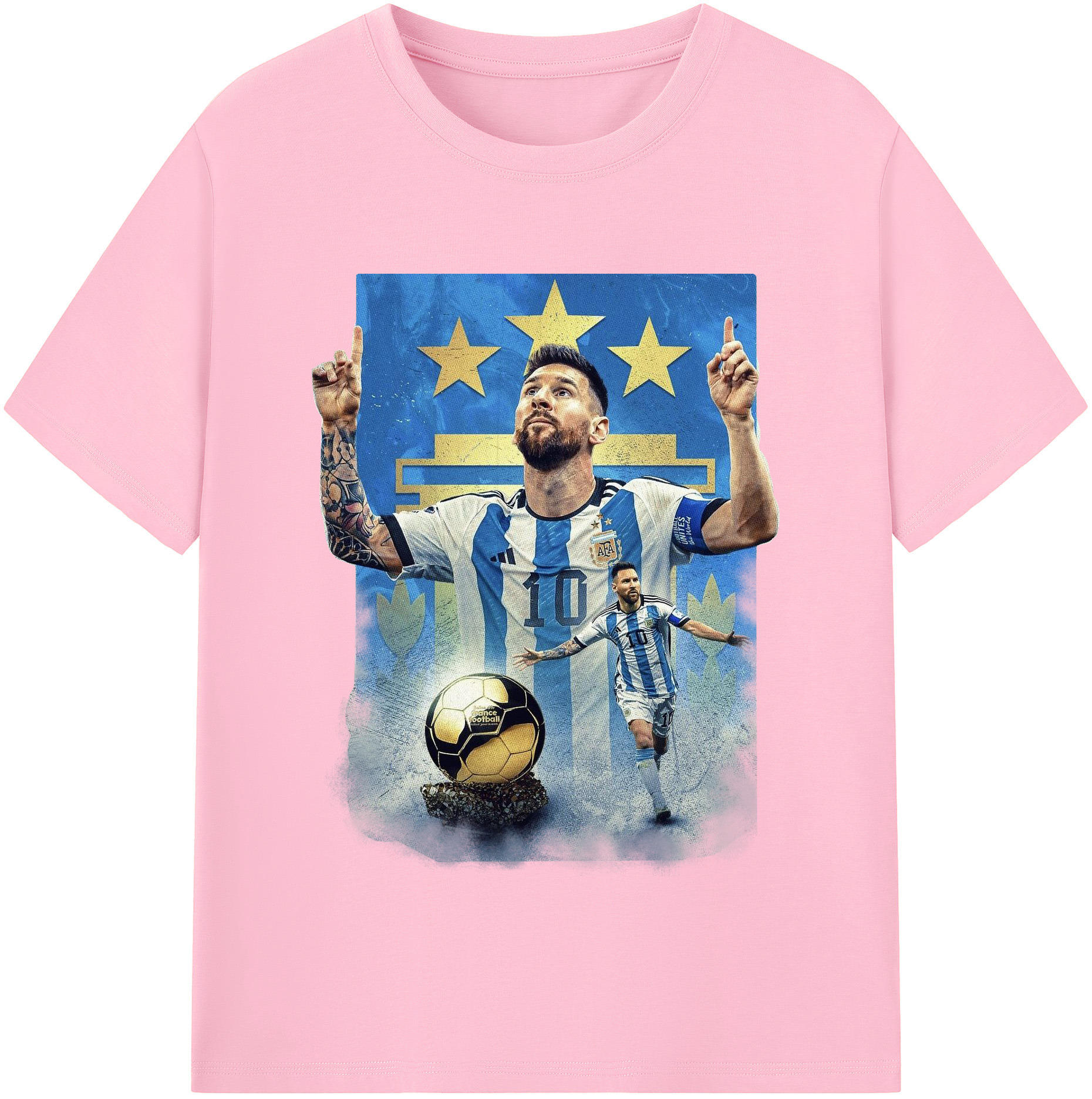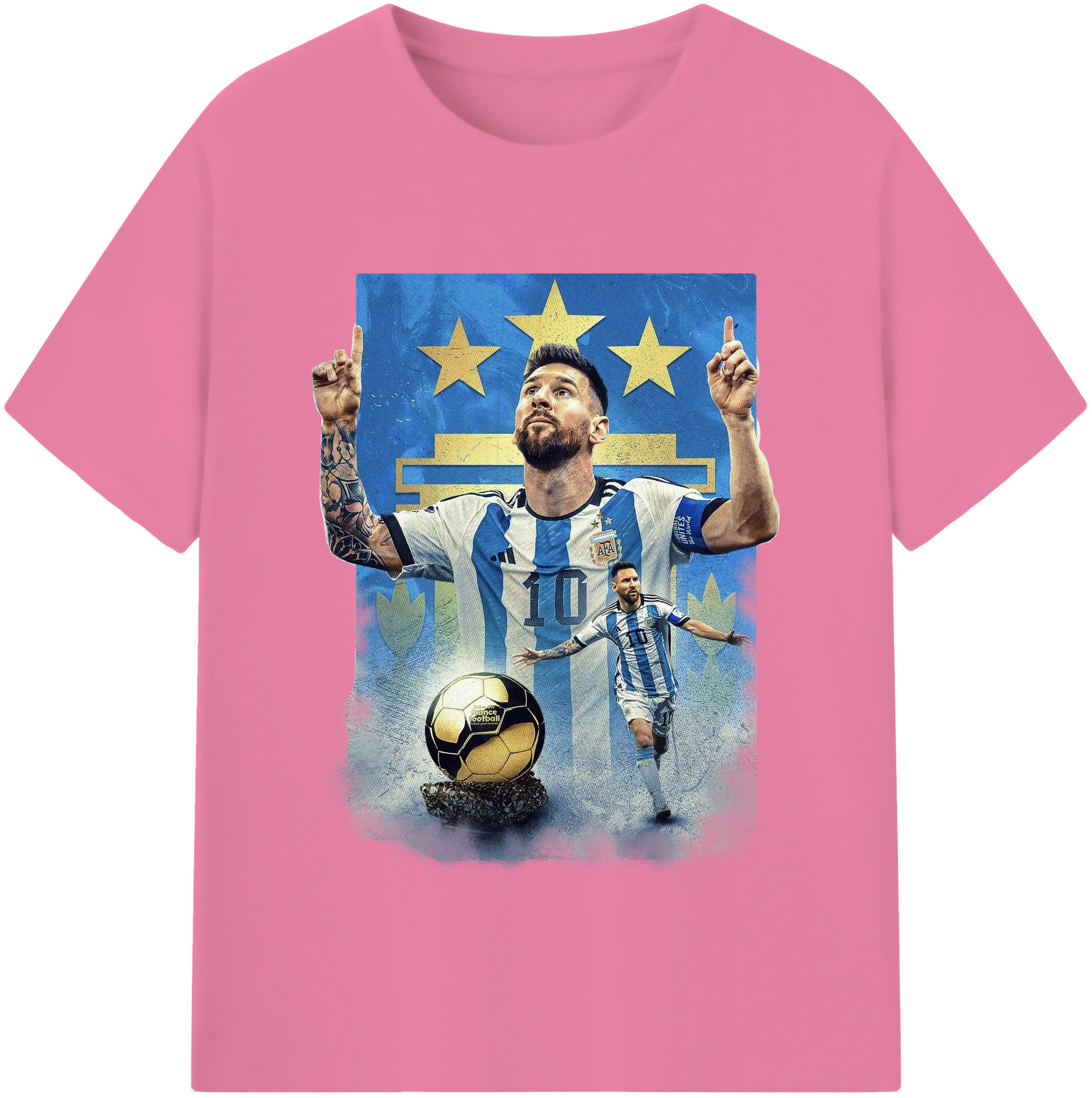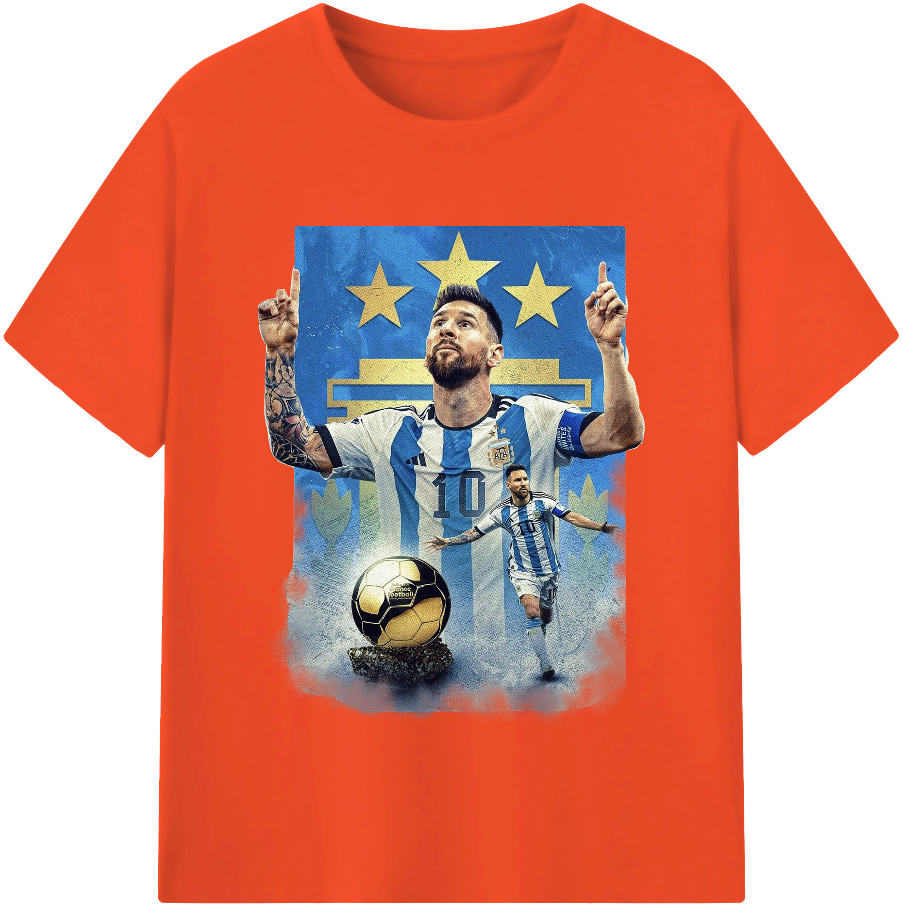 リオネル・メッシ 10番 応援 - 綿100% 半袖Tシャツ ・ フロントプリント ・ 快適 通気性 ・ 日常使い 散歩 スポーツ用