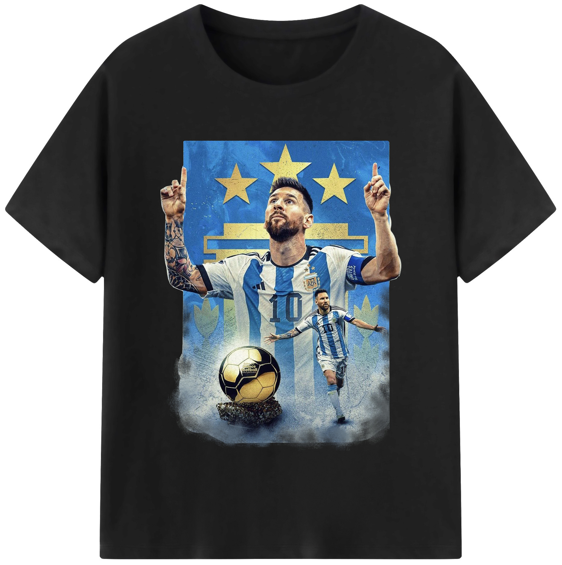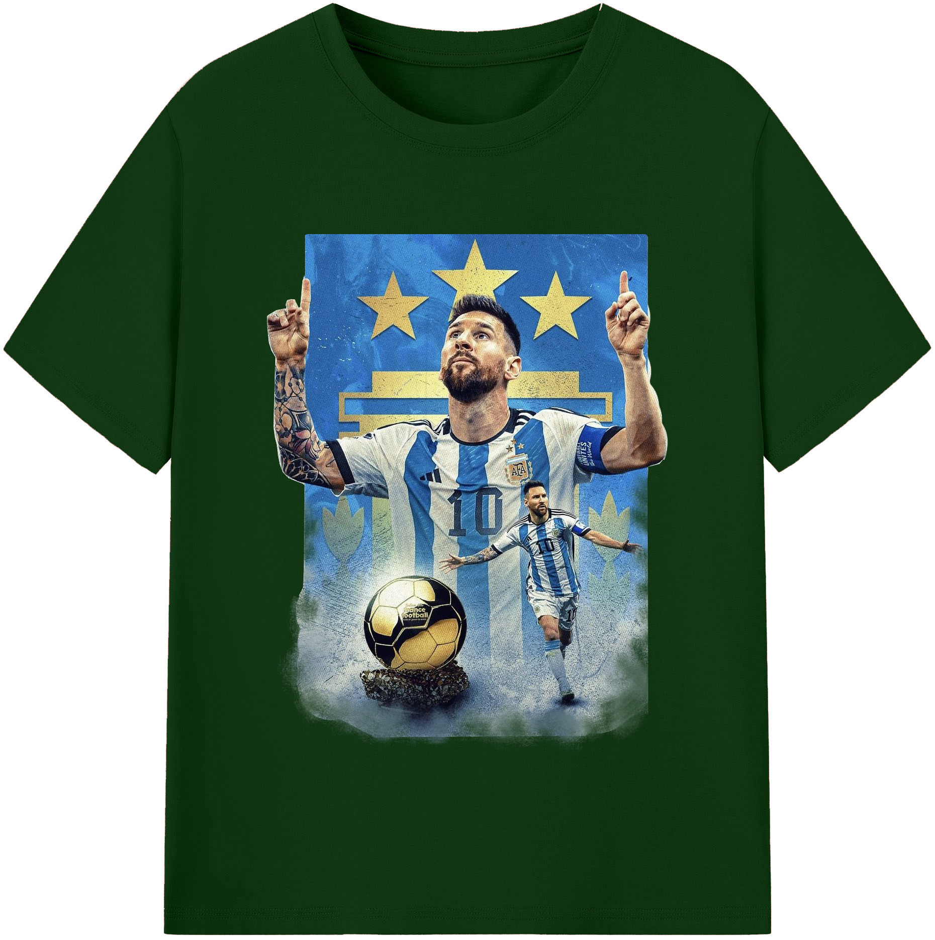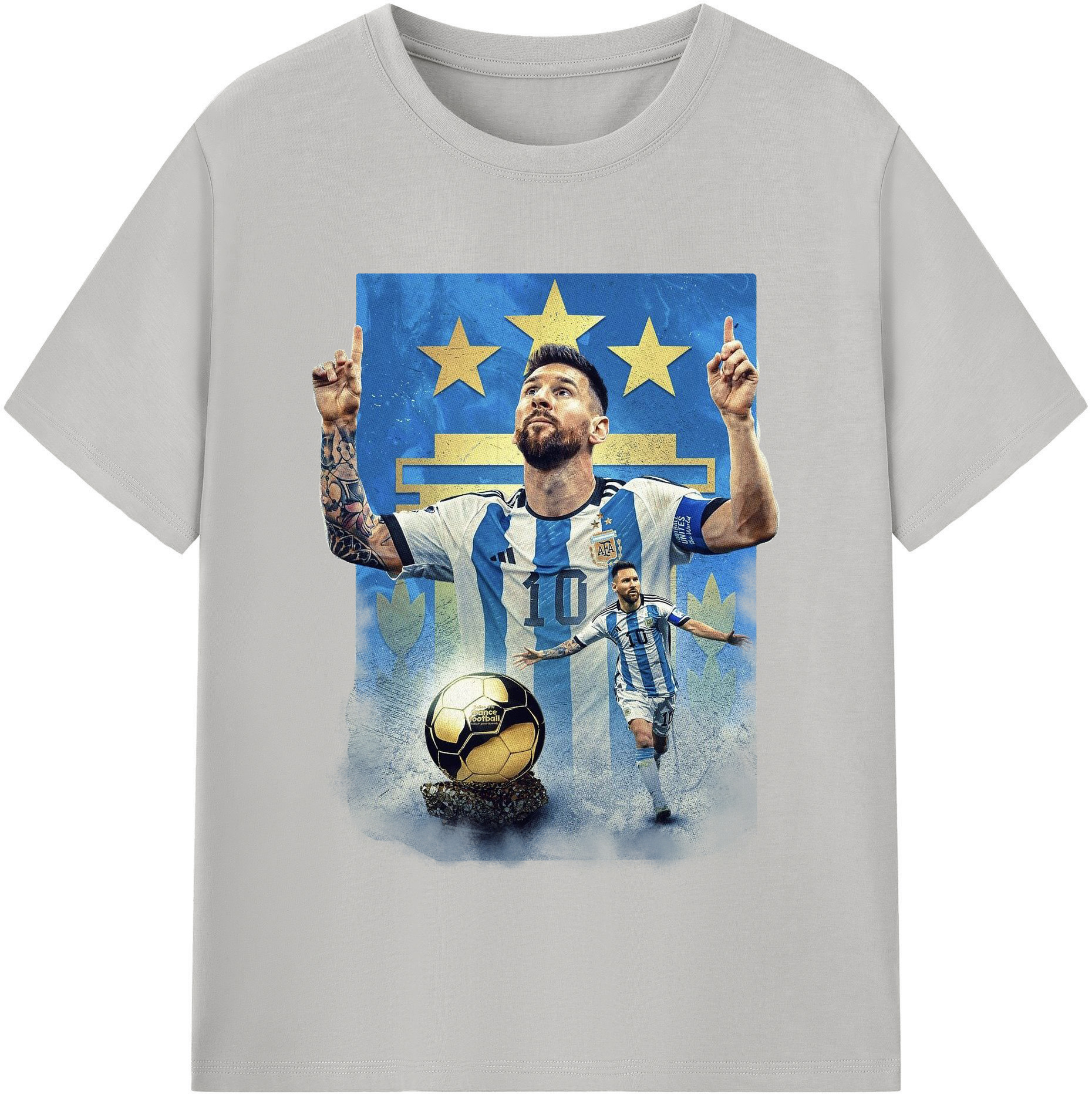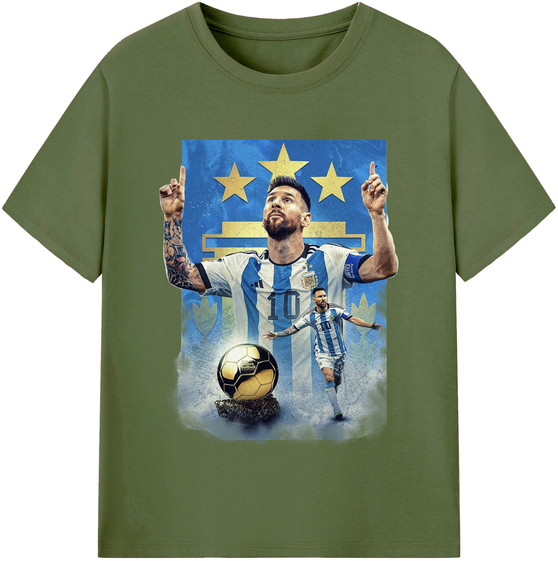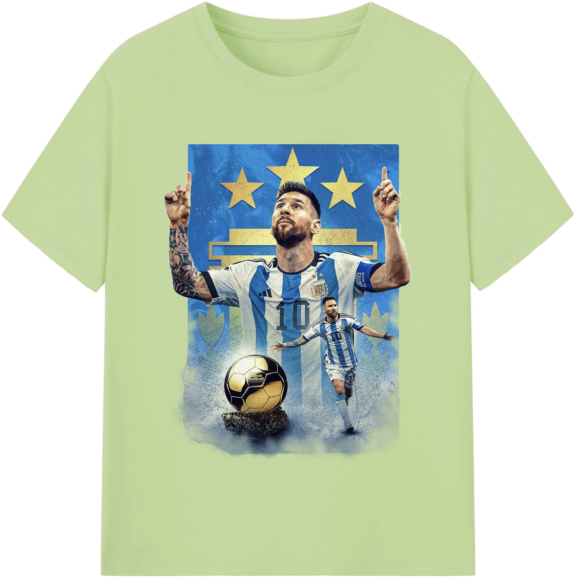 リオネル・メッシ 10番 応援 - 綿100% 半袖Tシャツ ・ フロントプリント ・ 快適 通気性 ・ 日常使い 散歩 スポーツ用