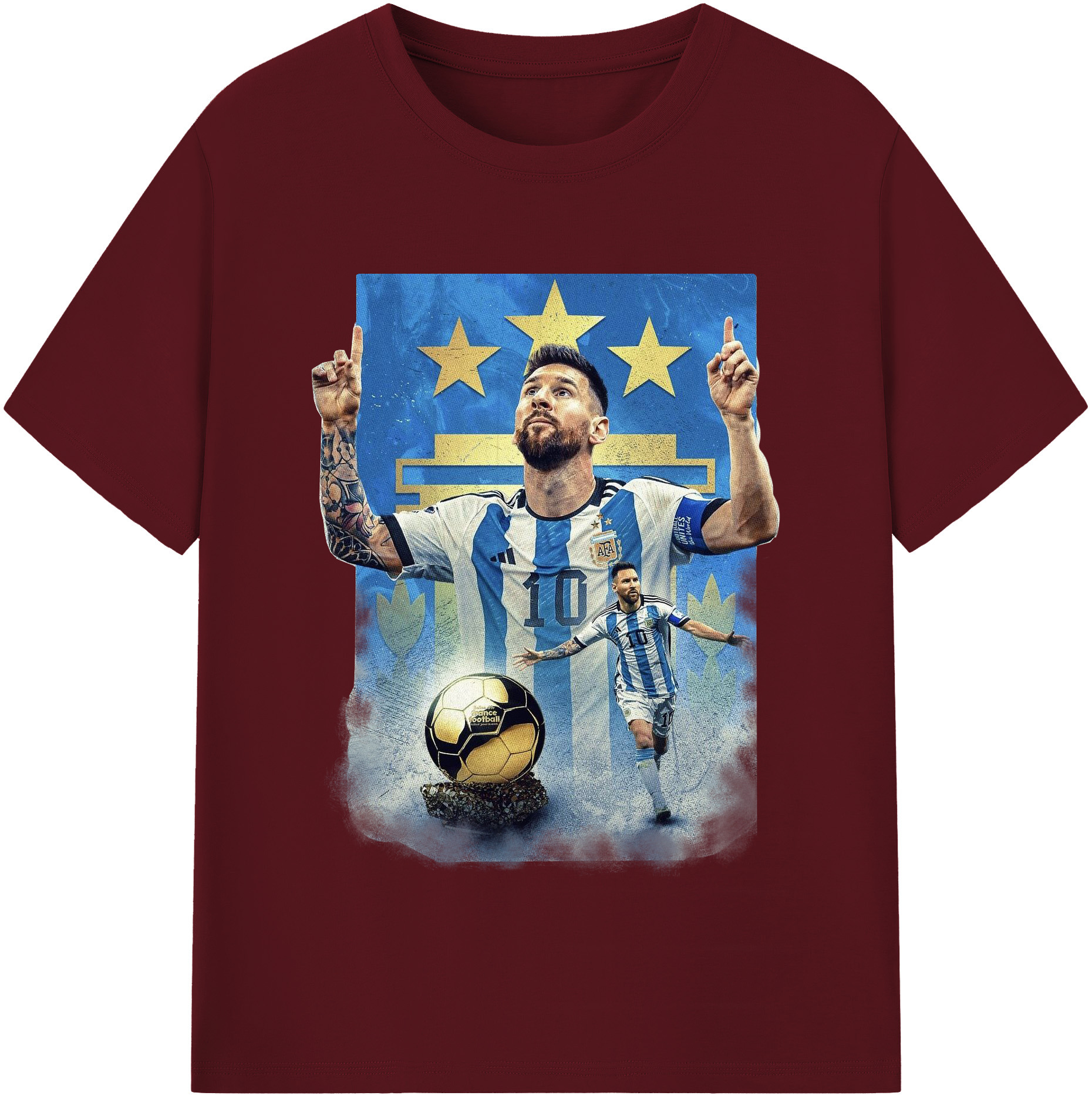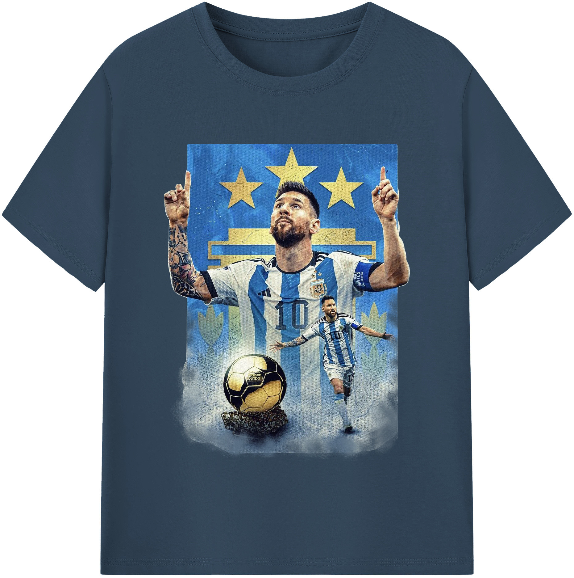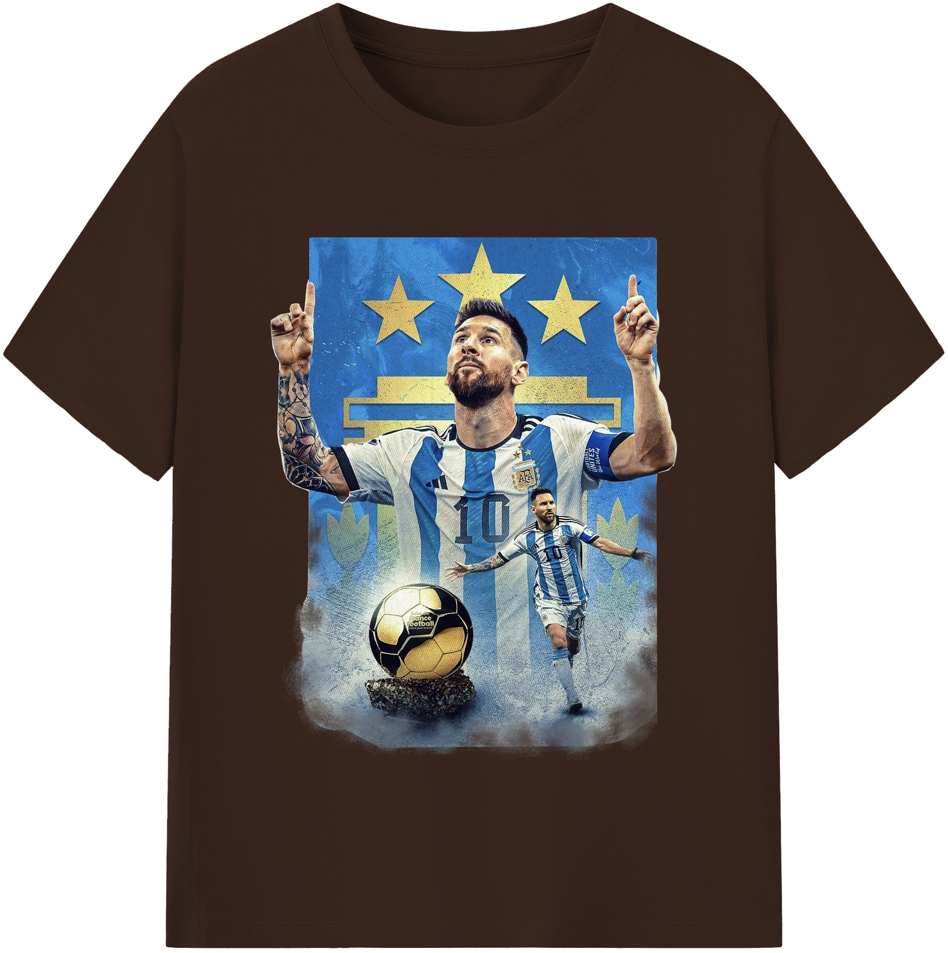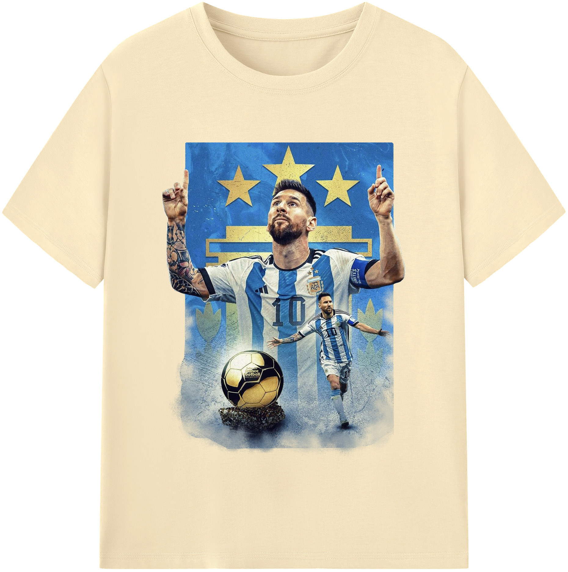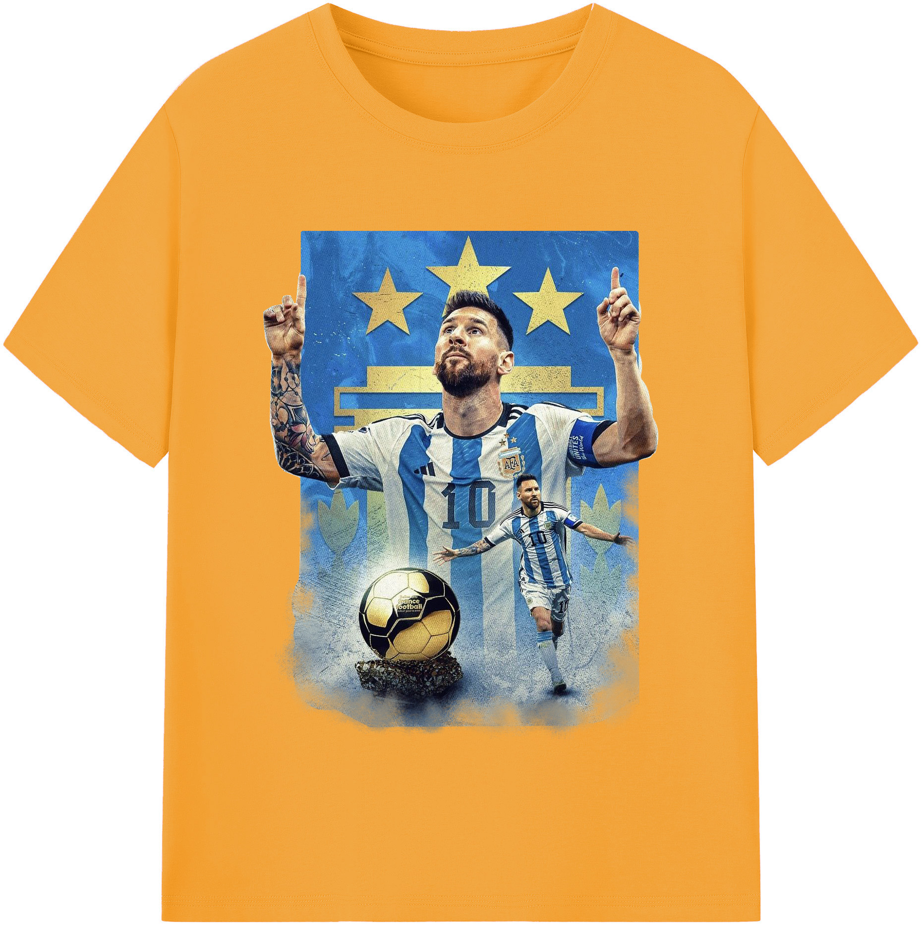 リオネル・メッシ 10番 応援 - 綿100% 半袖Tシャツ ・ フロントプリント ・ 快適 通気性 ・ 日常使い 散歩 スポーツ用