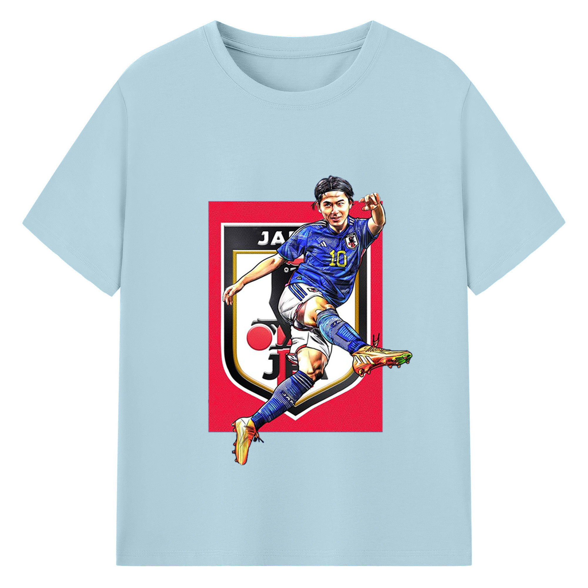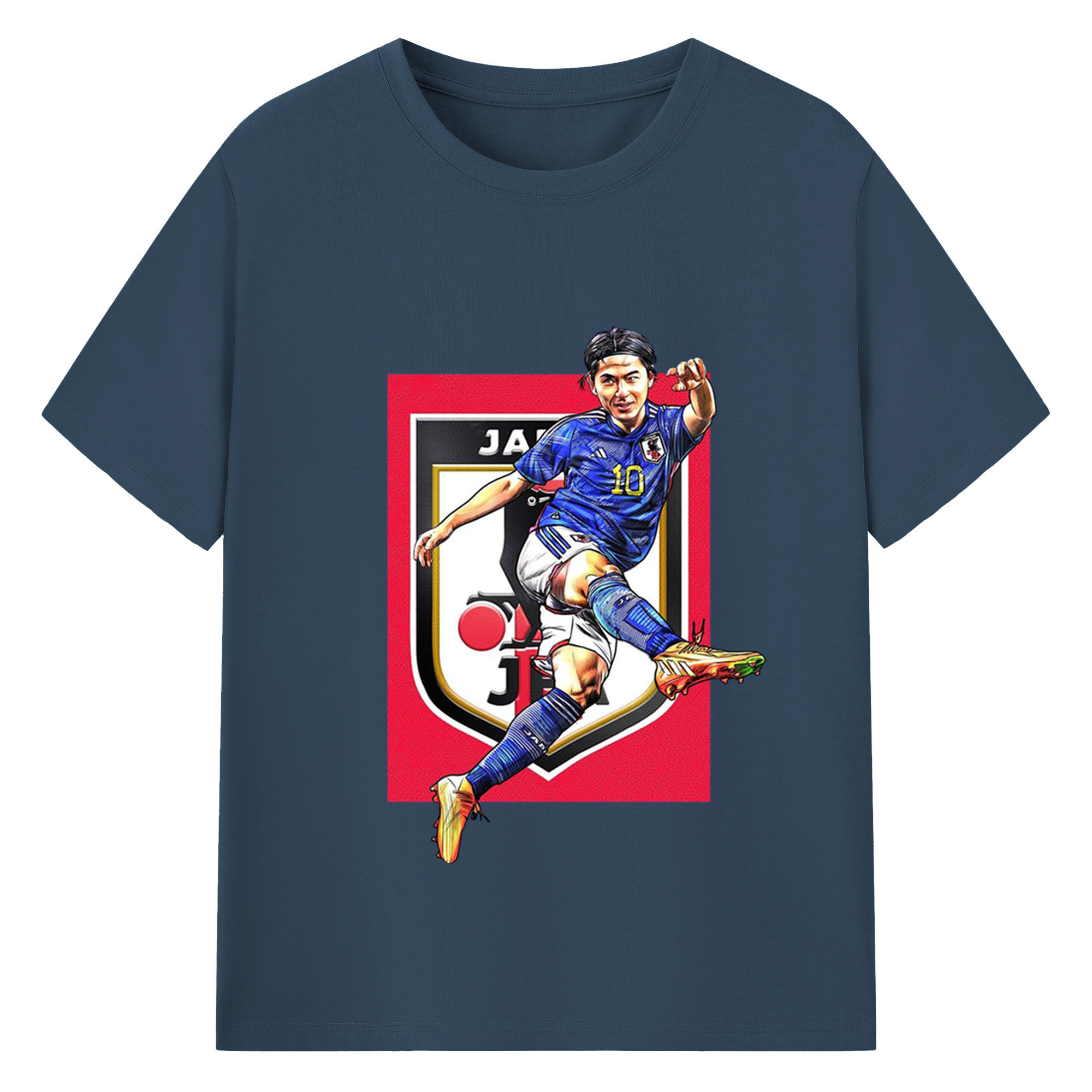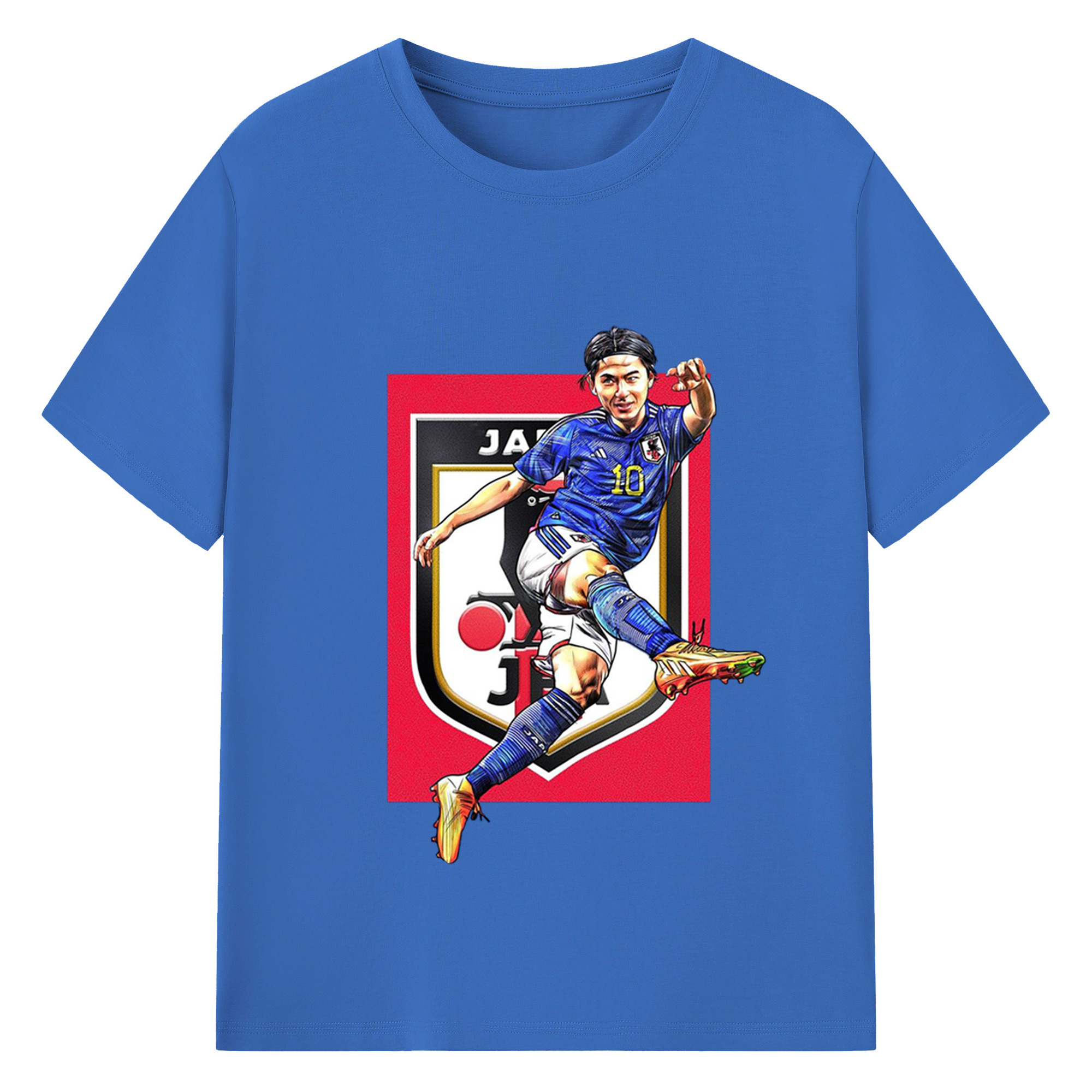サムライブルー - 綿100% 半袖Tシャツ ・ フロントプリント ・ 快適 通気性 ・ 日常使い 散歩 スポーツ用