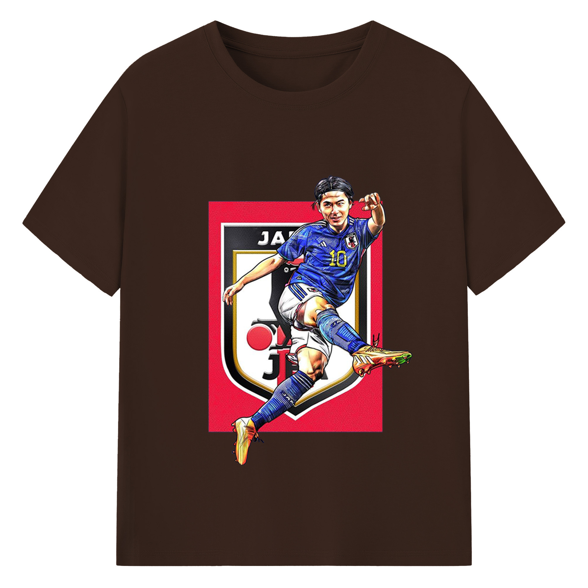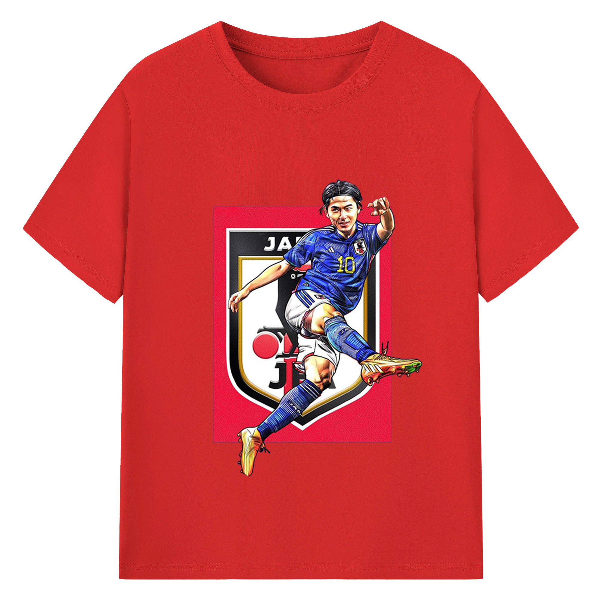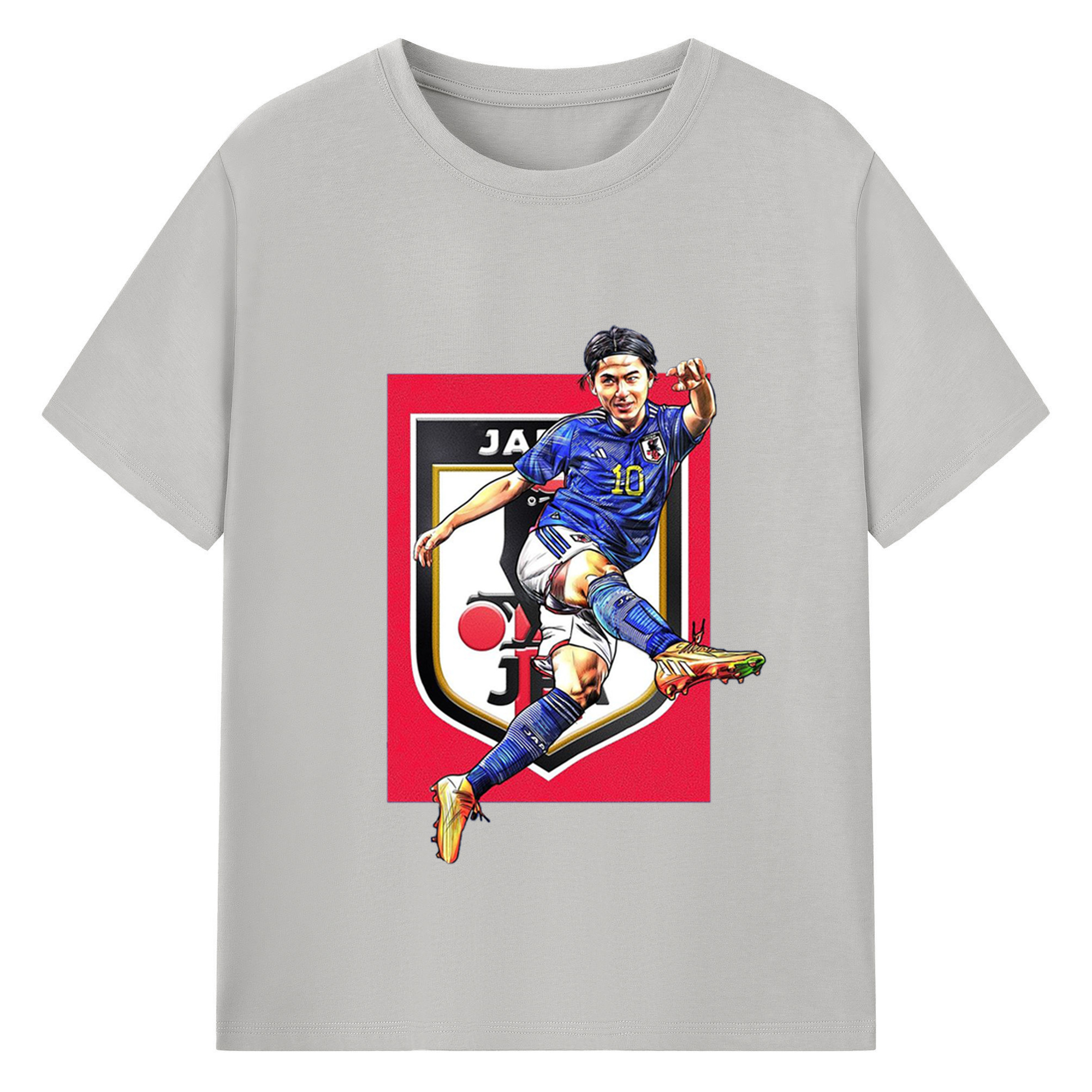 W杯 トロフィー風デザイン - 綿100% 半袖Tシャツ ・ フロントプリント ・ 快適 通気性 ・ 日常使い 散歩 スポーツ用