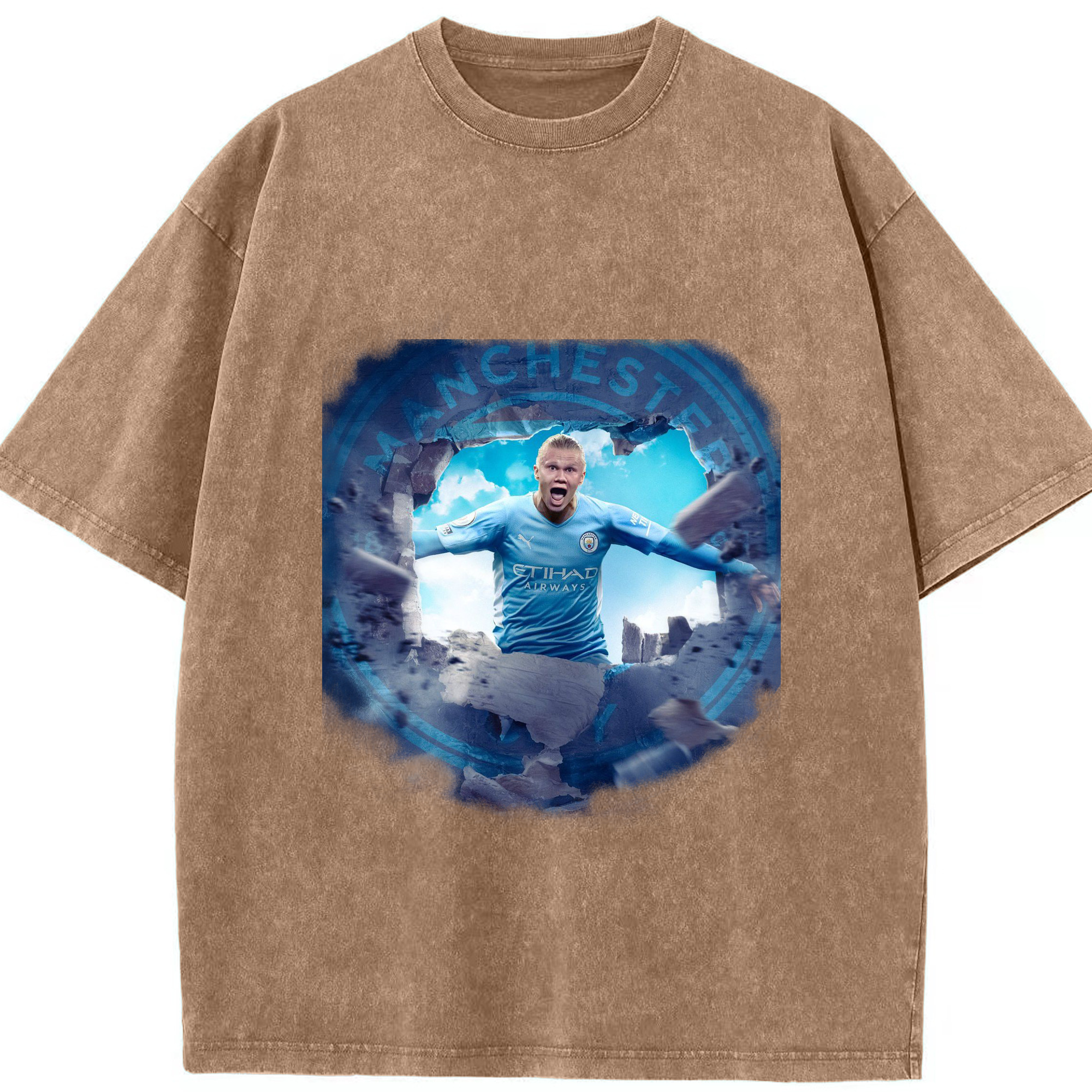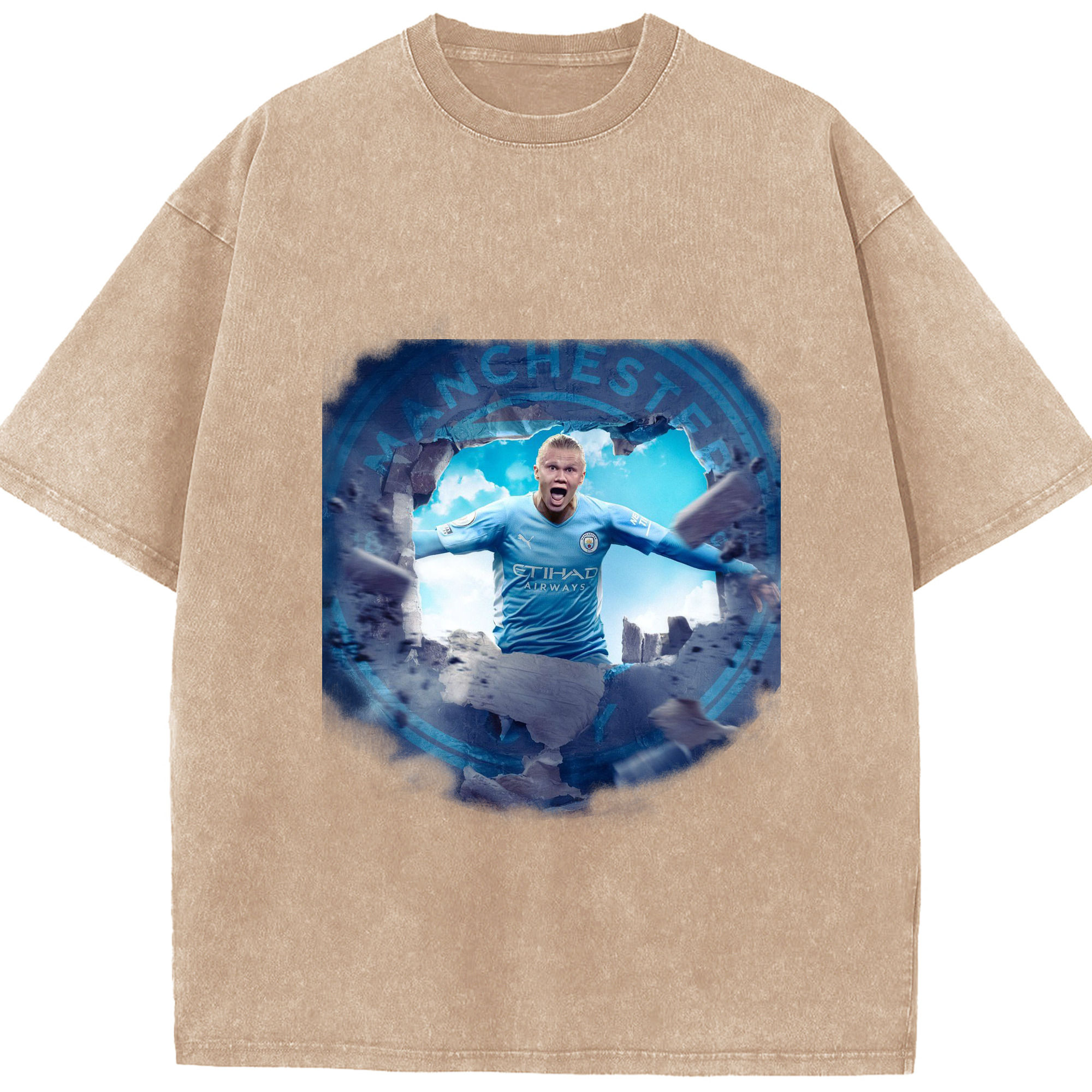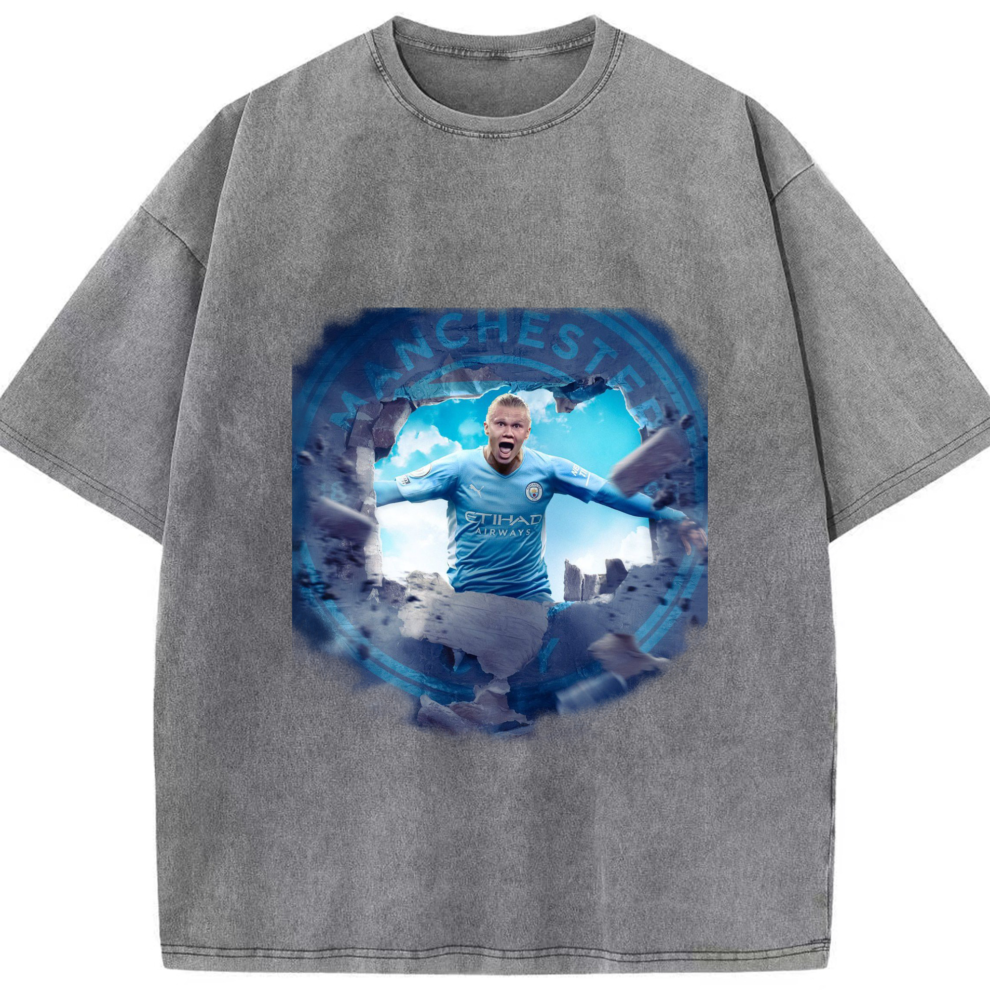 GOAL MACHINE エーリング・ハーランド爆走中 - 綿100% ヴィンテージ風 半袖Tシャツ ・ フロントプリント ・ 柔らか肌触り ・ 通気性 快適 ・ スポーツ カジュアル 外出用