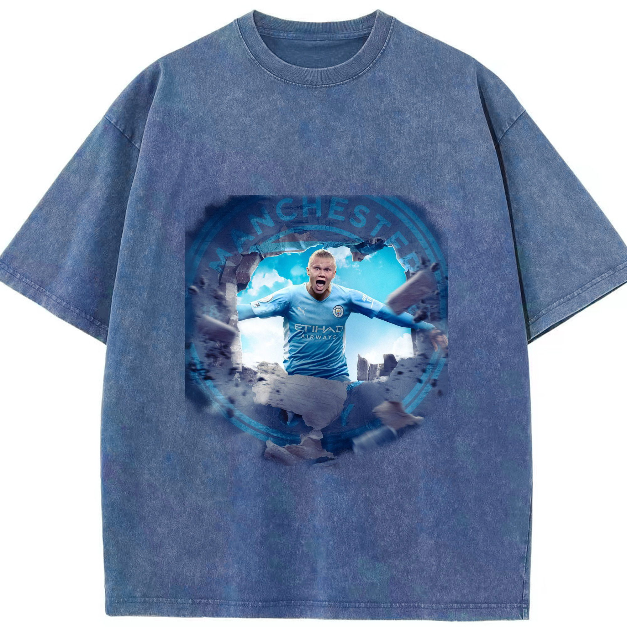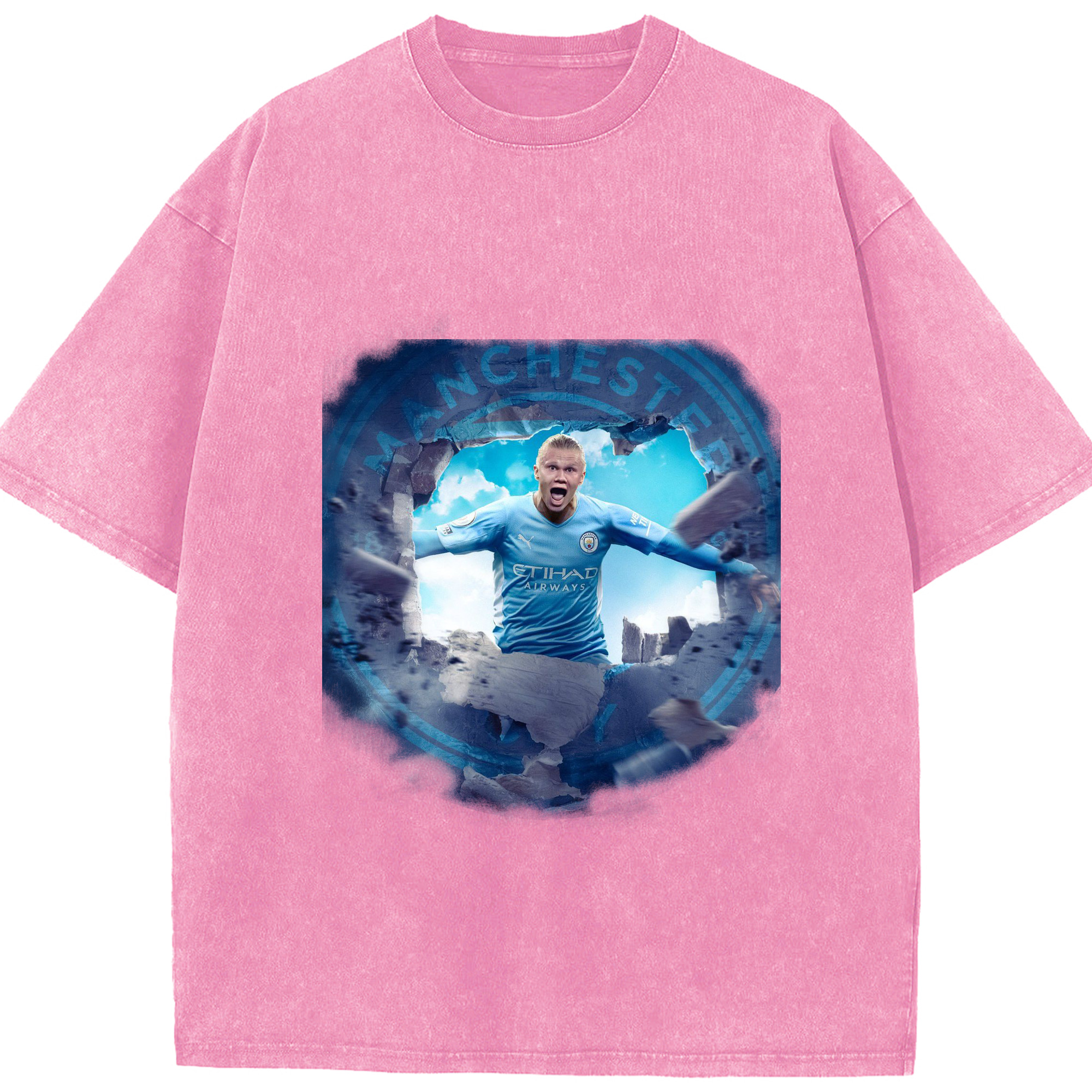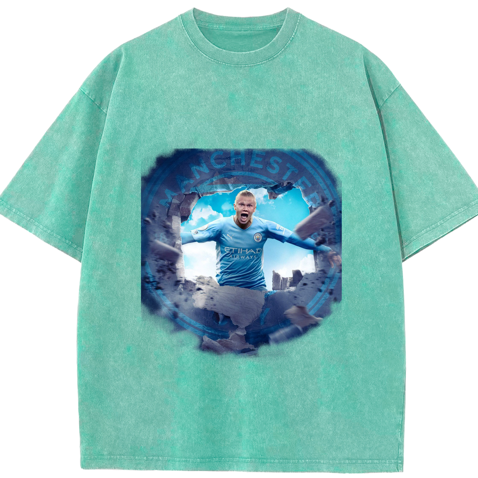 GOAL MACHINE エーリング・ハーランド爆走中 - 綿100% ヴィンテージ風 半袖Tシャツ ・ フロントプリント ・ 柔らか肌触り ・ 通気性 快適 ・ スポーツ カジュアル 外出用
