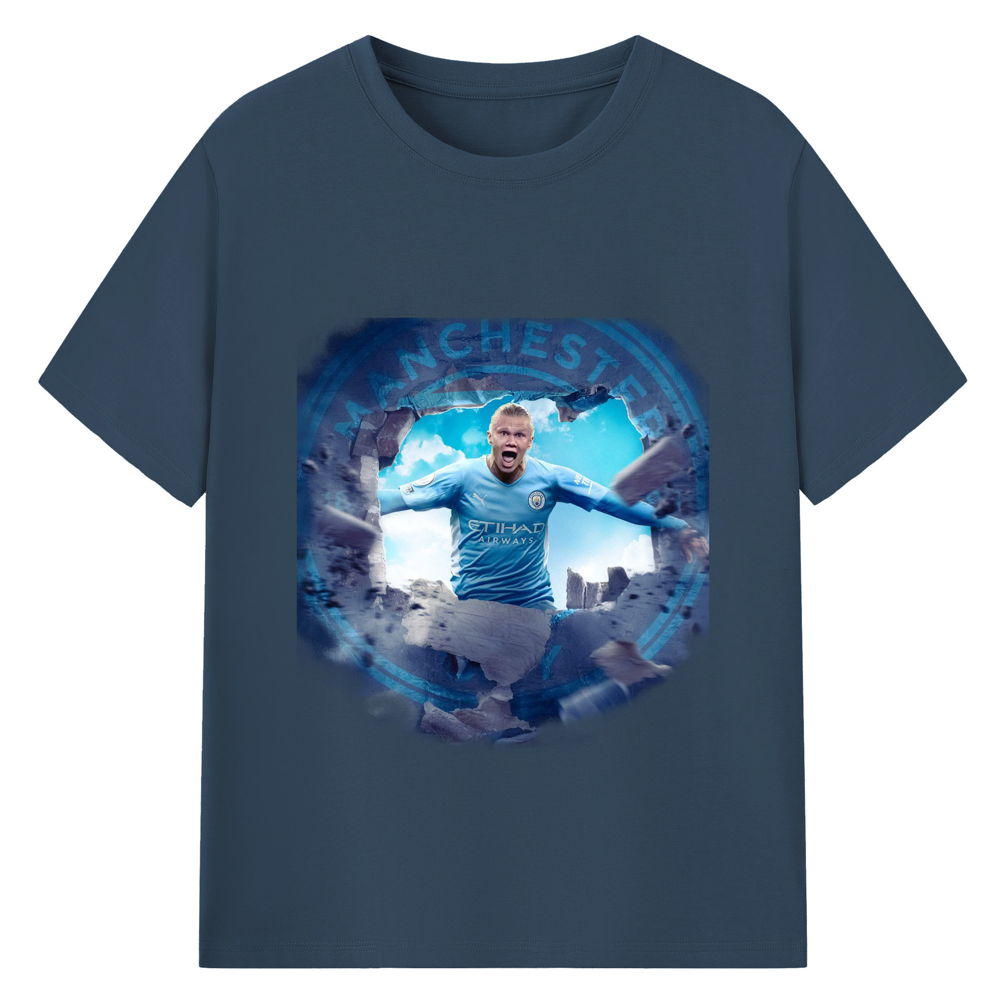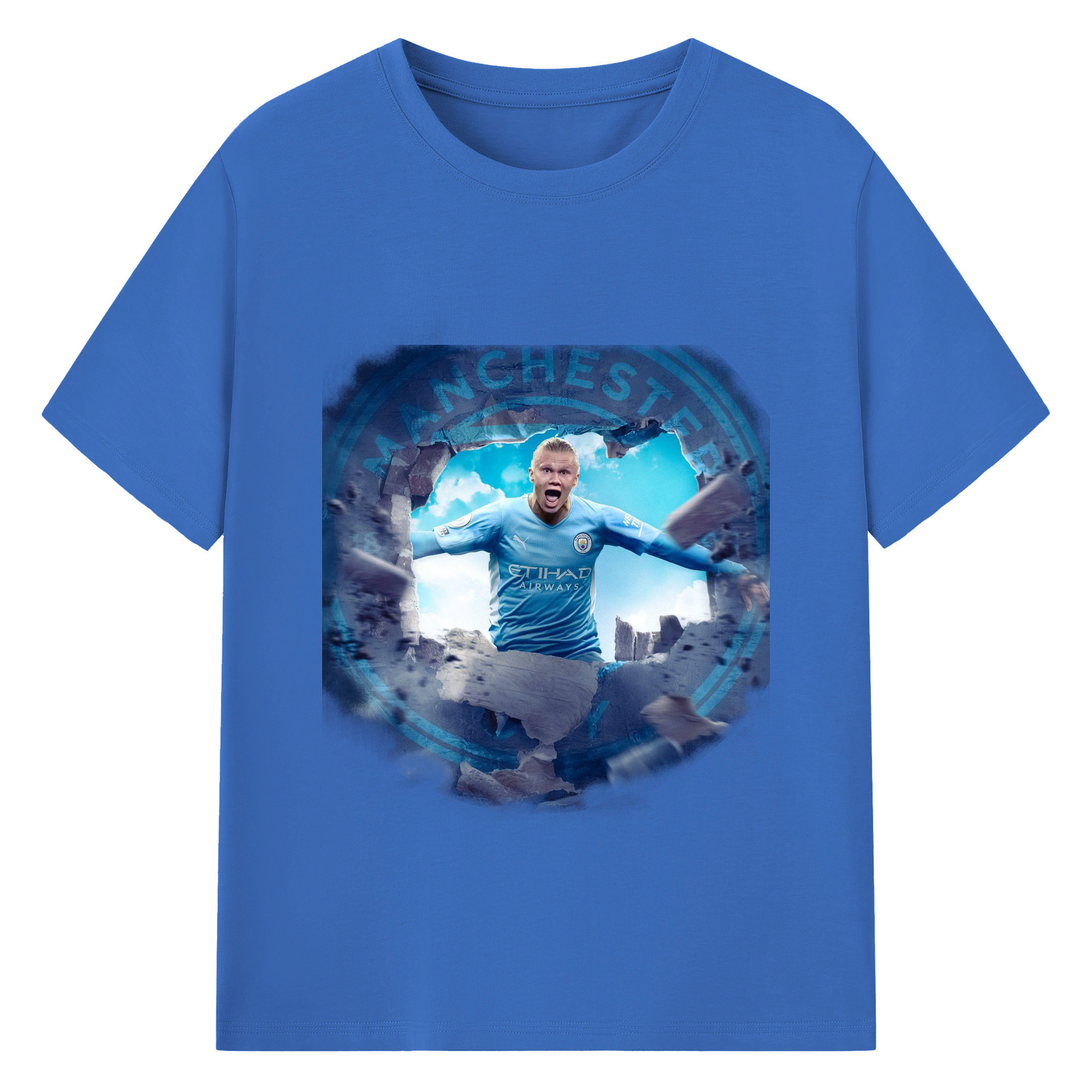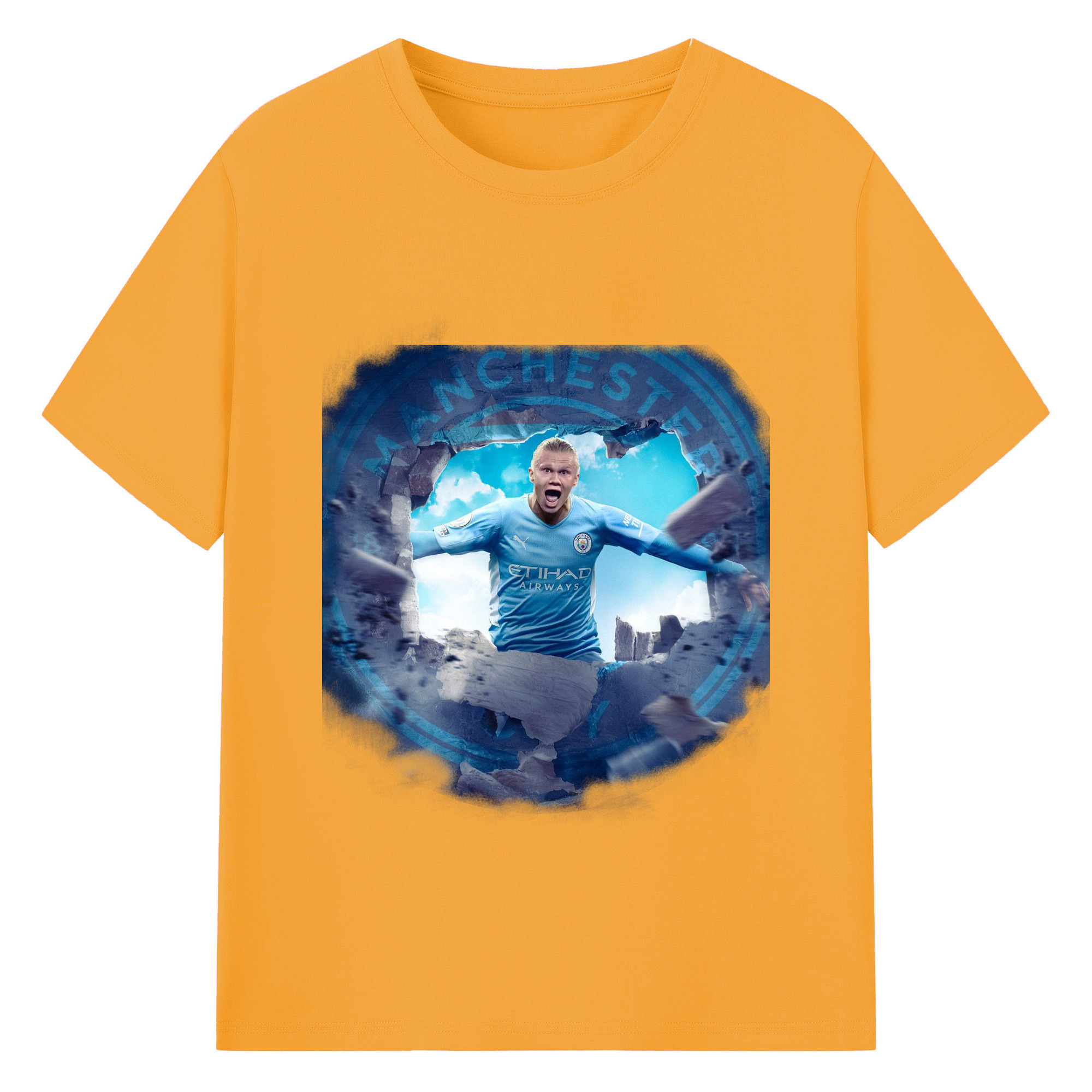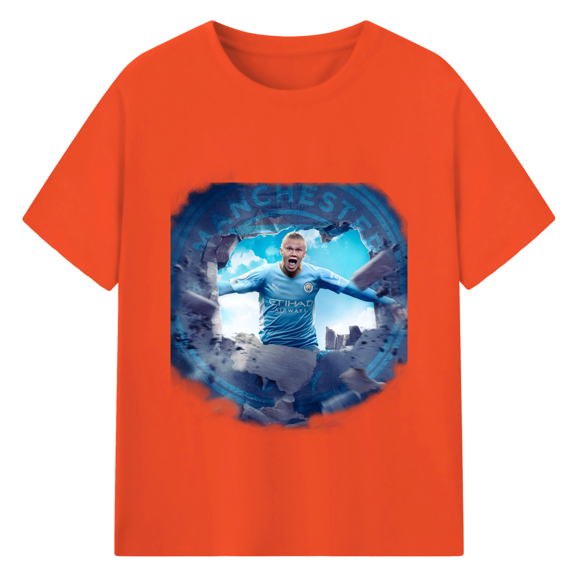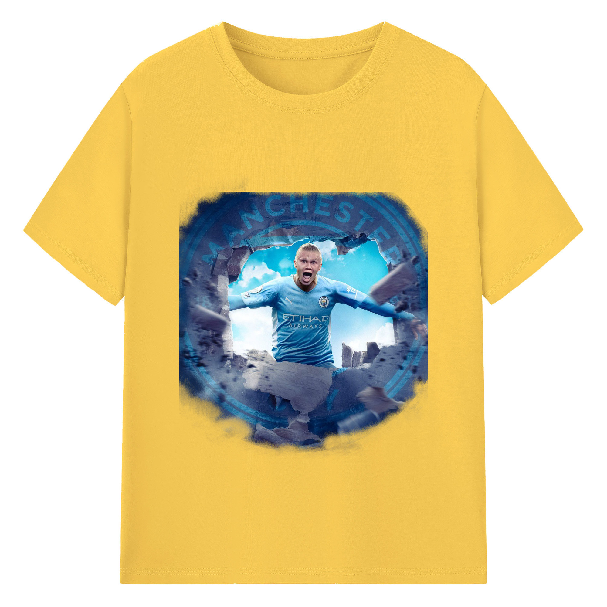 Erling Haaland 世界を震わす一撃 - 綿100% 半袖Tシャツ ・ フロントプリント ・ 快適 通気性 ・ 日常使い 散歩 スポーツ用