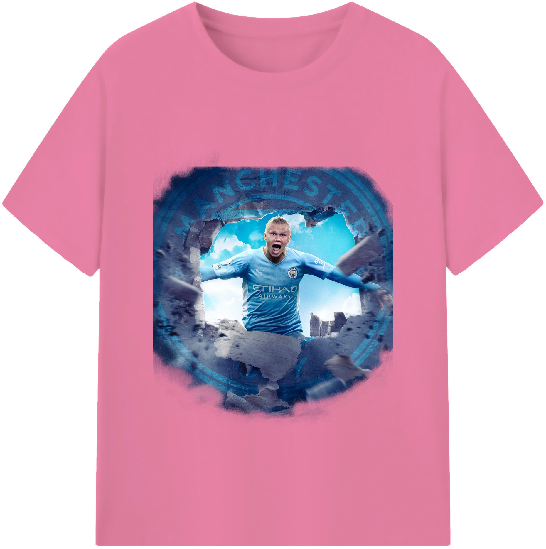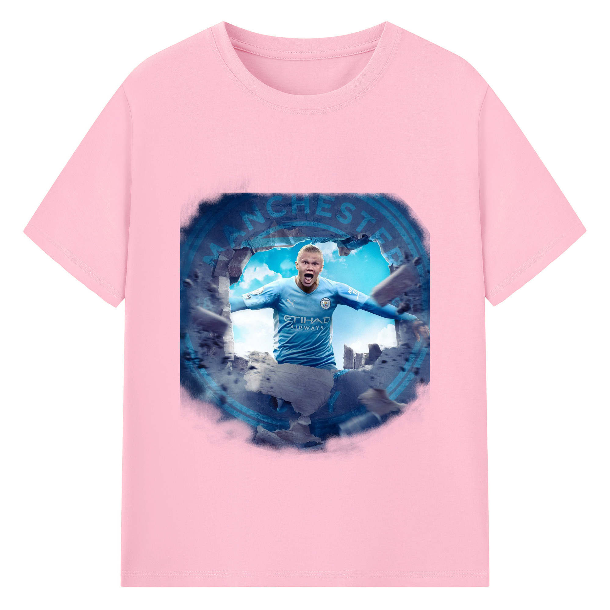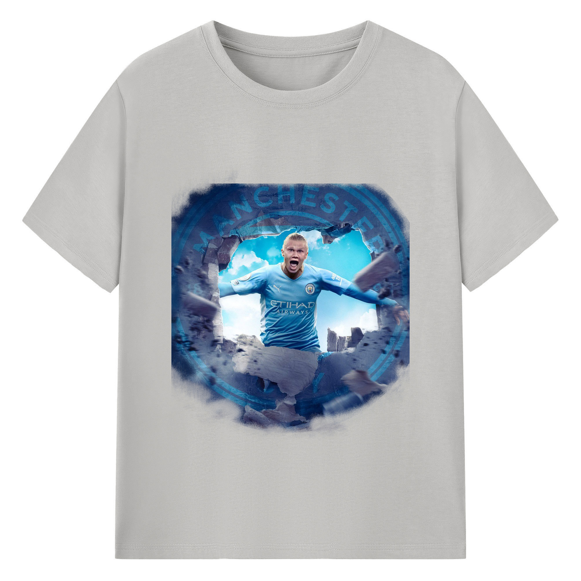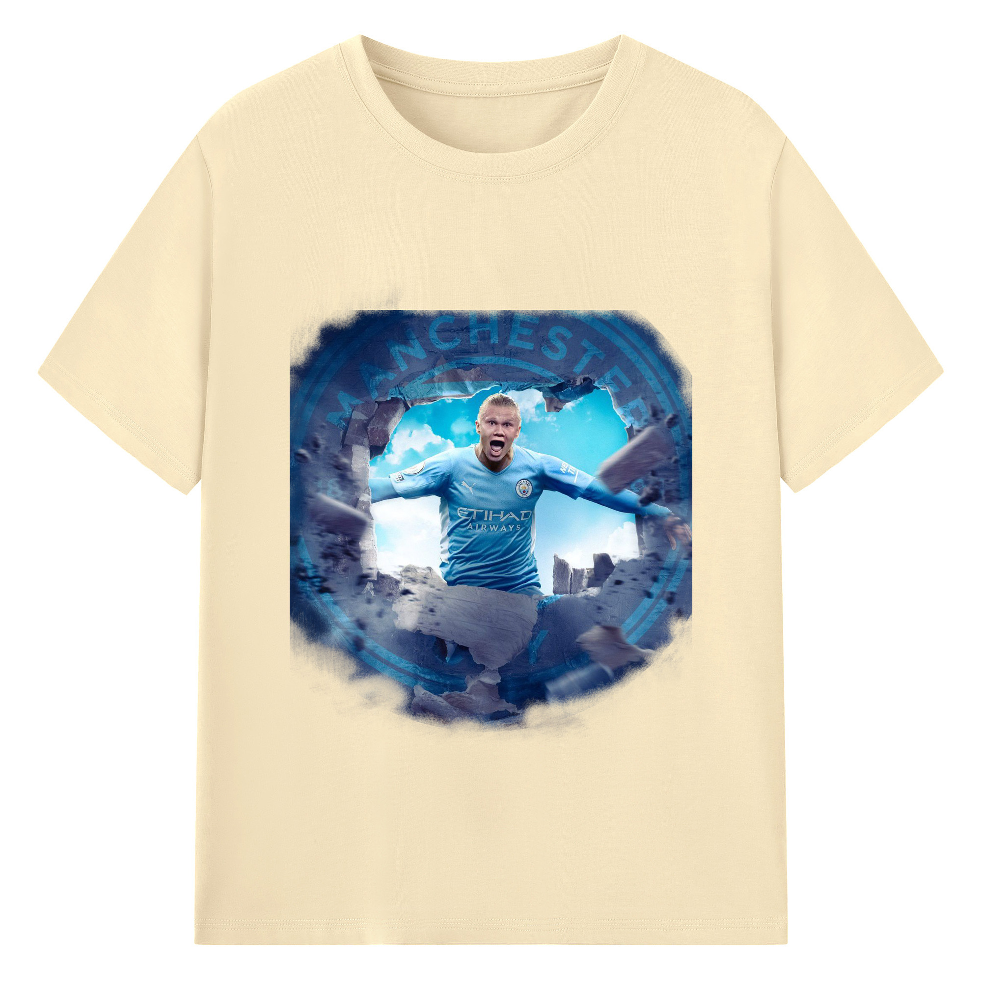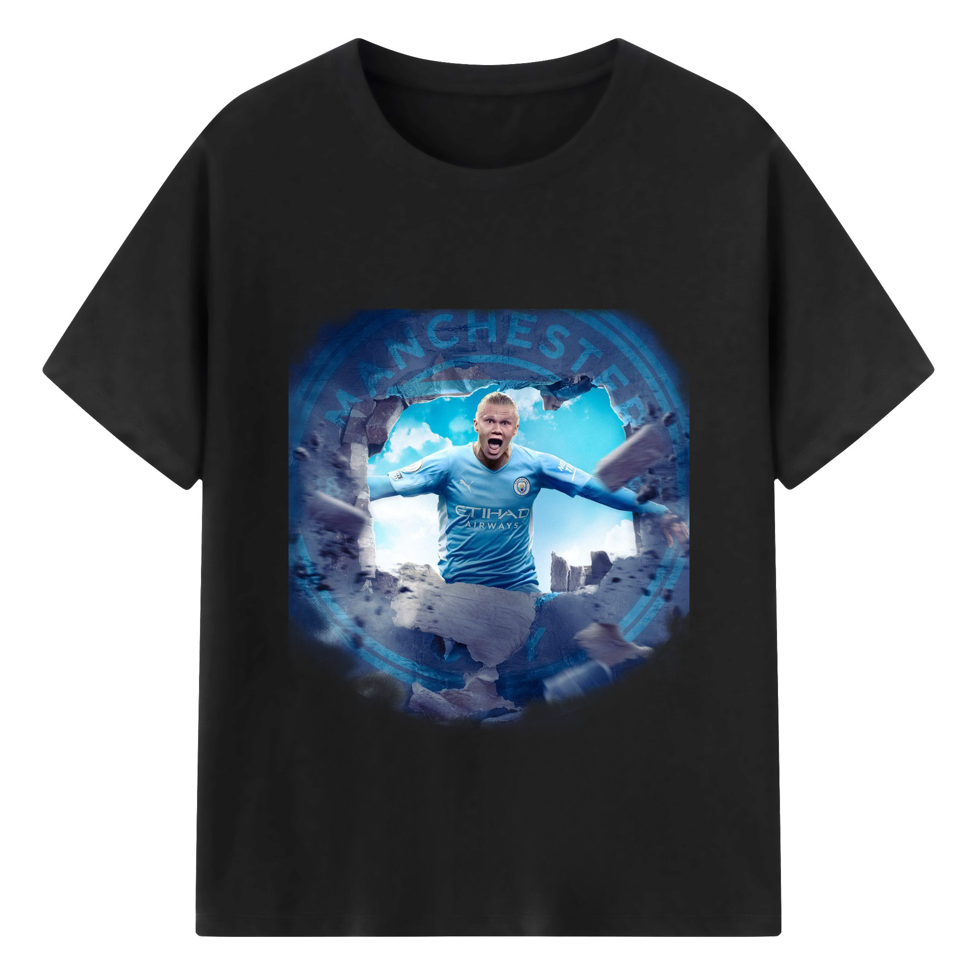 Erling Haaland 世界を震わす一撃 - 綿100% 半袖Tシャツ ・ フロントプリント ・ 快適 通気性 ・ 日常使い 散歩 スポーツ用