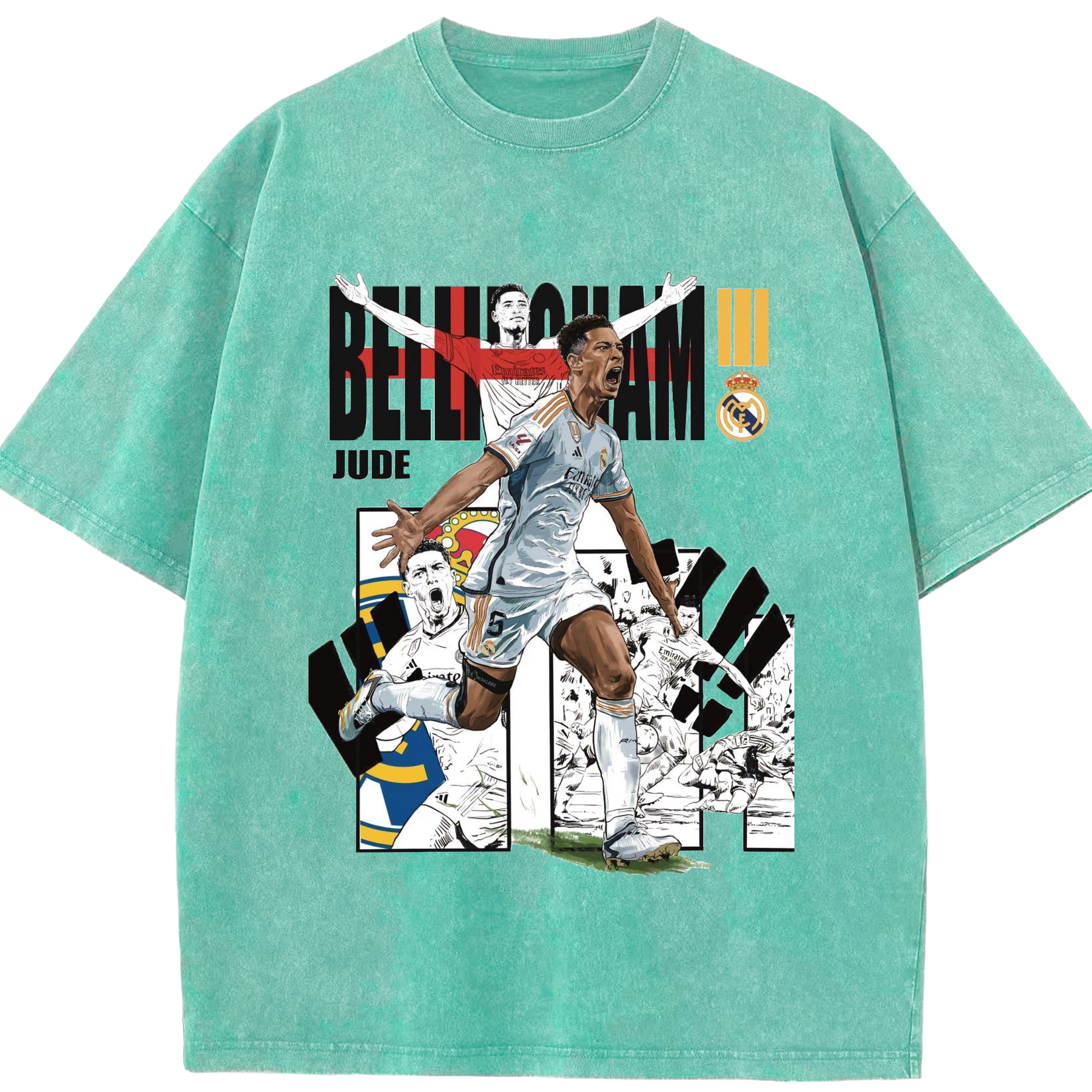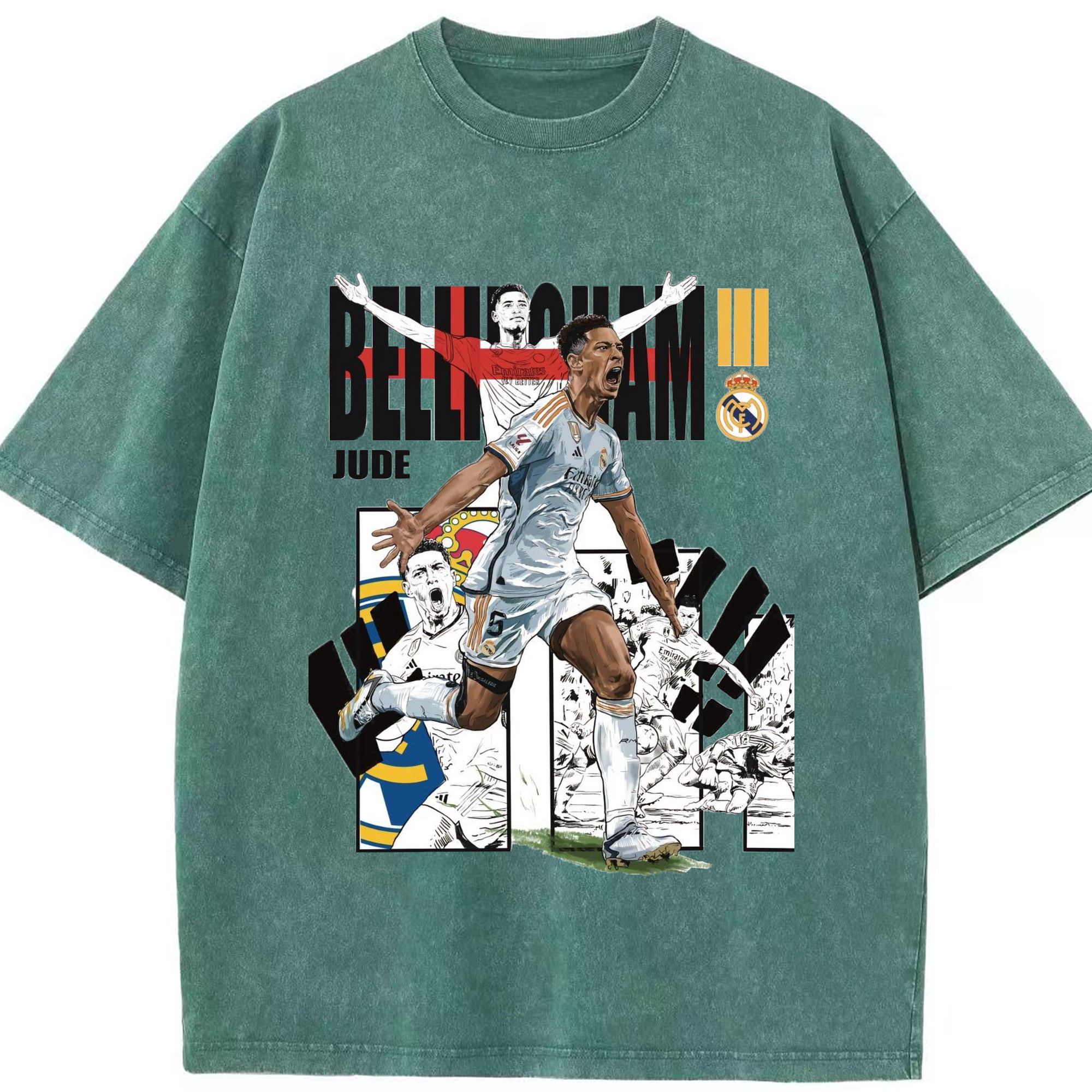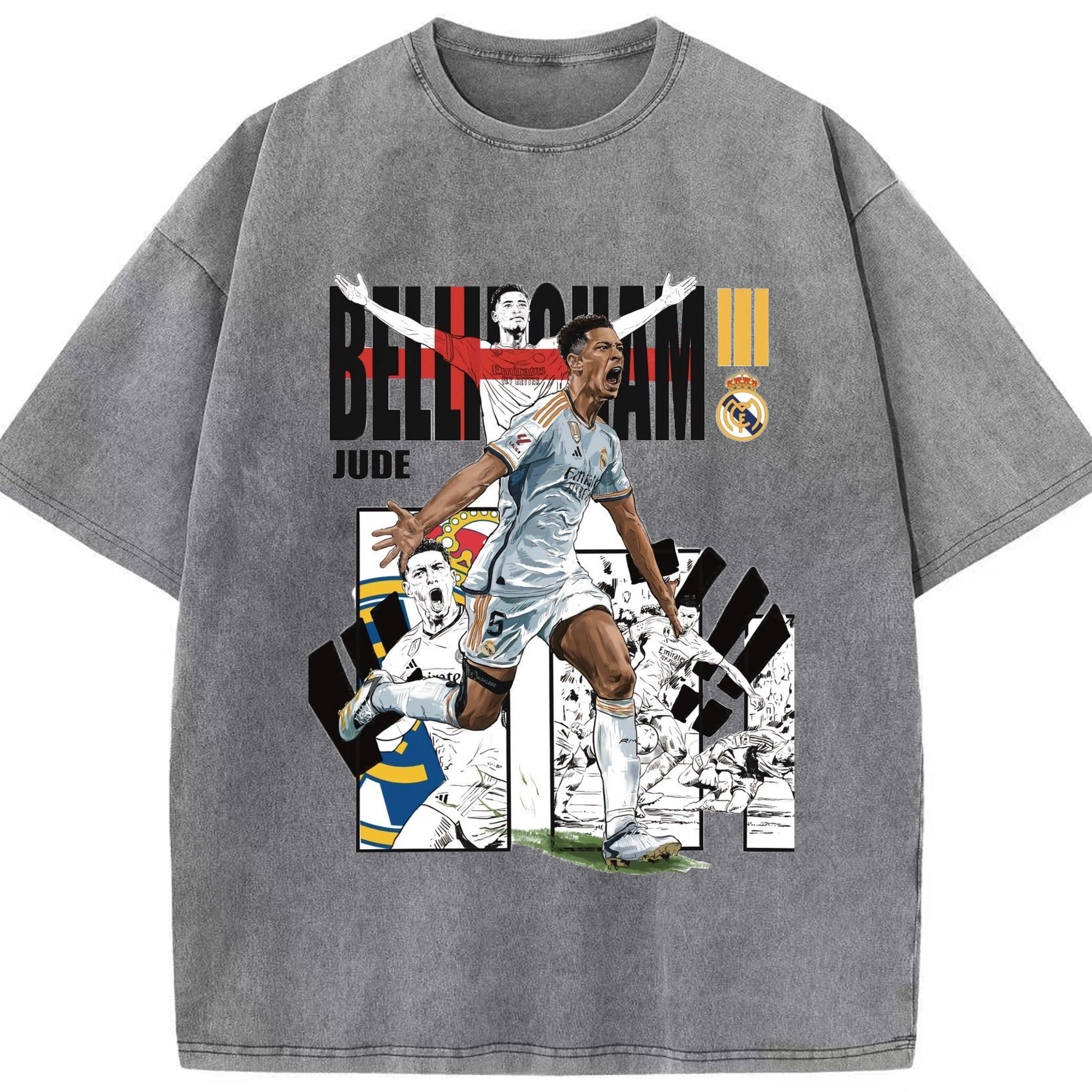 話題の若手スター!ベリンガムプリント - 綿100% ヴィンテージ風 半袖Tシャツ ・ フロントプリント ・ 柔らか肌触り ・ 通気性 快適 ・ スポーツ カジュアル 外出用