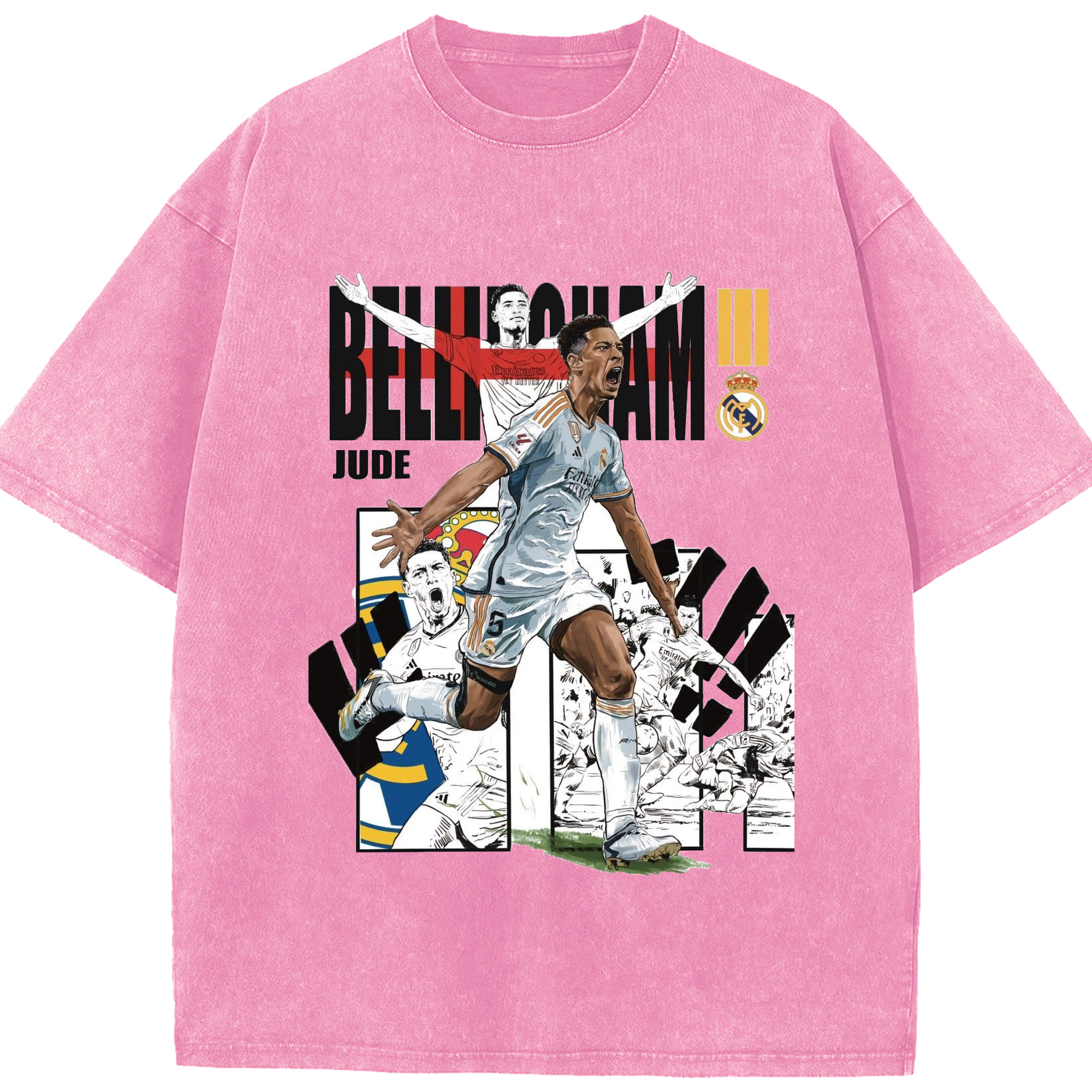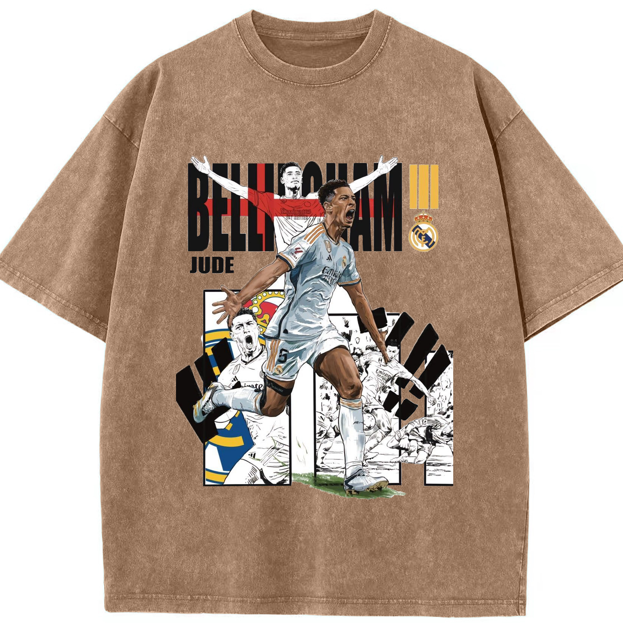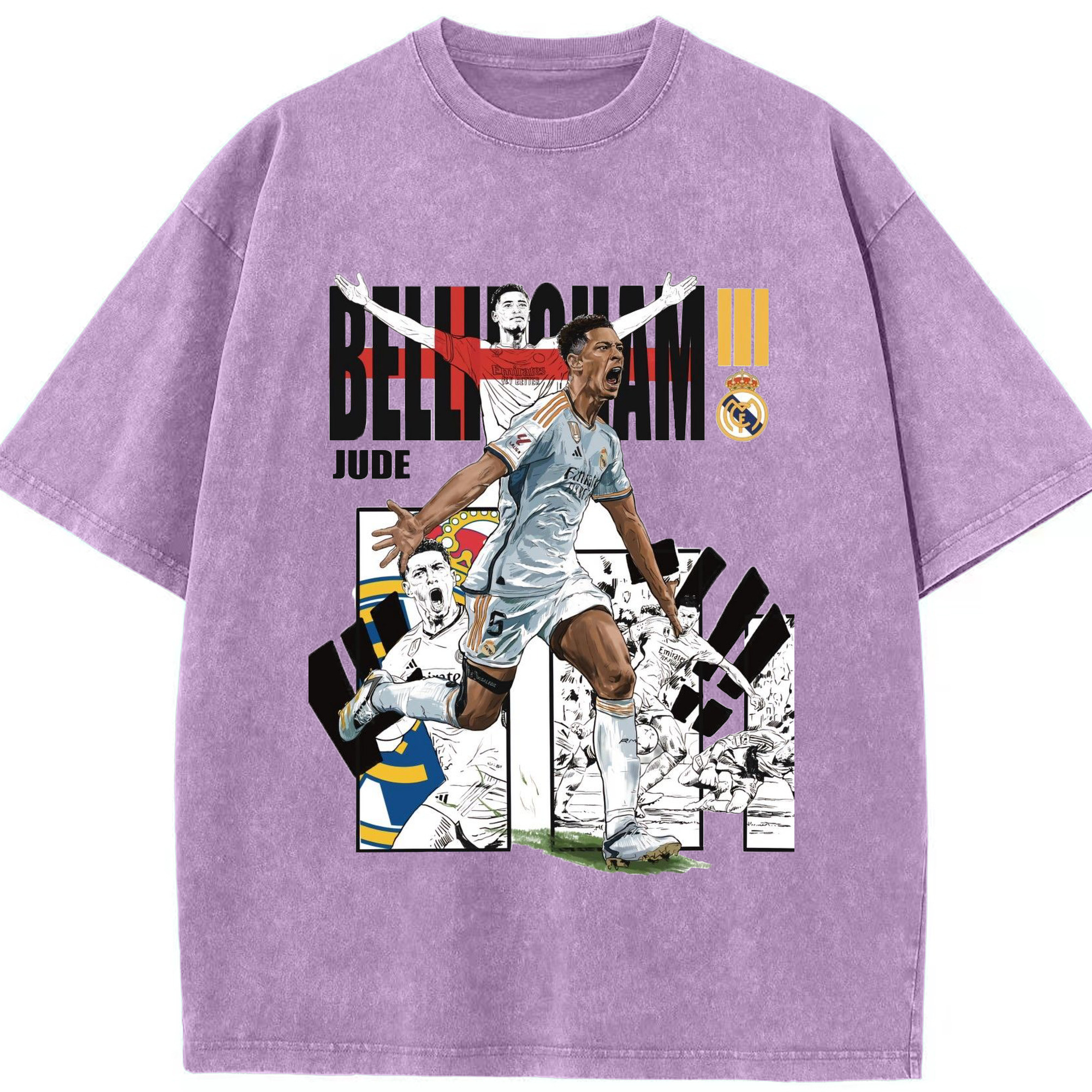 話題の若手スター!ベリンガムプリント - 綿100% ヴィンテージ風 半袖Tシャツ ・ フロントプリント ・ 柔らか肌触り ・ 通気性 快適 ・ スポーツ カジュアル 外出用