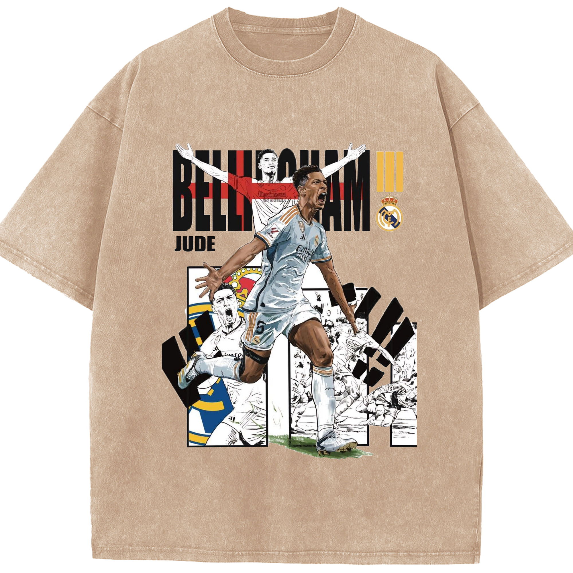 胸を張れ、若き10番!ベリンガムプリント - 綿100% ヴィンテージ風 半袖Tシャツ ・ フロントプリント ・ 柔らか肌触り ・ 通気性 快適 ・ スポーツ カジュアル 外出用