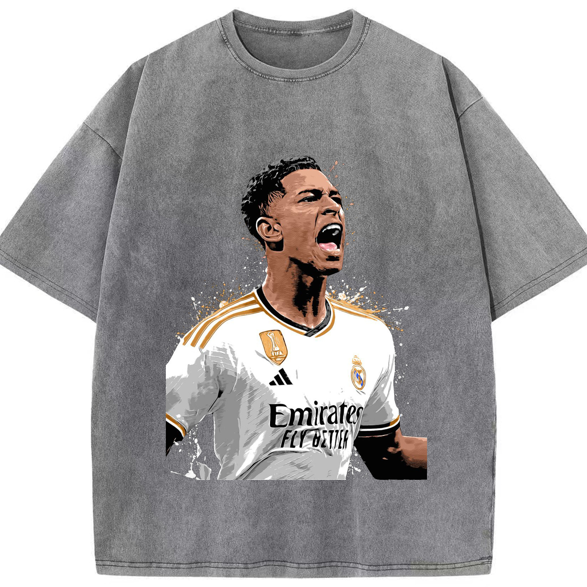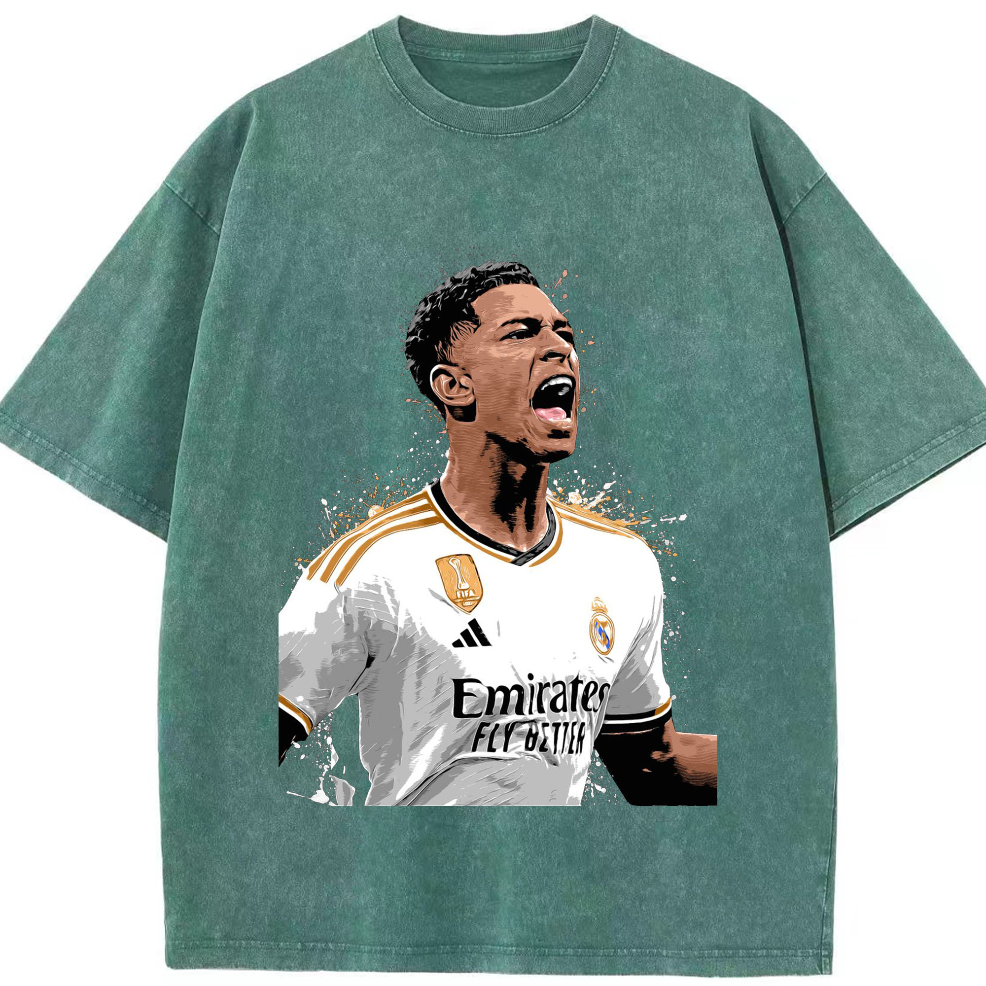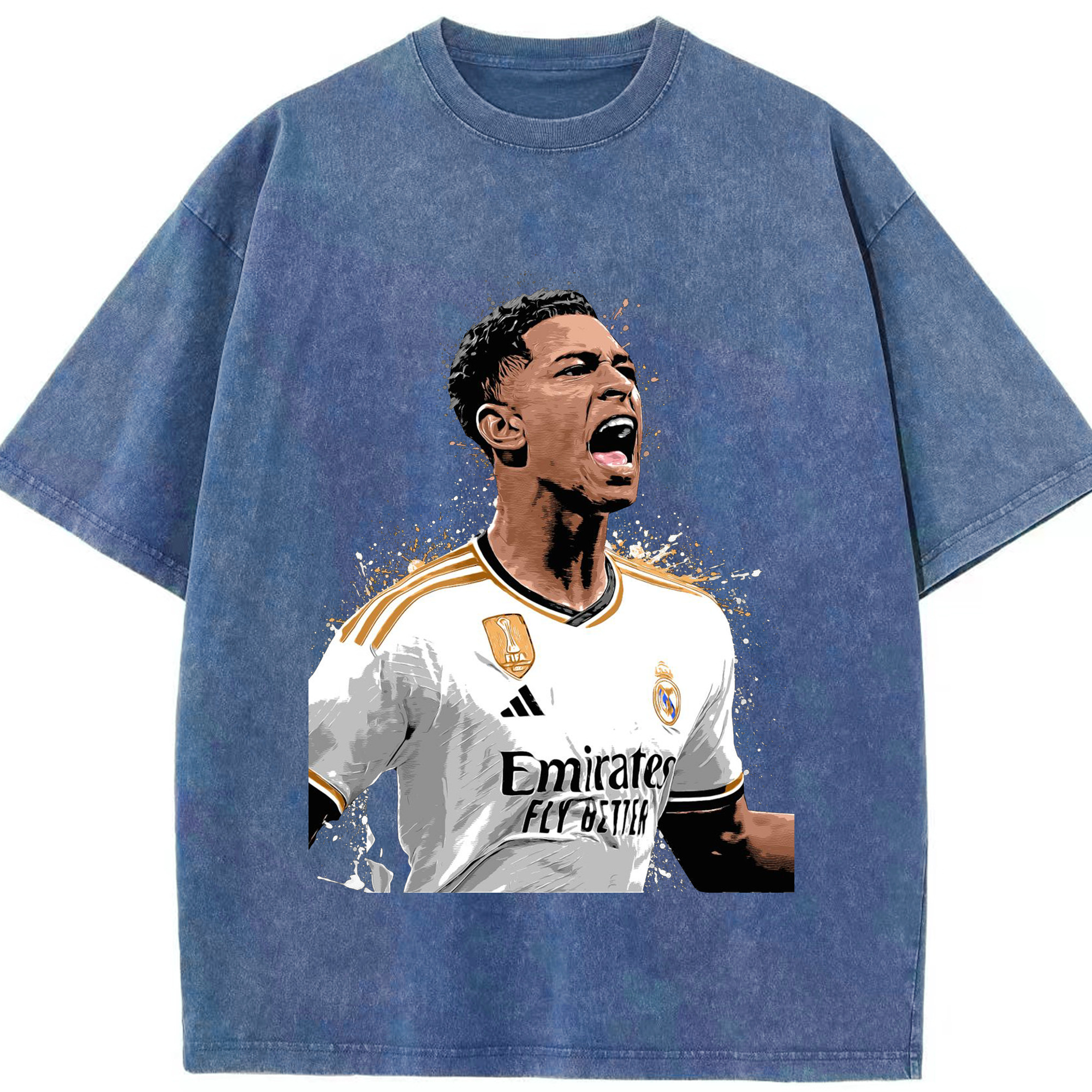 誇り高き若き王 ベリンガム - 綿100% ヴィンテージ風 半袖Tシャツ ・ フロントプリント ・ 柔らか肌触り ・ 通気性 快適 ・ スポーツ カジュアル 外出用