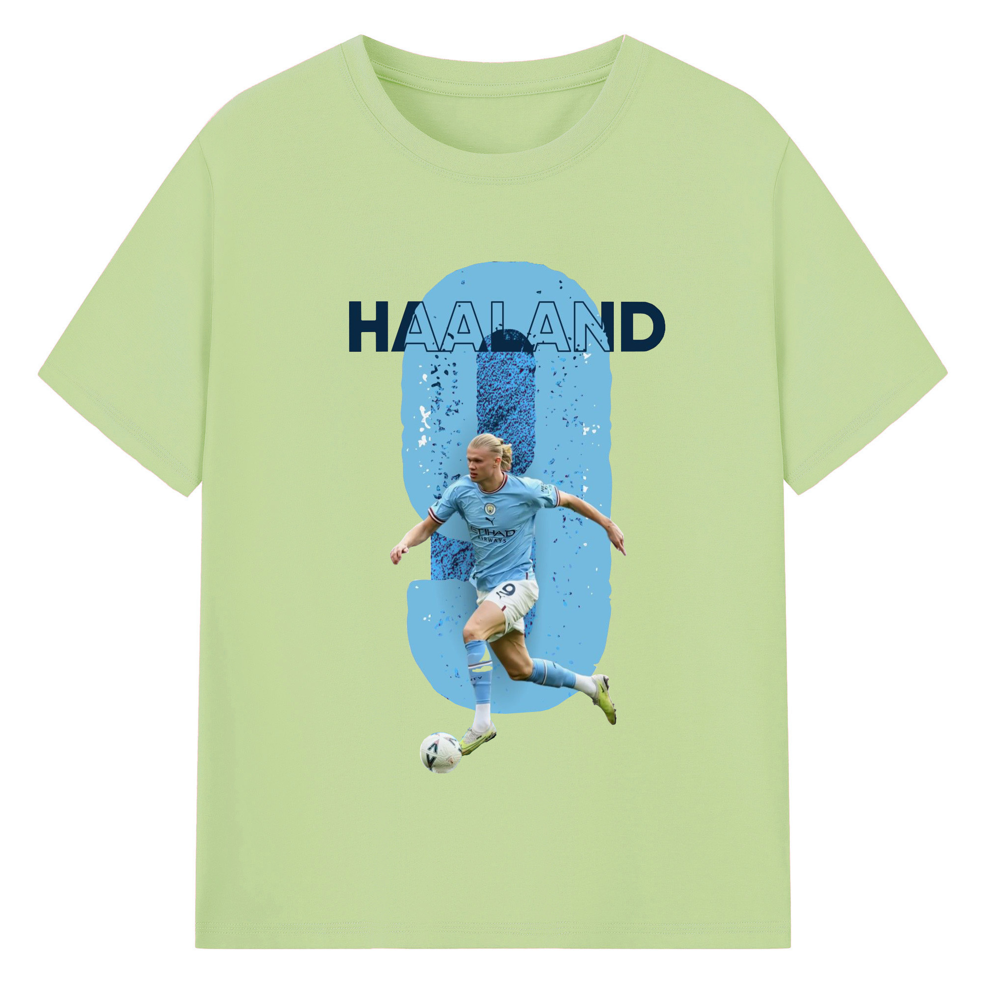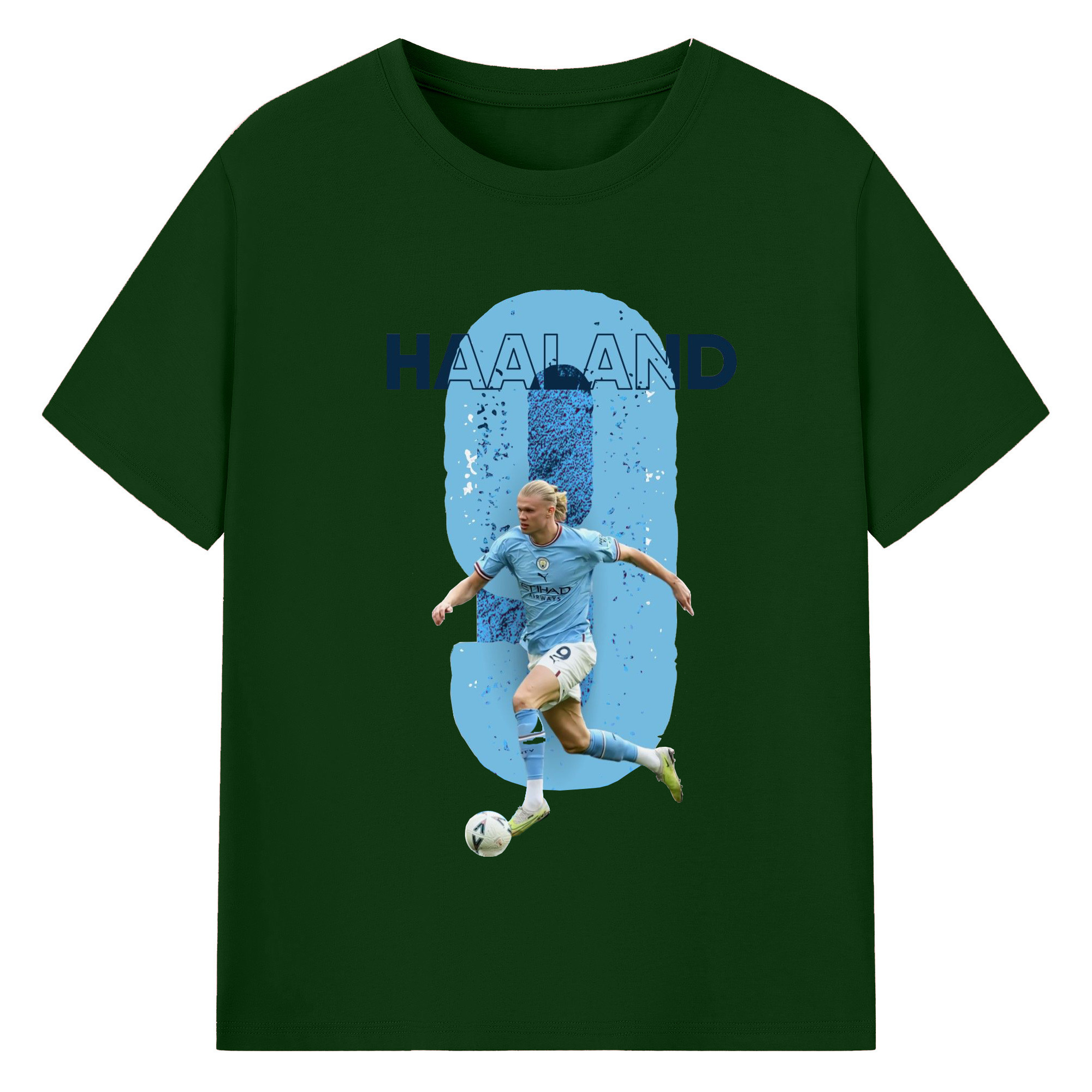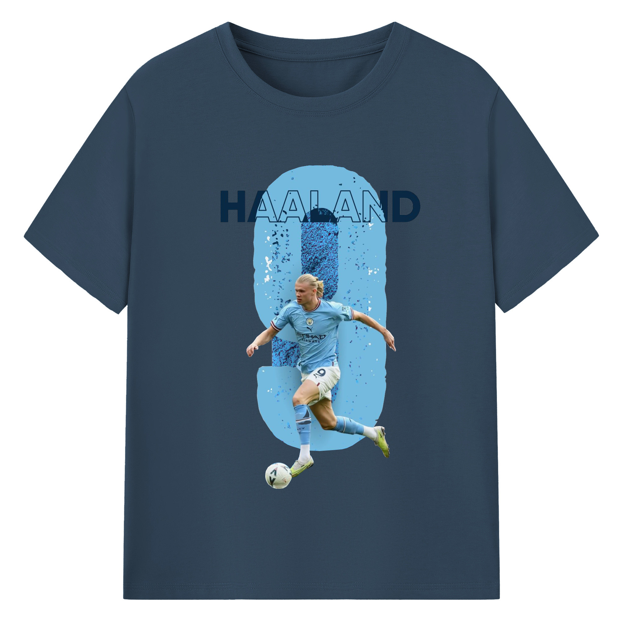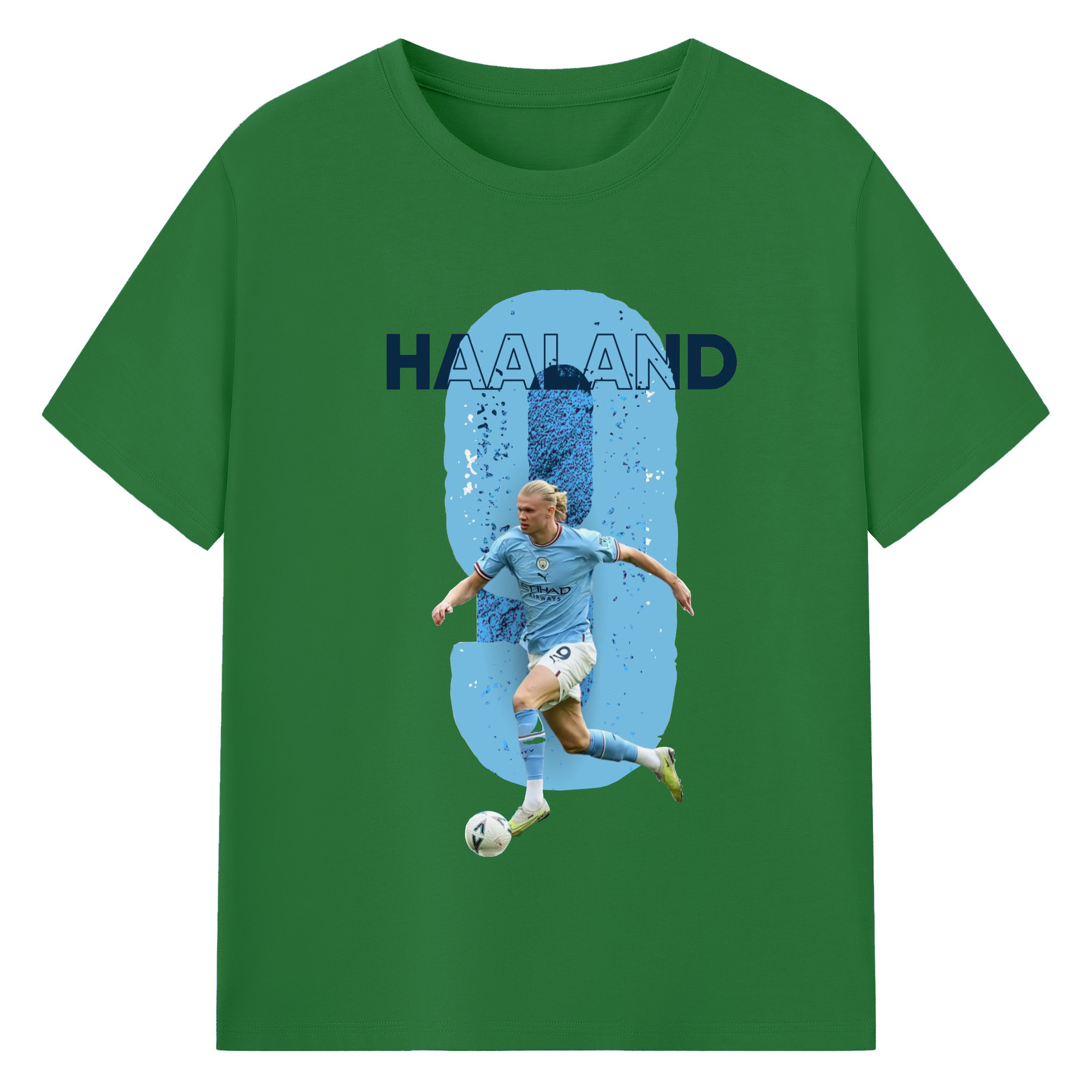 9番伝説|ピッチ支配者ハーランド - 綿100% 半袖Tシャツ ・ フロントプリント ・ 快適 通気性 ・ 日常使い 散歩 スポーツ用