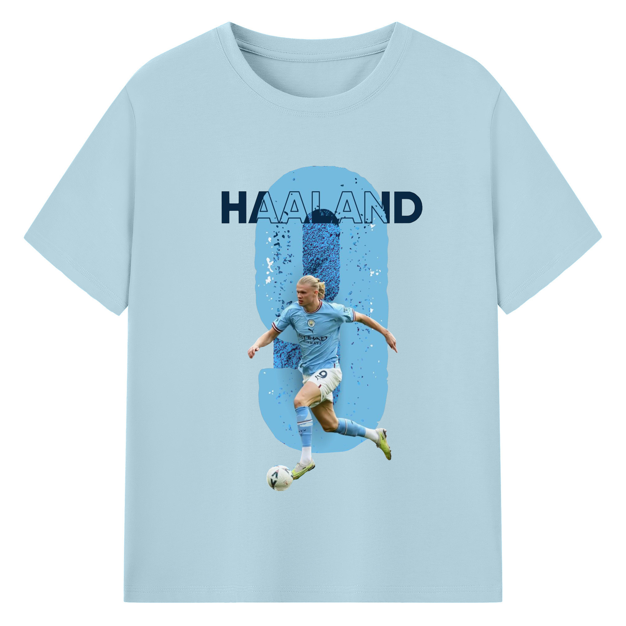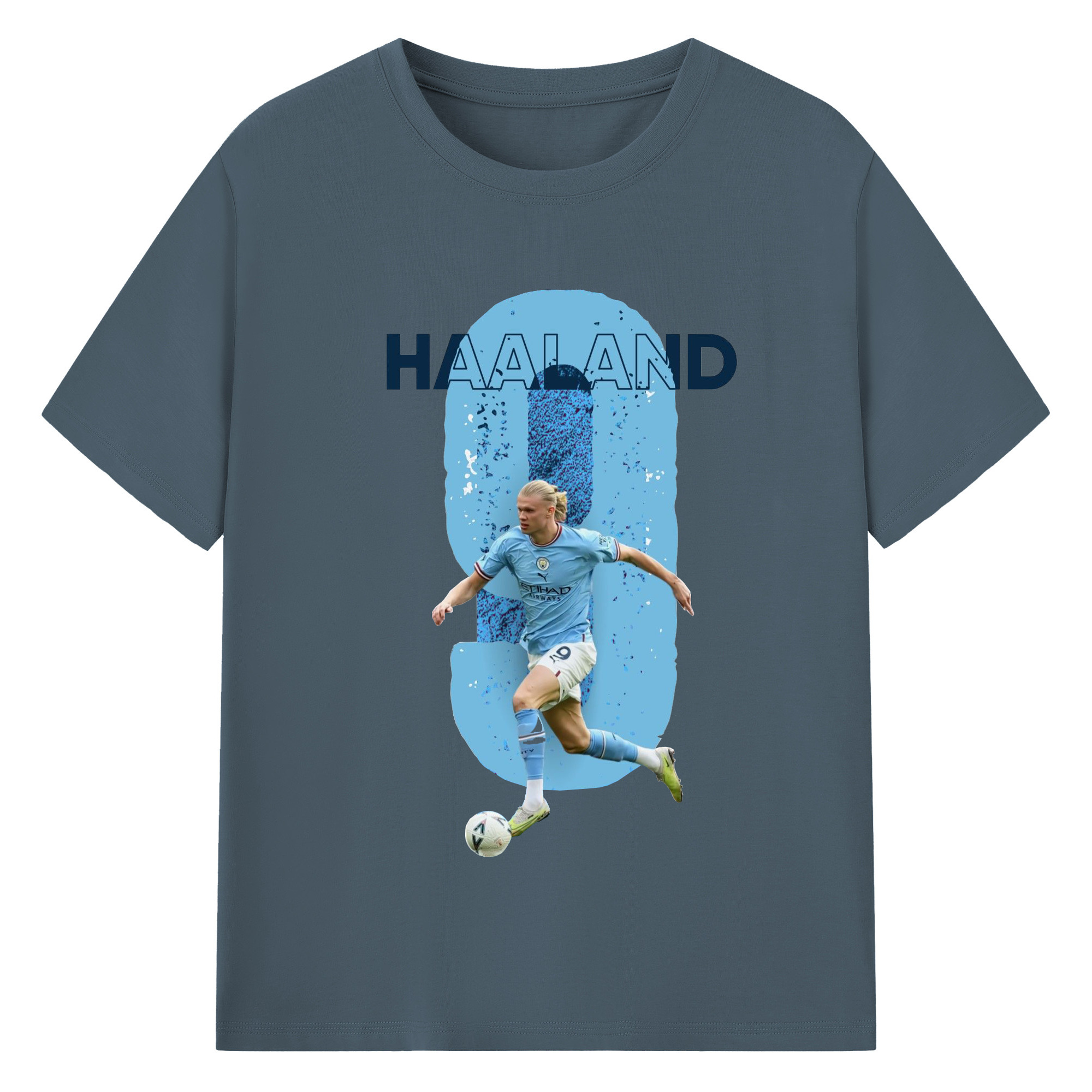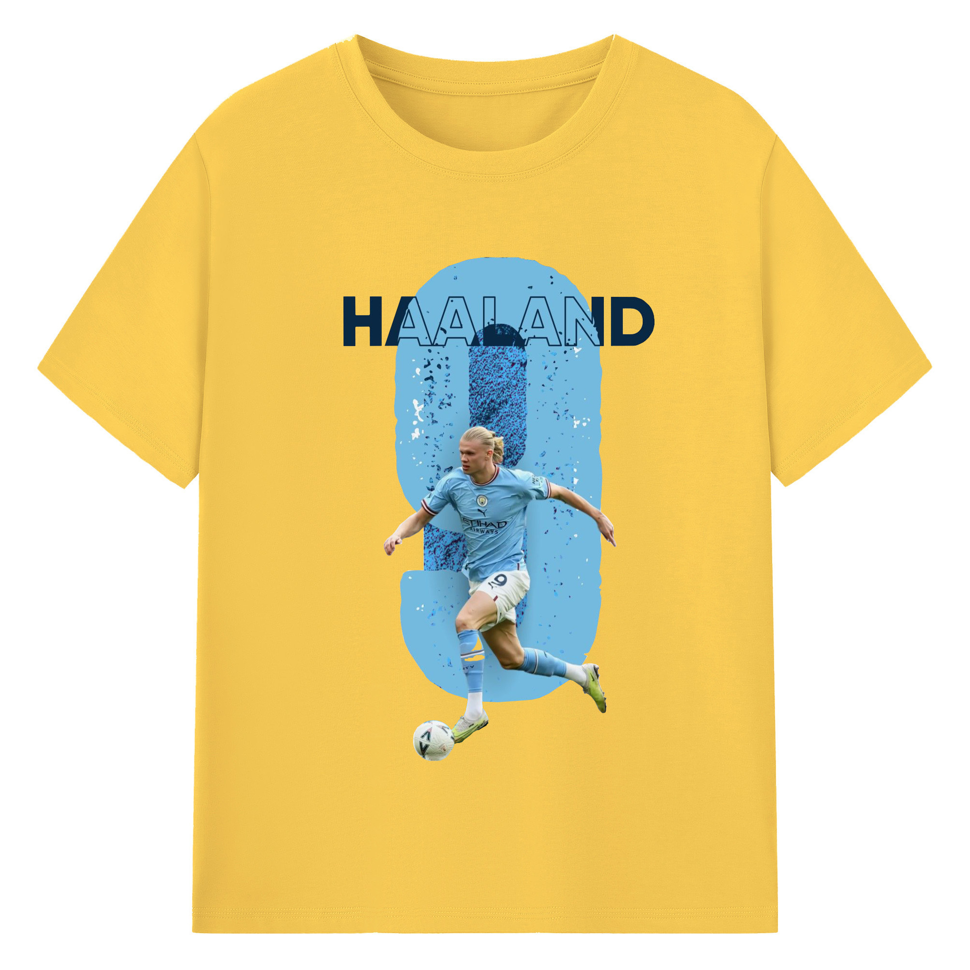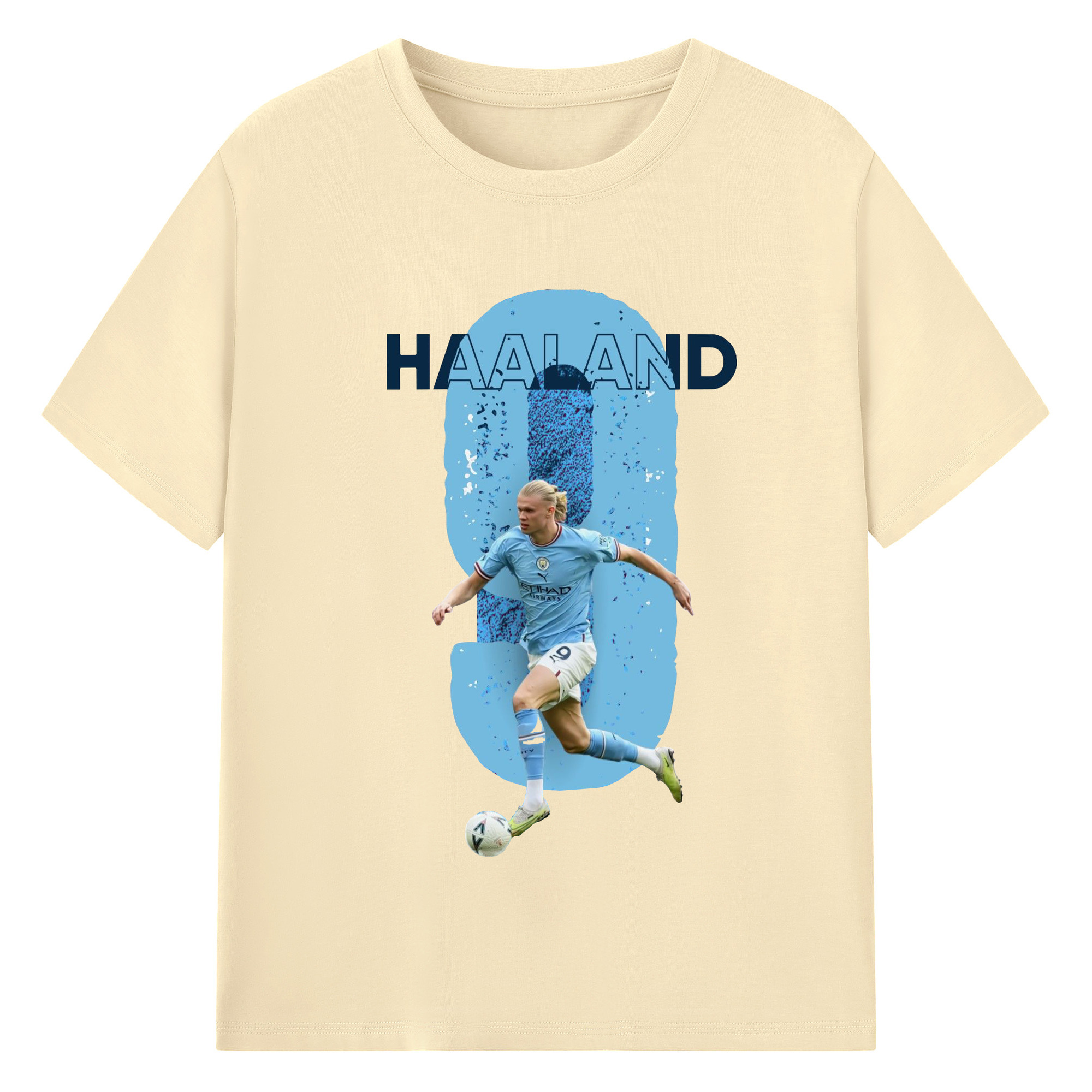 9番伝説|ピッチ支配者ハーランド - 綿100% 半袖Tシャツ ・ フロントプリント ・ 快適 通気性 ・ 日常使い 散歩 スポーツ用