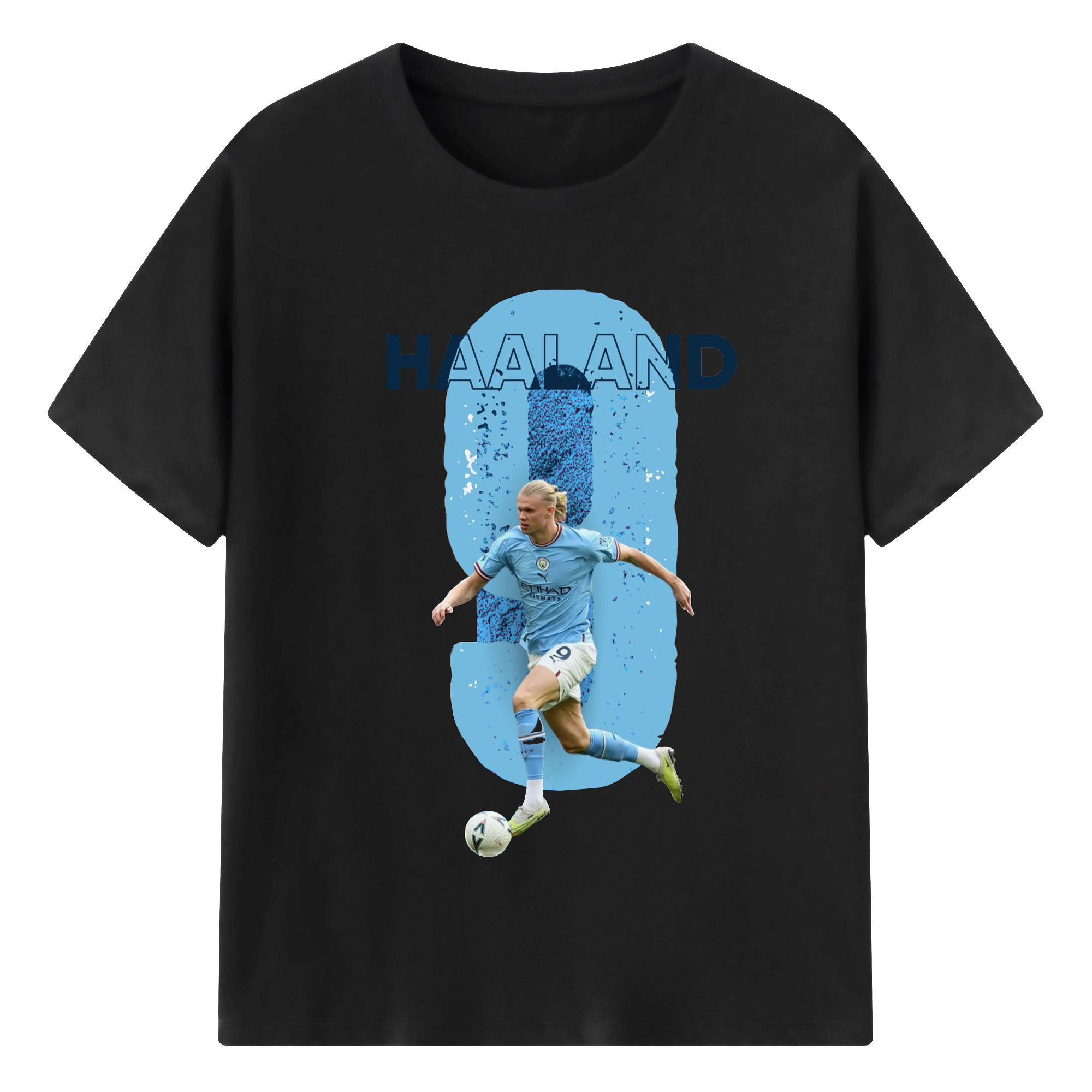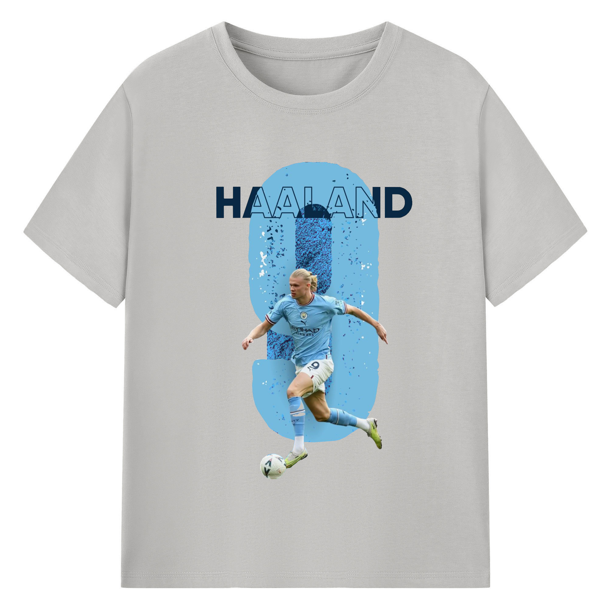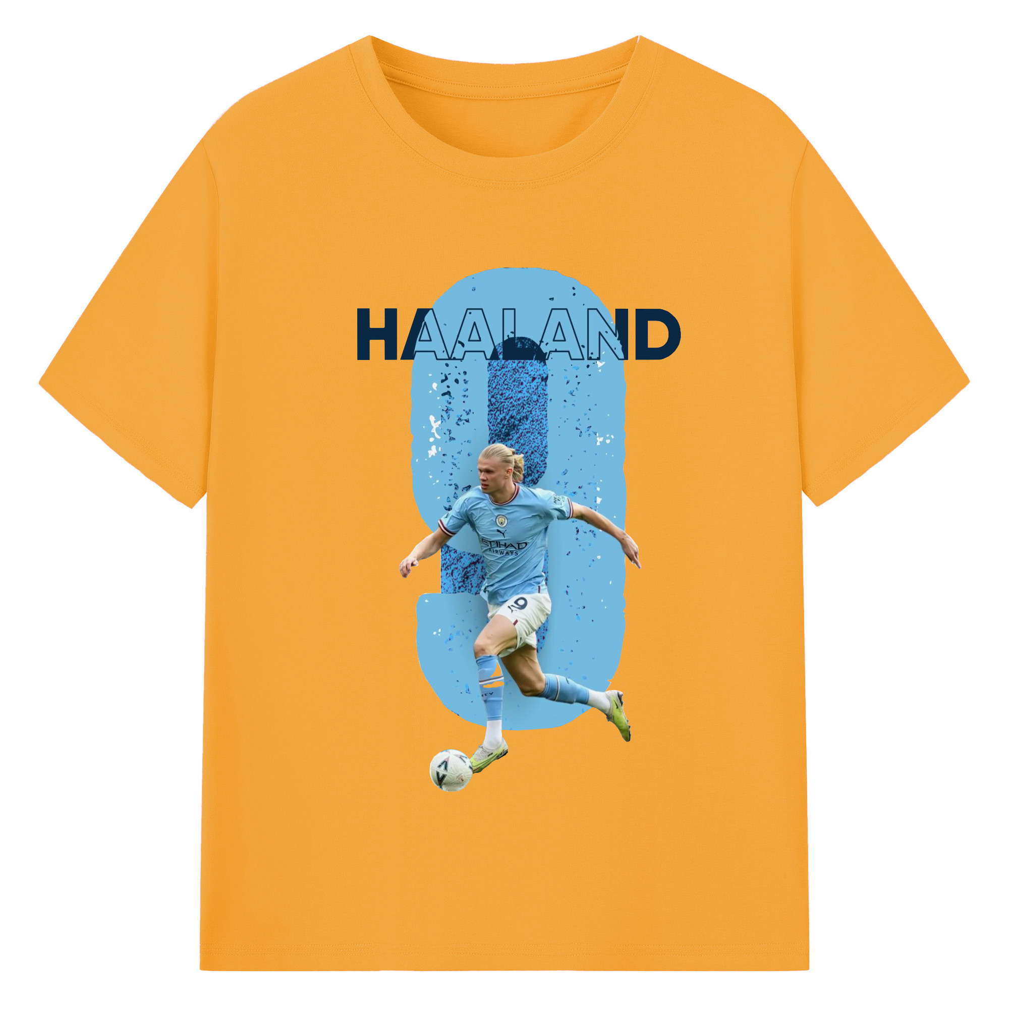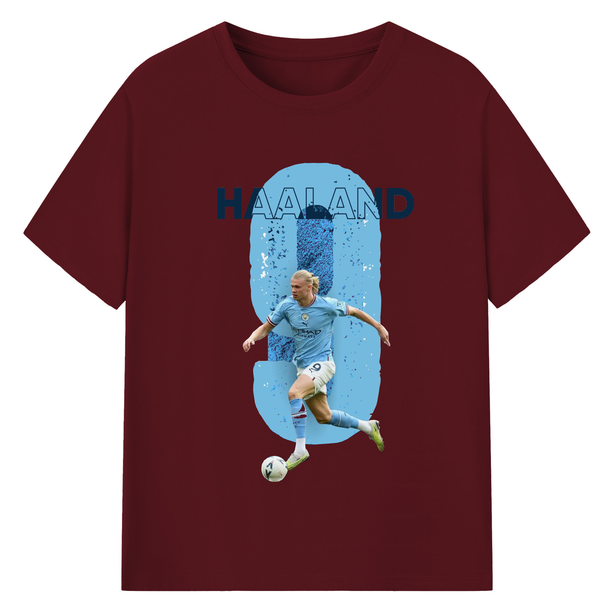 9番伝説|ピッチ支配者ハーランド - 綿100% 半袖Tシャツ ・ フロントプリント ・ 快適 通気性 ・ 日常使い 散歩 スポーツ用