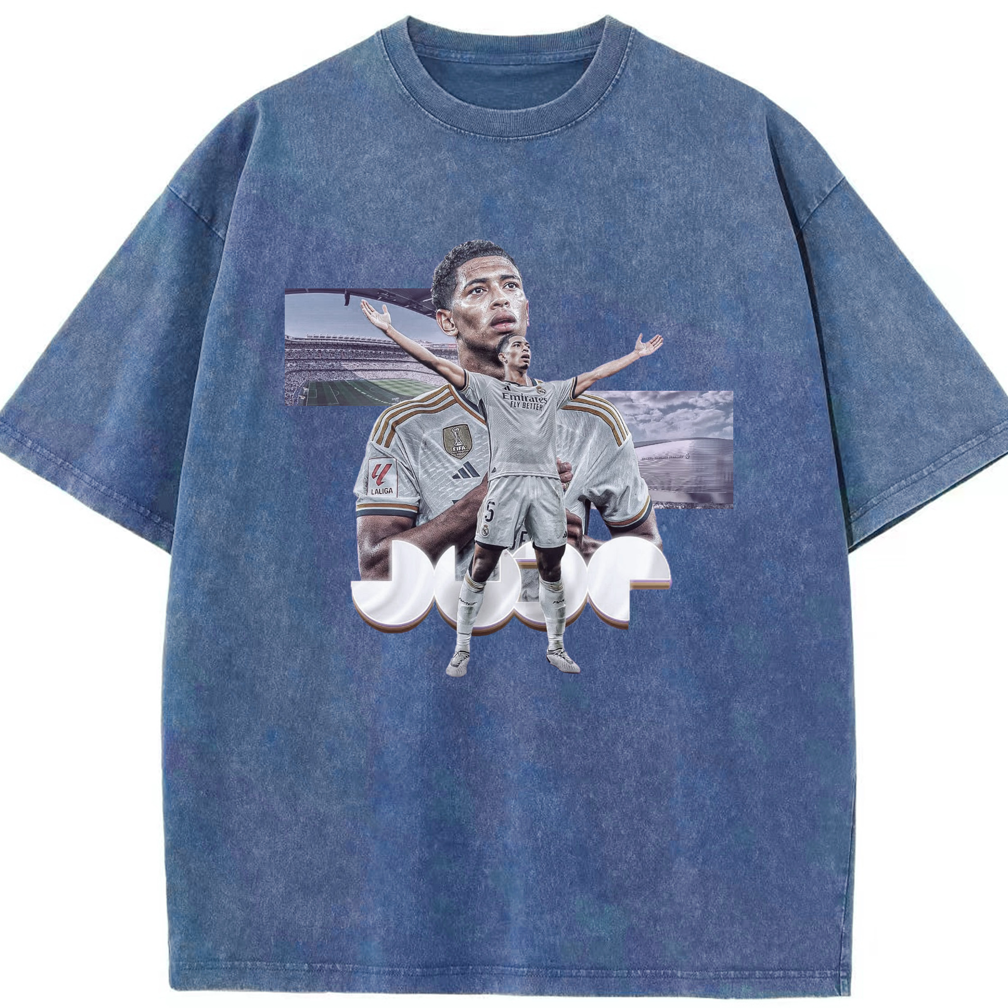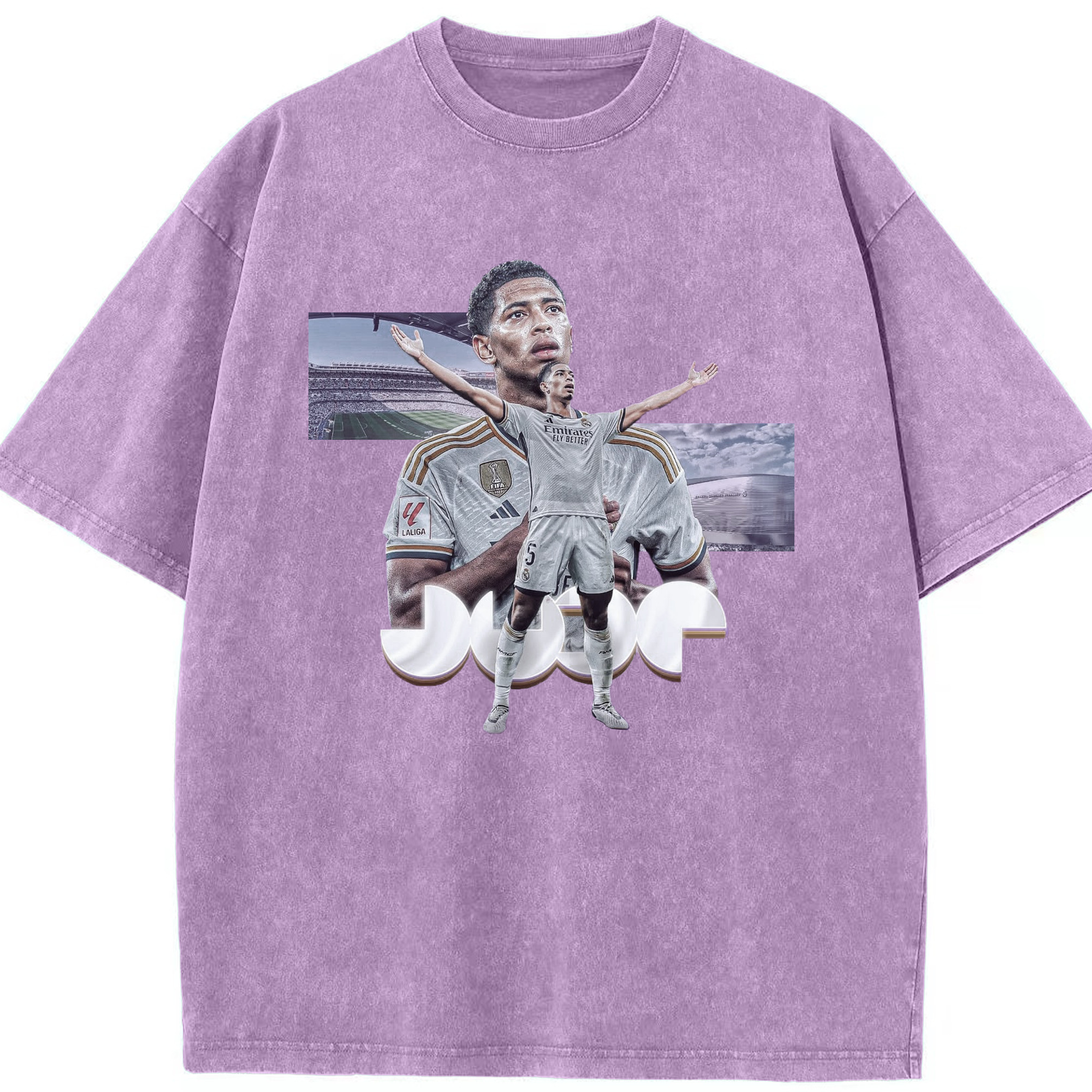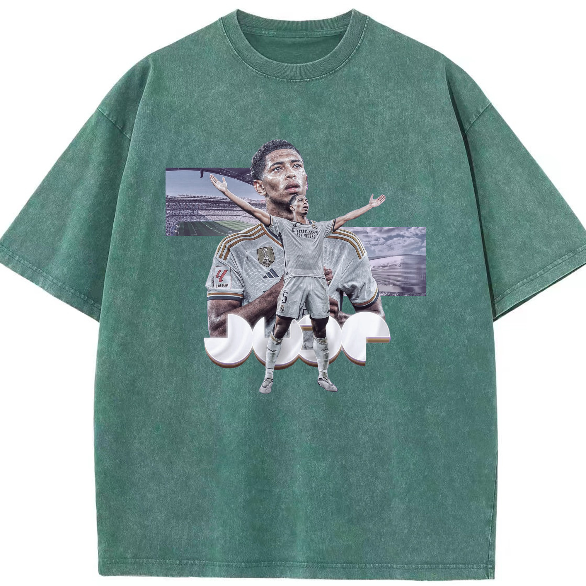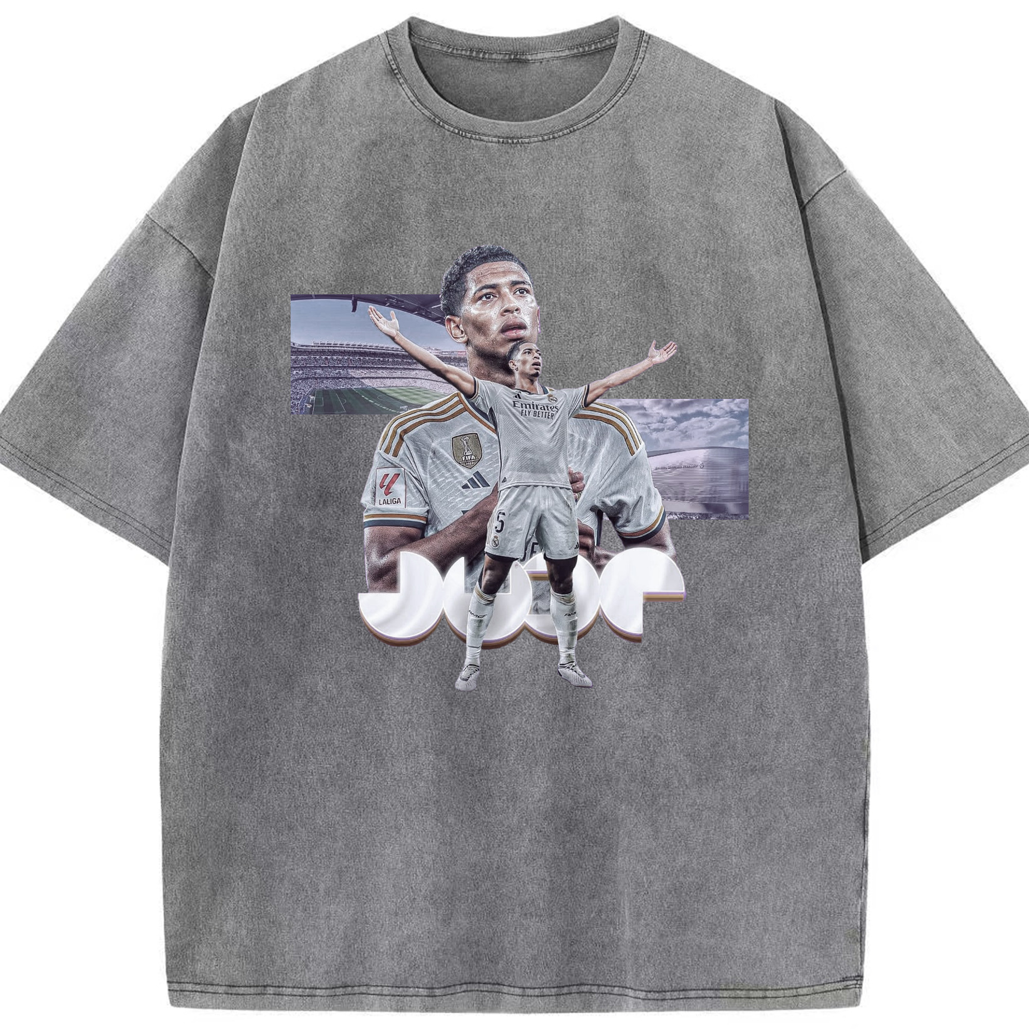 胸を張れ、若き10番!ベリンガムプリント - 綿100% ヴィンテージ風 半袖Tシャツ ・ フロントプリント ・ 柔らか肌触り ・ 通気性 快適 ・ スポーツ カジュアル 外出用