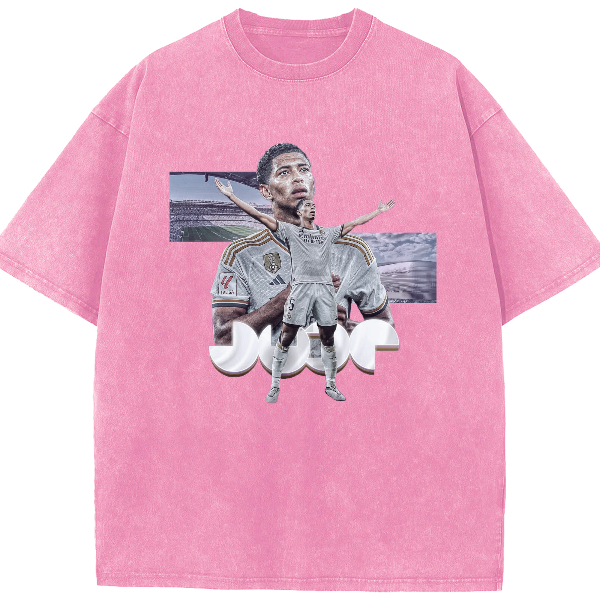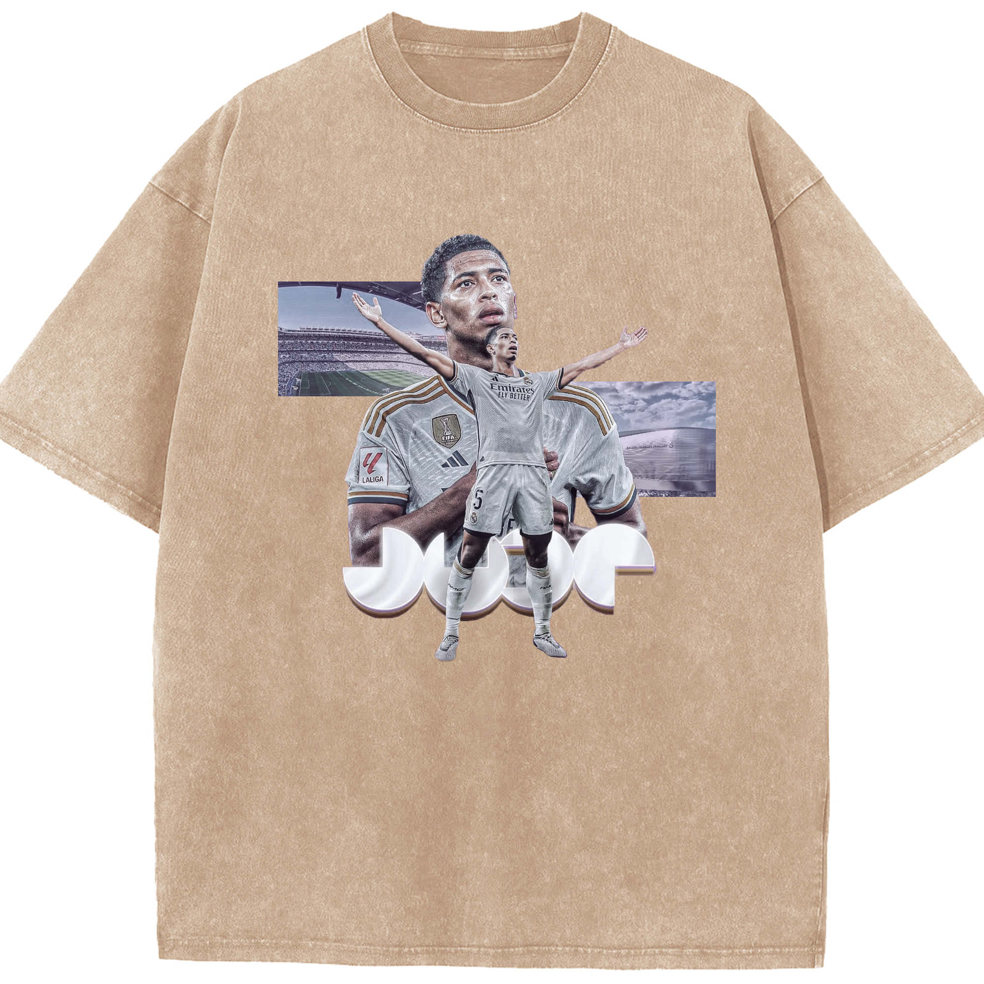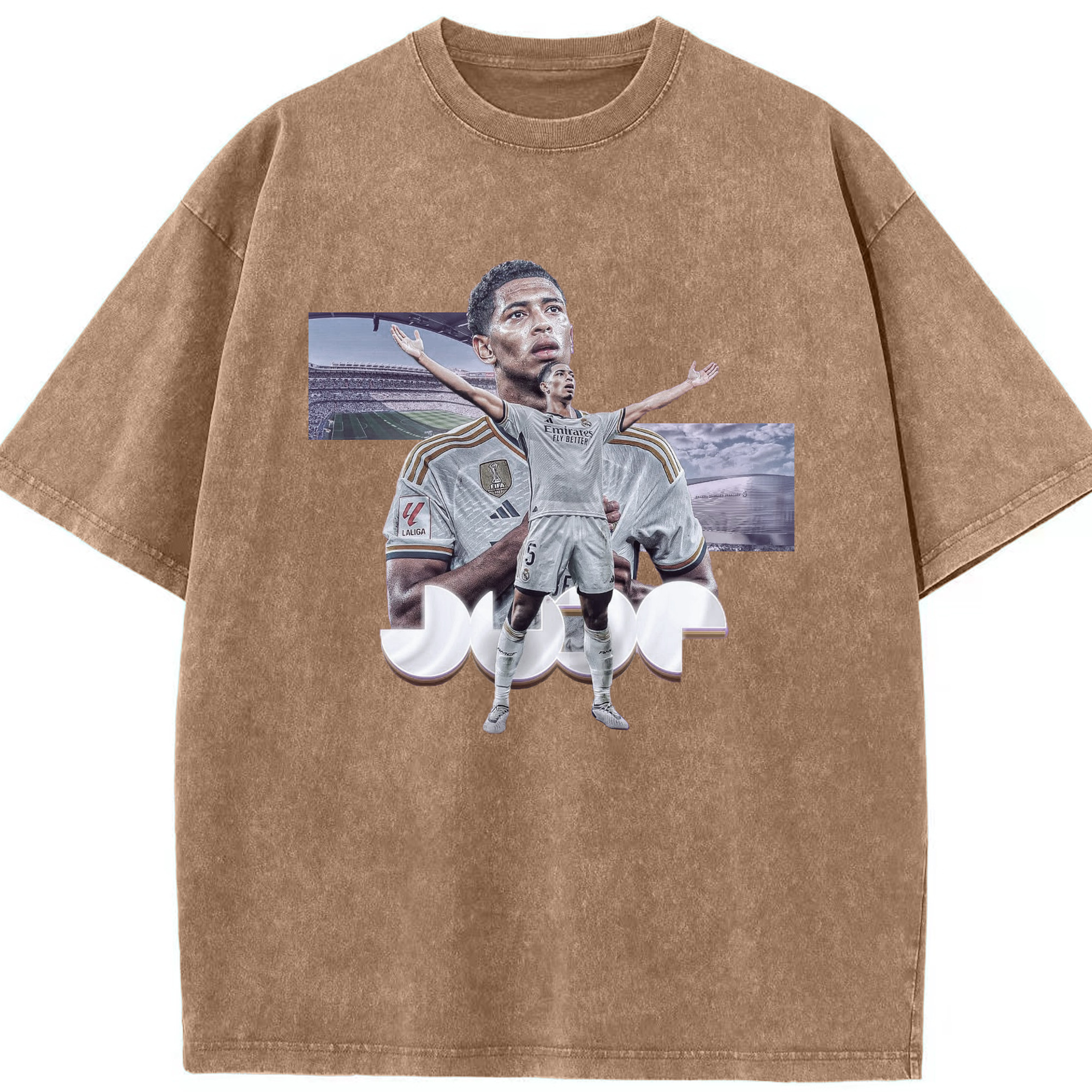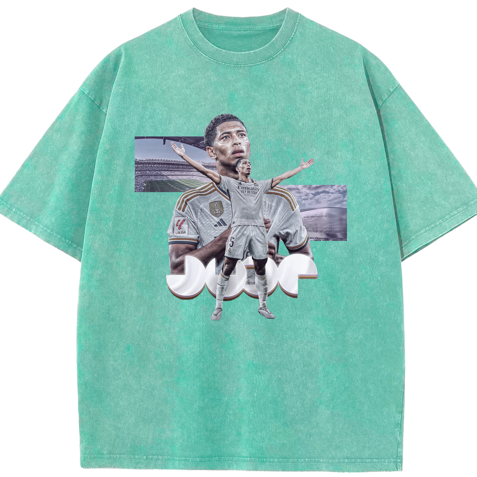 胸を張れ、若き10番!ベリンガムプリント - 綿100% ヴィンテージ風 半袖Tシャツ ・ フロントプリント ・ 柔らか肌触り ・ 通気性 快適 ・ スポーツ カジュアル 外出用
