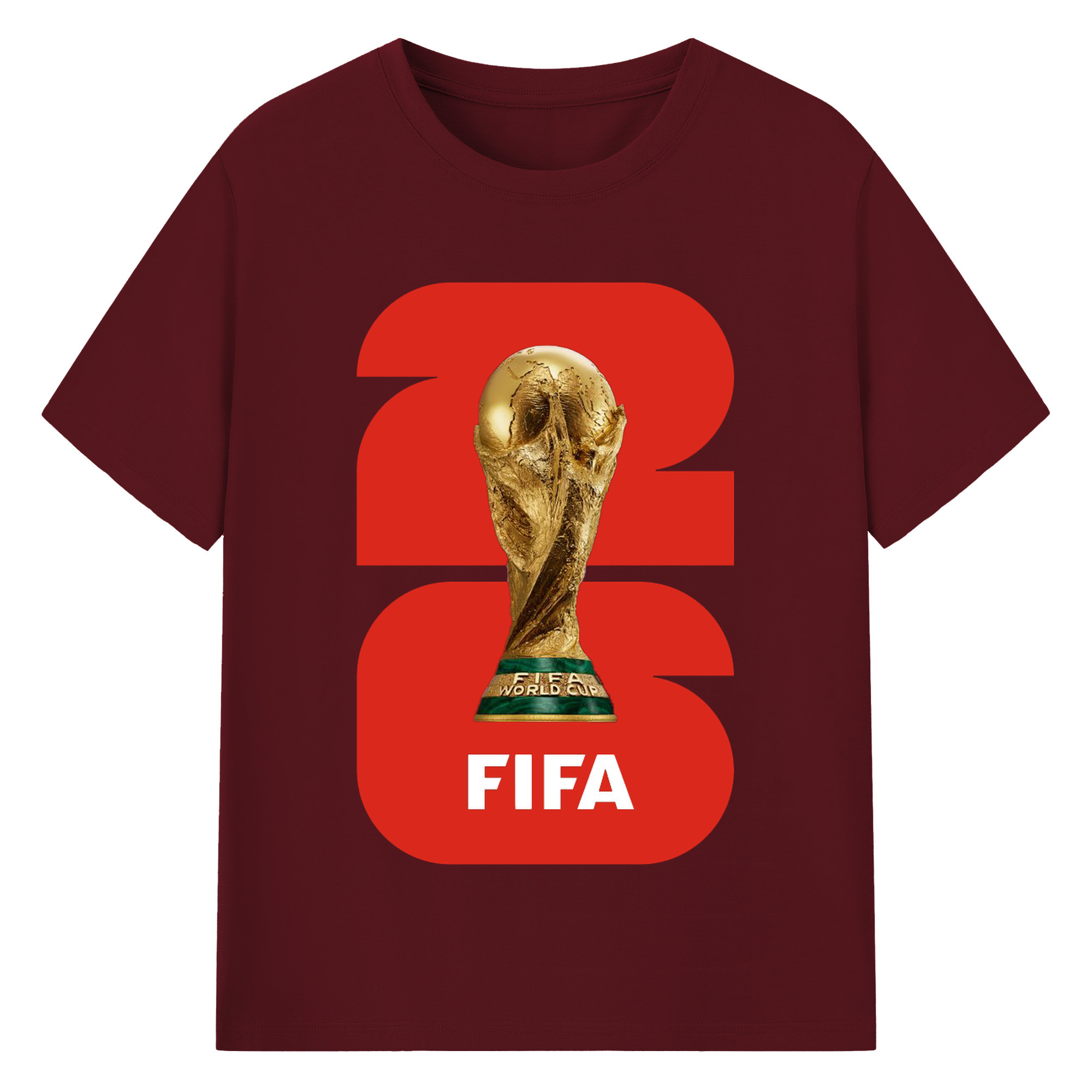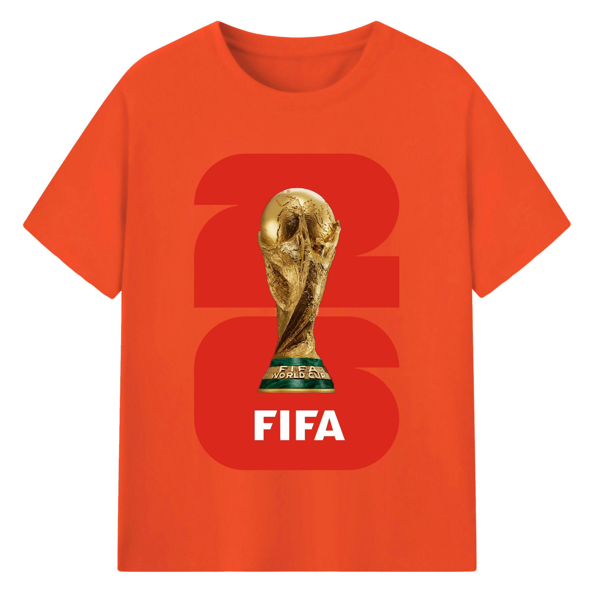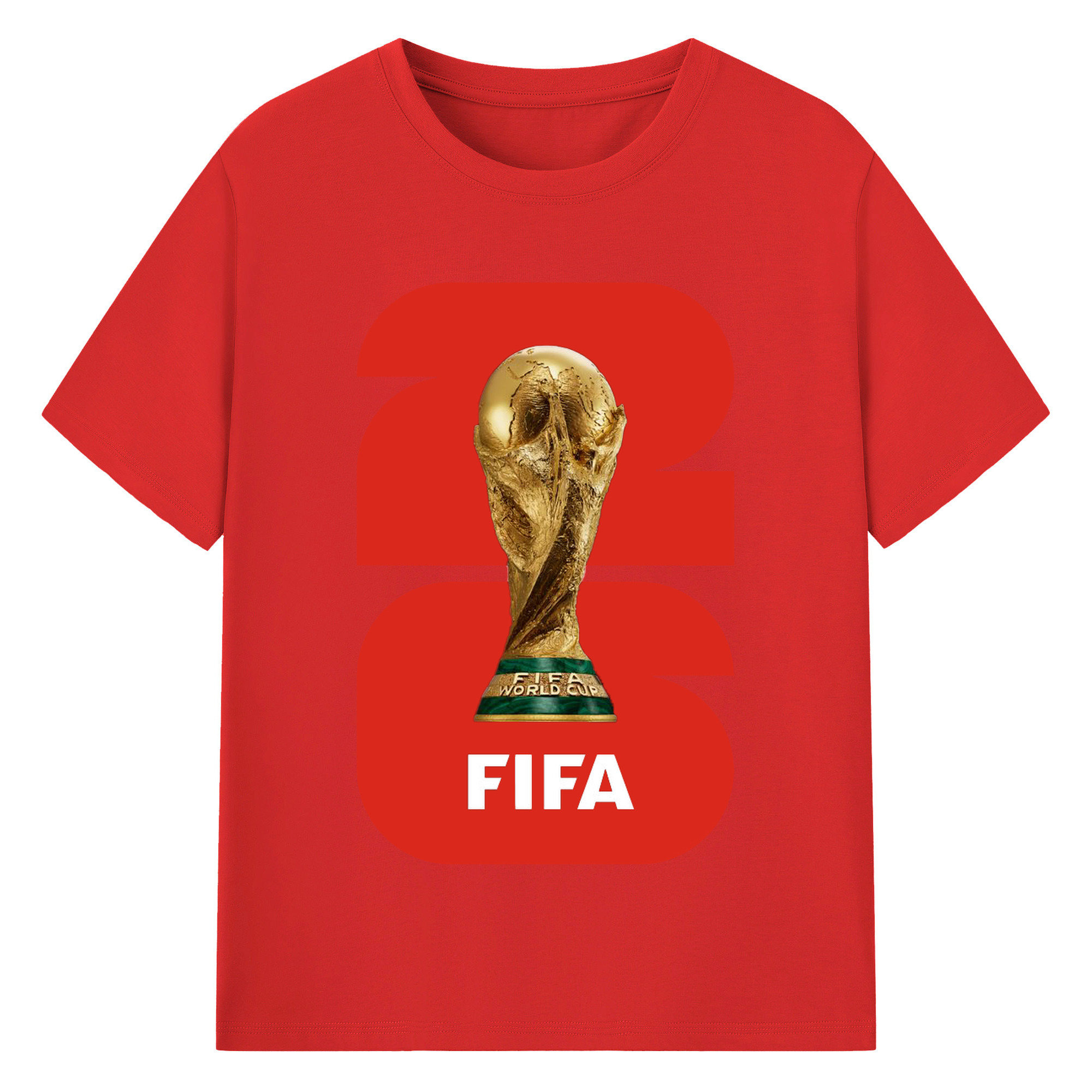 カタールW杯2022 記念 レッド - 綿100% 半袖Tシャツ ・ フロントプリント ・ 快適 通気性 ・ 日常使い 散歩 スポーツ用