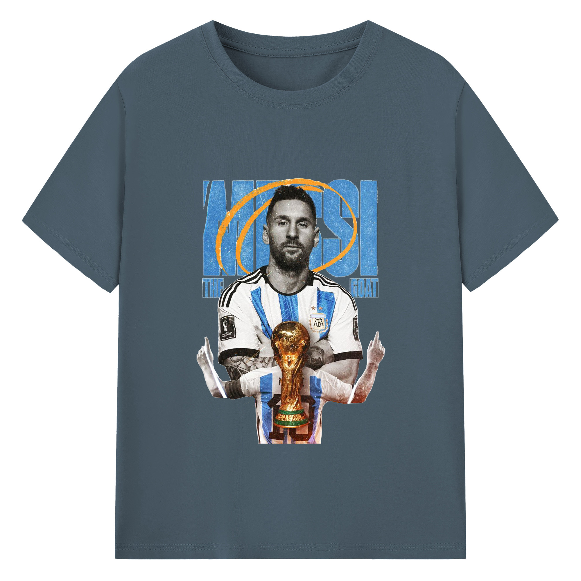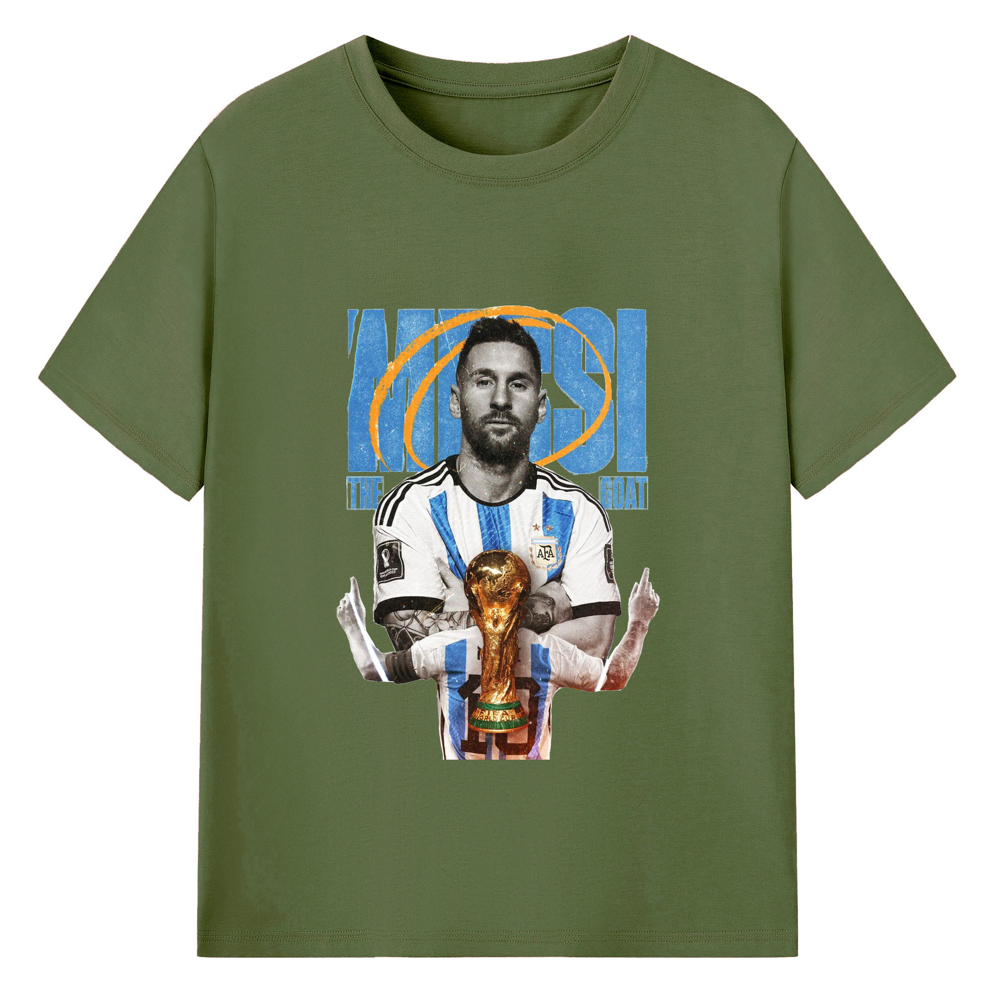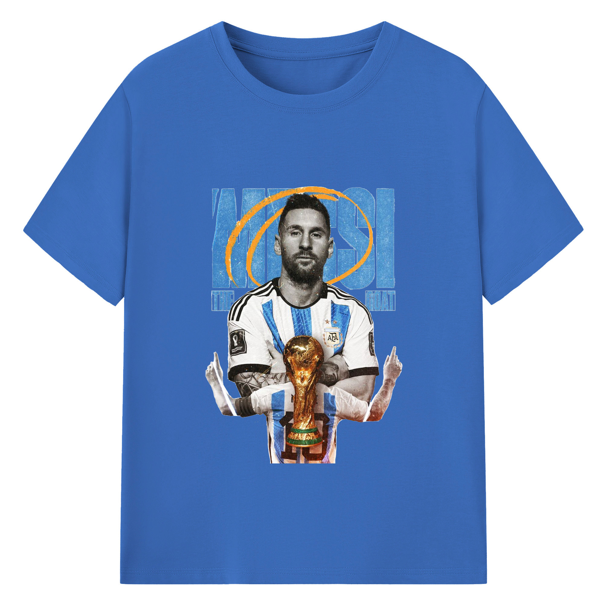 伝説の男 – MESSI|アルゼンチン代表の英雄 - 綿100% 半袖Tシャツ ・ フロントプリント ・ 快適 通気性 ・ 日常使い 散歩 スポーツ用