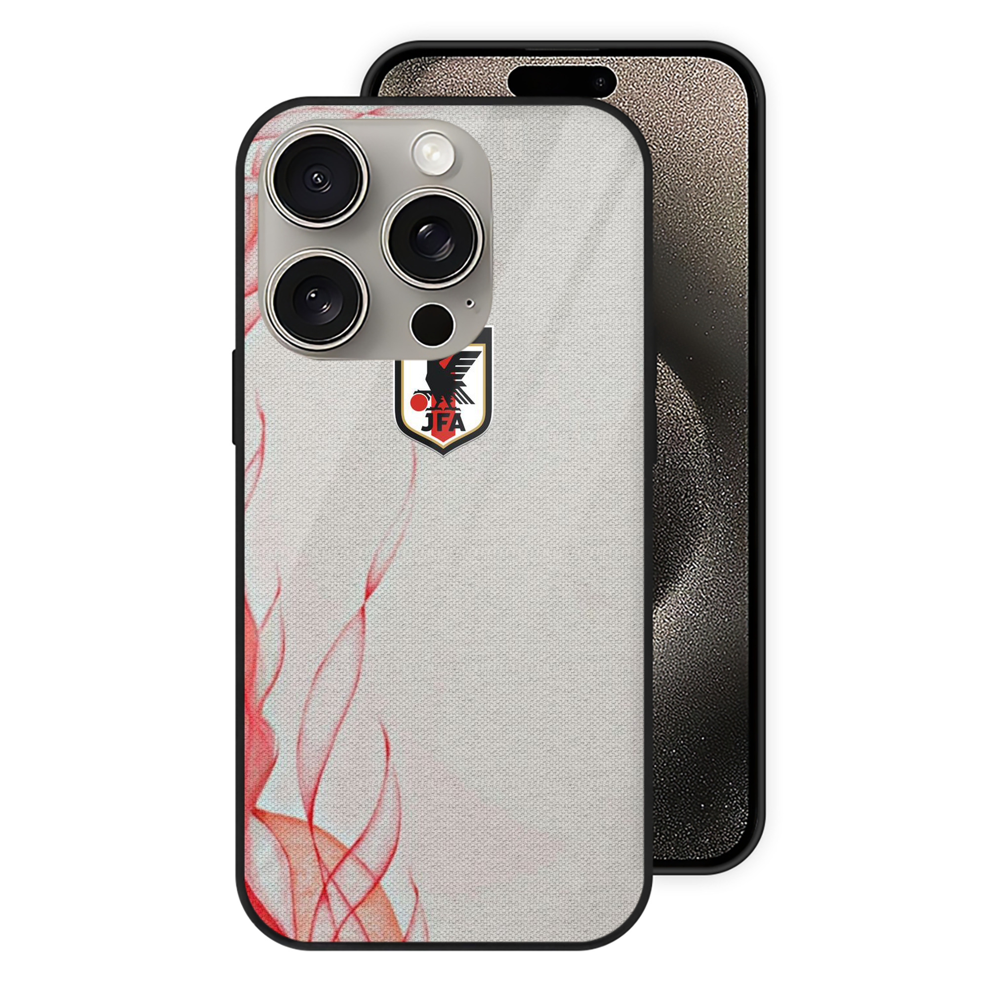 JFAロゴ - IPhone15Pro対応 ・ スマホケース ・ 背面ガラス ・ TPU+強化ガラス ・ 耐衝撃 ・ 黄変防止 ・ ワイヤレス充電対応 ・ 3D立体ボタン