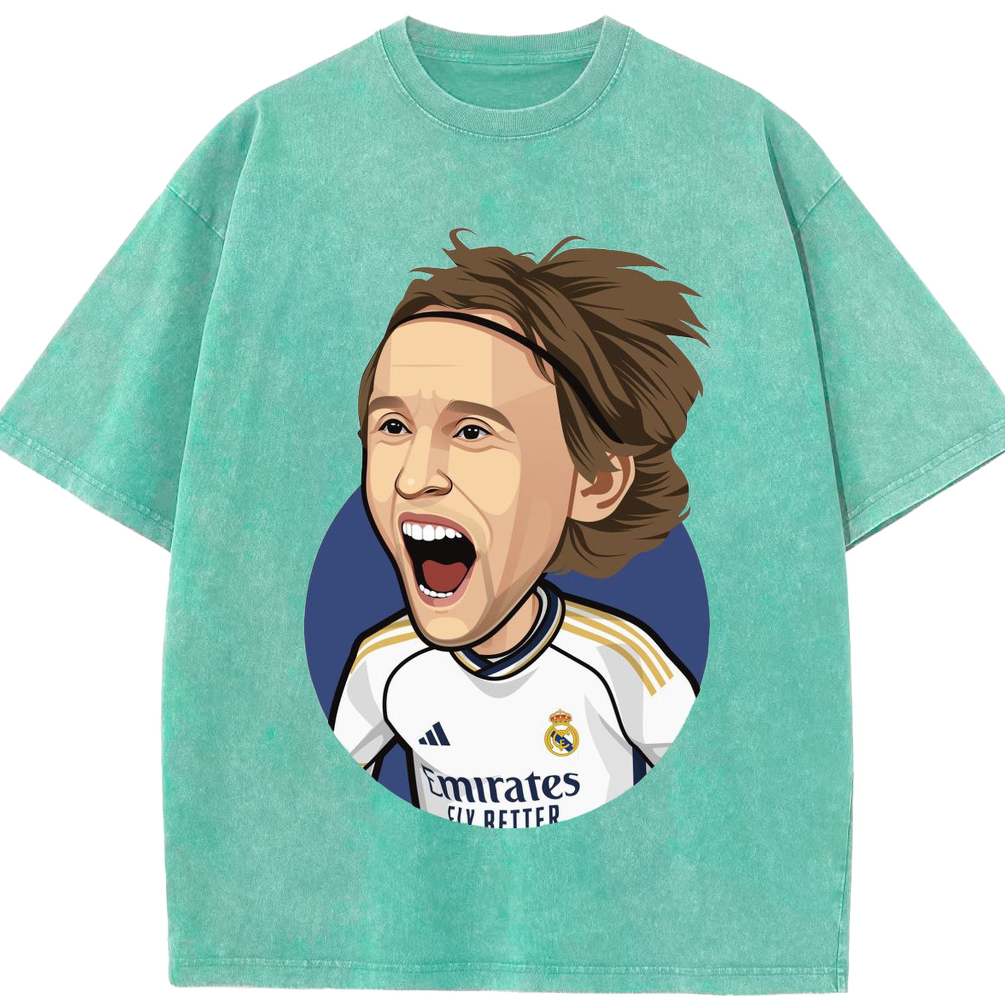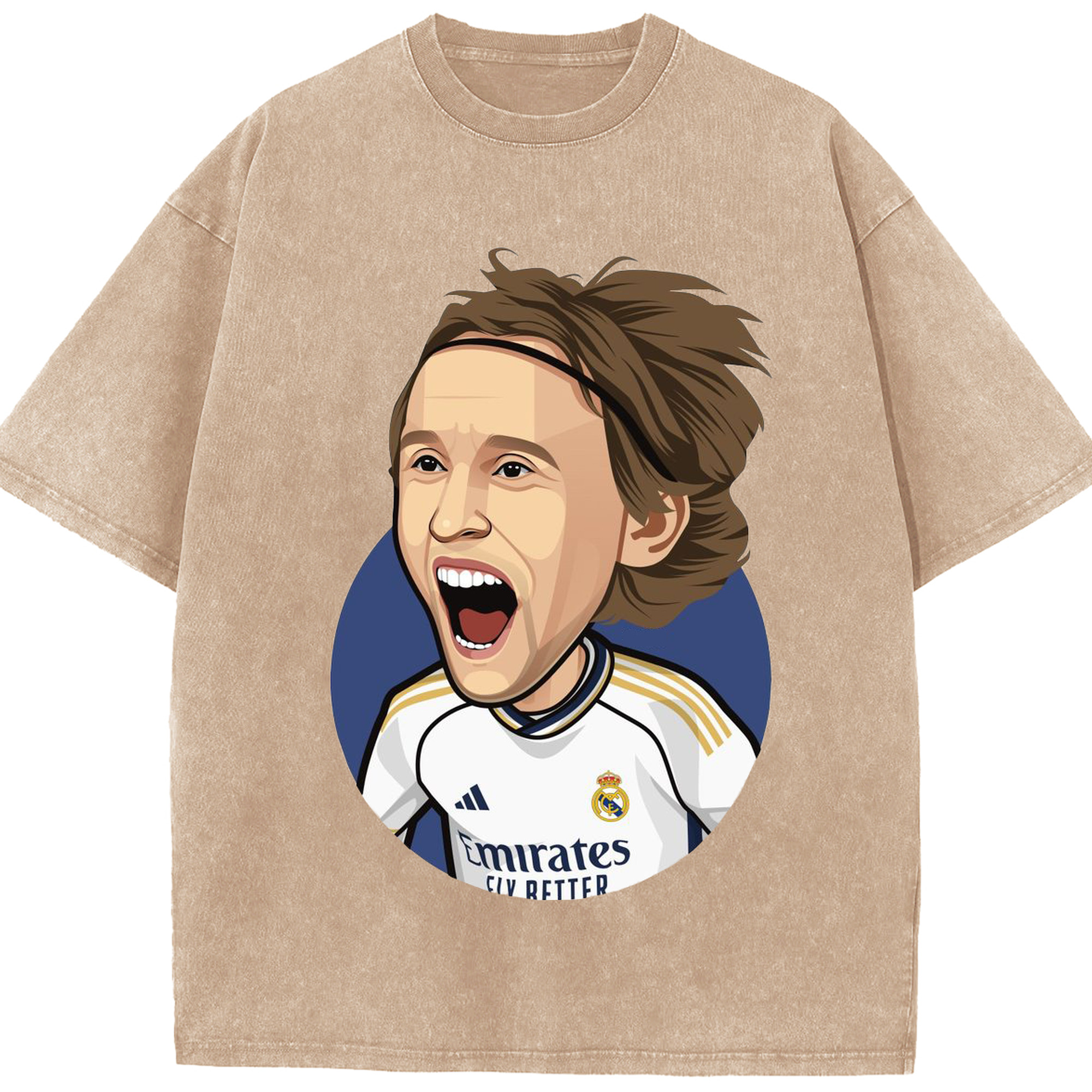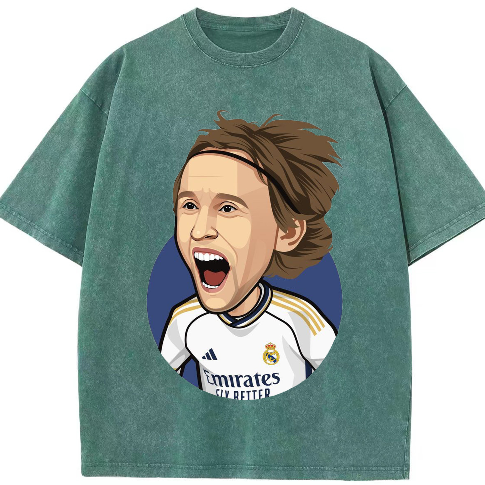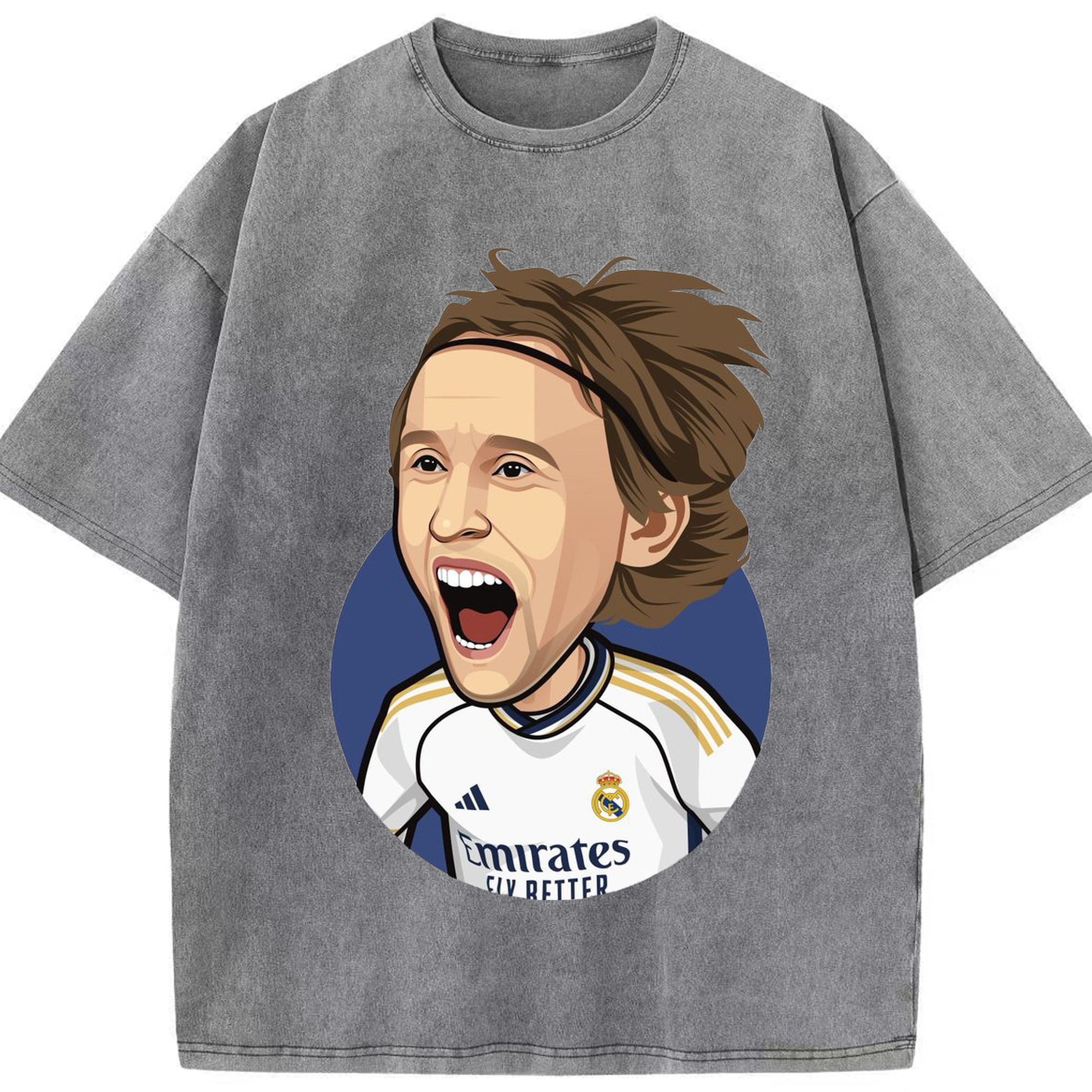 モドリッチファン必見!記念デザイン|バロンドール受賞者 - 綿100% ヴィンテージ風 半袖Tシャツ ・ フロントプリント ・ 柔らか肌触り ・ 通気性 快適 ・ スポーツ カジュアル 外出用