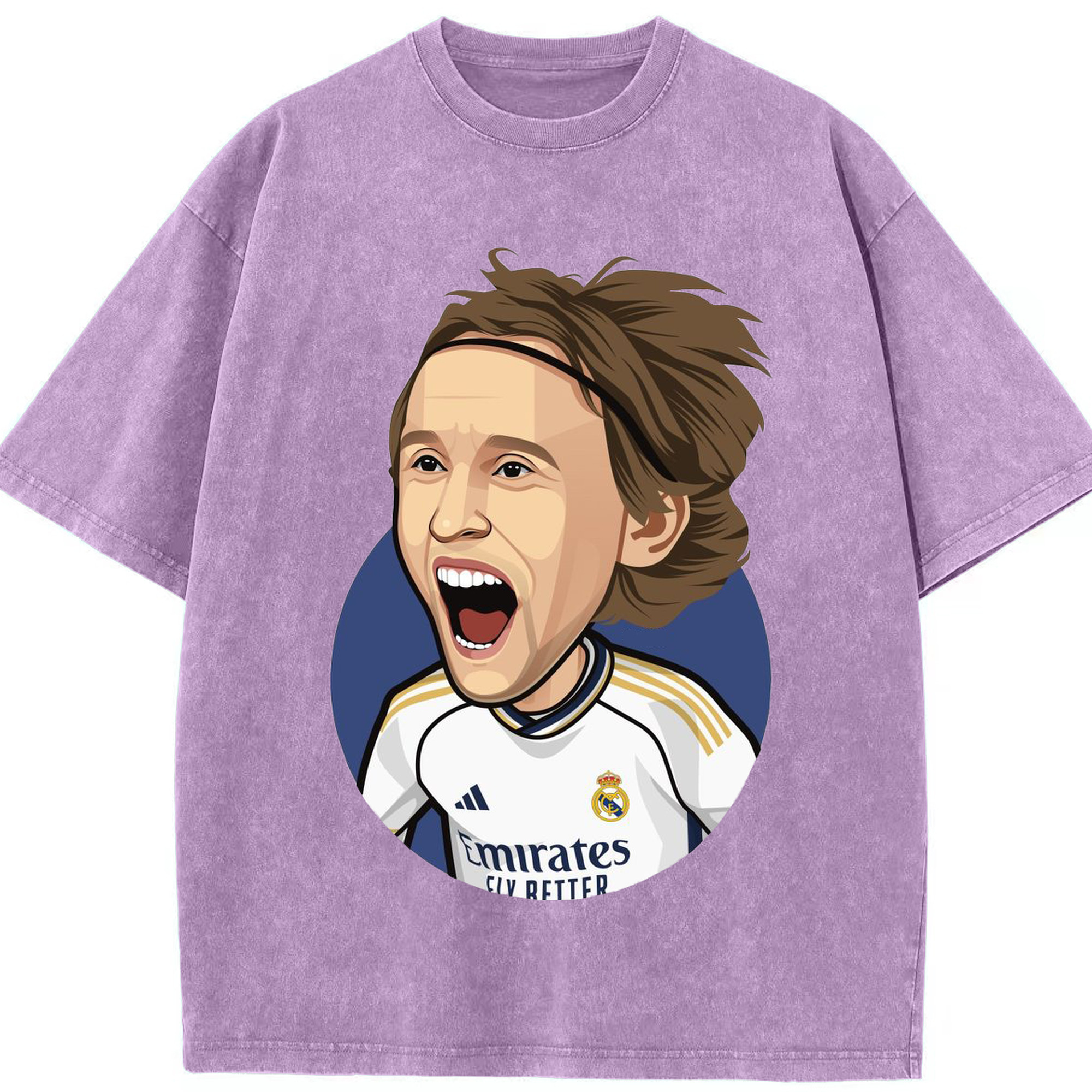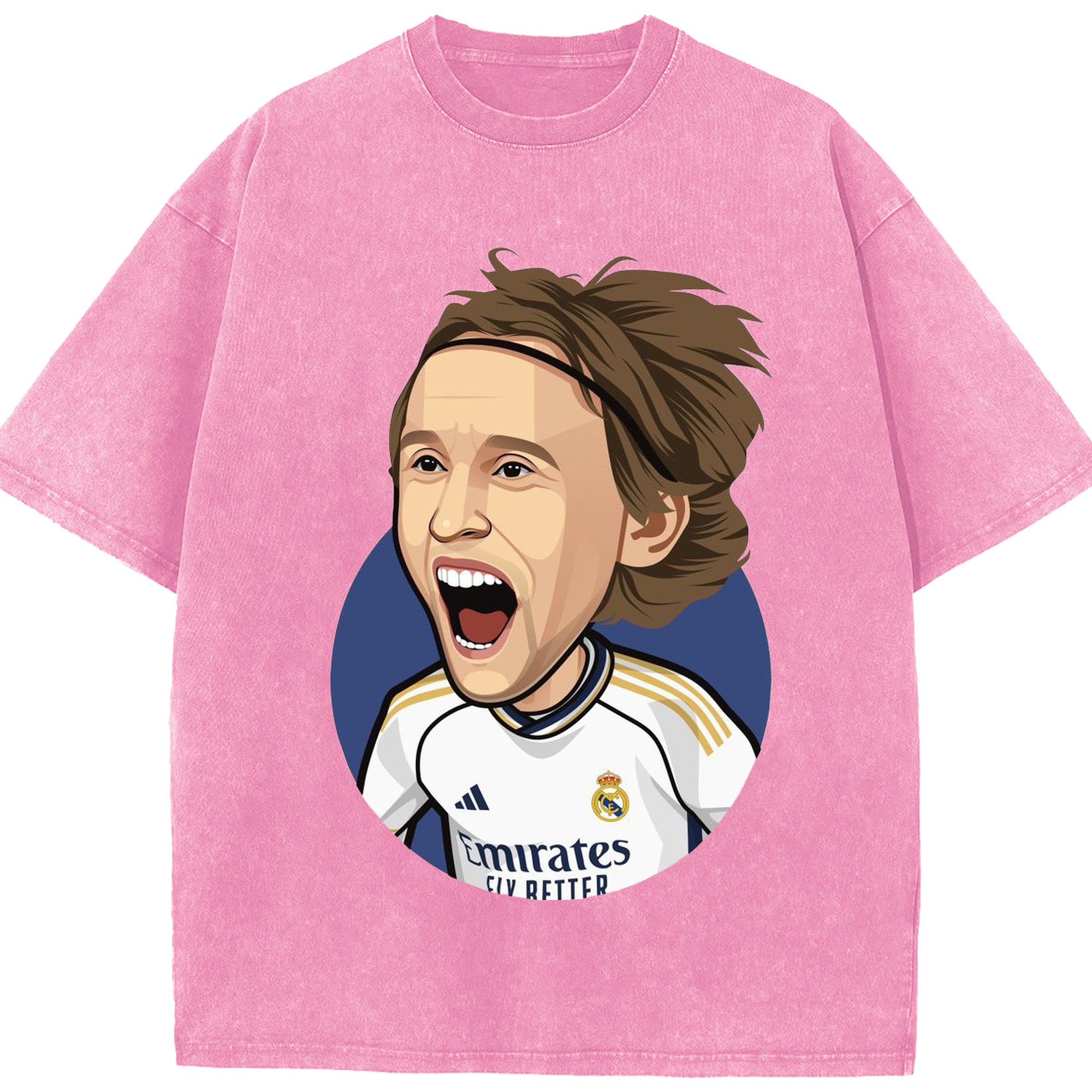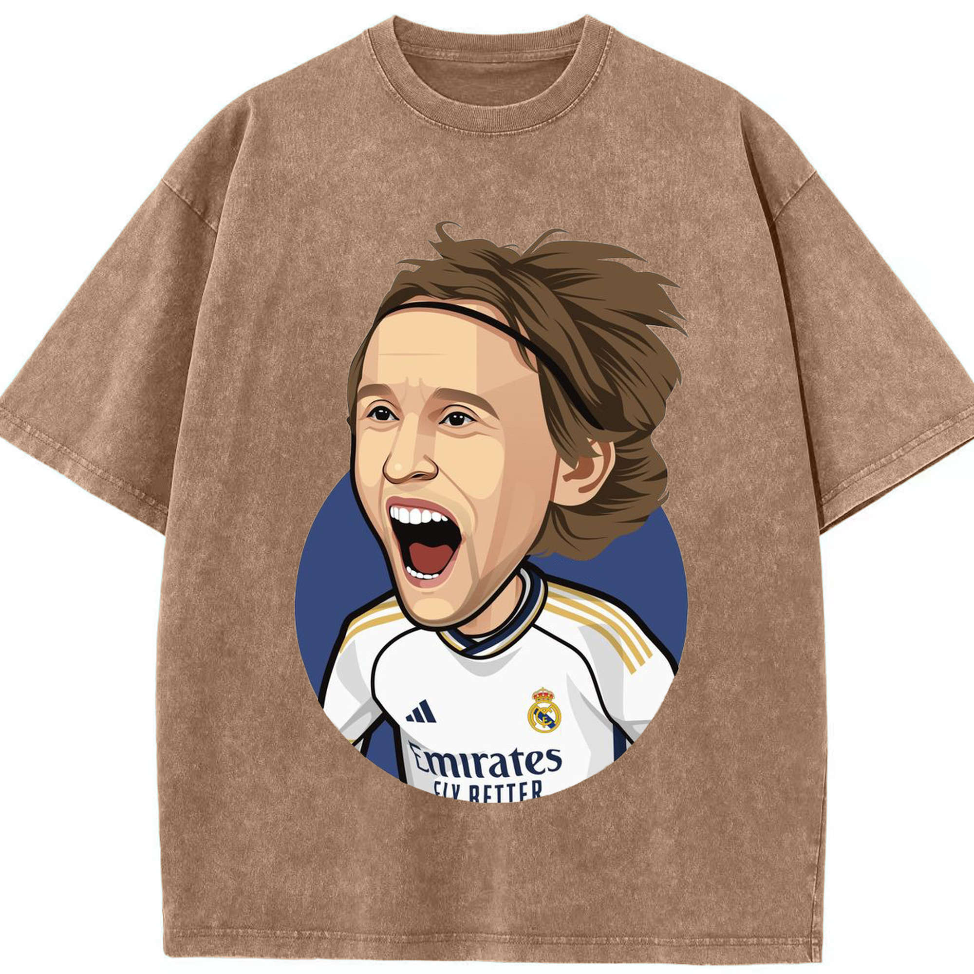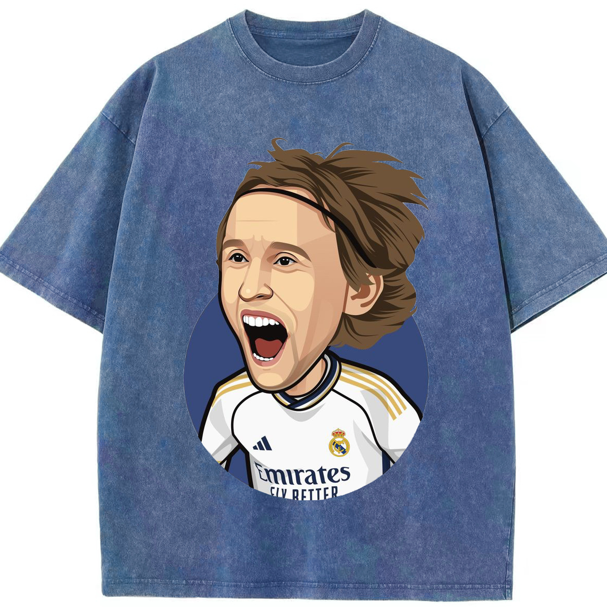 モドリッチファン必見!記念デザイン|バロンドール受賞者 - 綿100% ヴィンテージ風 半袖Tシャツ ・ フロントプリント ・ 柔らか肌触り ・ 通気性 快適 ・ スポーツ カジュアル 外出用