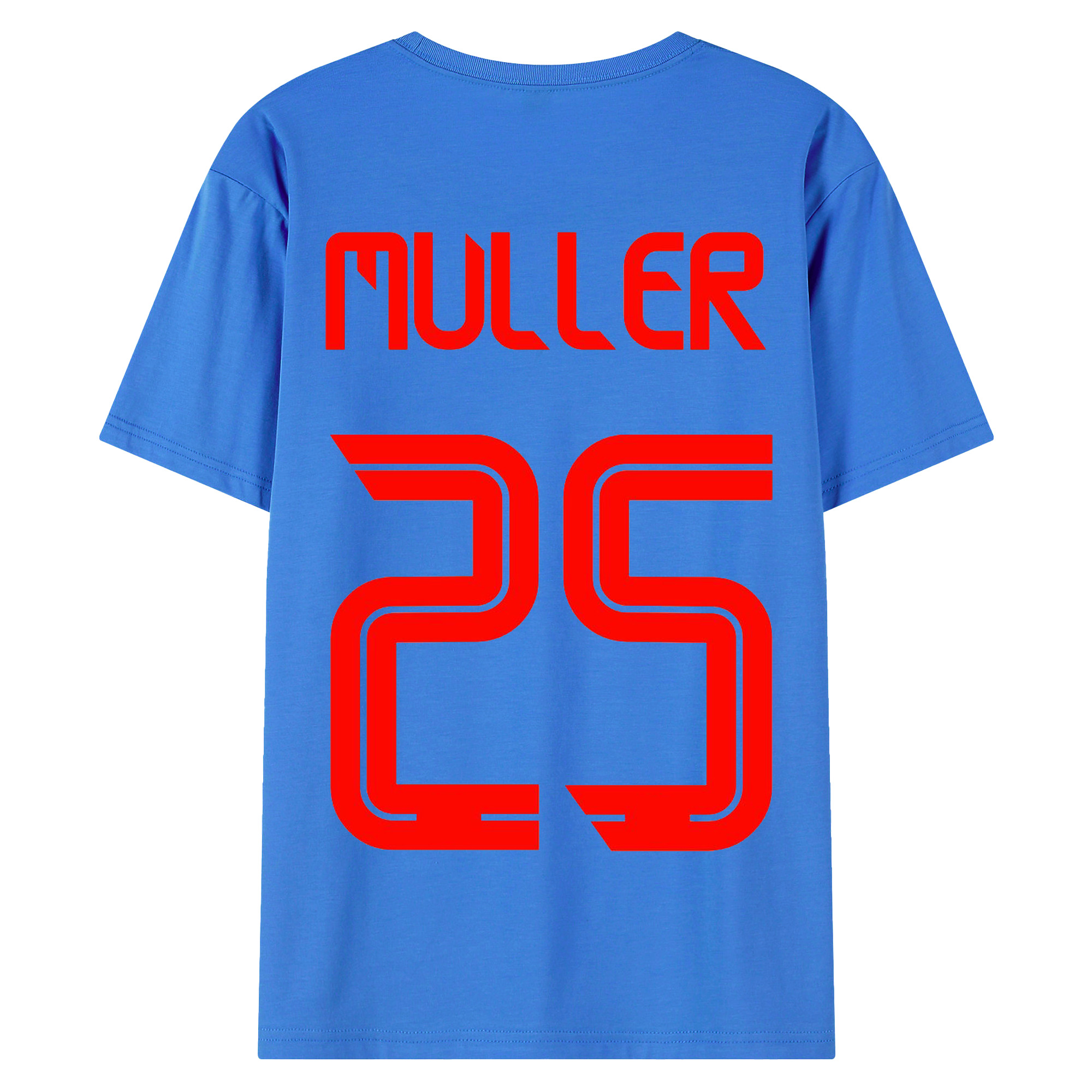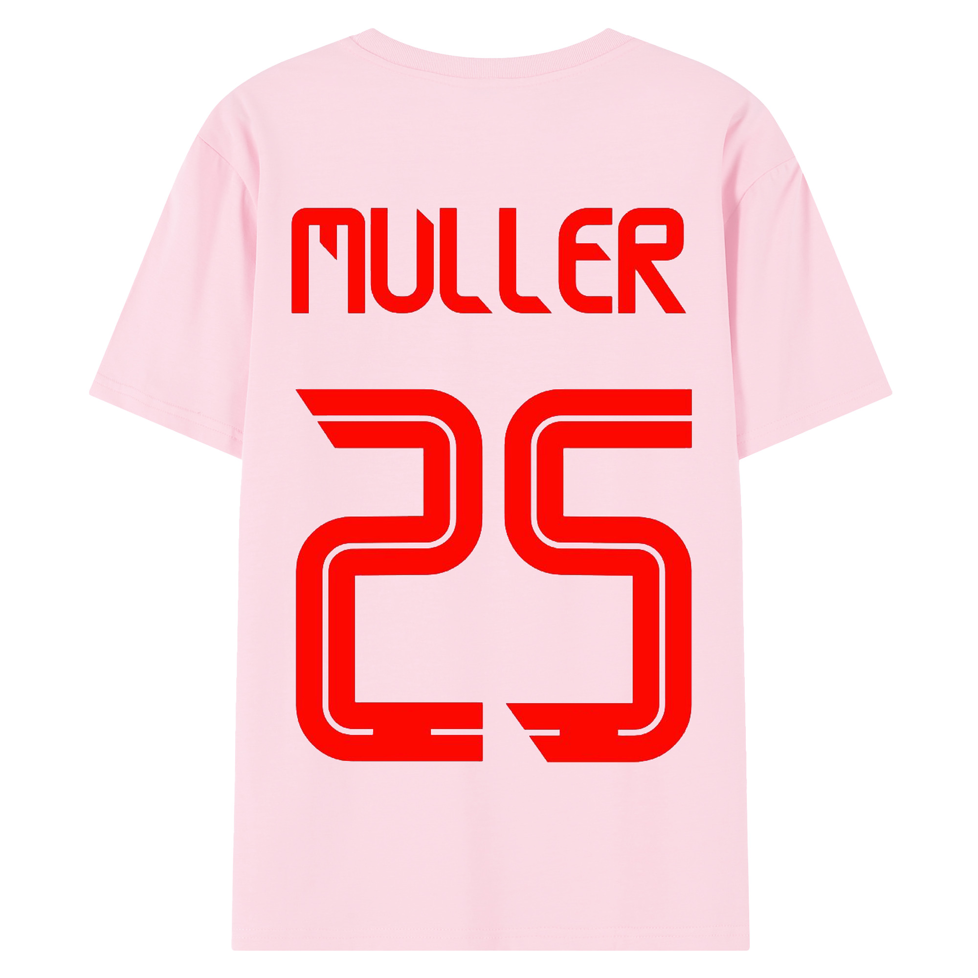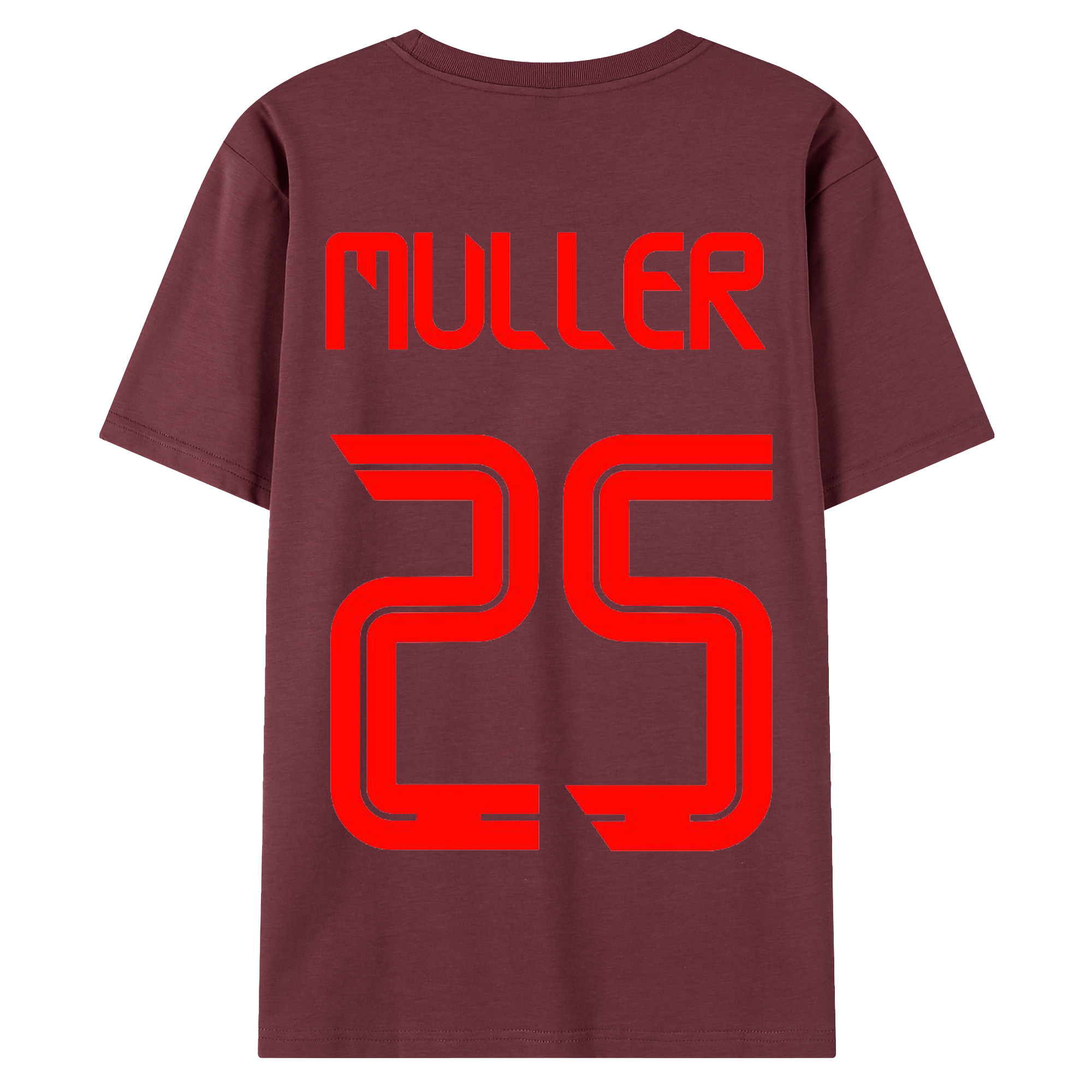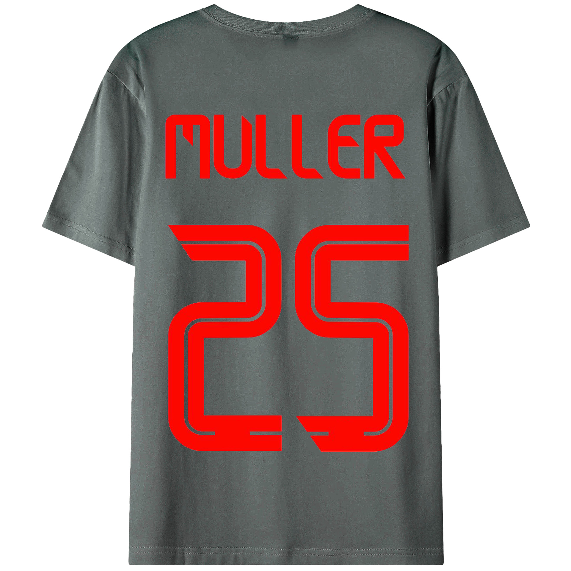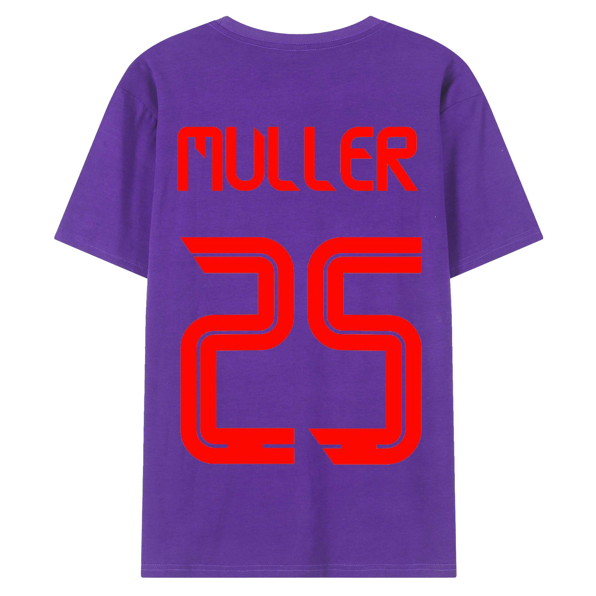 Müller 背番号25 ミュラー - 綿100% 半袖Tシャツ ・ バックプリント ・ 快適 通気性 ・ 日常使い 散歩 スポーツ用
