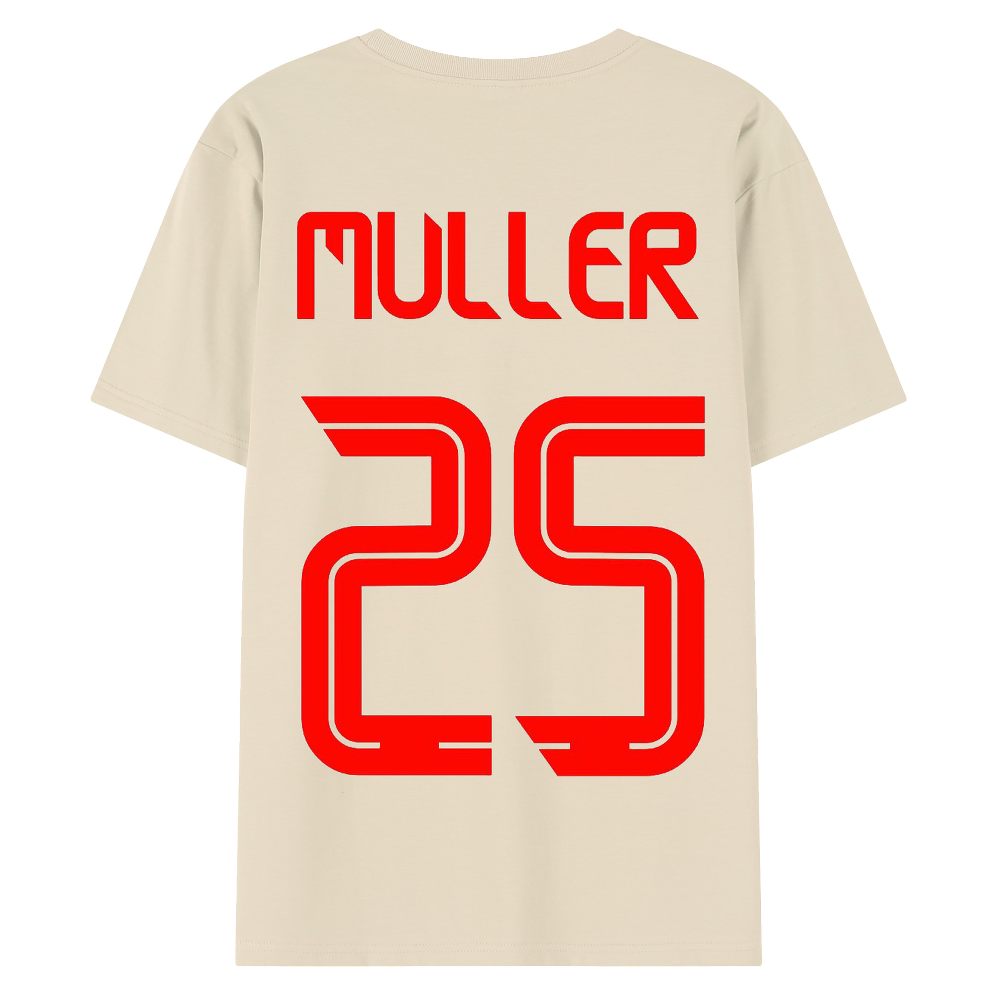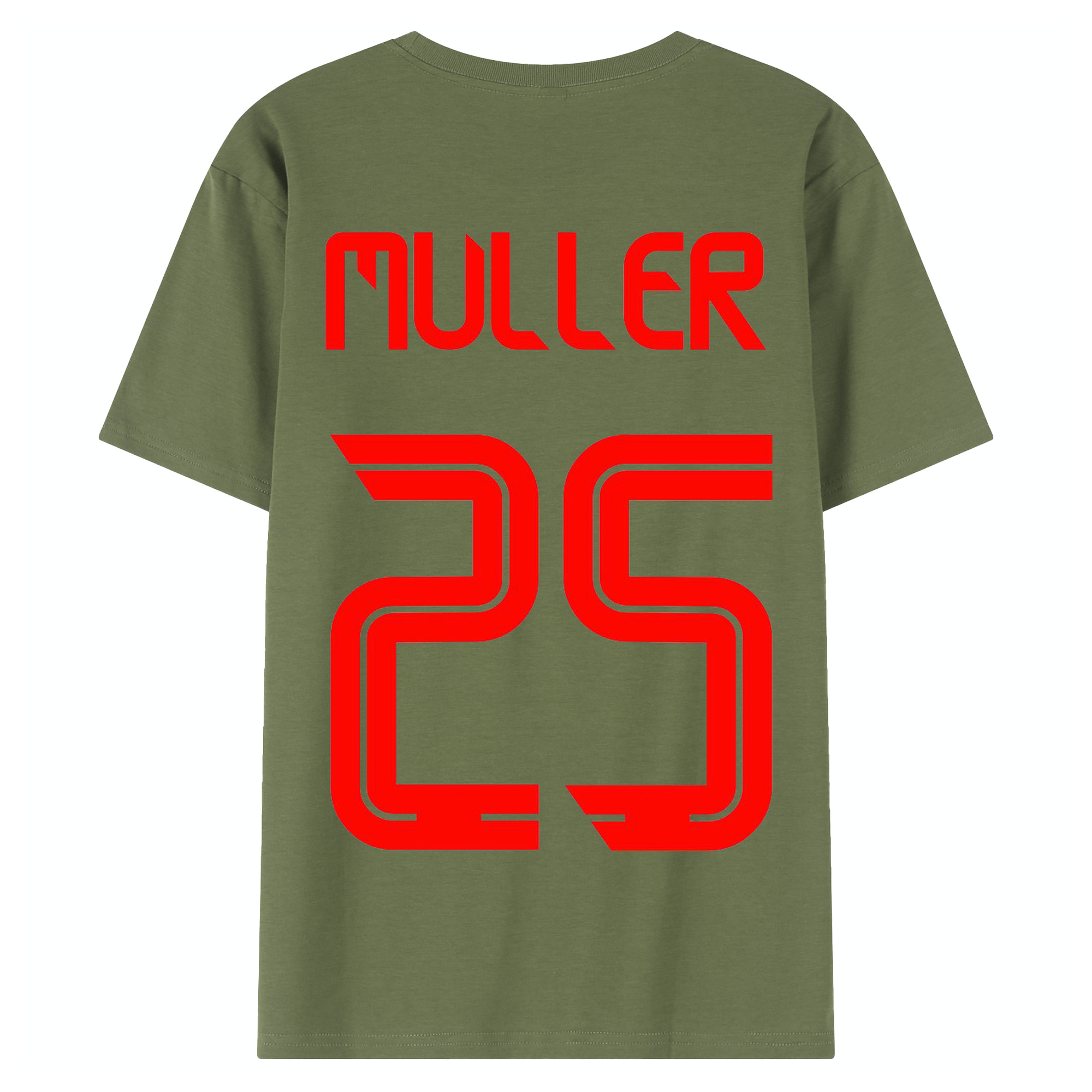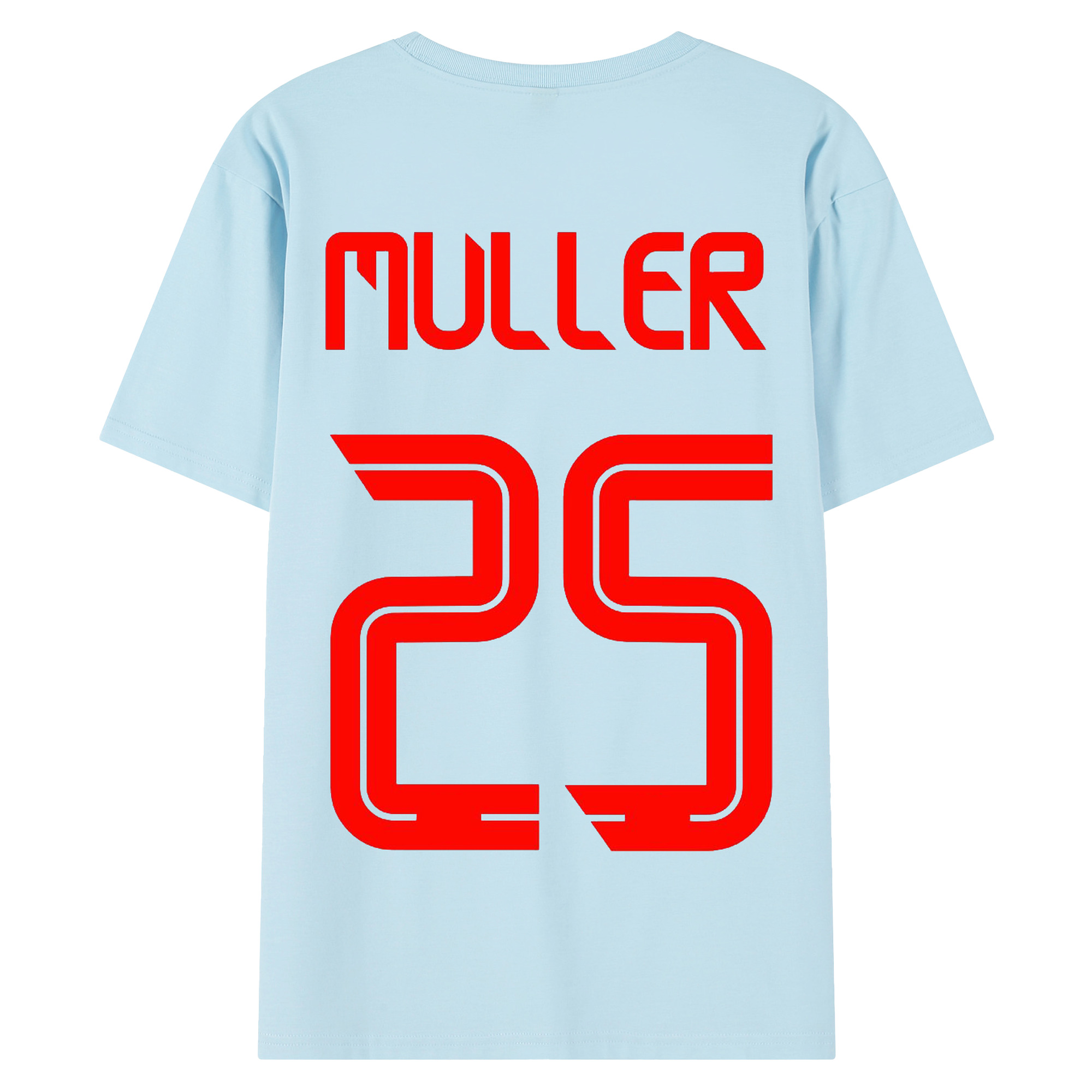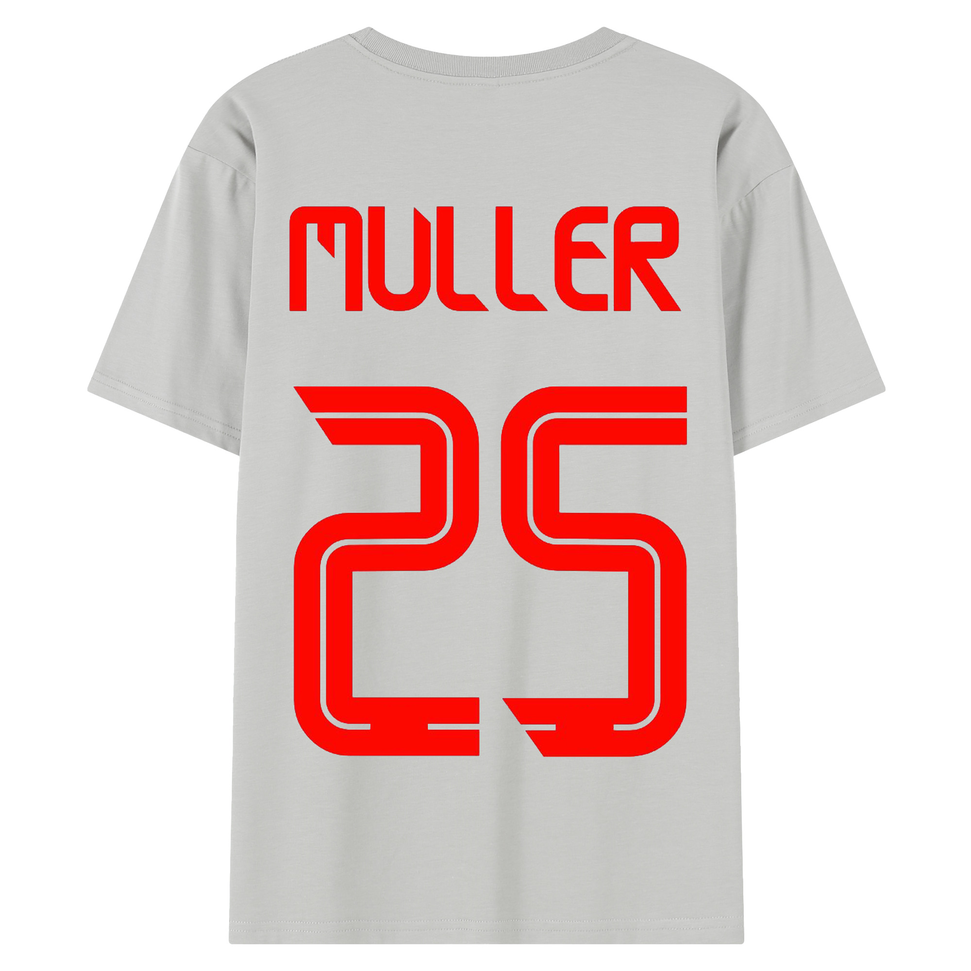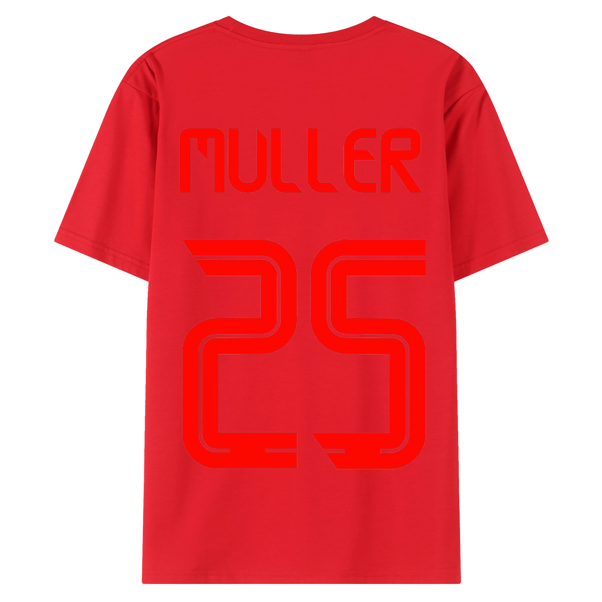 Müller 背番号25 ミュラー - 綿100% 半袖Tシャツ ・ バックプリント ・ 快適 通気性 ・ 日常使い 散歩 スポーツ用